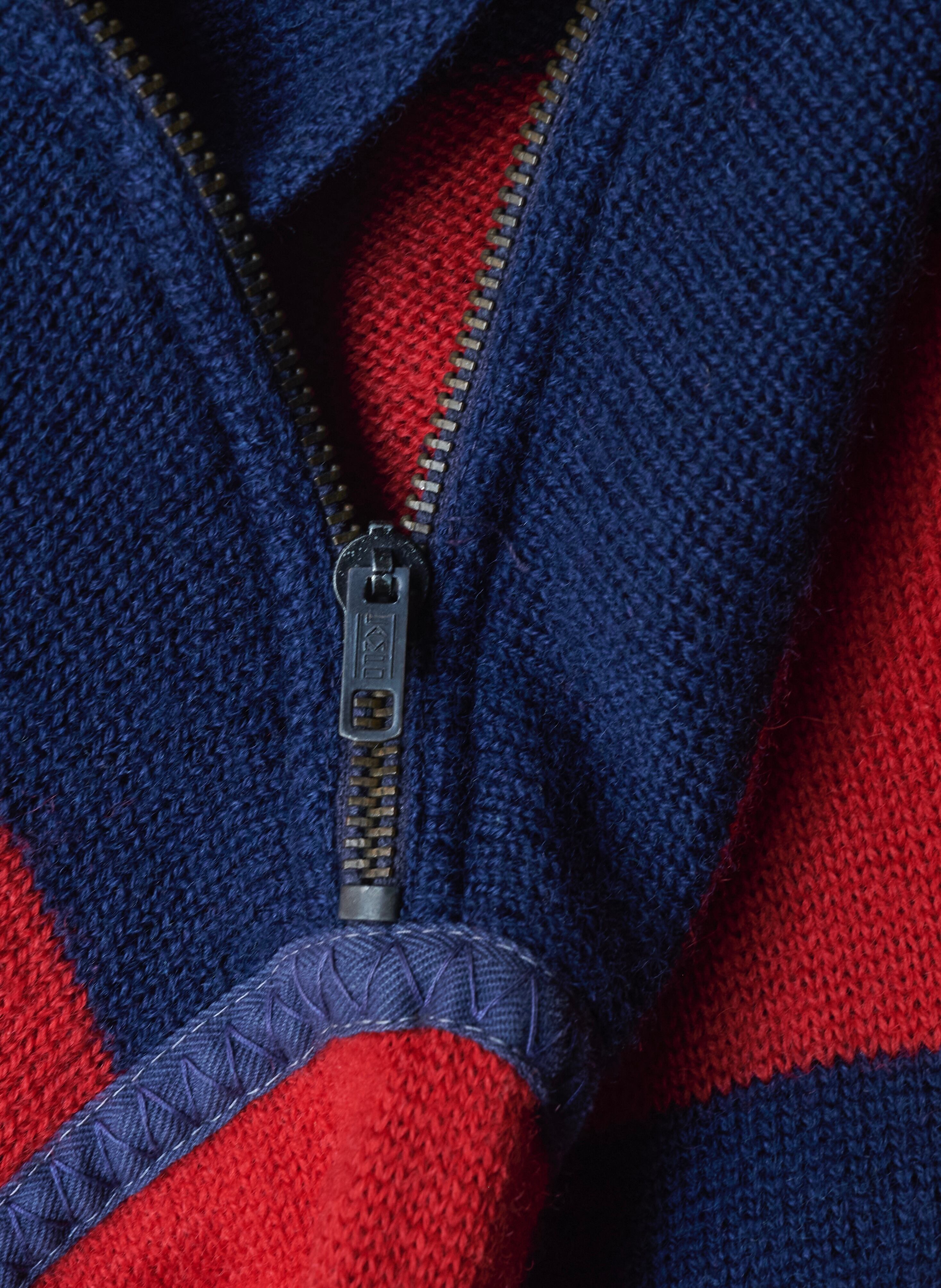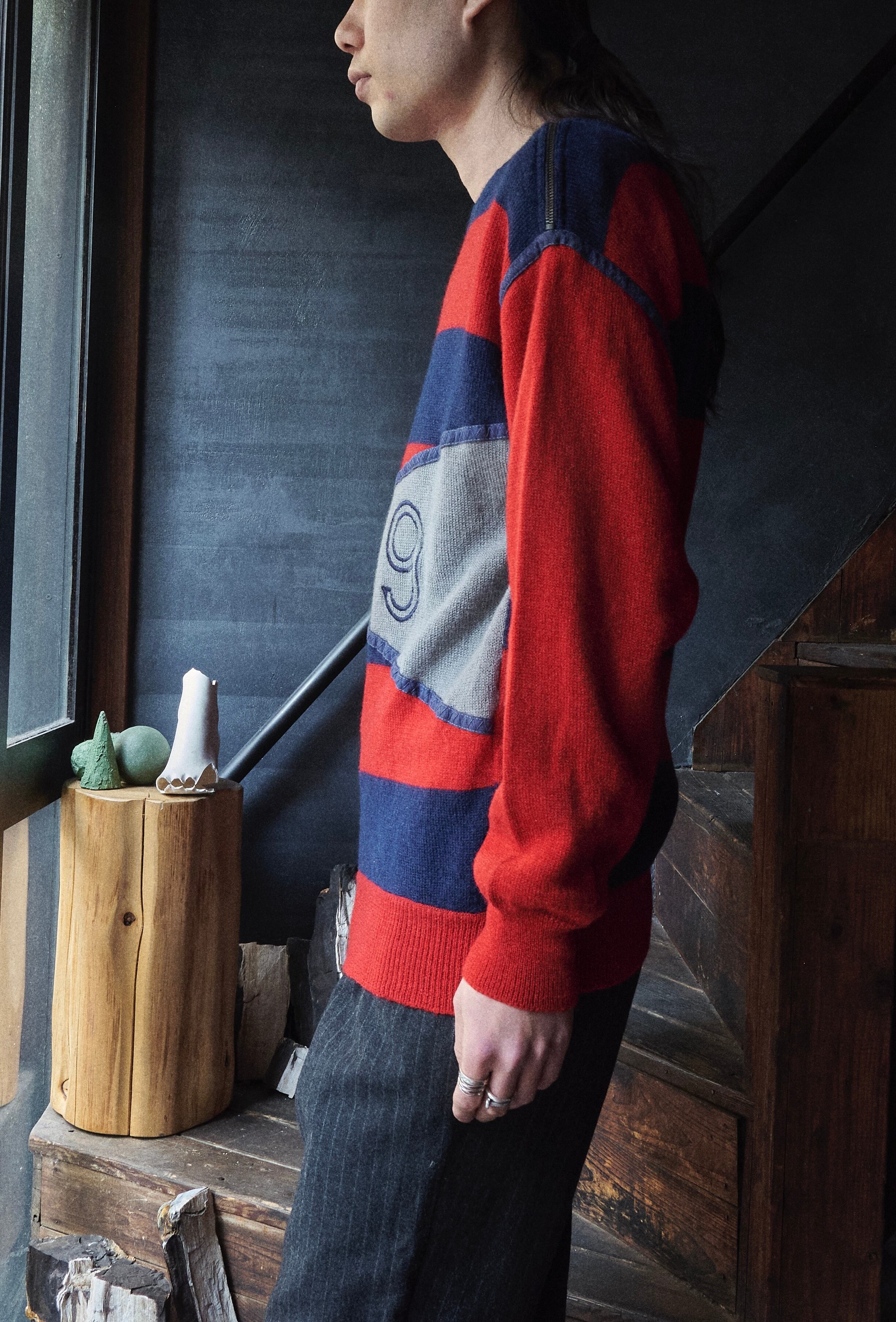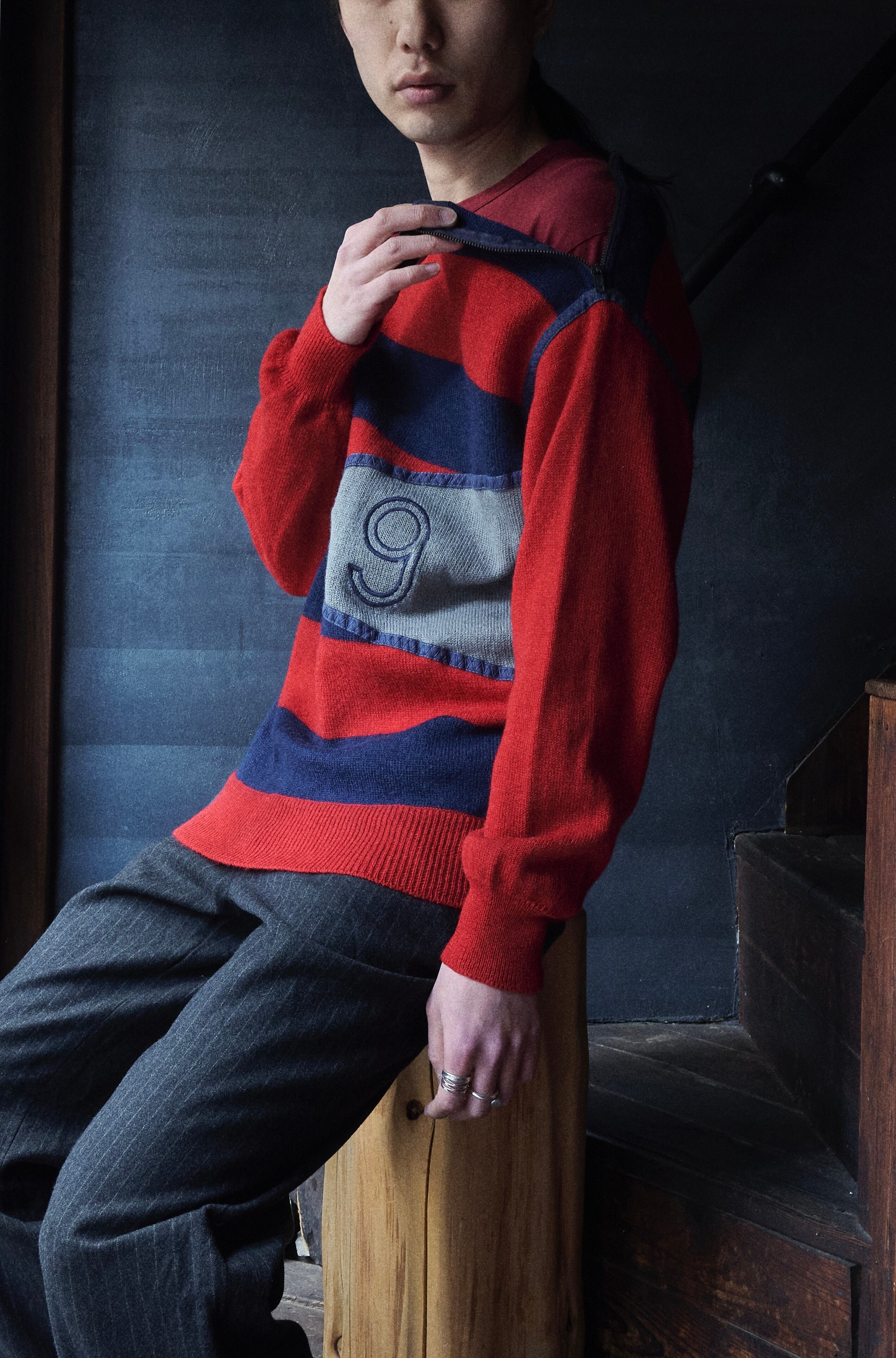 こちらのニットも斜めジップにボーダーデザイン。