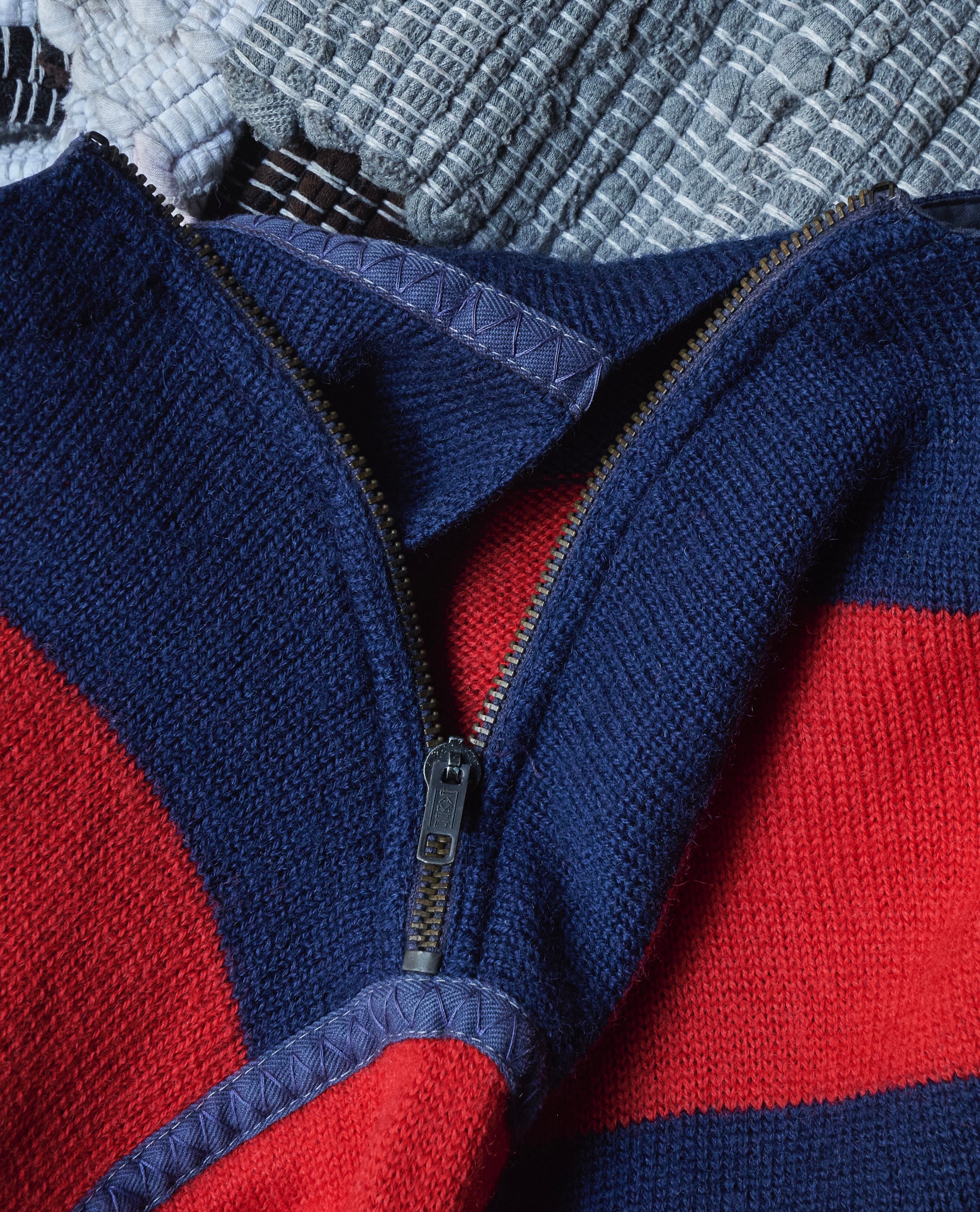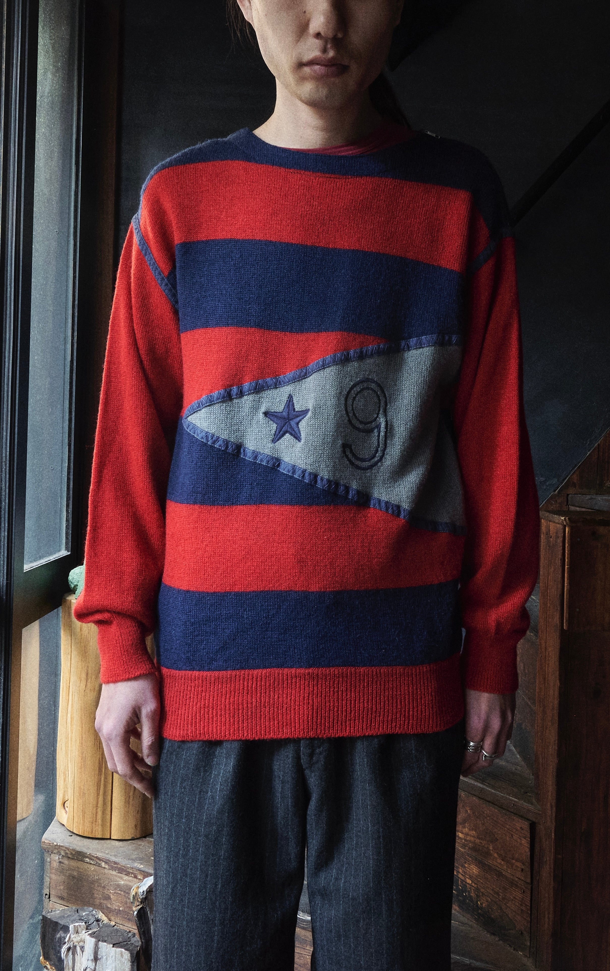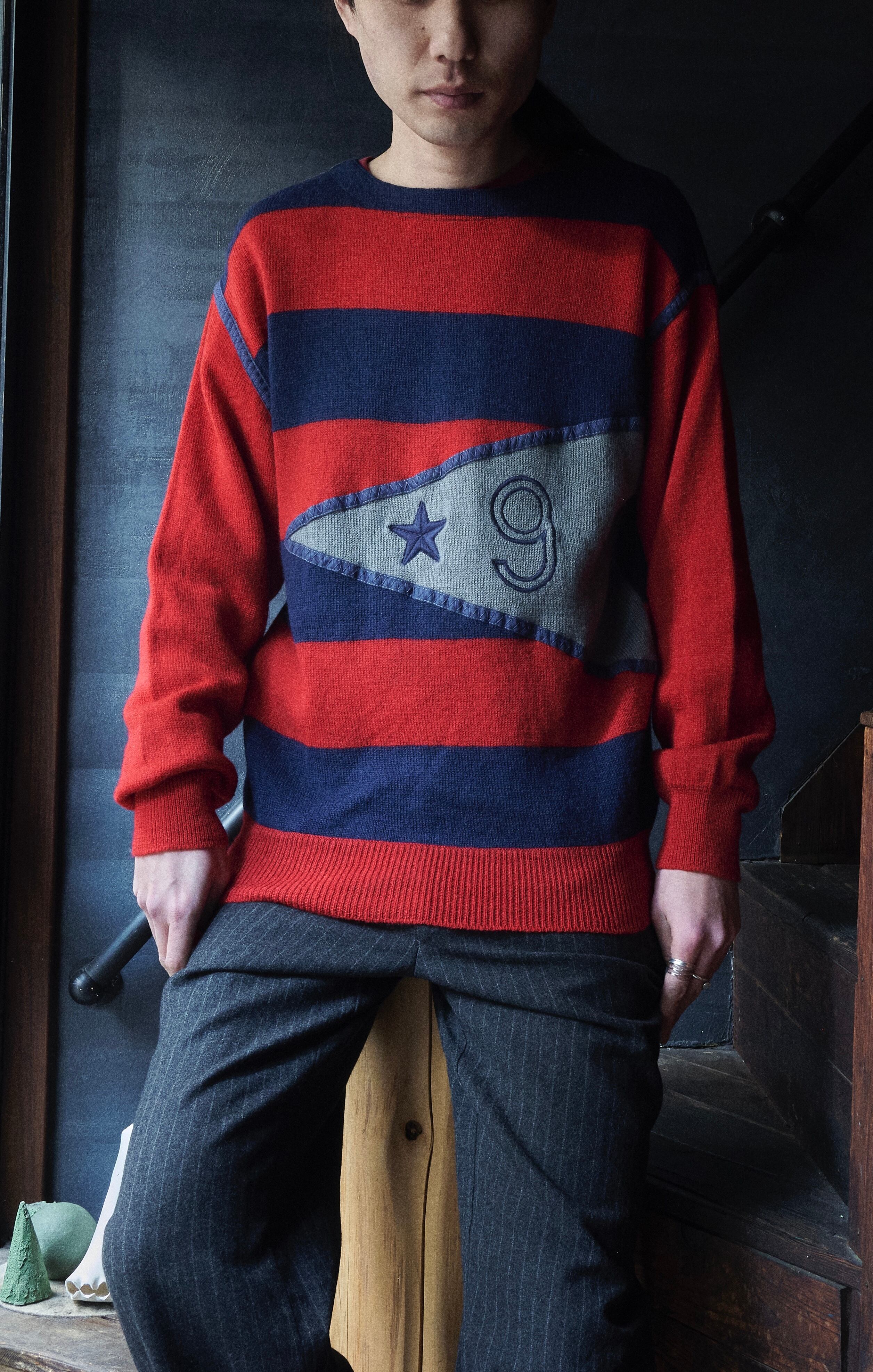 こちらのニットも斜めジップにボーダーデザイン。
