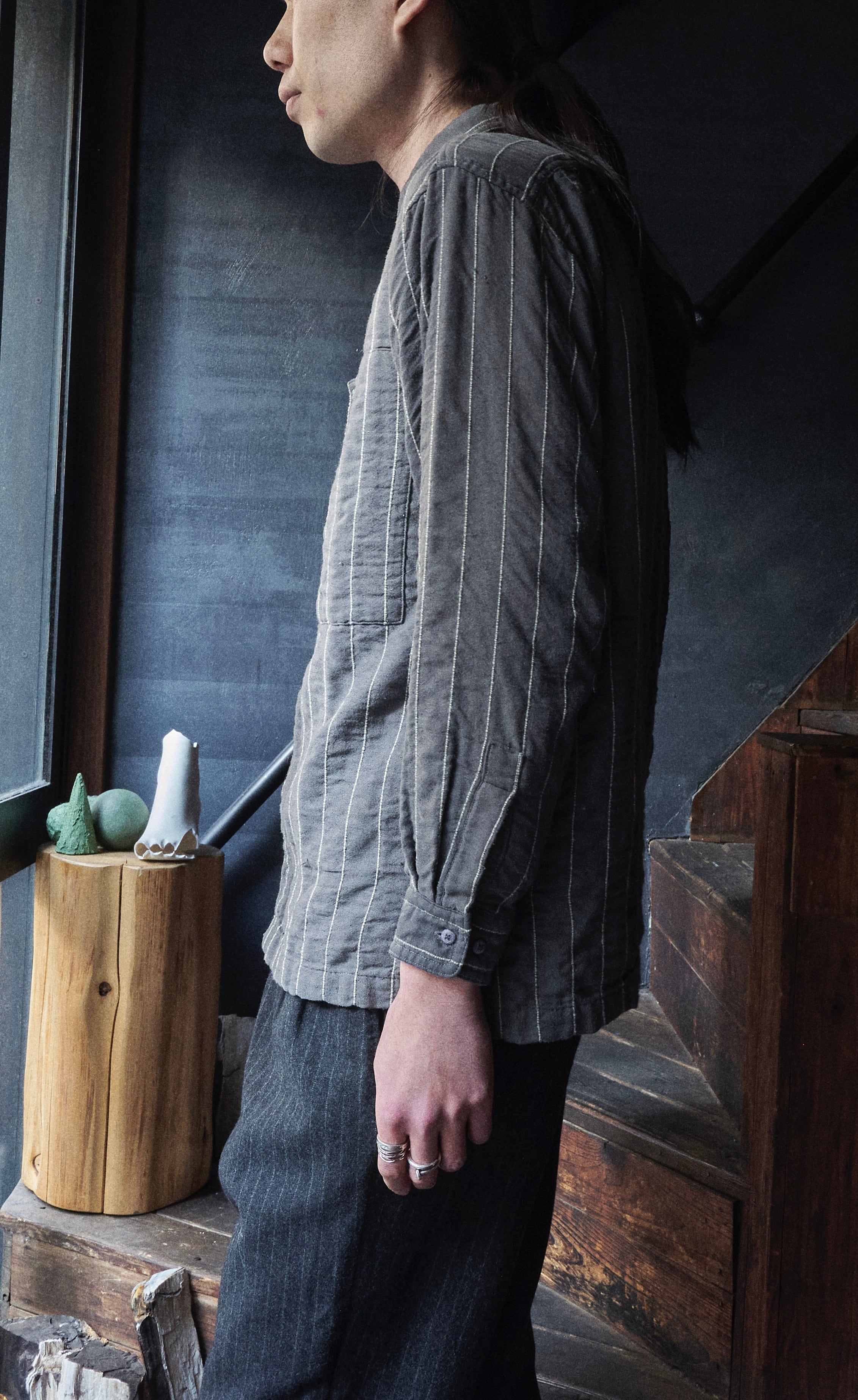 裏側の生地を見ても美しいストライプが垣間見え。