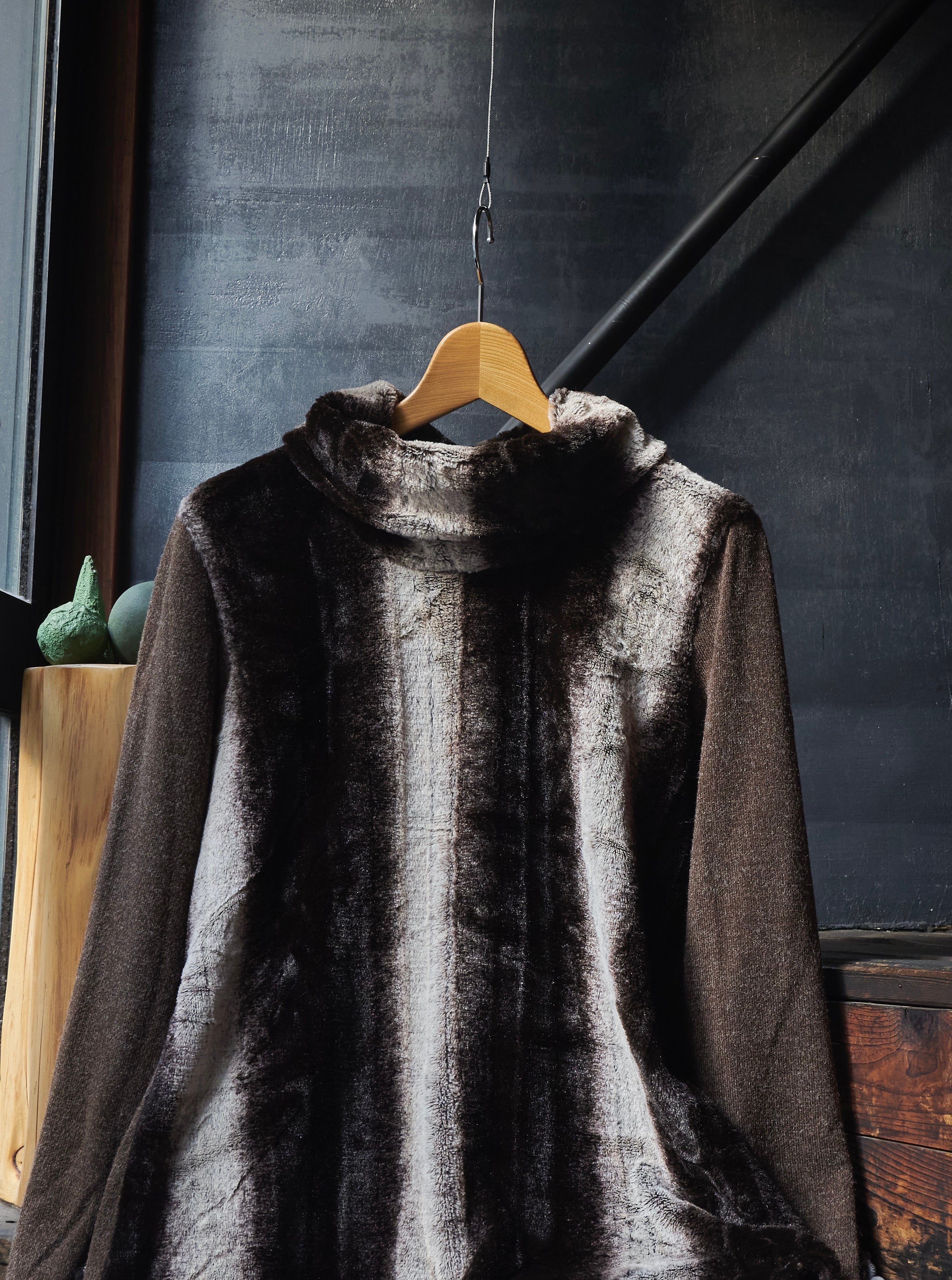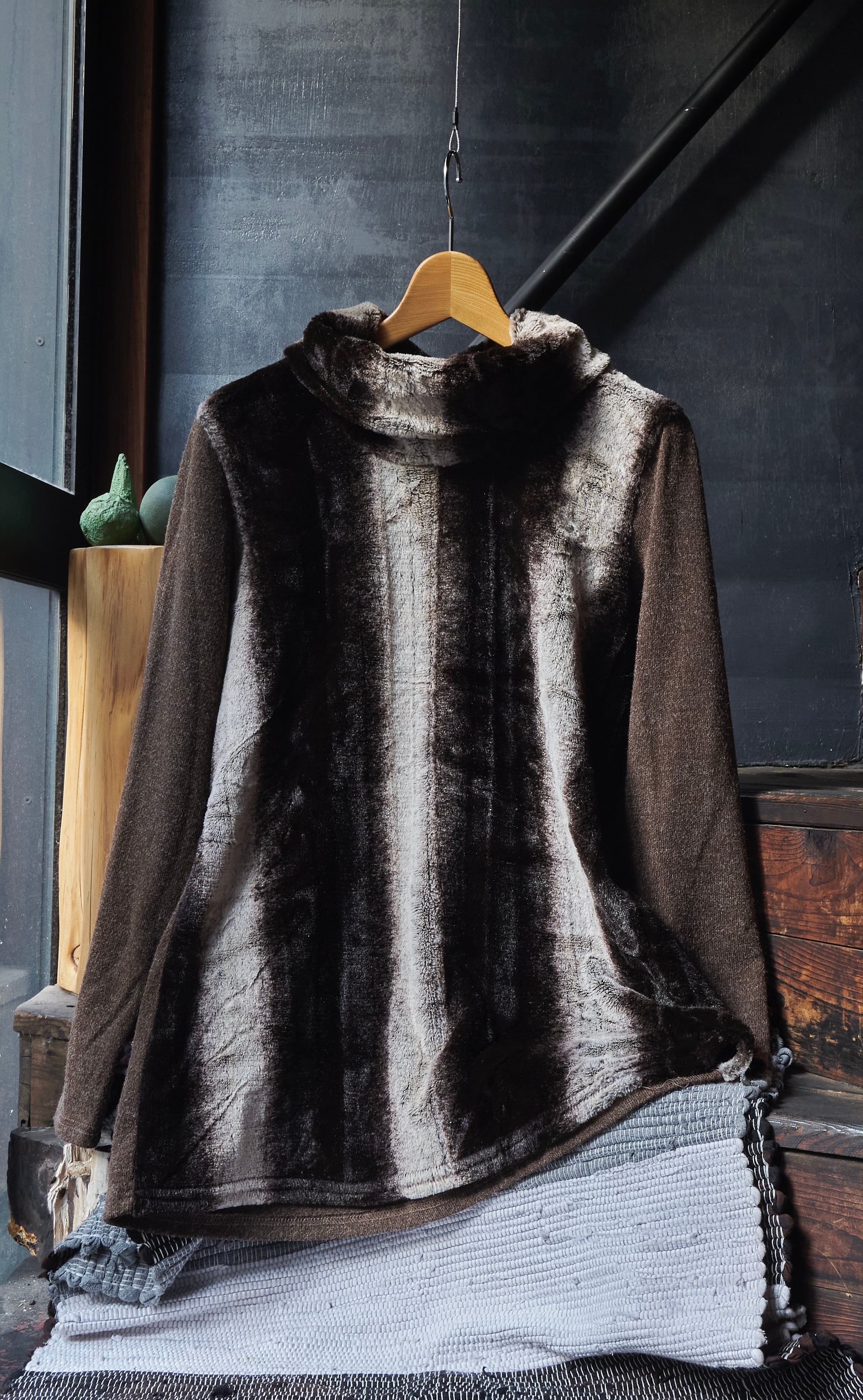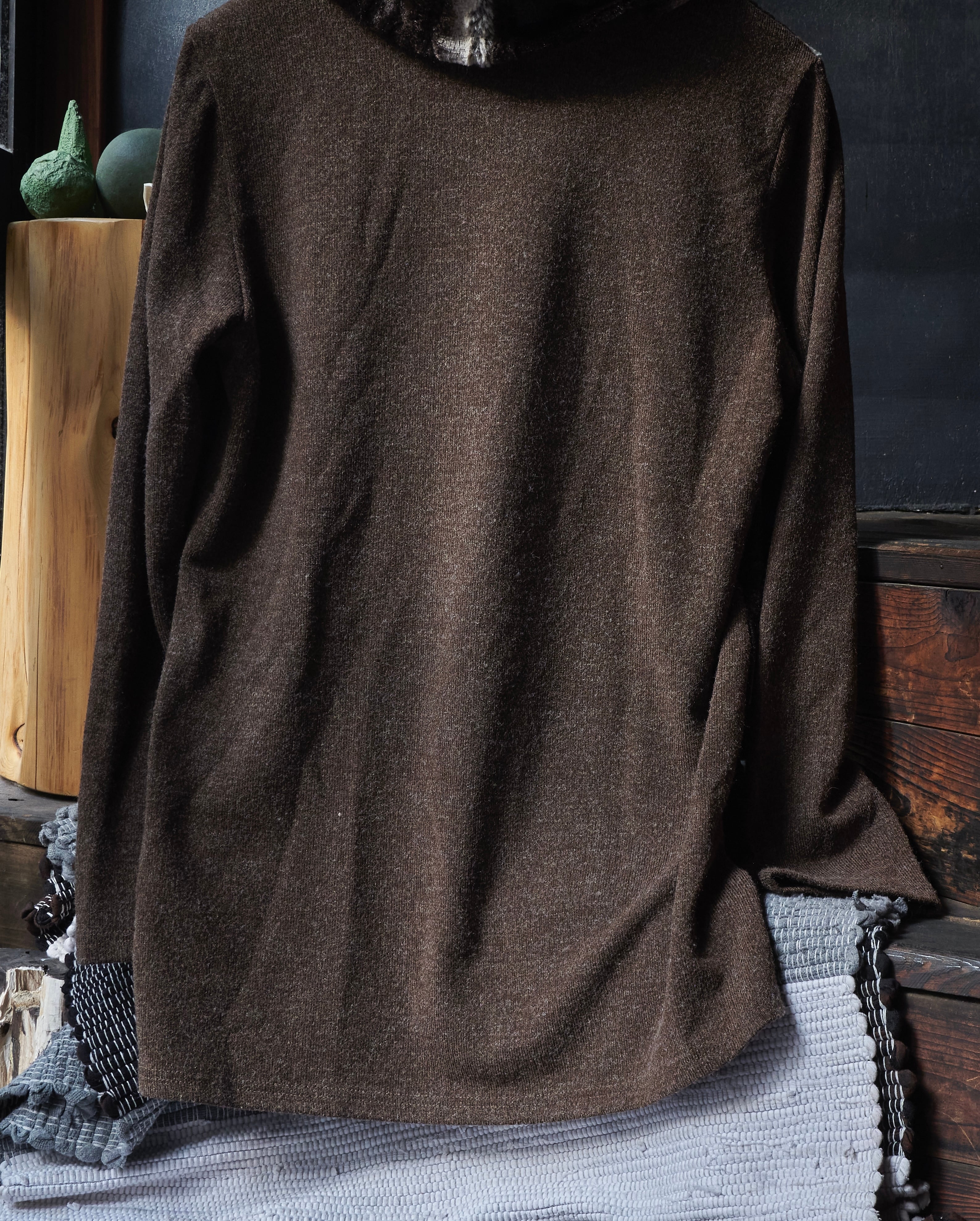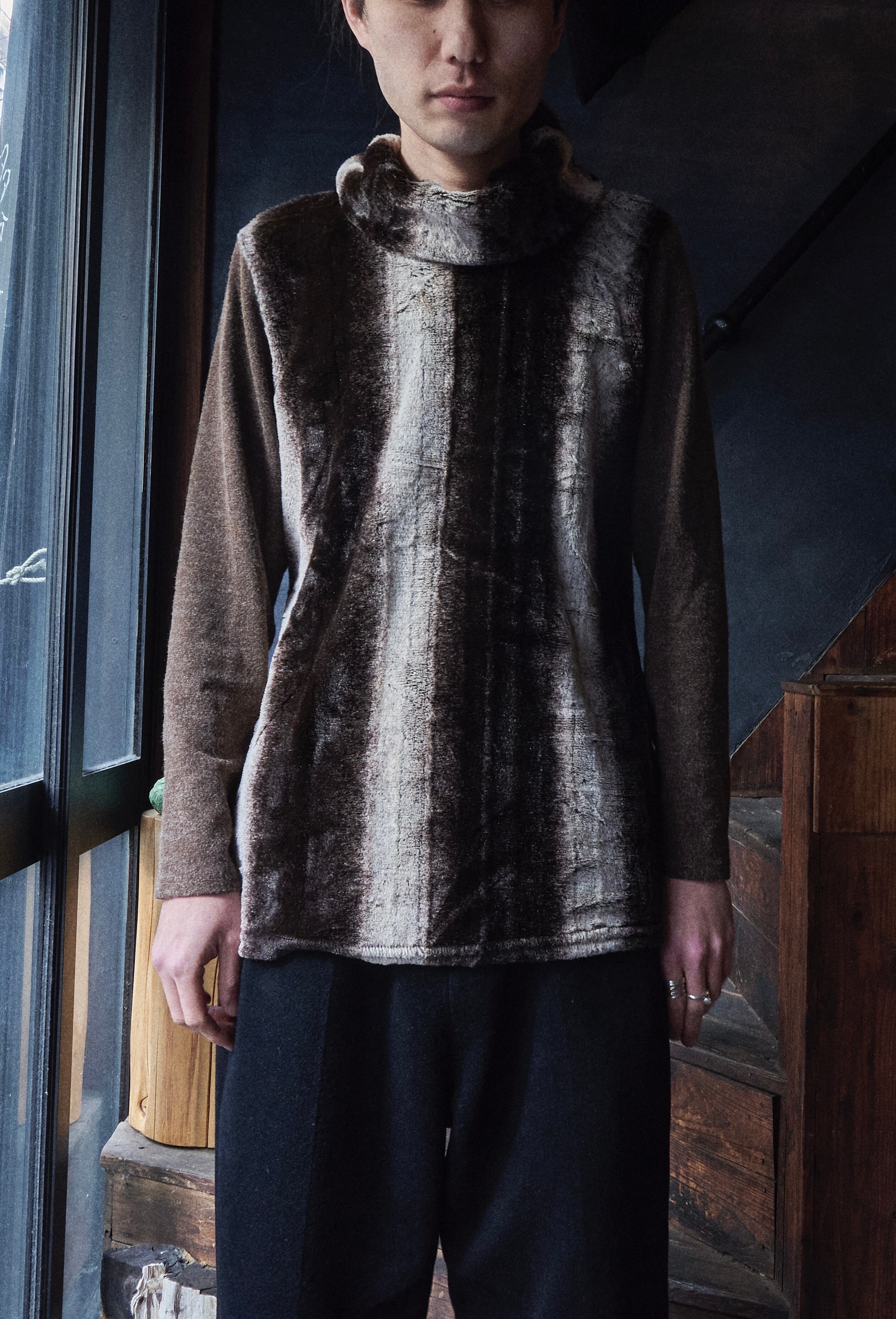 US 2000s Turtleneck switching boa knit shirs