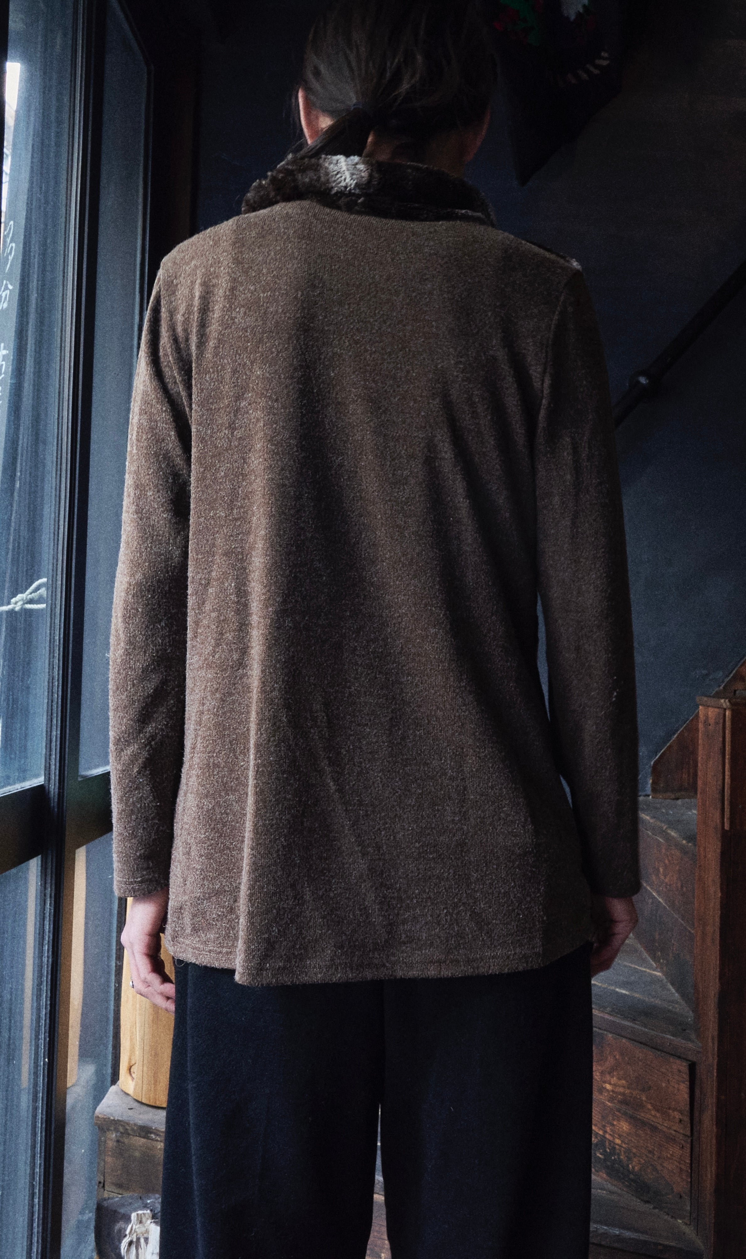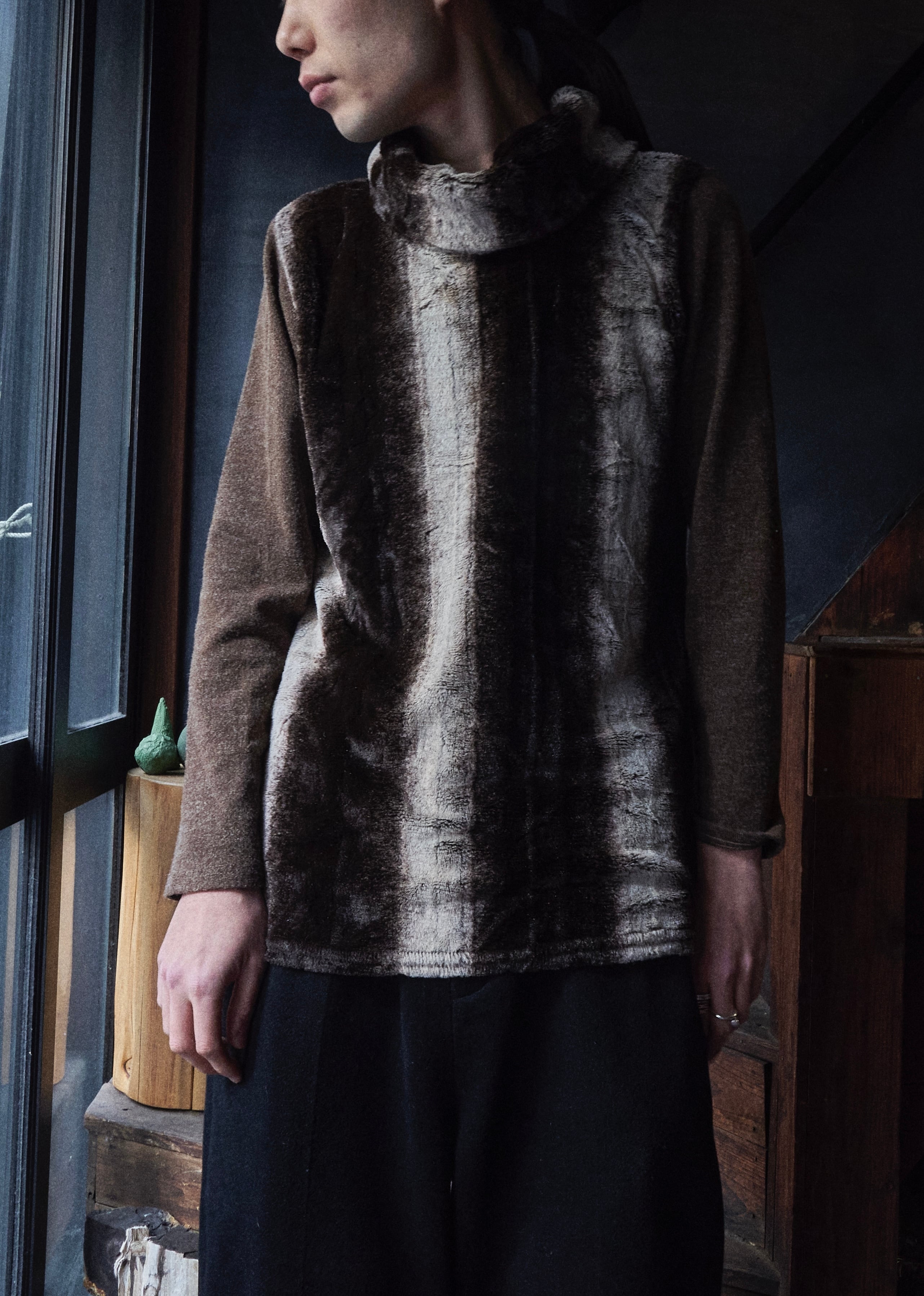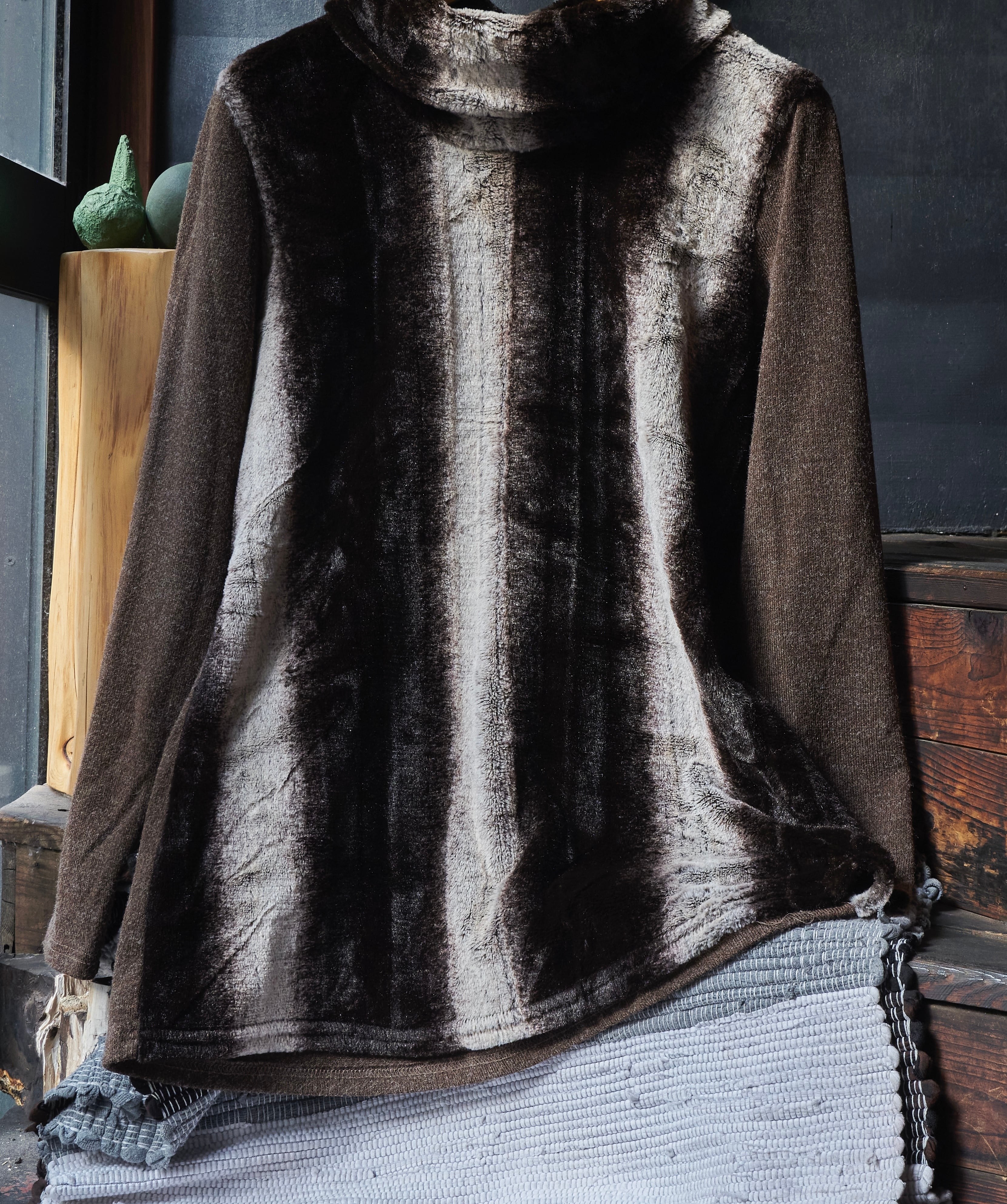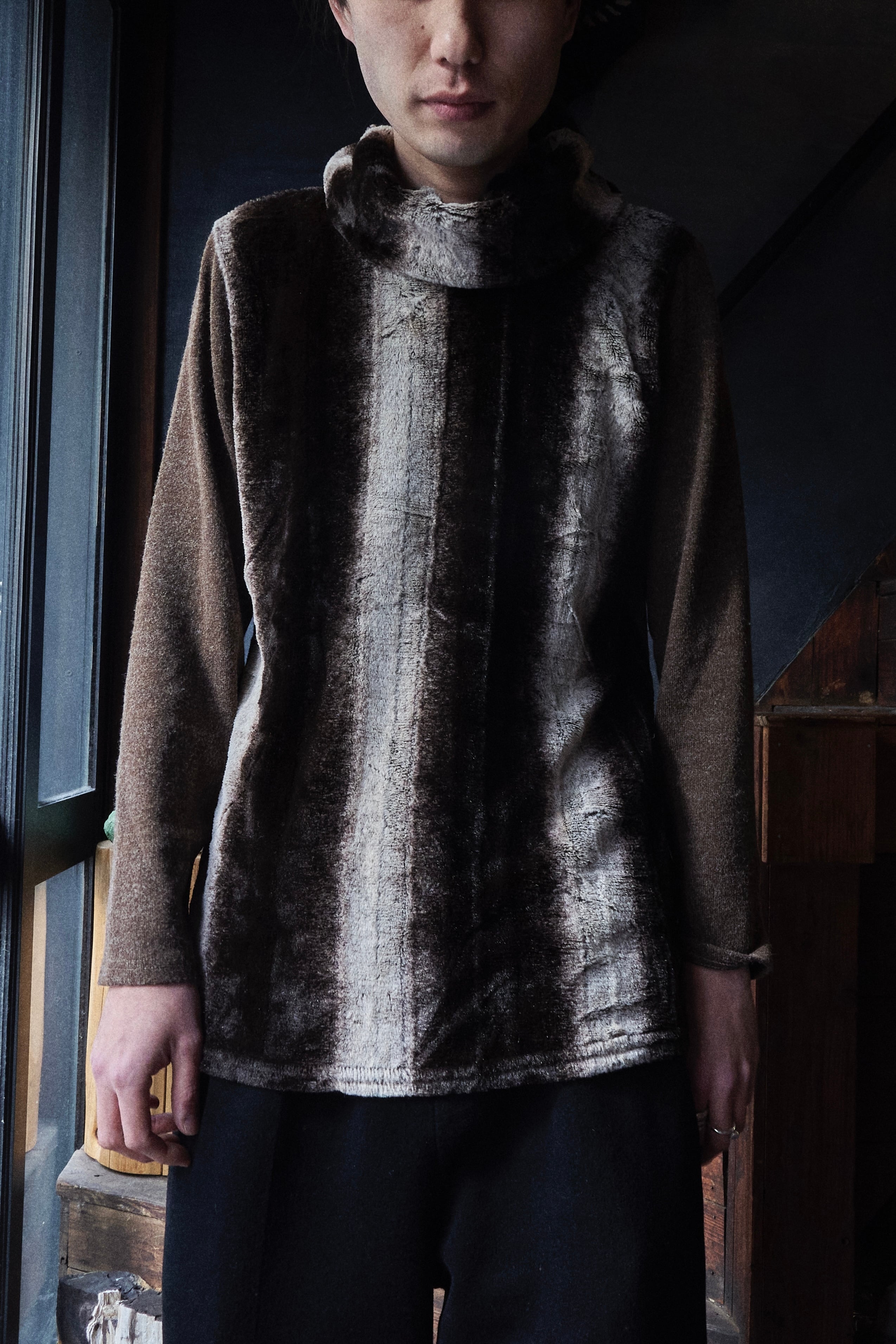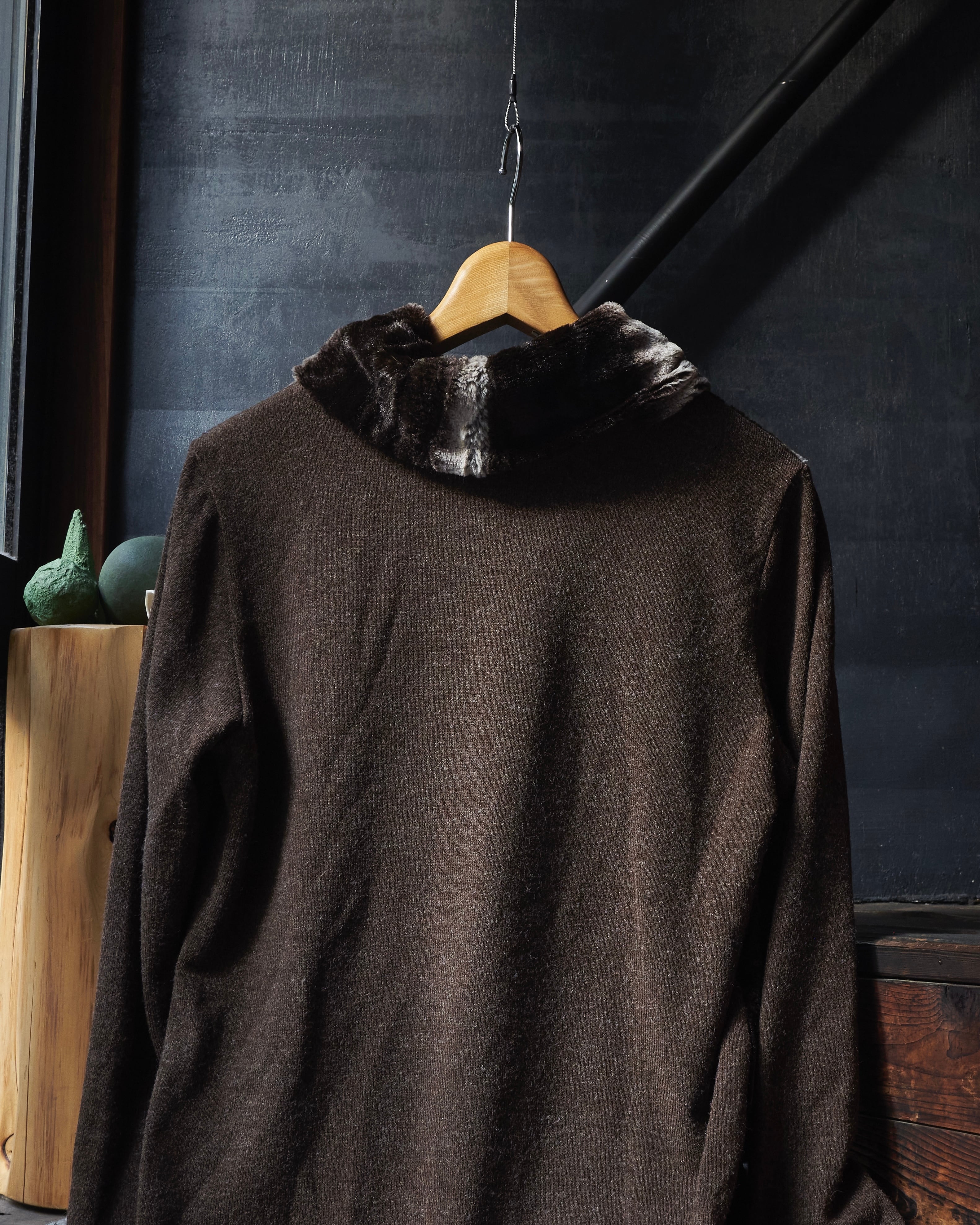 US 2000s Turtleneck switching boa knit shirs
