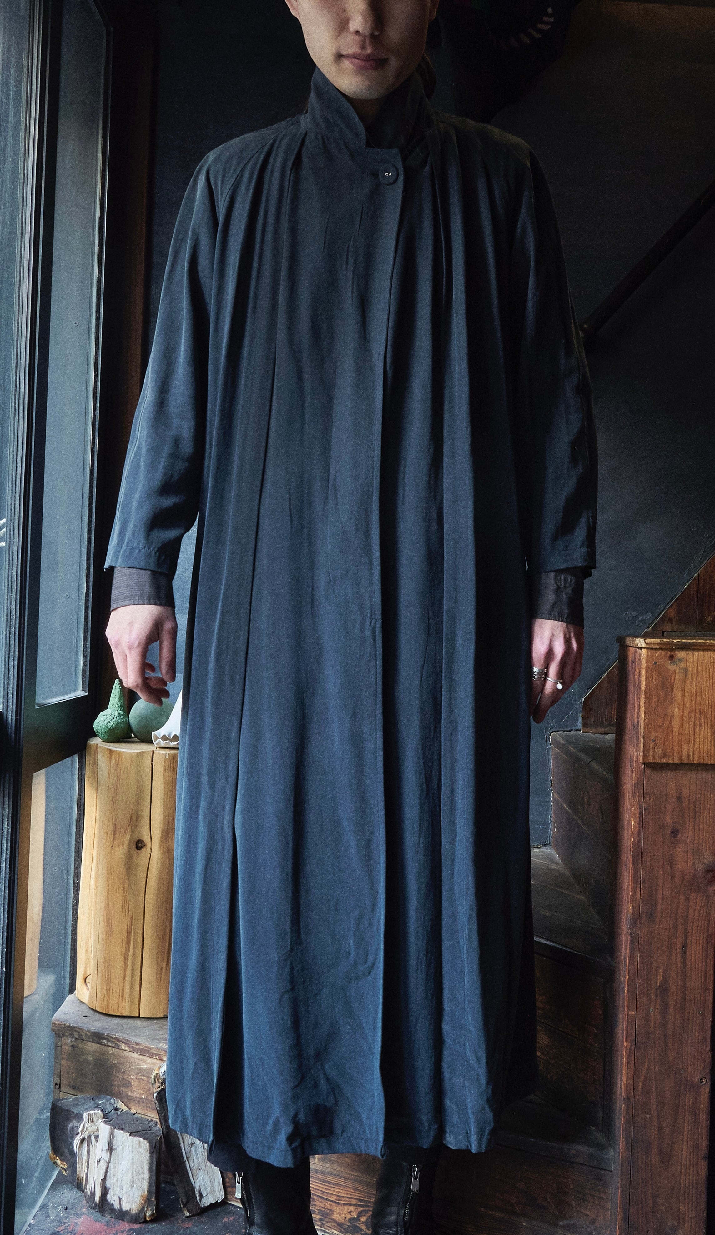 見た事ないくらいドレープが美しいアレグリのロングシャツのようなスプリングコート。