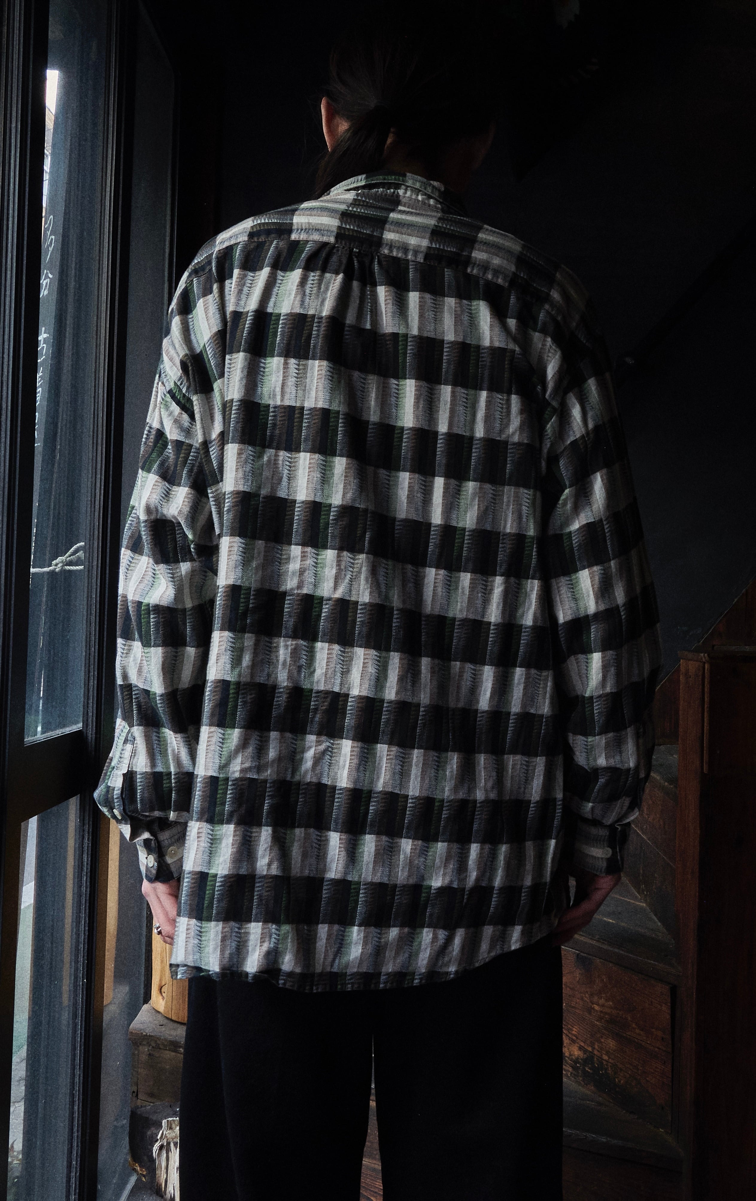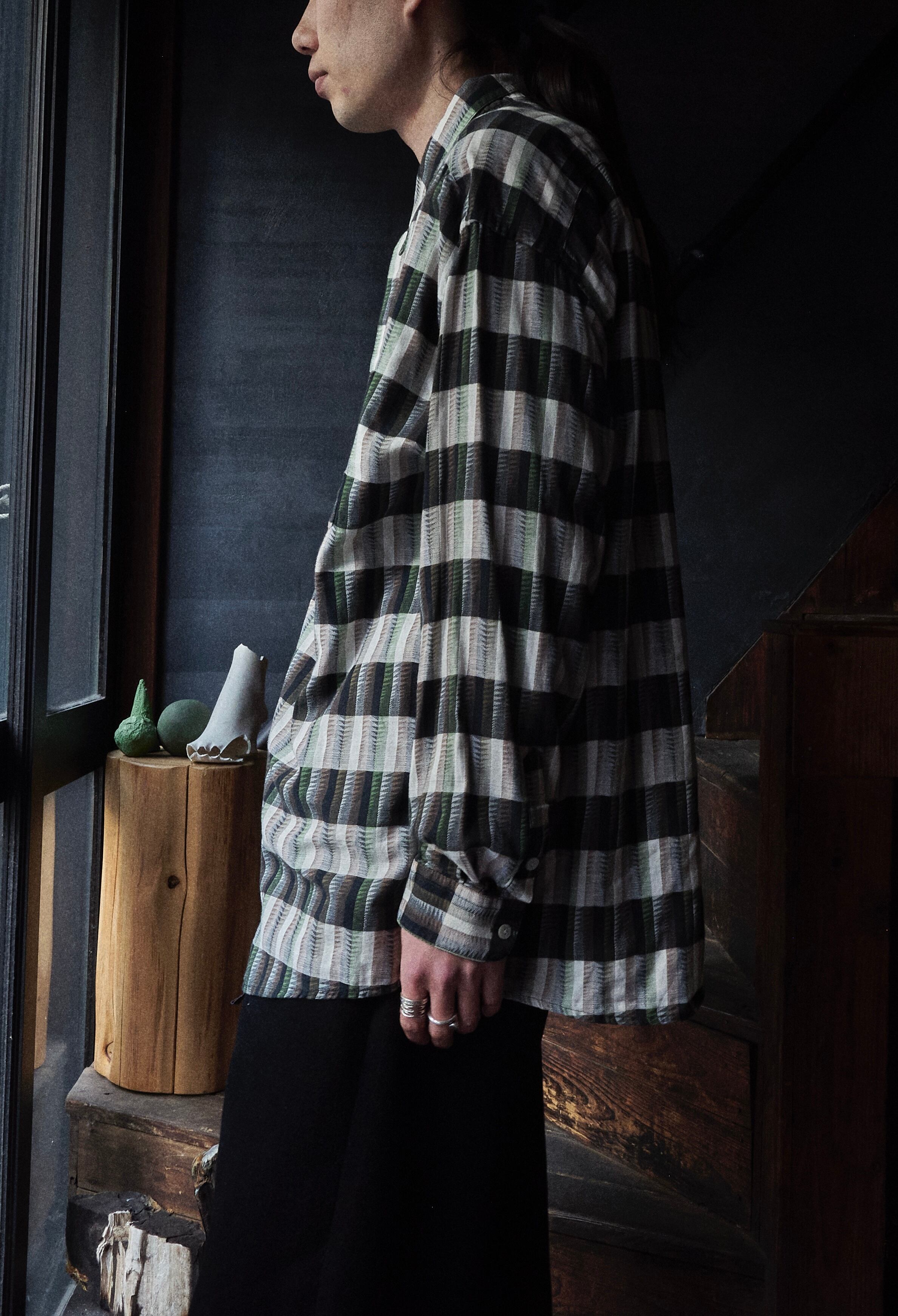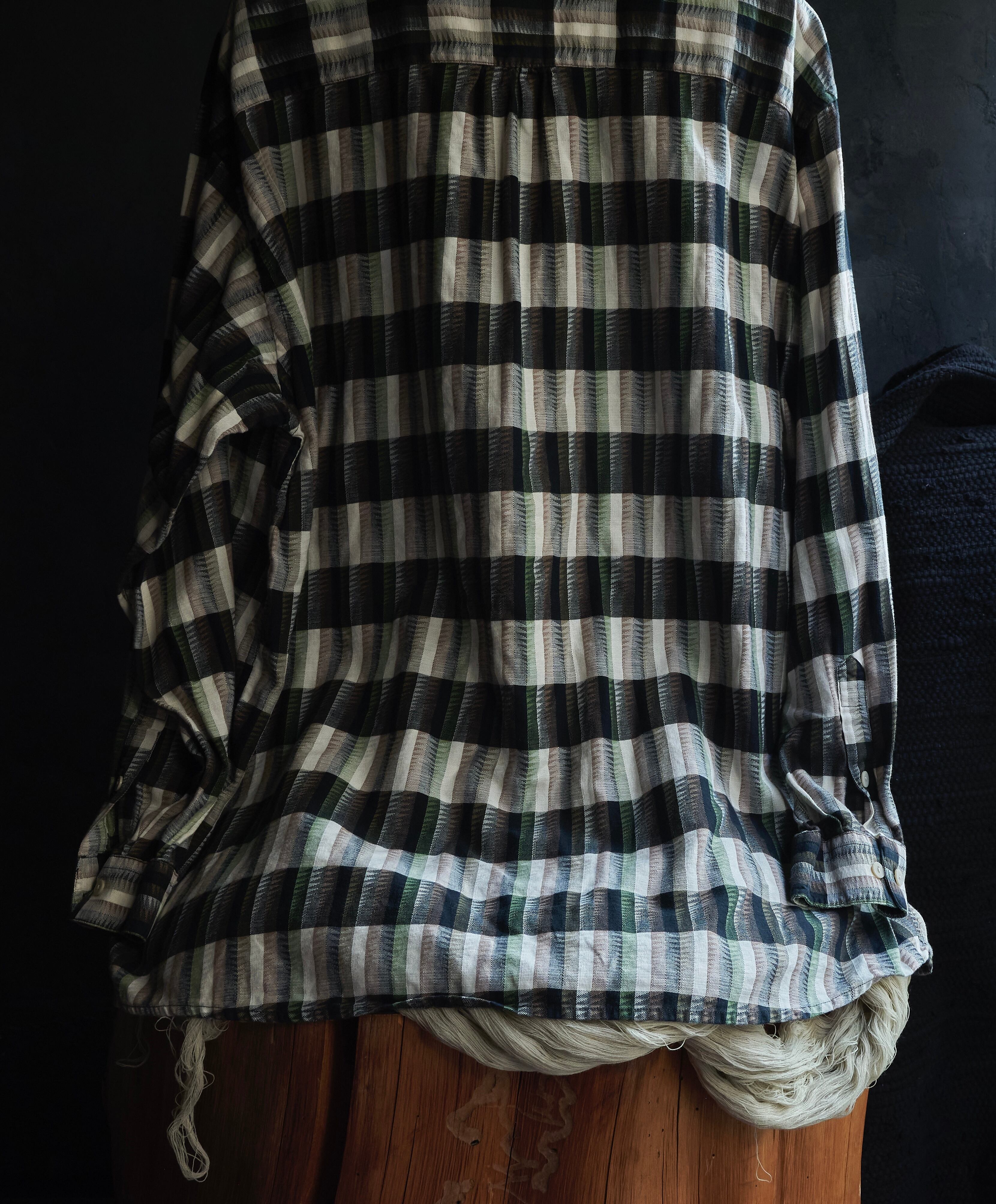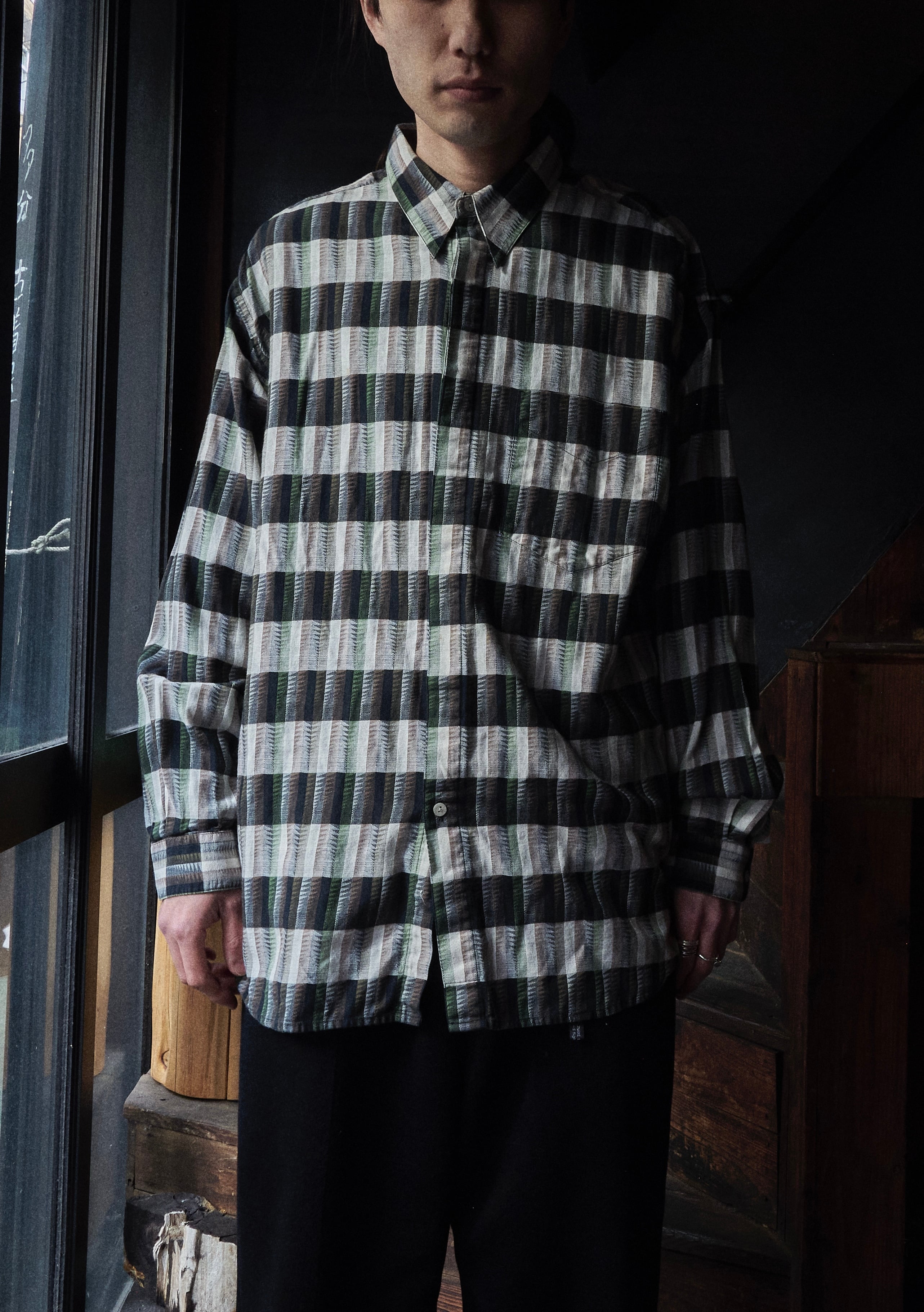 フロントデザインは比翼で少しドレス要素も混ざるようなシャツ。