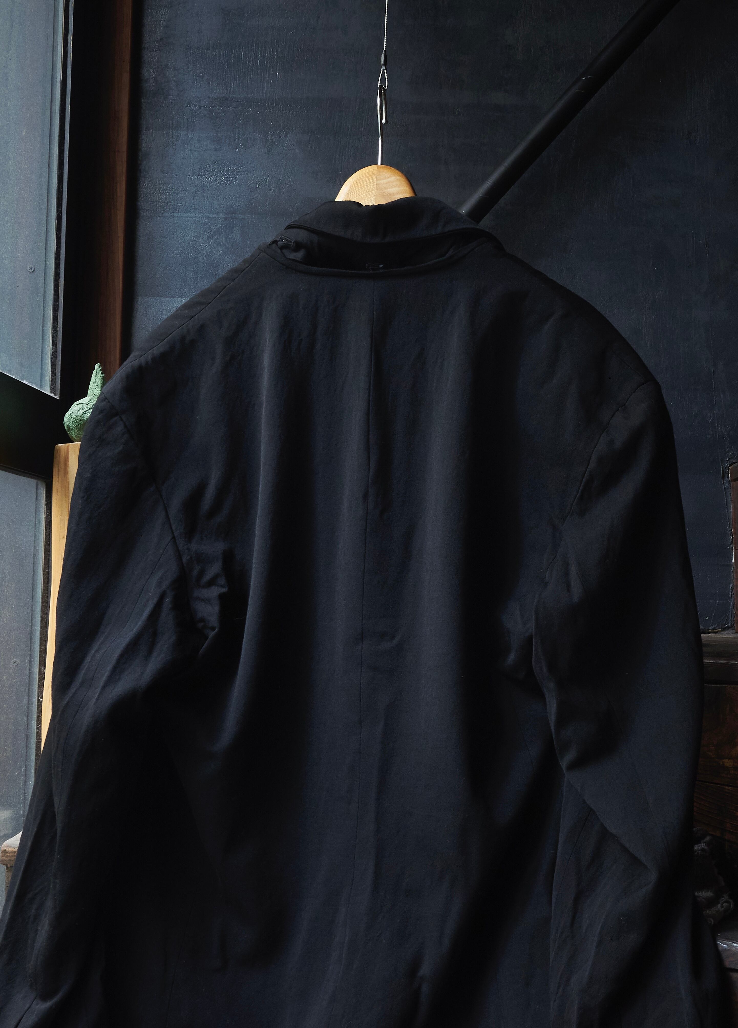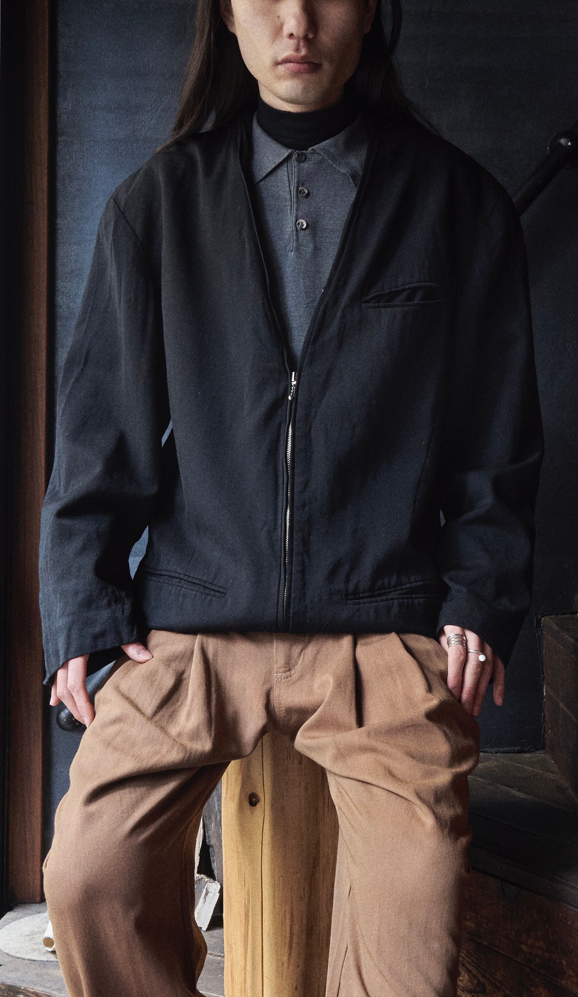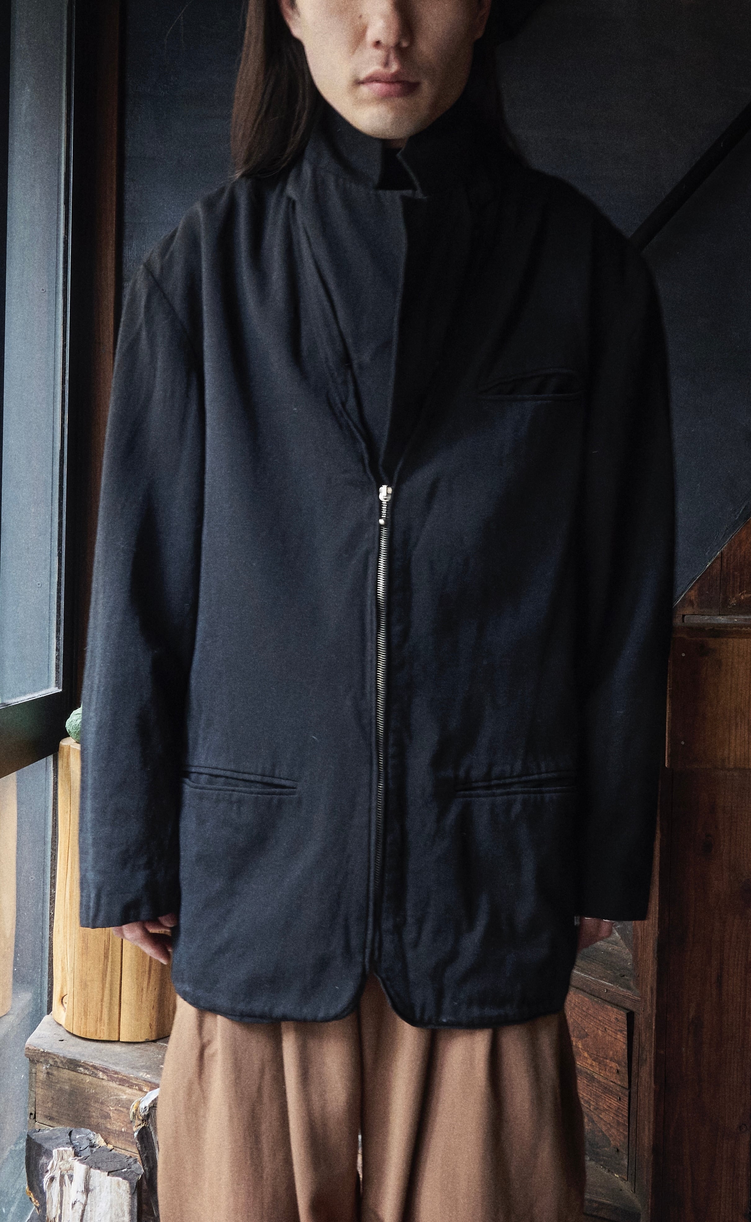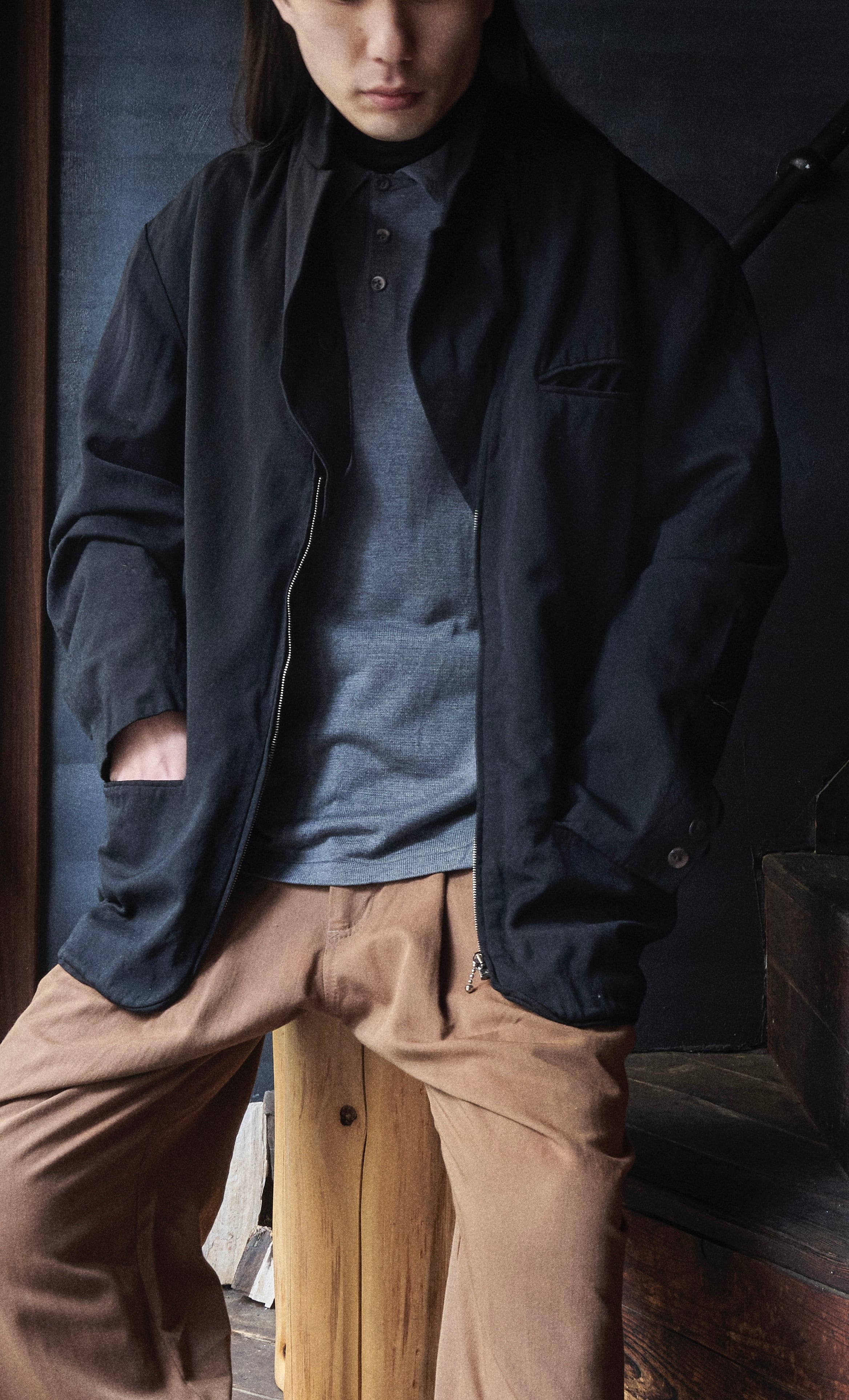 そしてネックは普通のラペルタイプとして着て良し。ラペルをボタンで取り外すとノーカラーにもなる。その着方も間違いなく良し。ラペルを立ててチンストラップの形も男心くすぐる渋い美学。