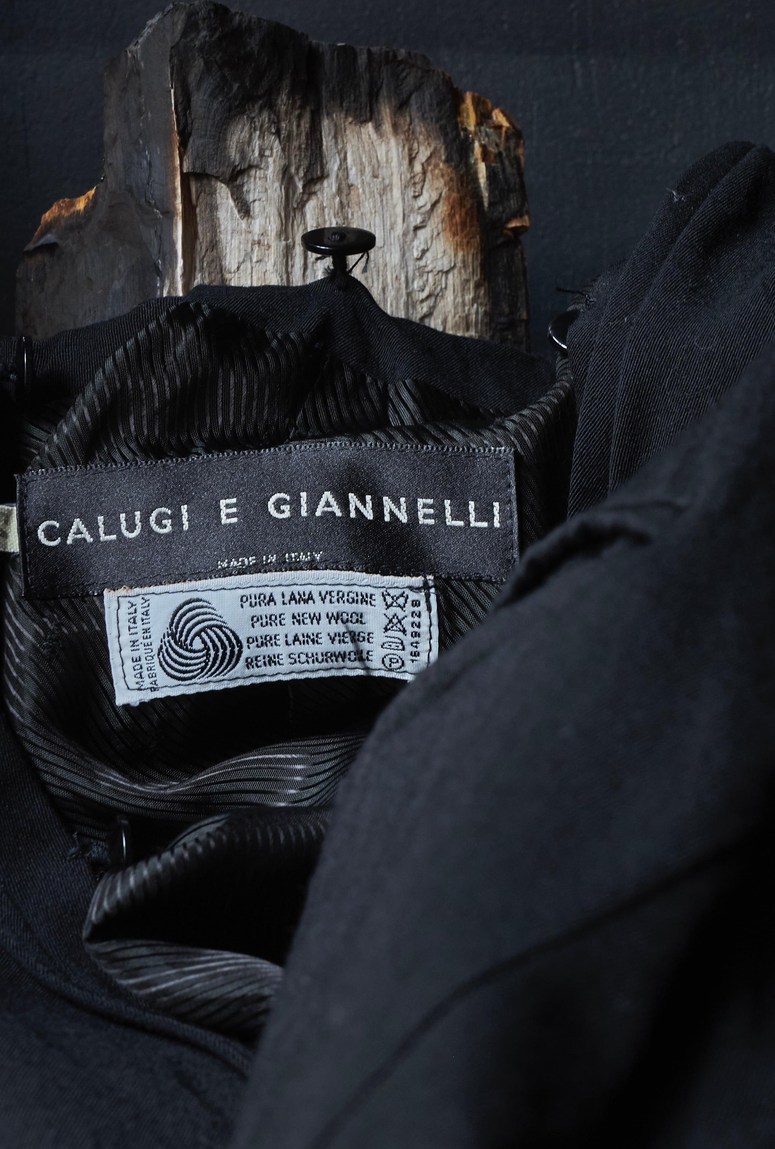 CALUGI E GIANNELLI Wool gabardine fabric 2-way collar over tailored jacket