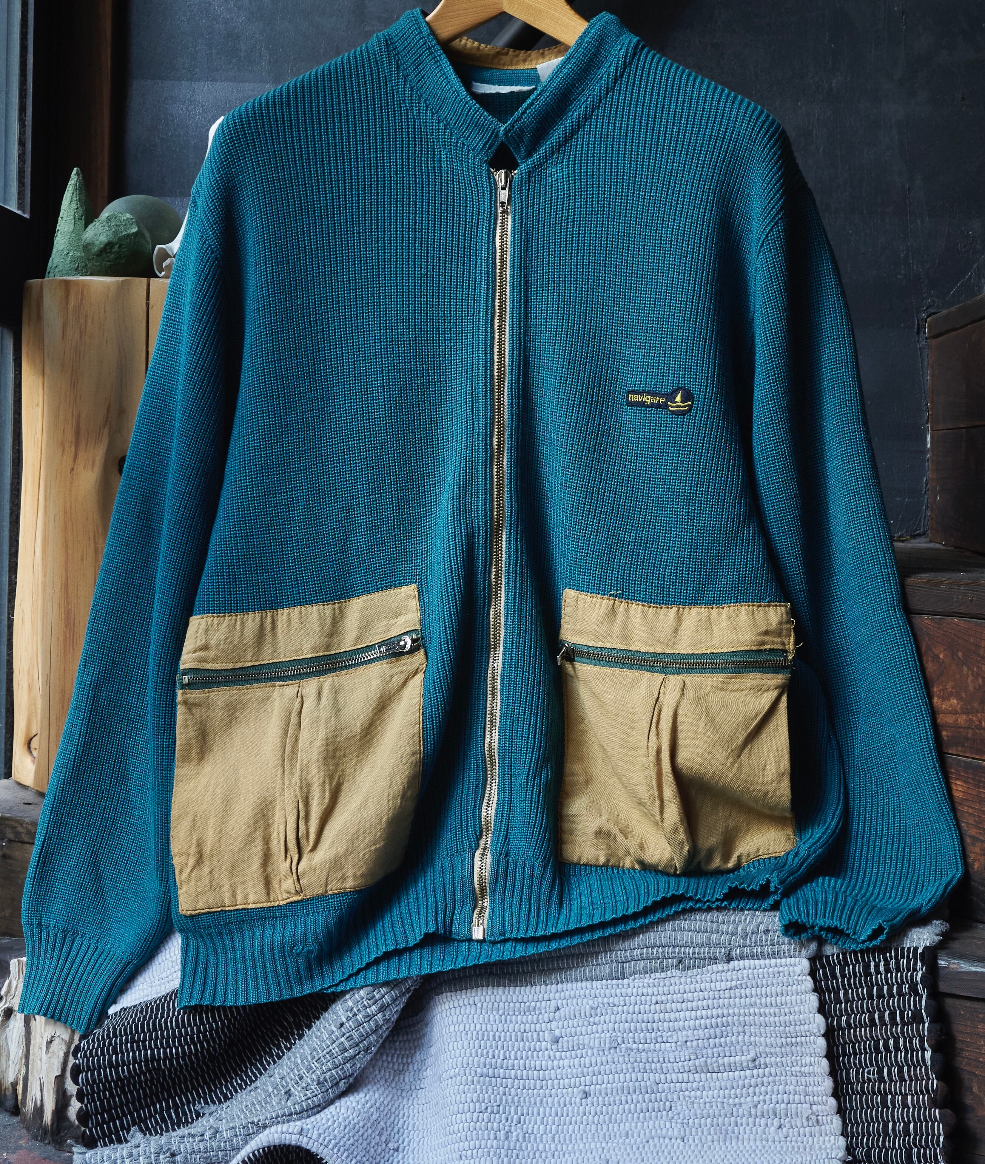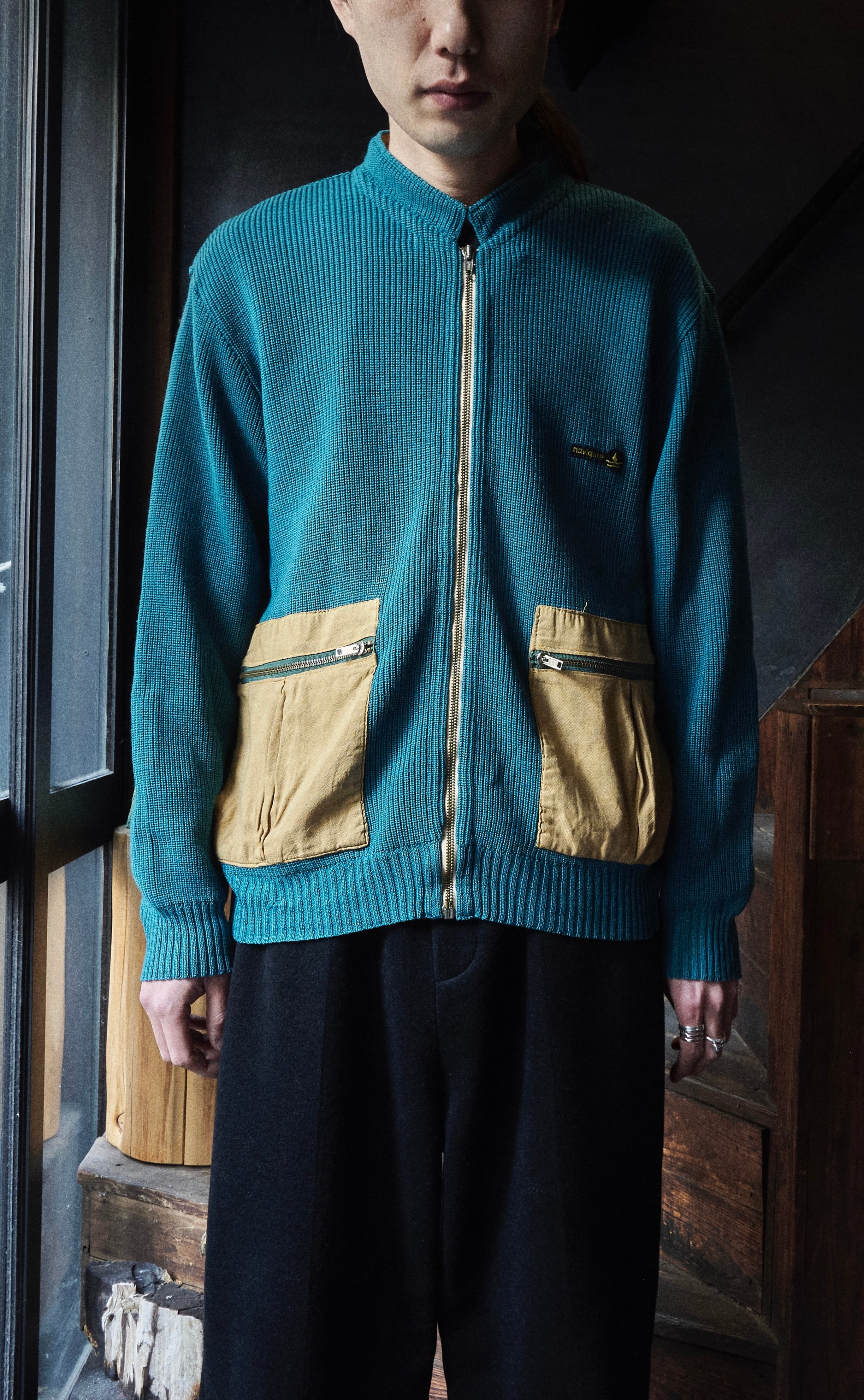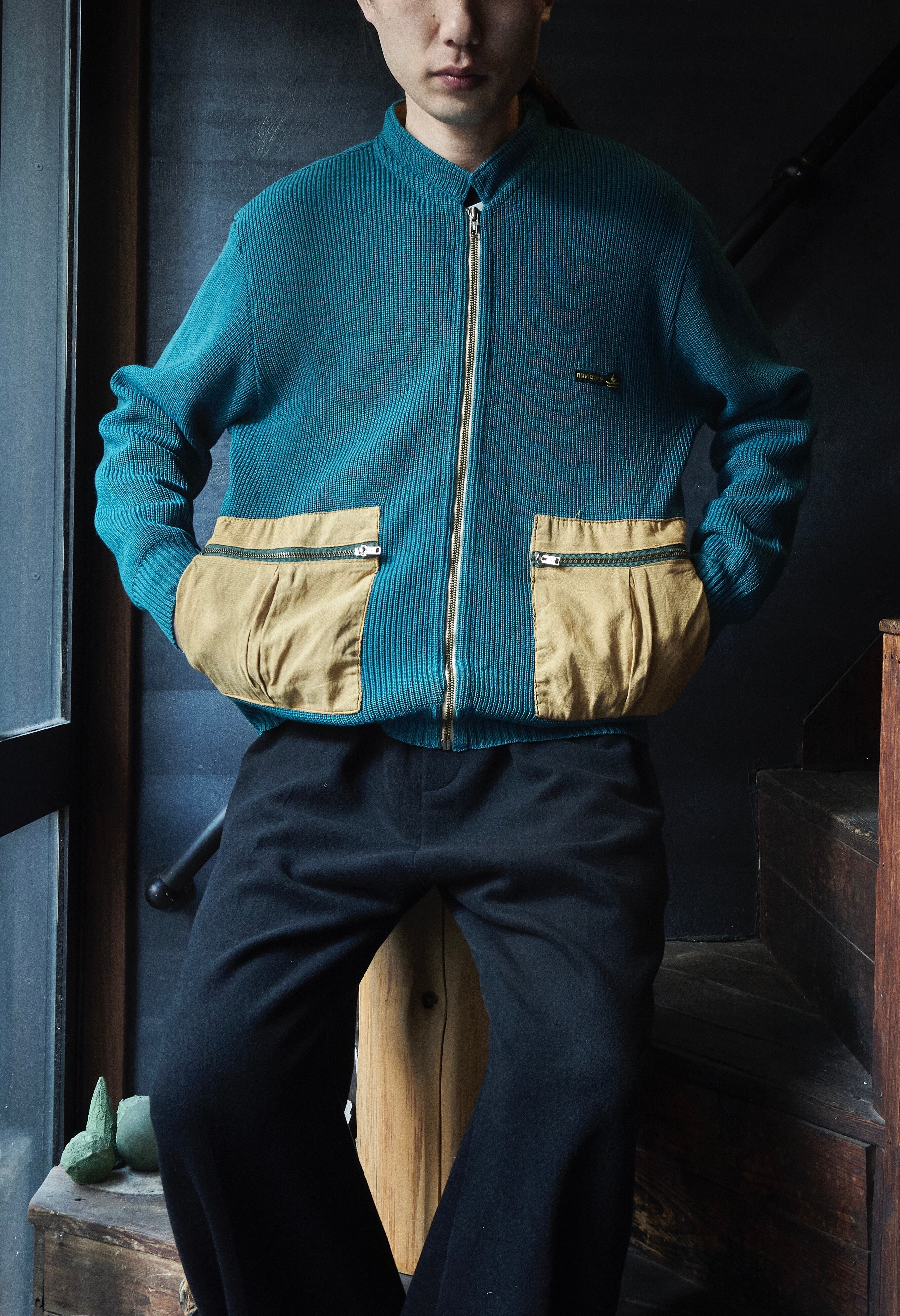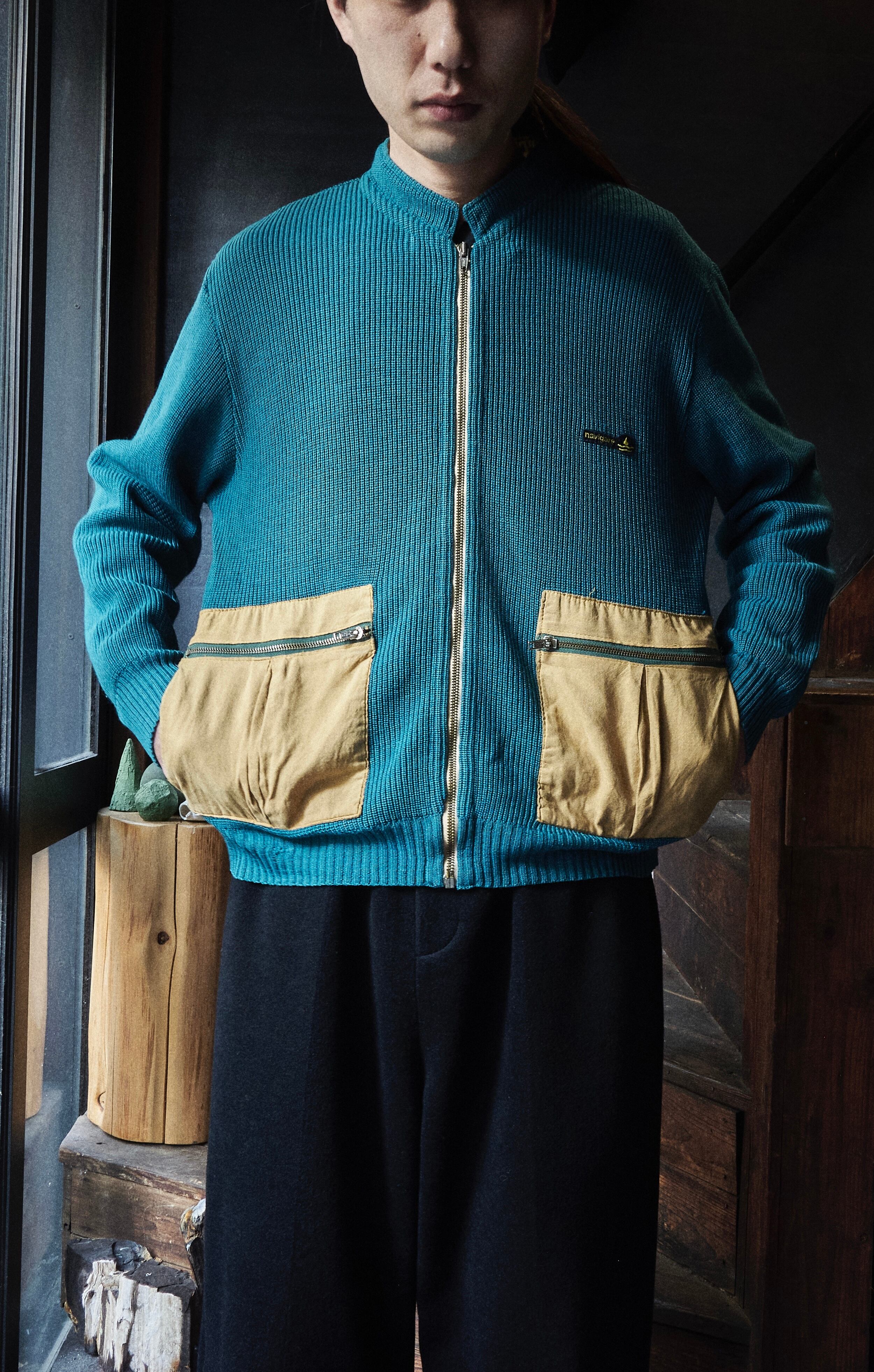ヨーロッパ80sらしい少しだけ変化球ありながら、品質良いウールアクリルを使用したジップアップニット。
