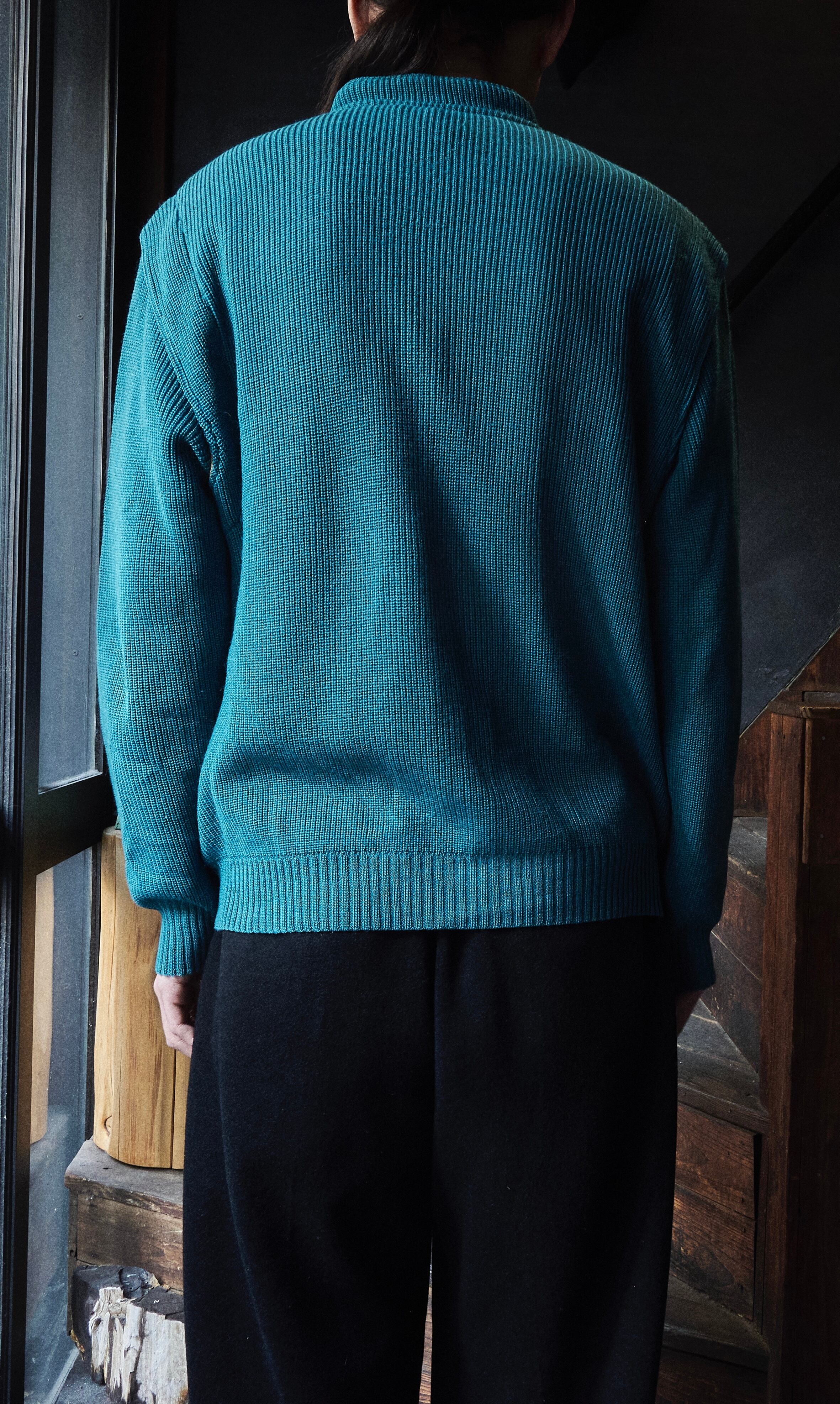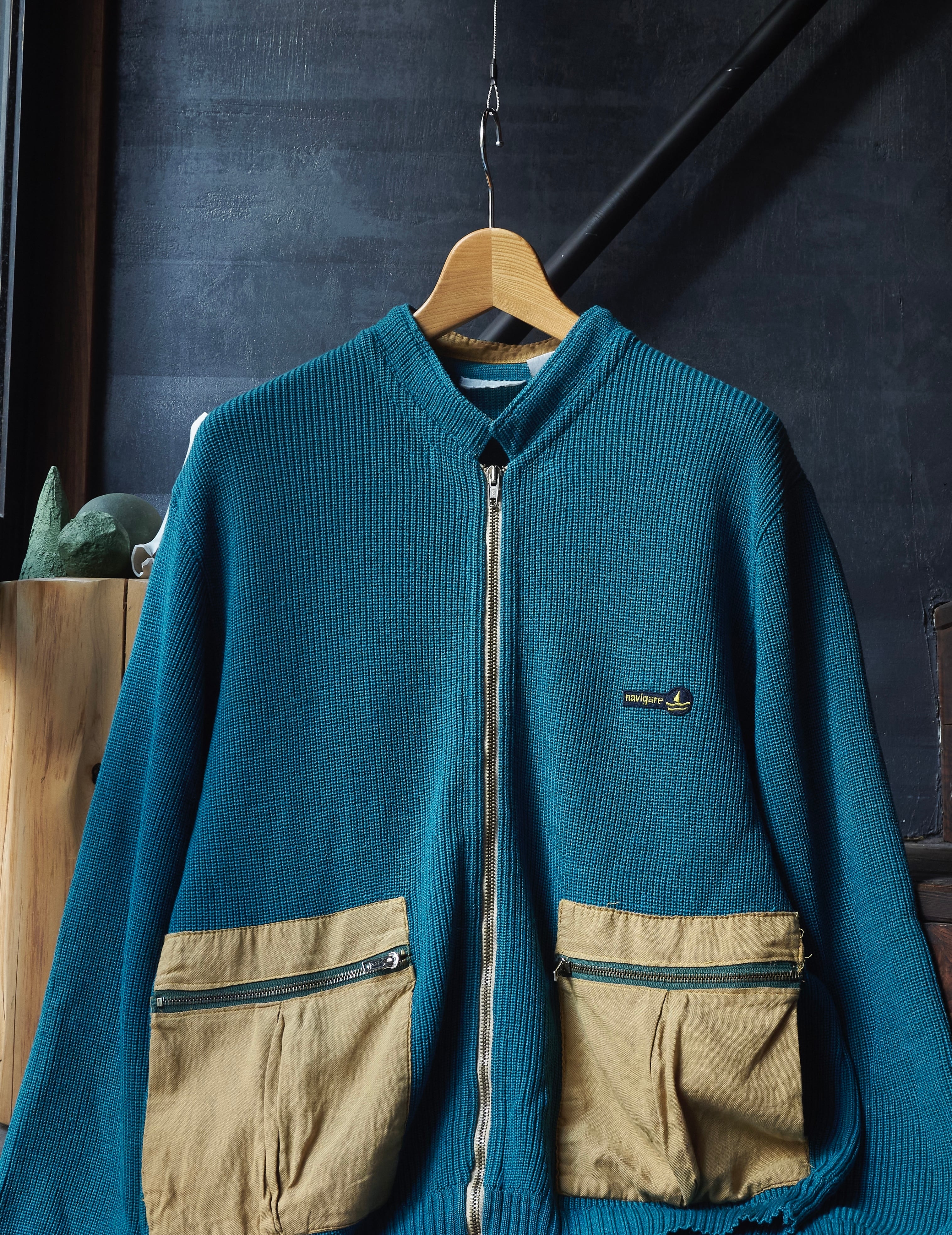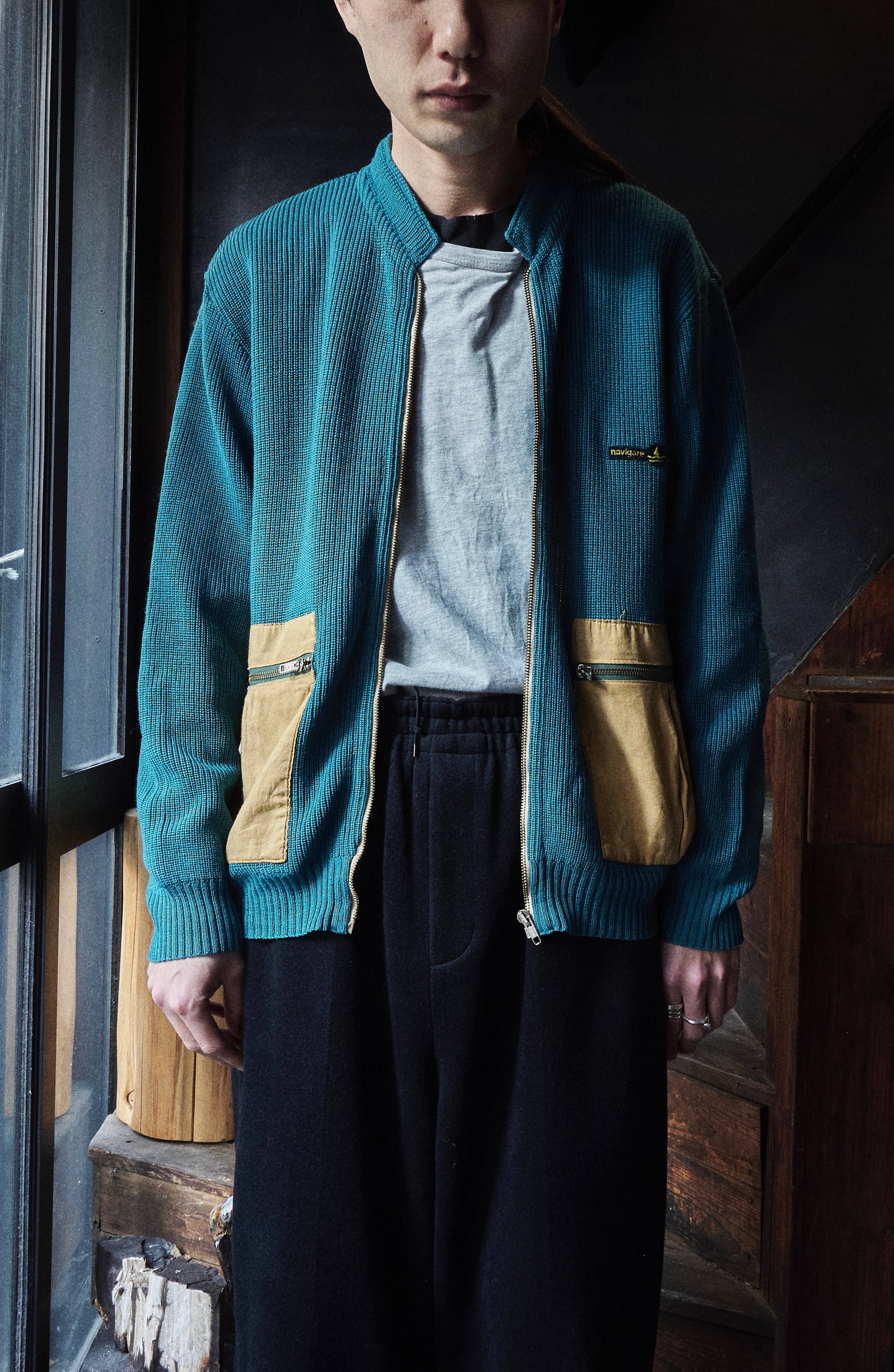 ヨーロッパ80sらしい少しだけ変化球ありながら、品質良いウールアクリルを使用したジップアップニット。