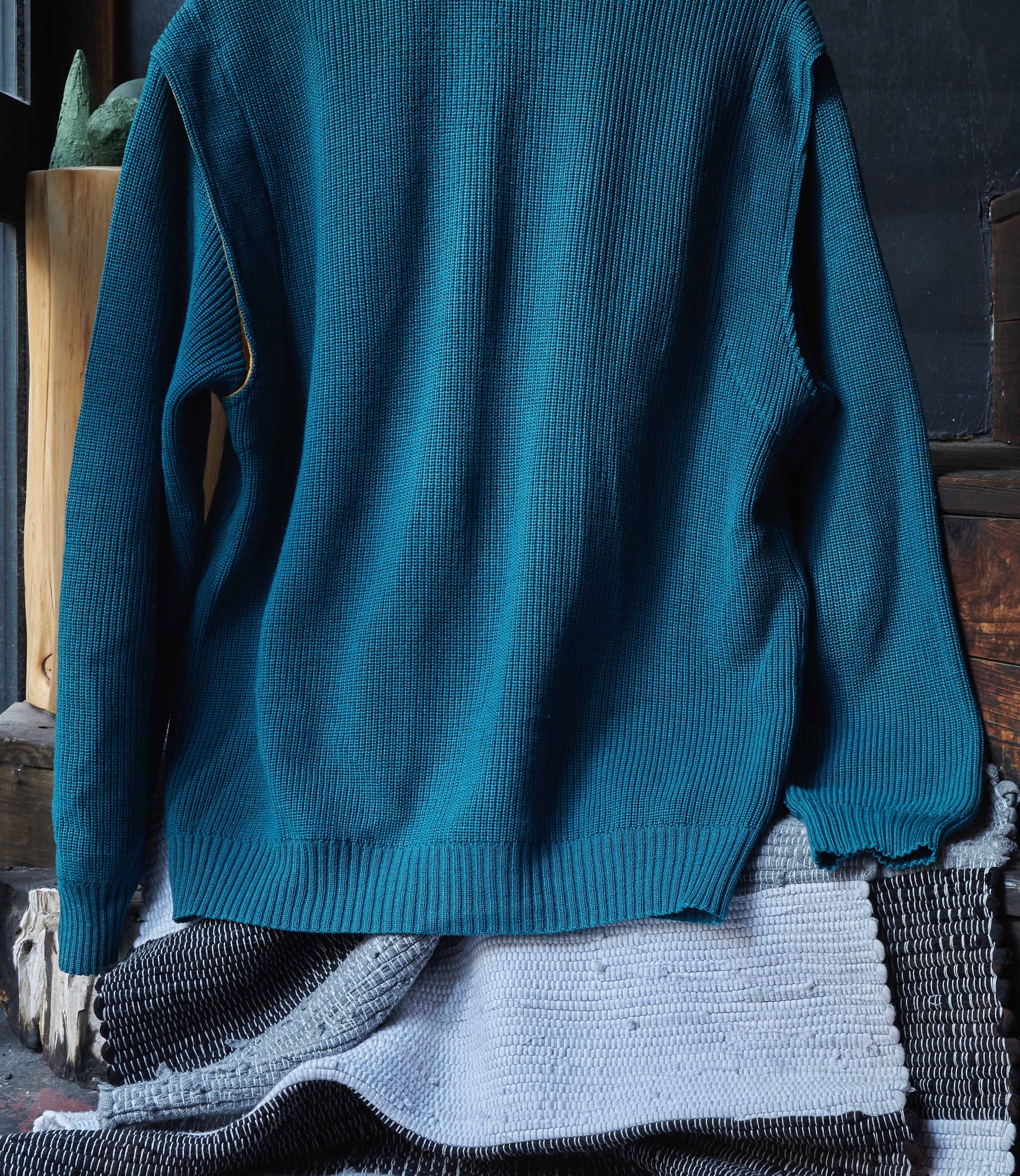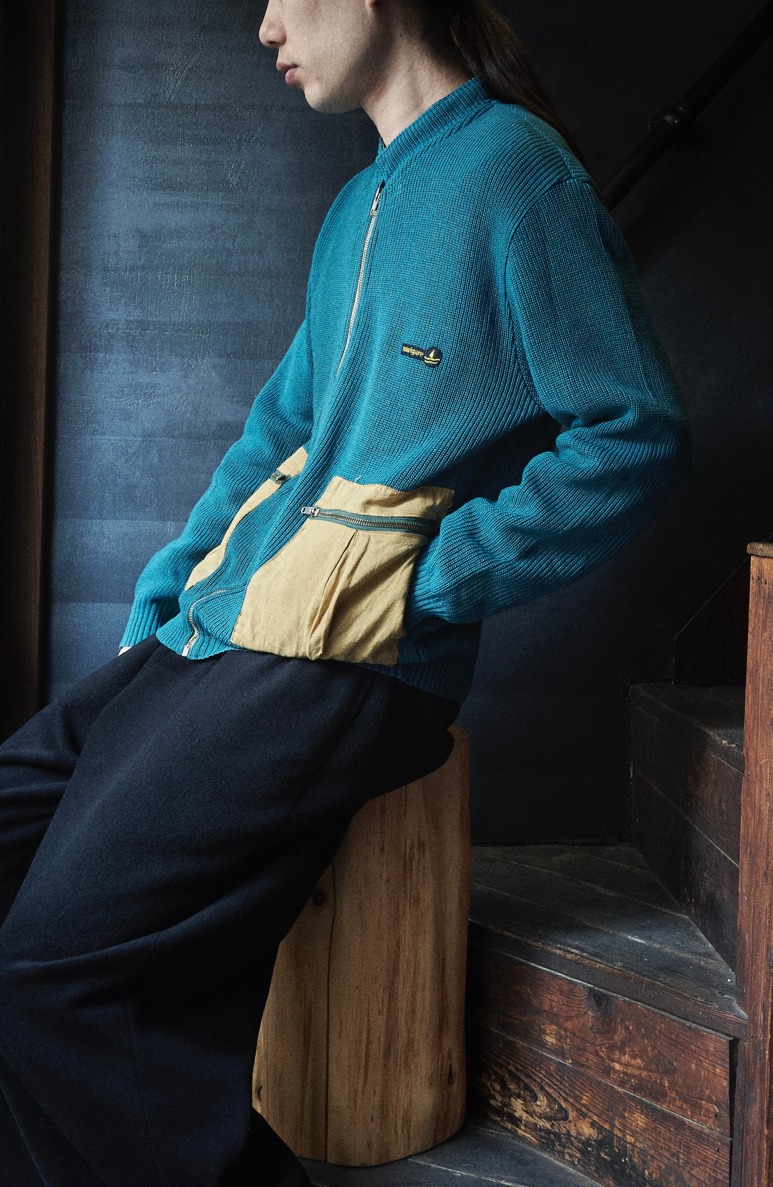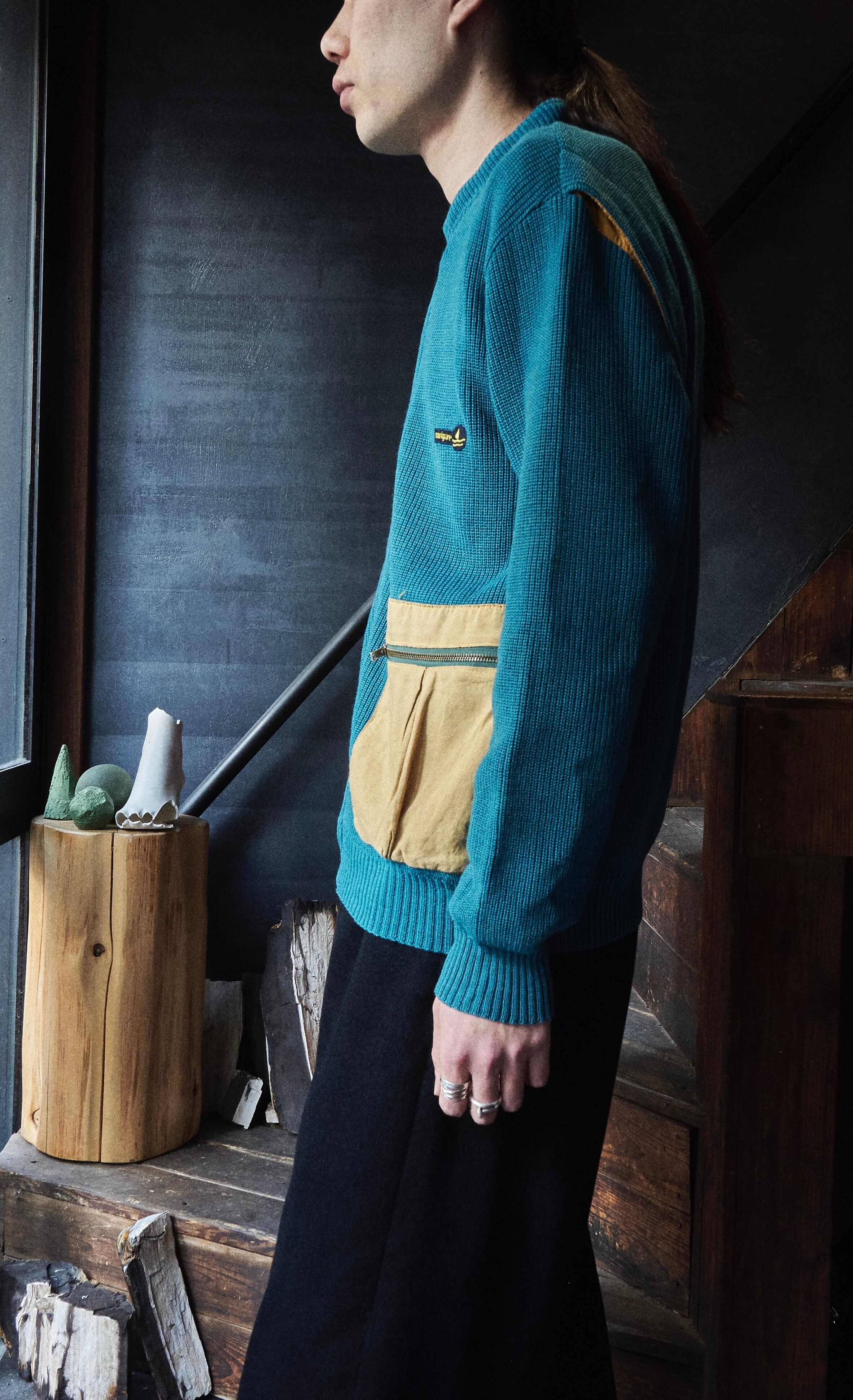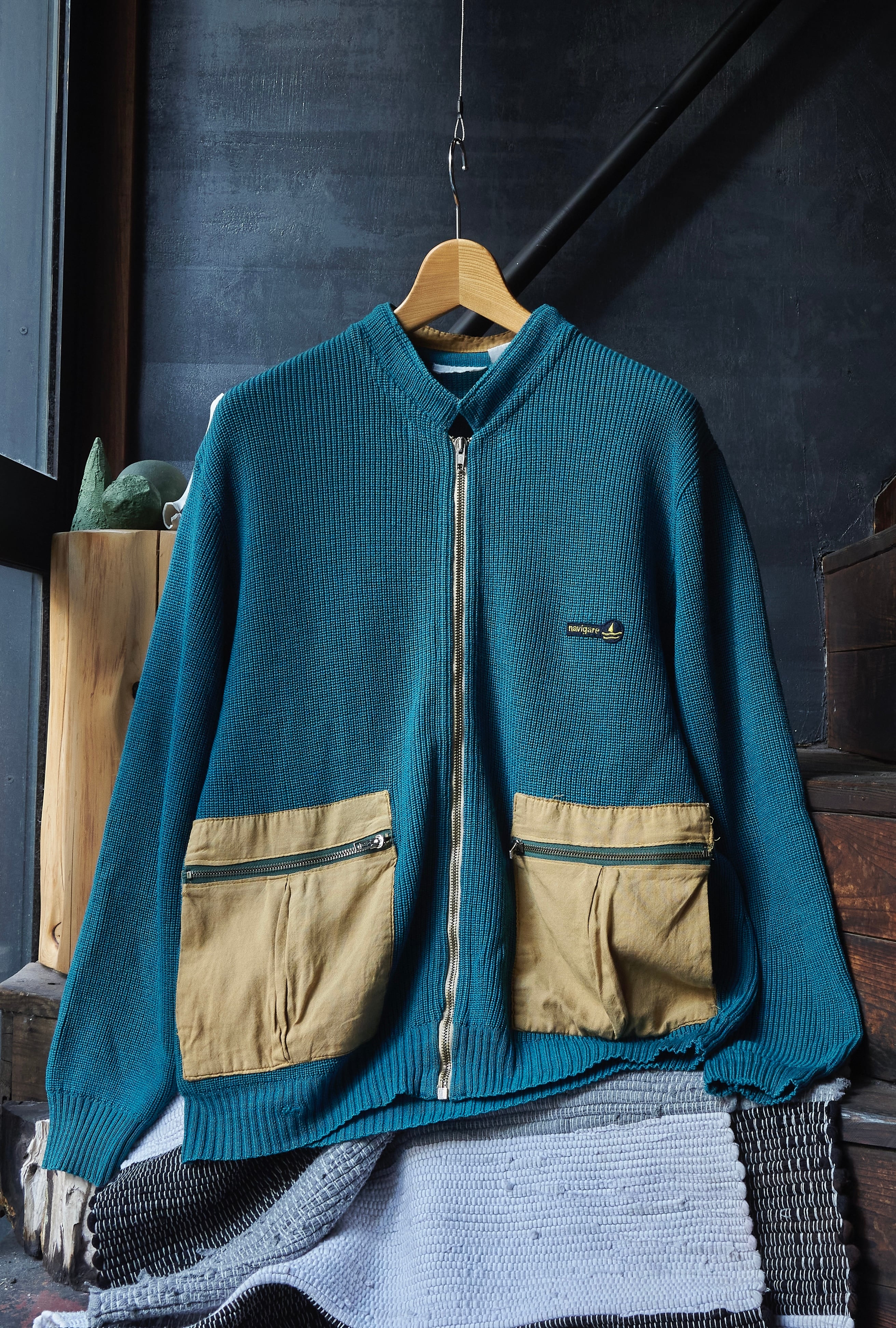 ヨーロッパ80sらしい少しだけ変化球ありながら、品質良いウールアクリルを使用したジップアップニット。