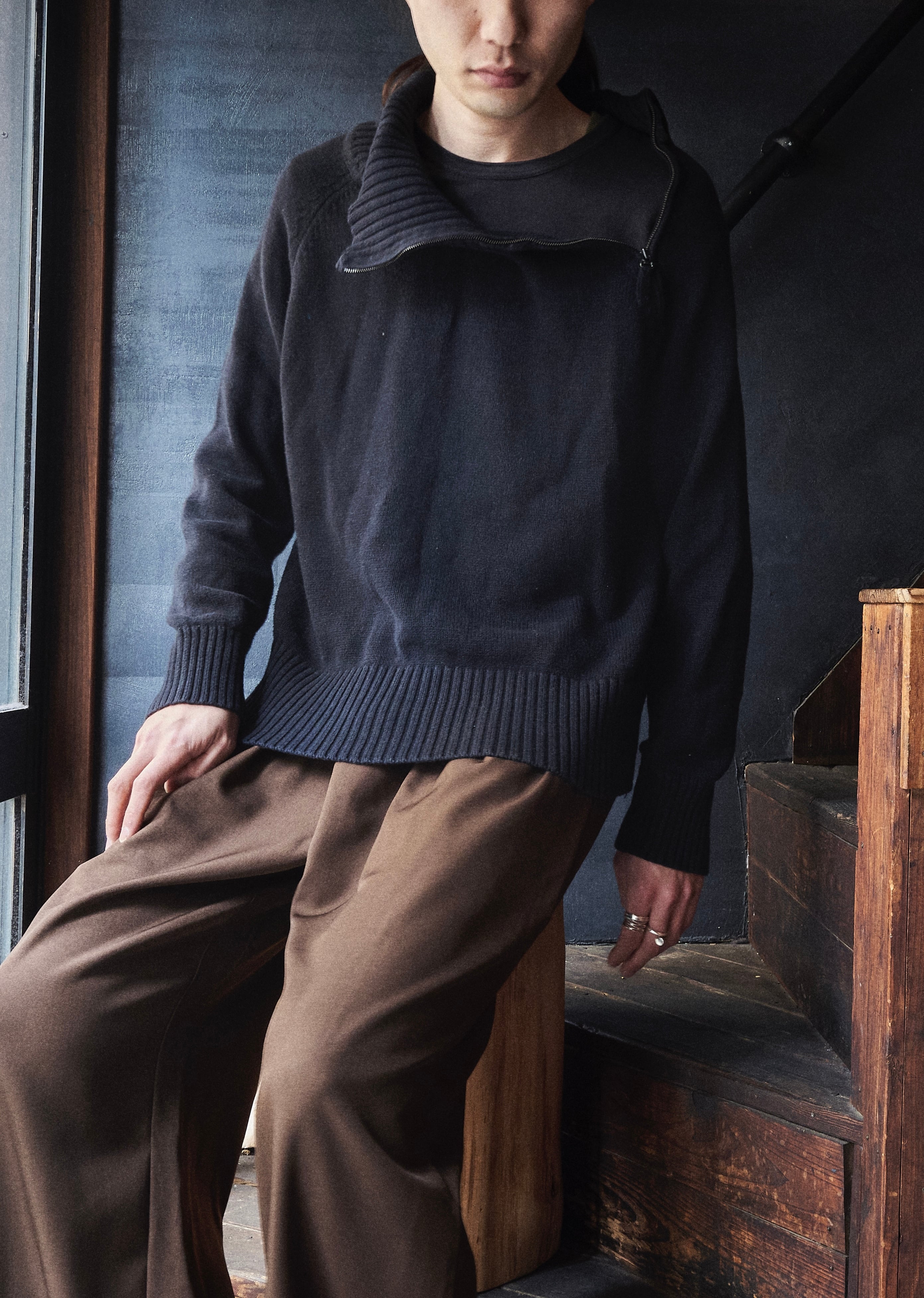そんな斜めジップが春の主役になりそうなコットンニットです。