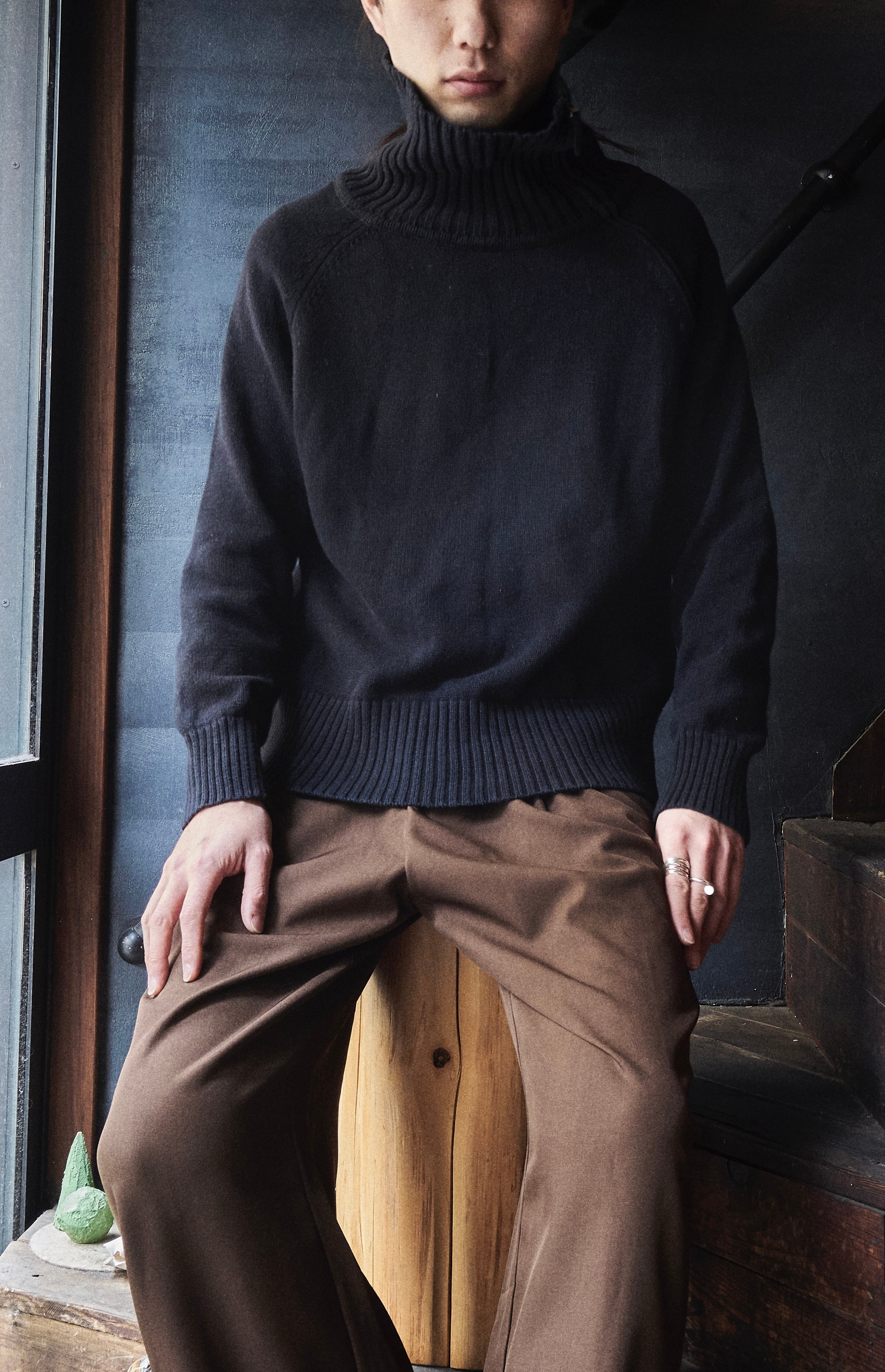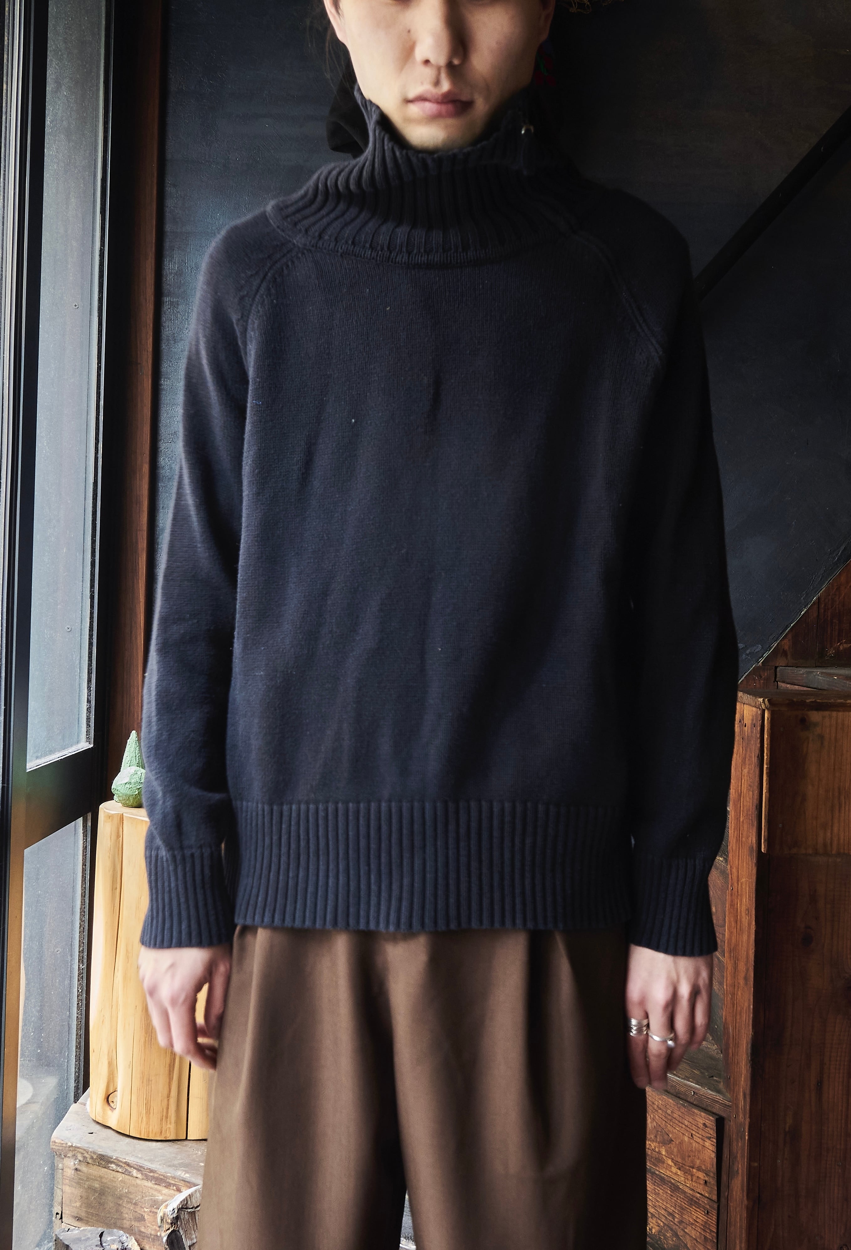 デザインかっこいいブラックコットンニット。