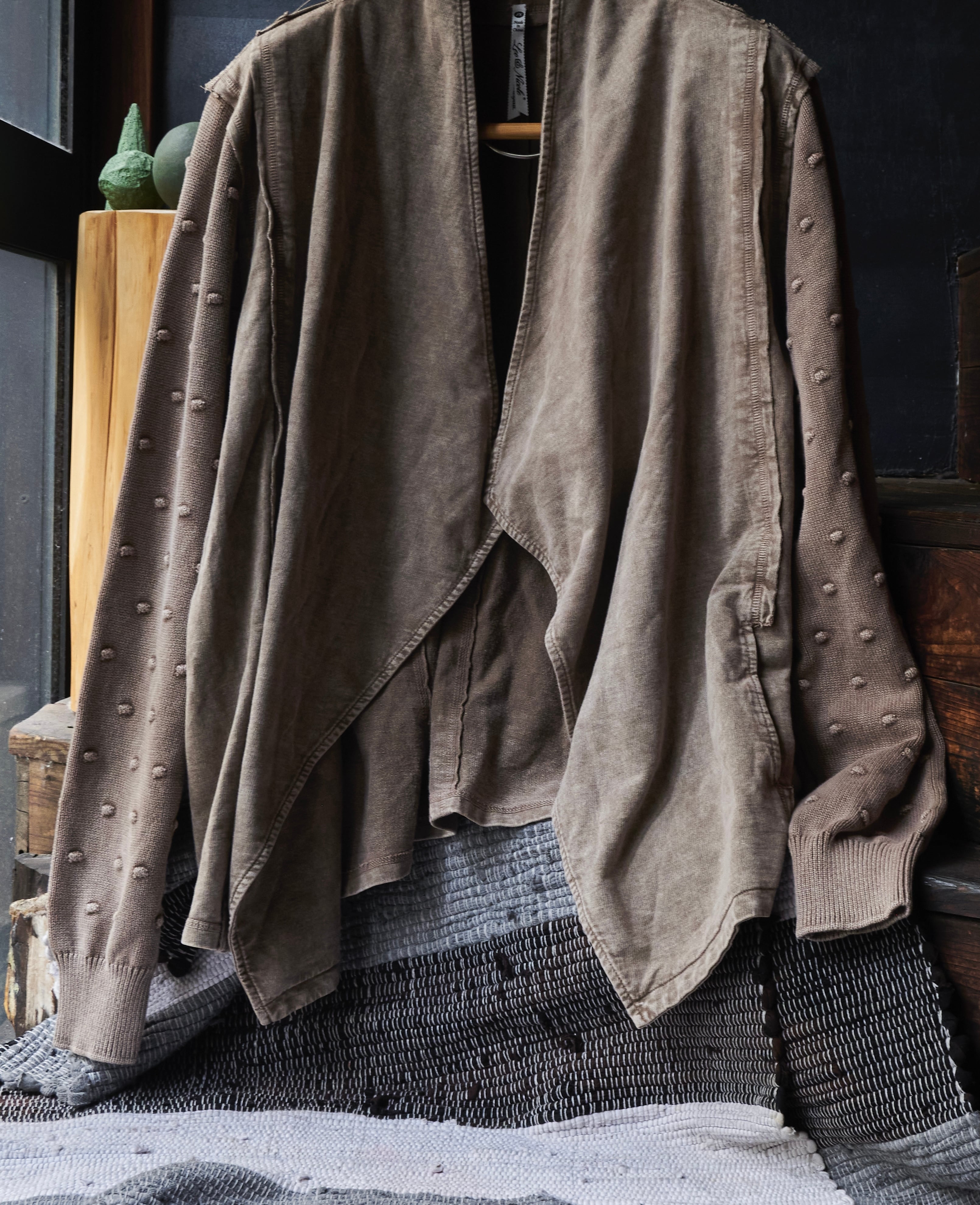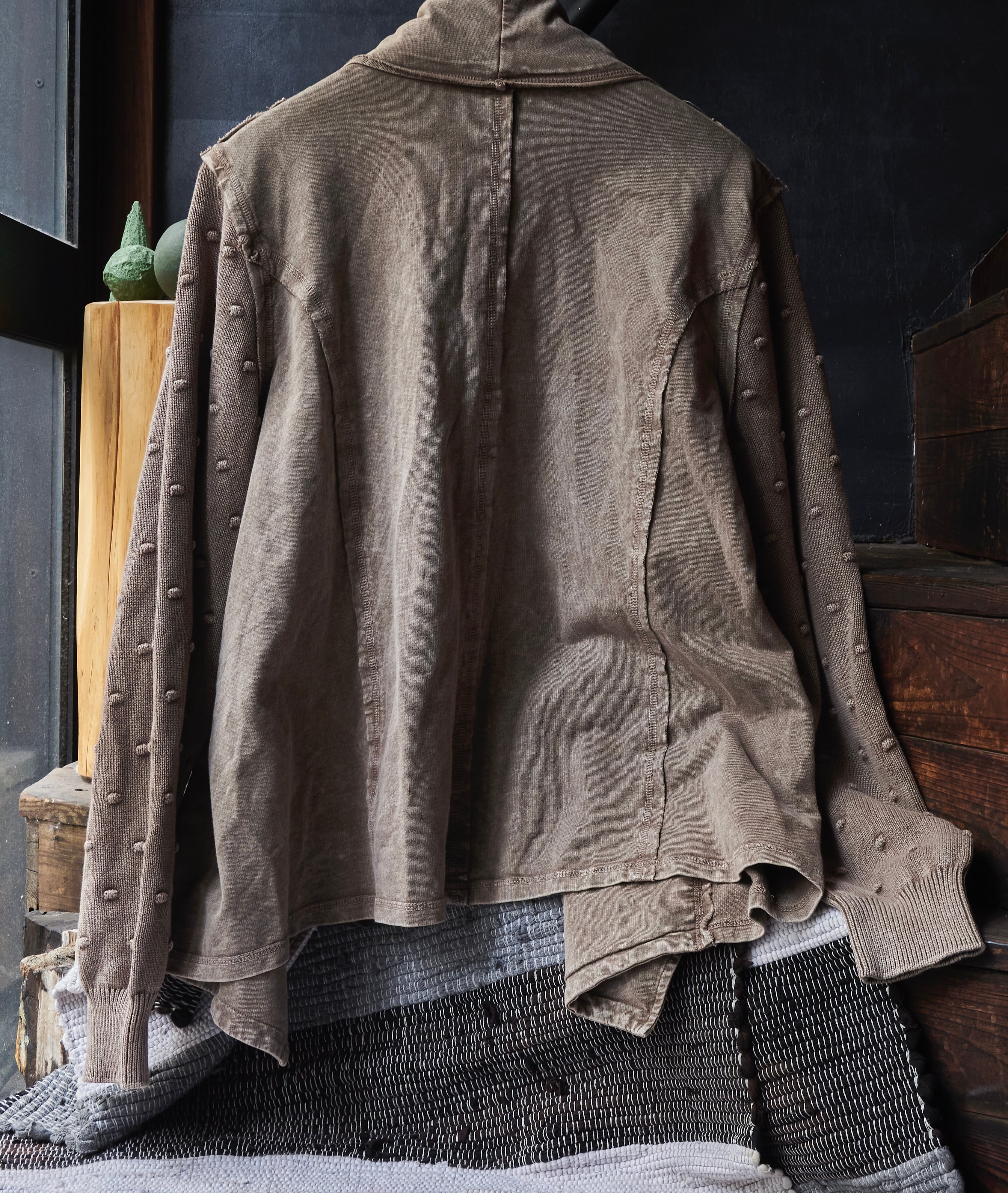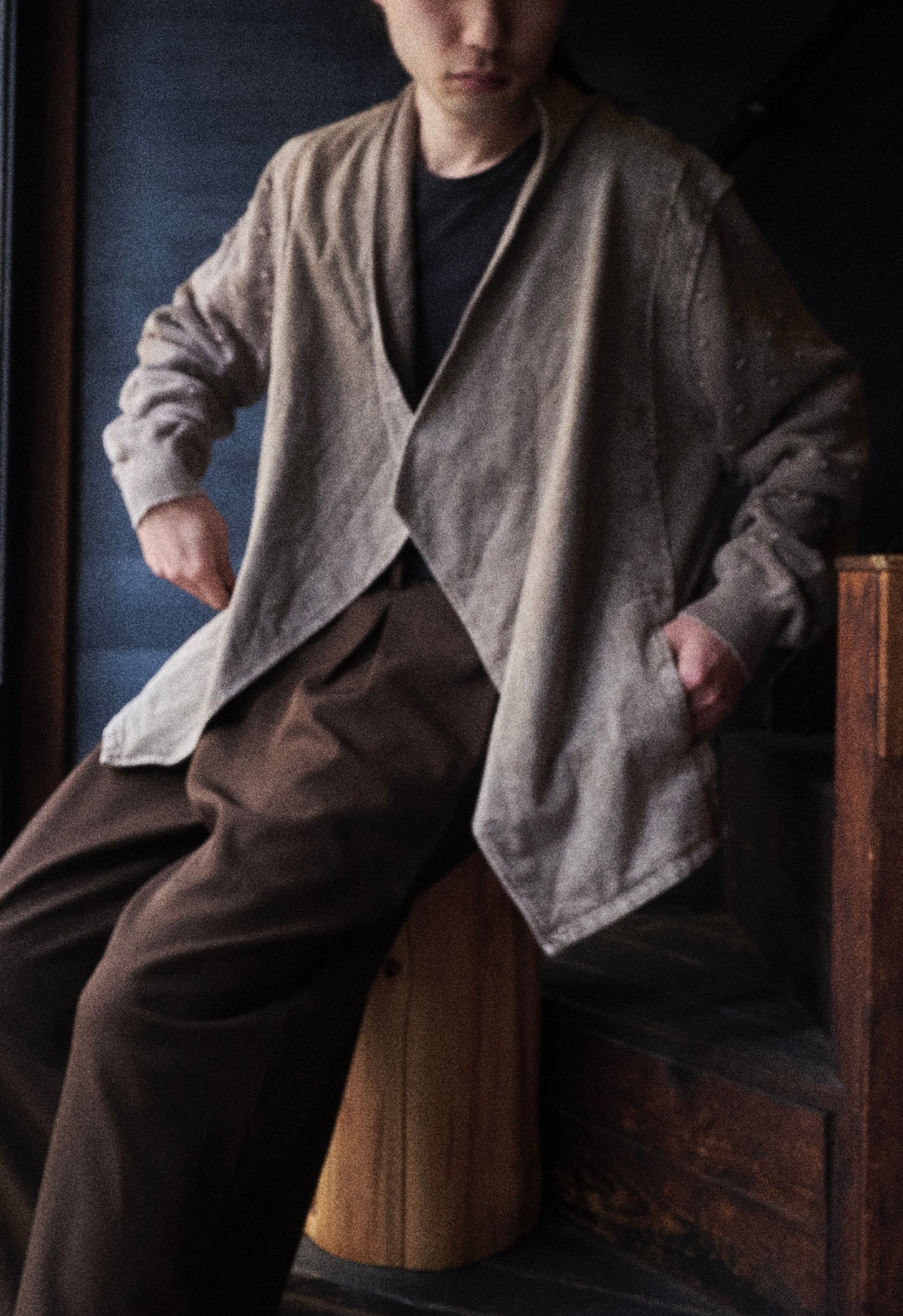 オーバーダイブラウンに程よく色味染まった羽織りジャケット。