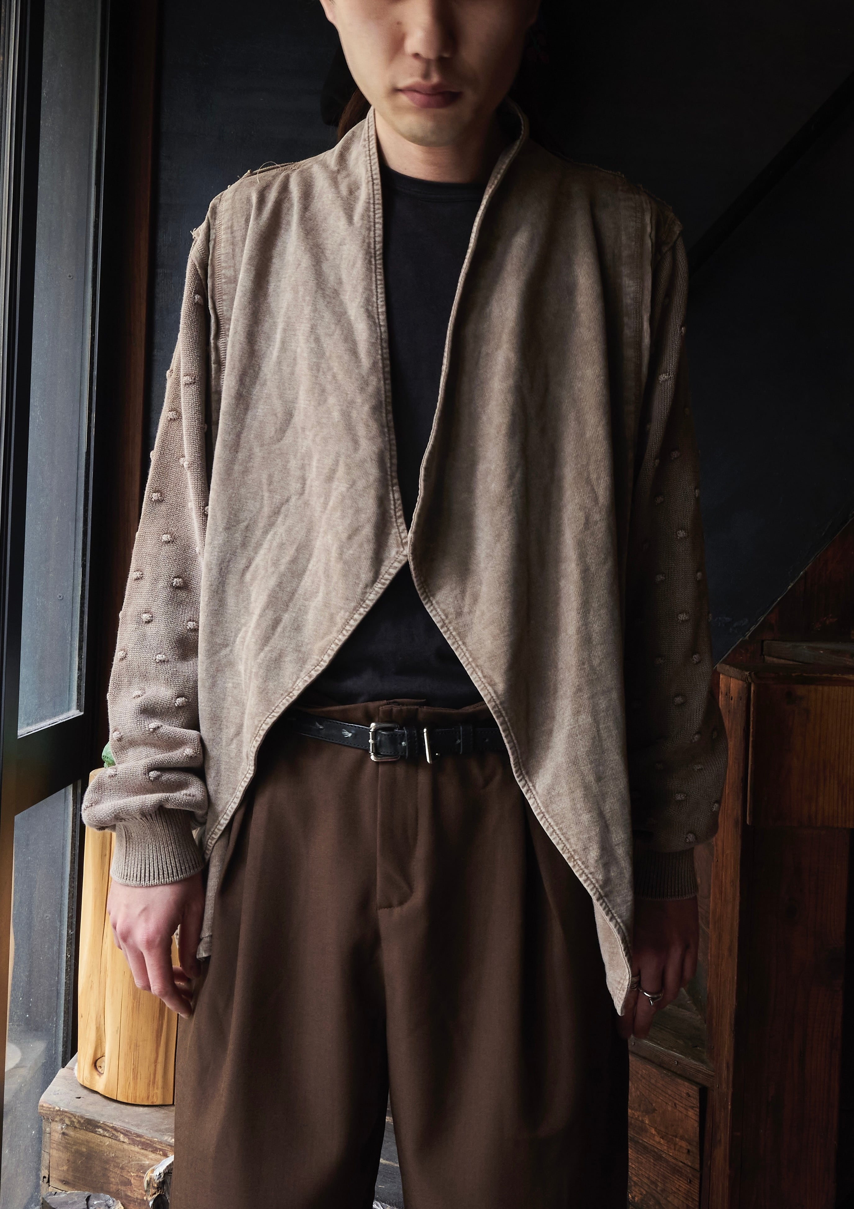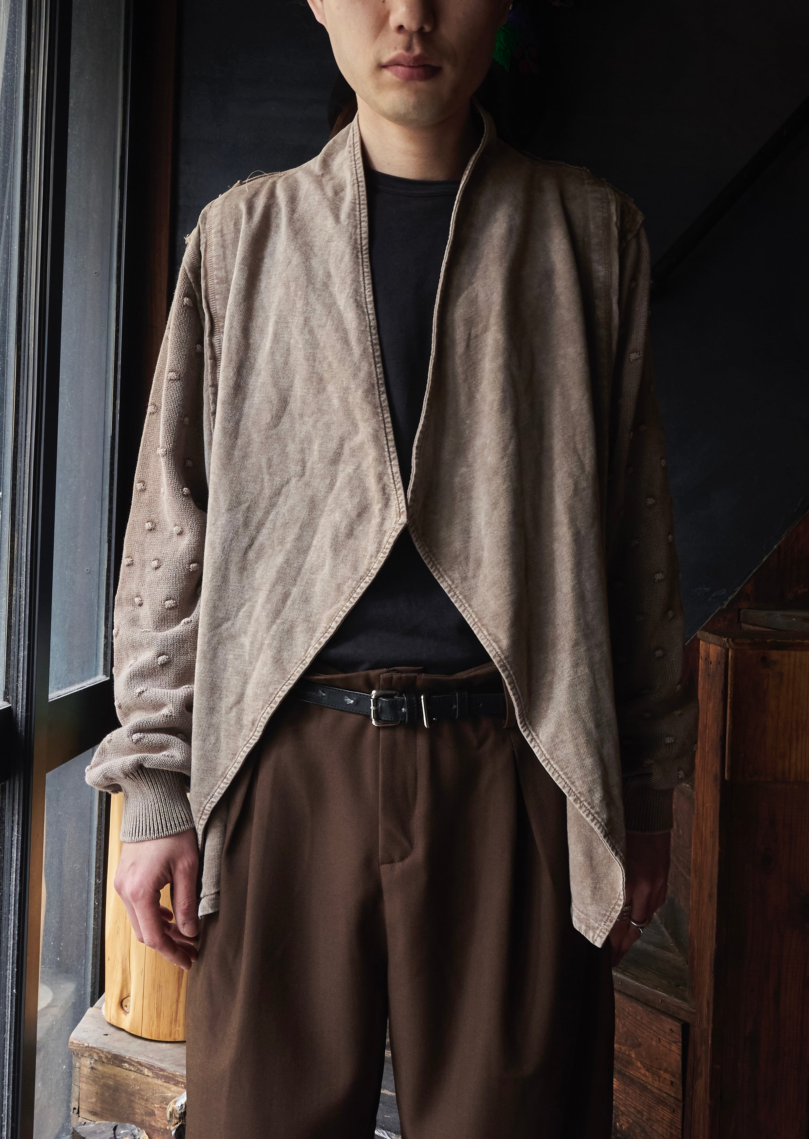 US 2010s Overdyed brown knit haori jacket