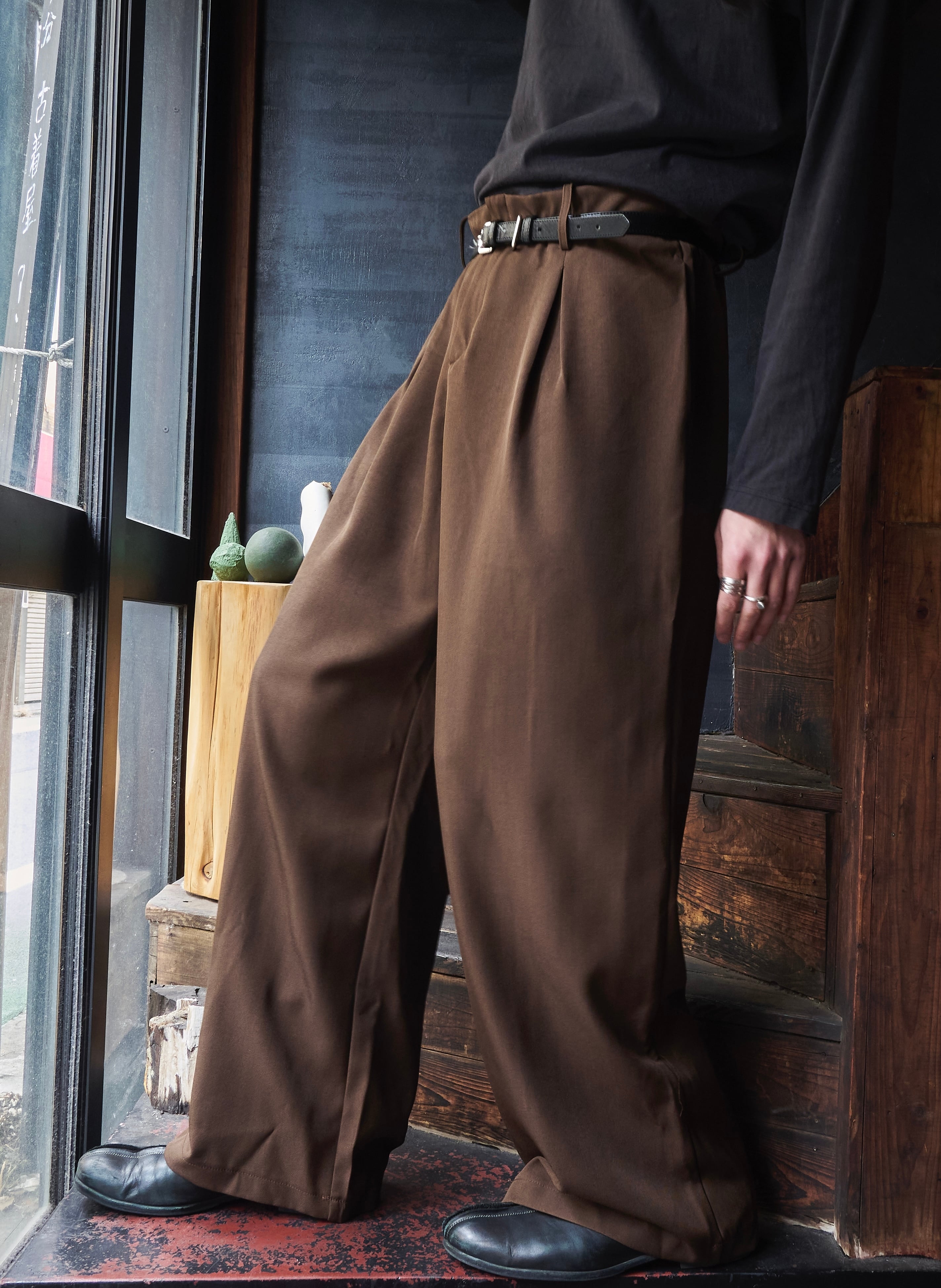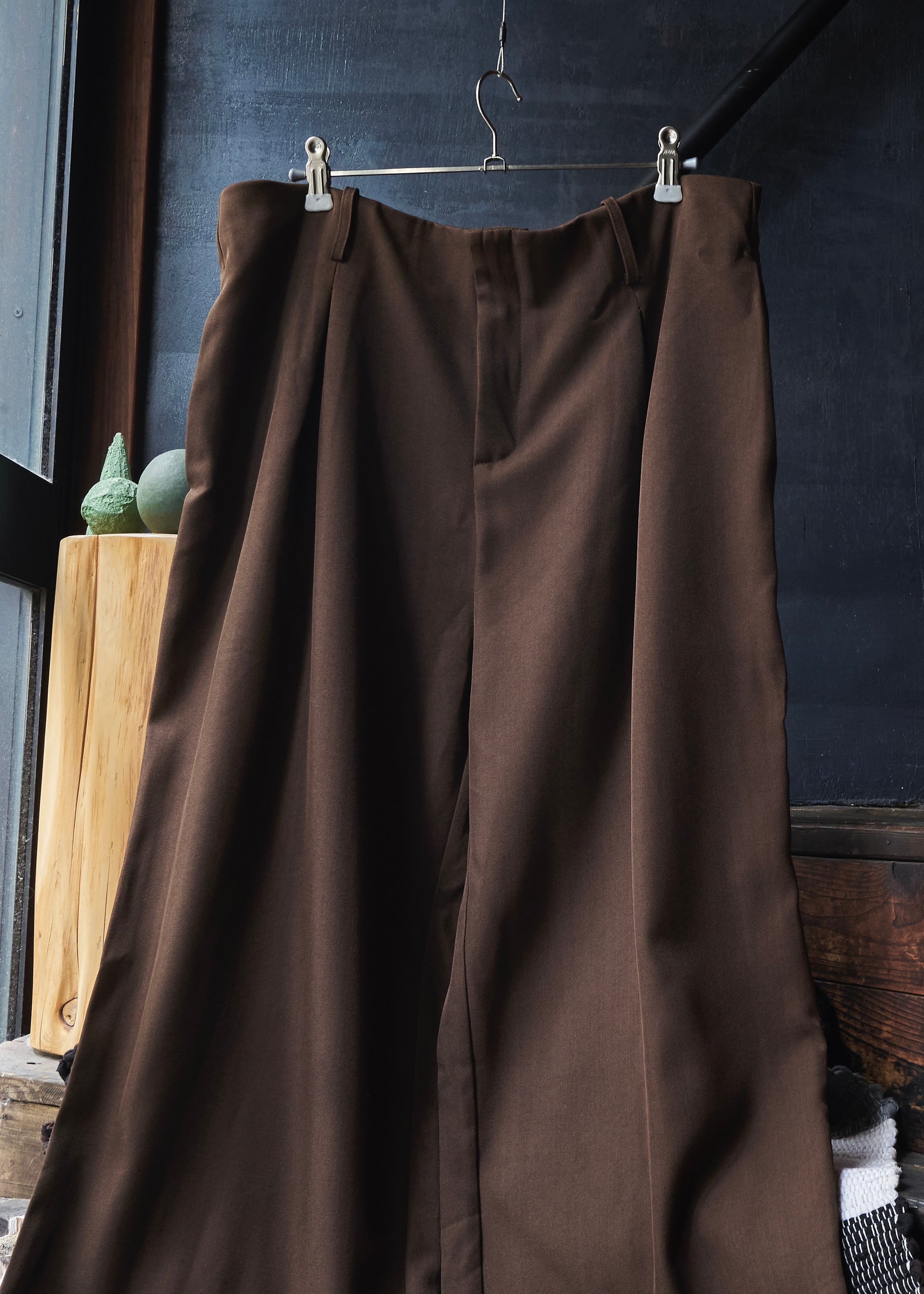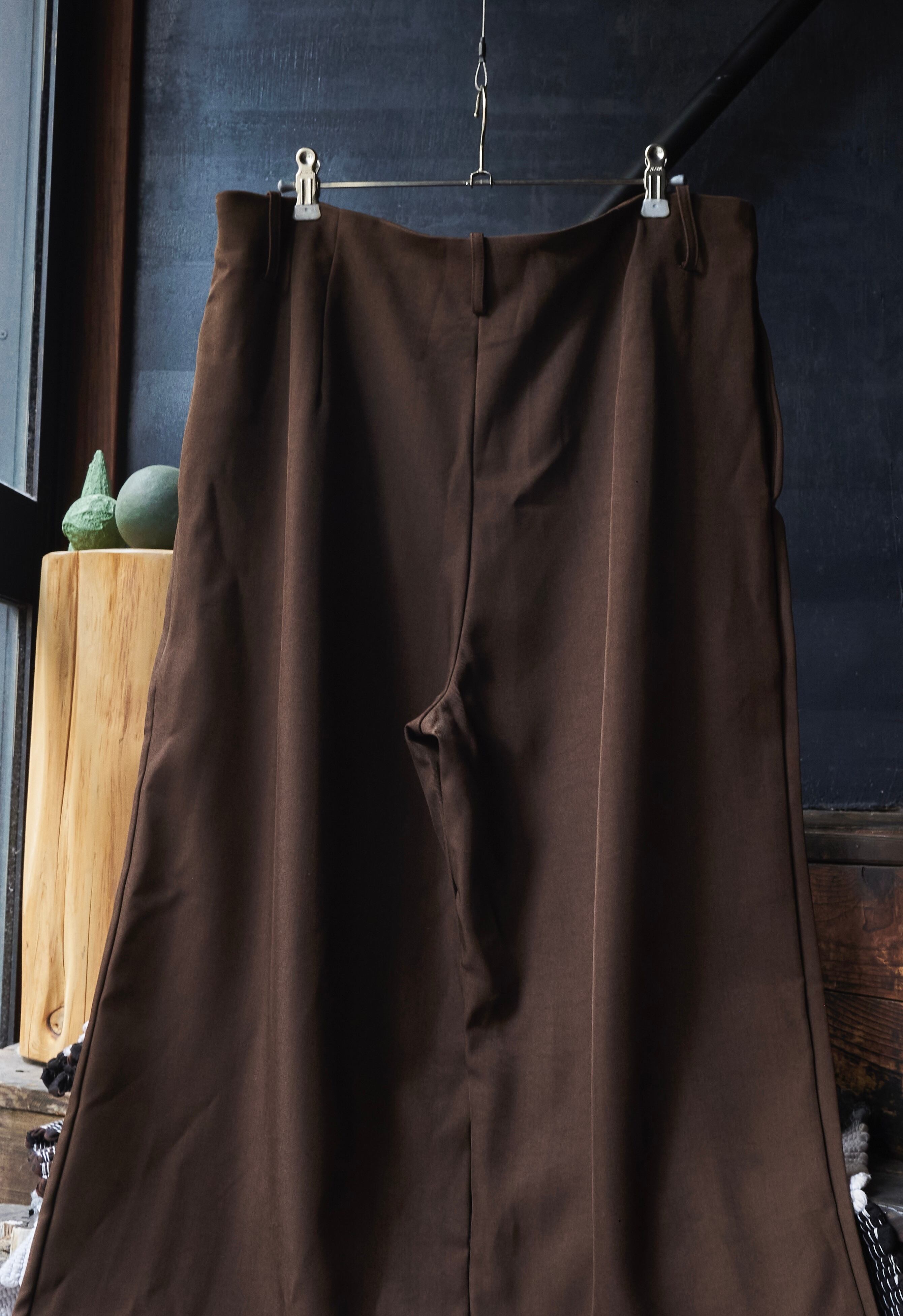 US 2010s Brown polyester gabardine tuck wide slacks