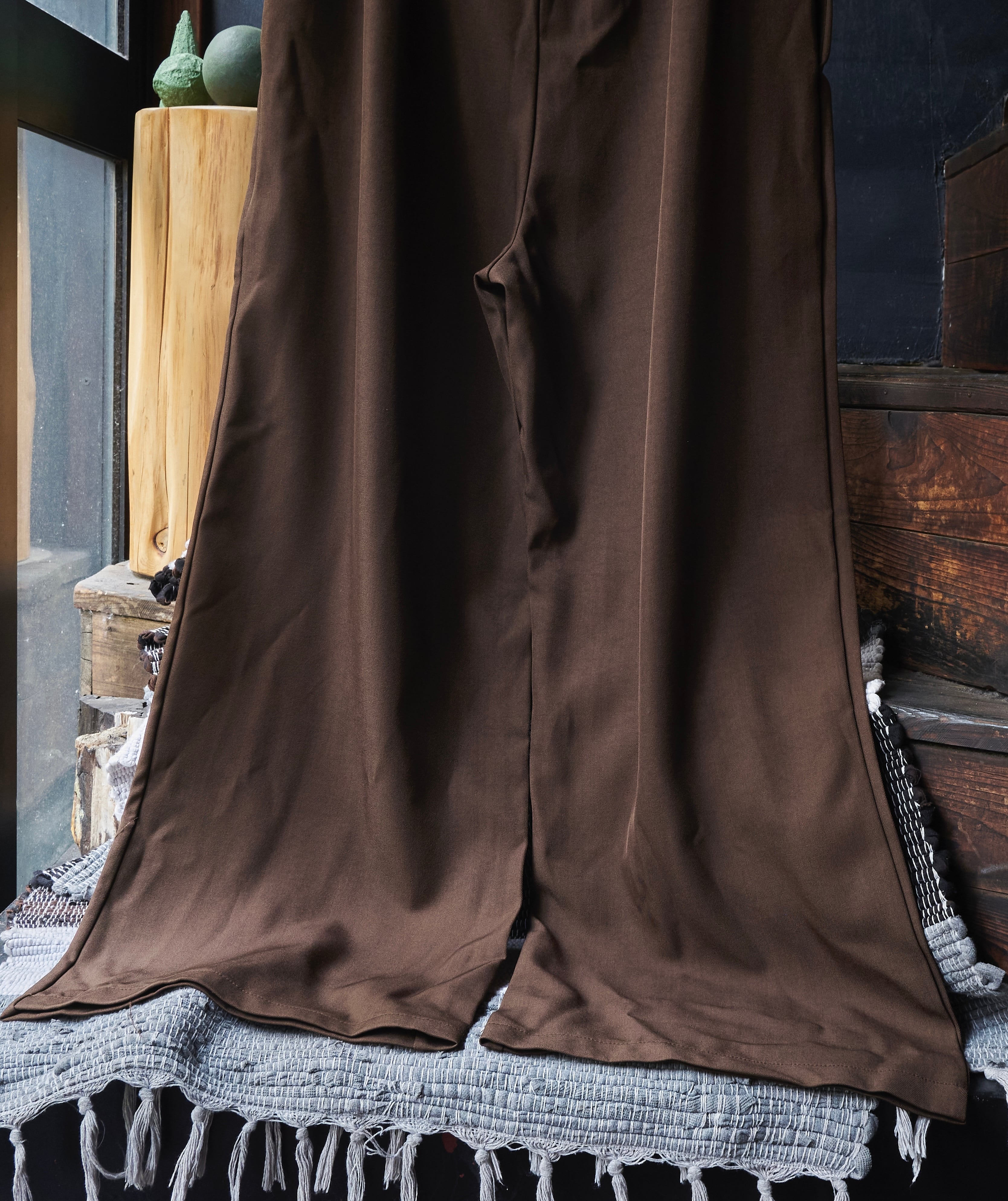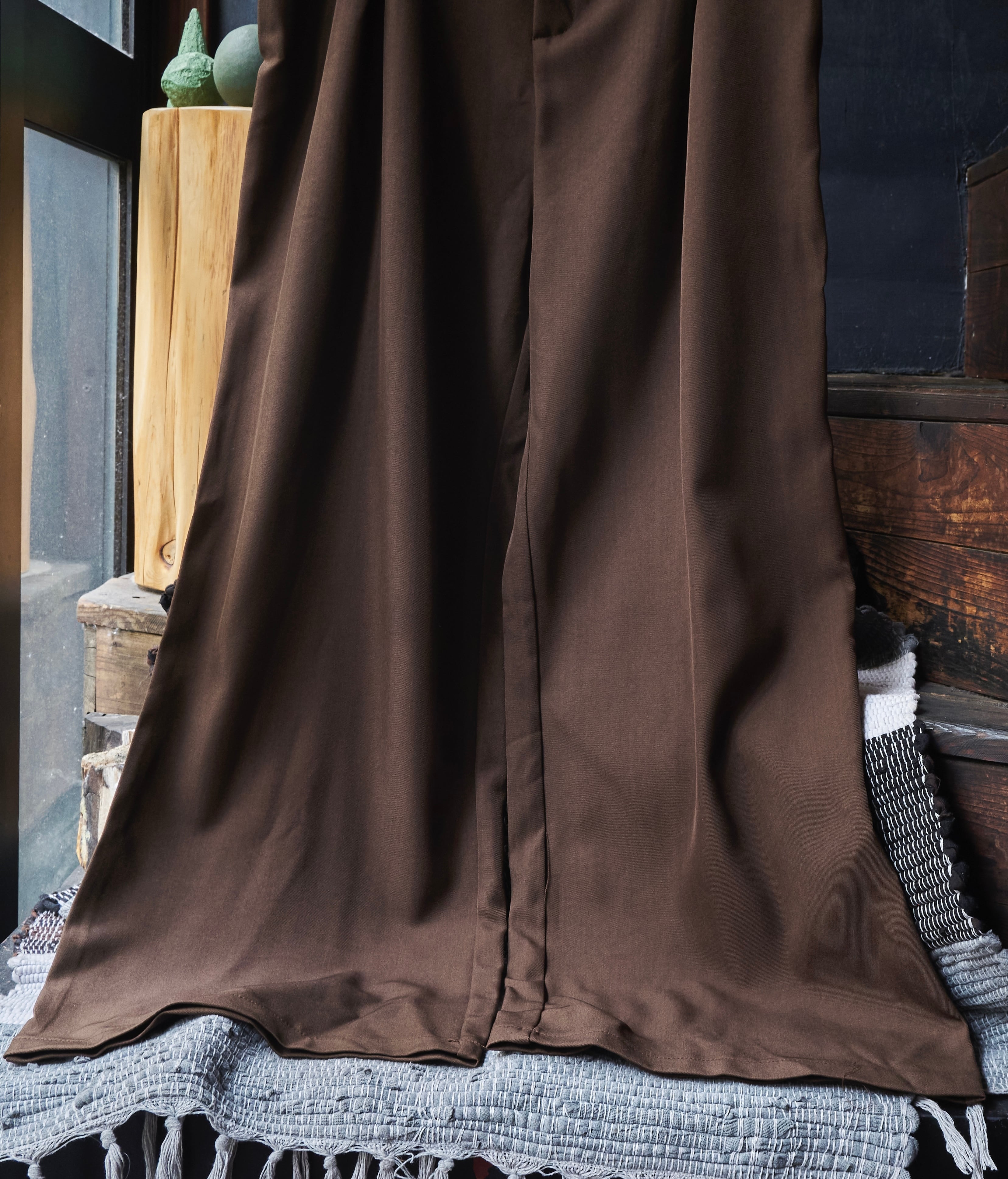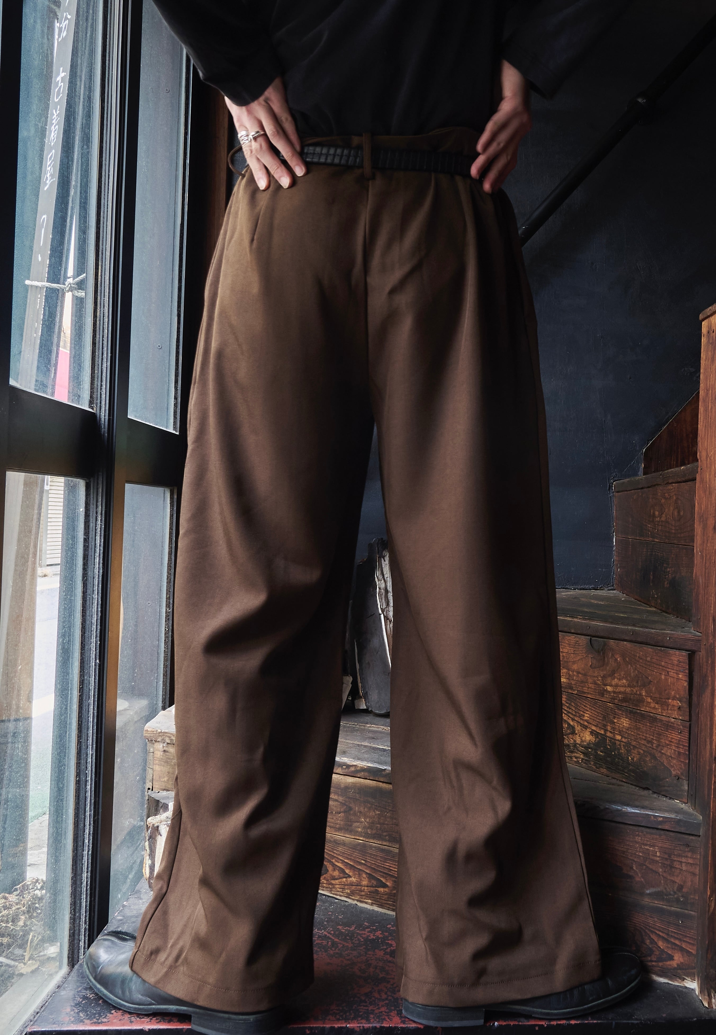 US 2010s Brown polyester gabardine tuck wide slacks