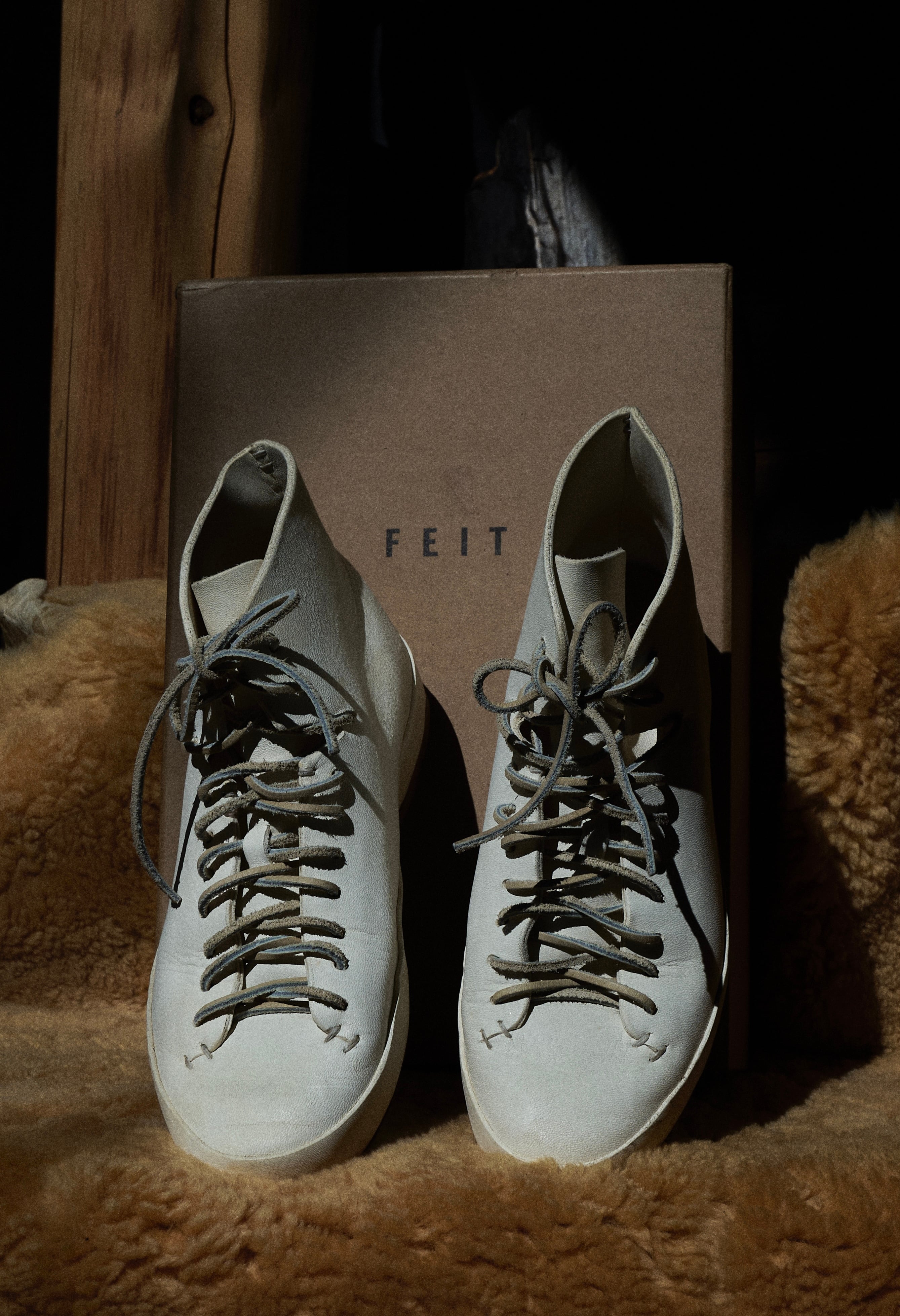 FEIT(ファイト)は、2005年にオーストラリア出身の兄弟が設立した、ニューヨークを拠点とするハンドメイドの高級シューズブランドです。職人が機械を使わずに手作業で仕上げる「ベンチメイド」や一枚革の採用、環境に優しい素材へのこだわりが特徴で、ミニマルで経年変化を楽しめる上質なレザースニーカーやシューズを展開しています。