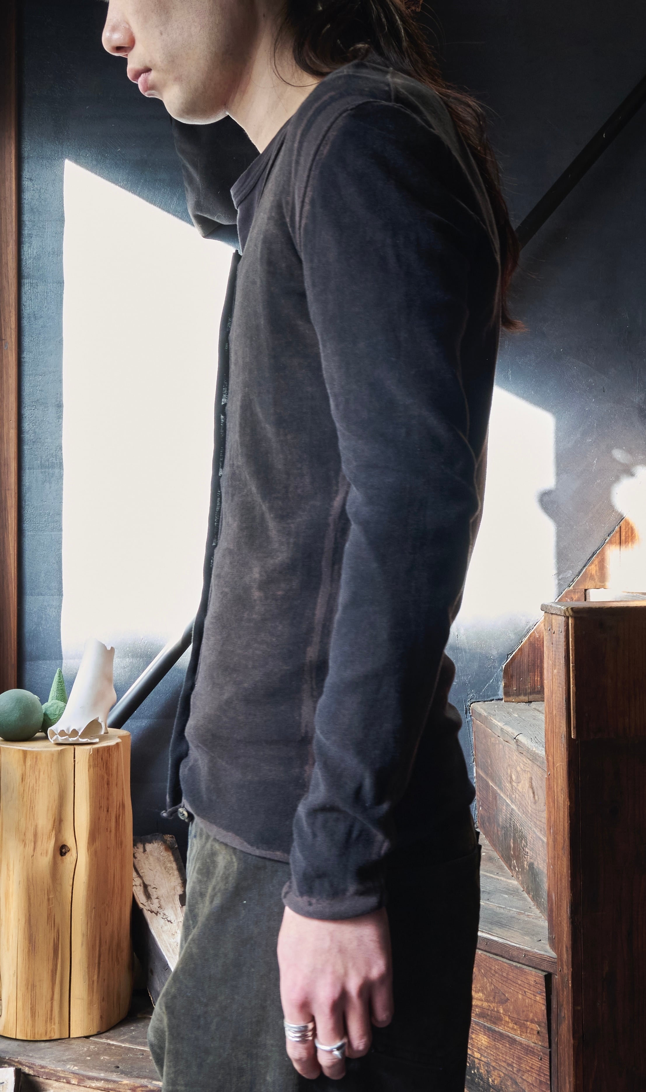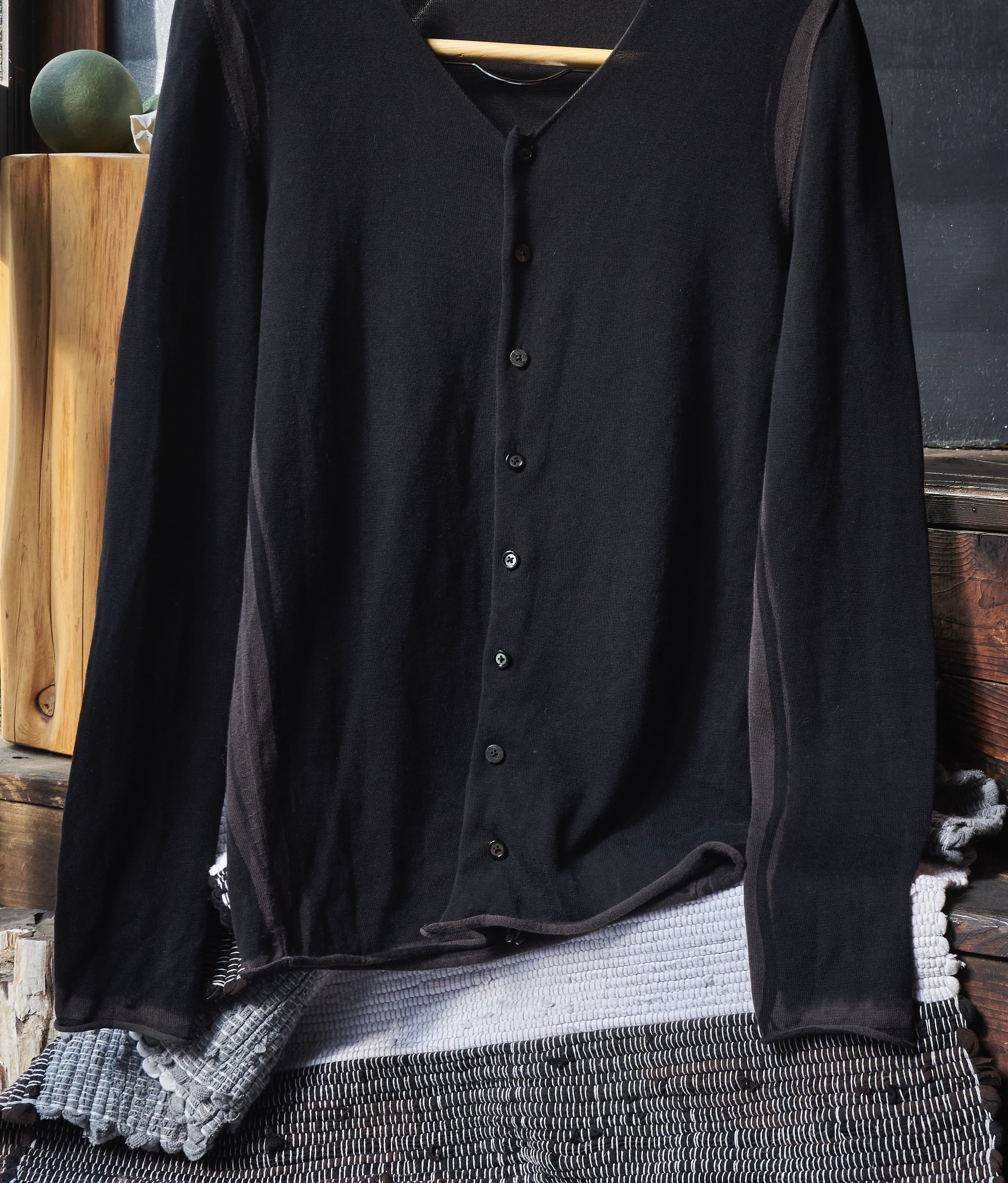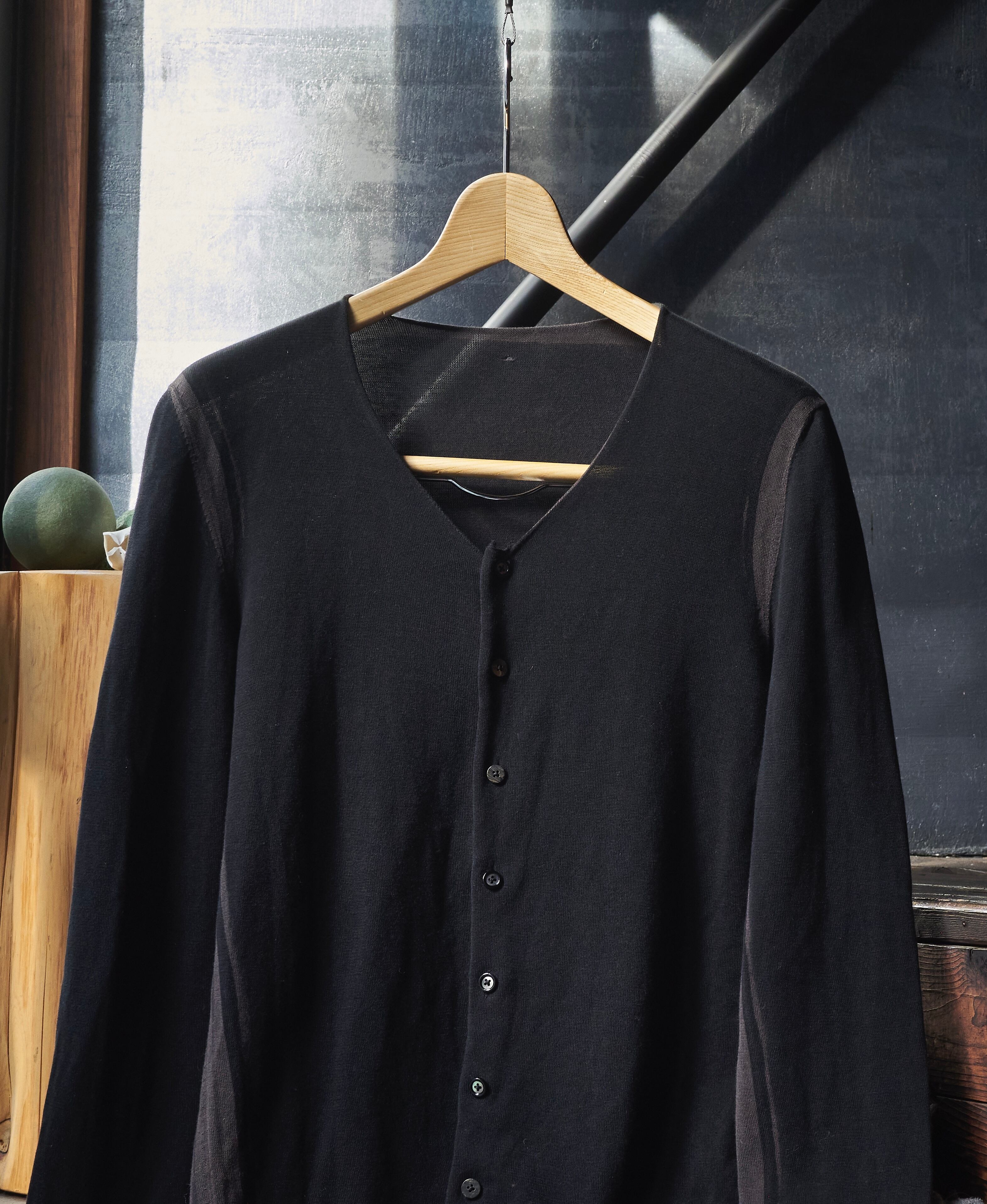 そんなレーベルアンダーコンストラクションの珍しいやばいシルクコットンをしようしたニット。ムラ柄のような染め感も最高であります。