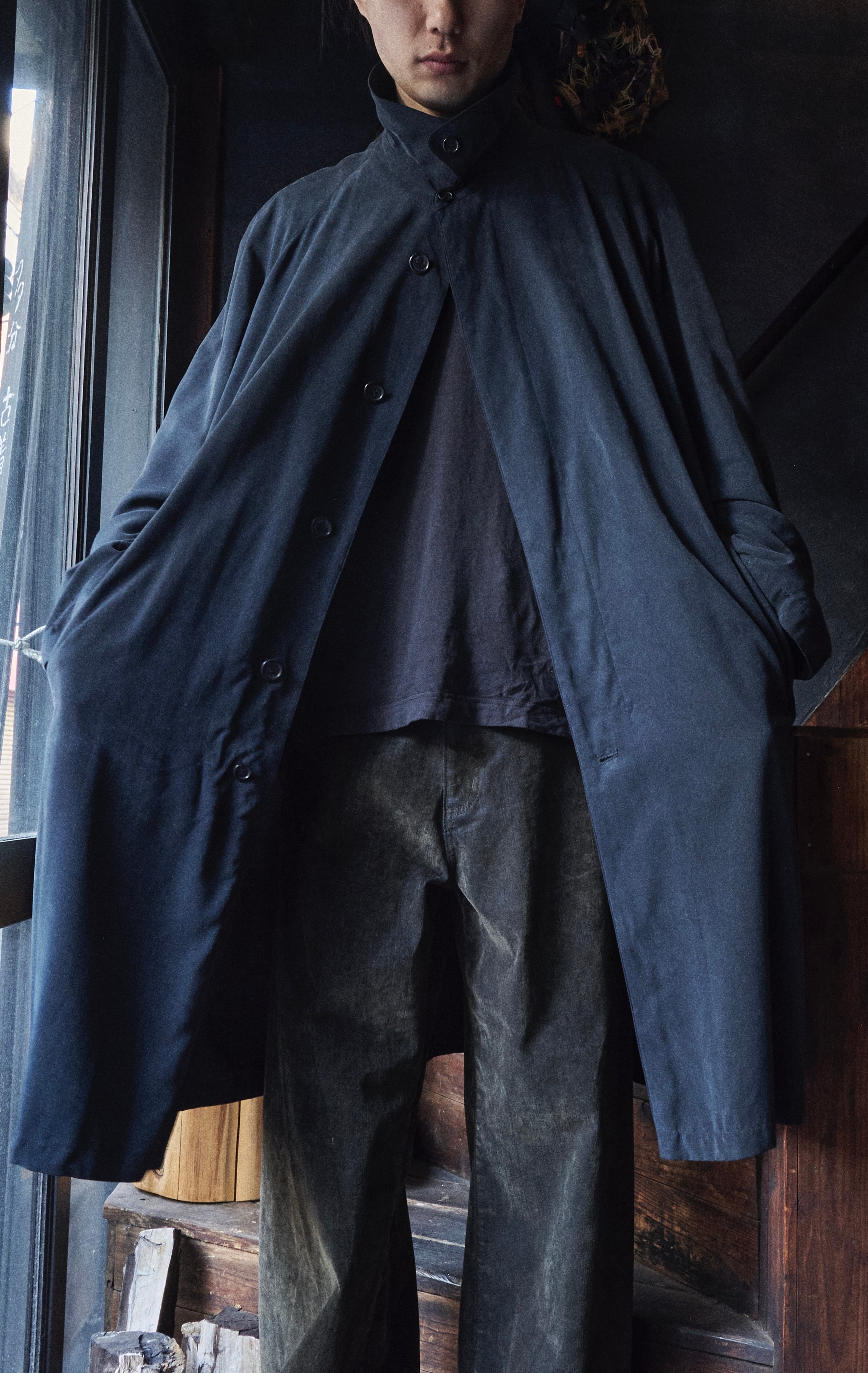 見た事ないくらいドレープが美しいアレグリのバルマカンパターンのベルト付きチンストラップコート