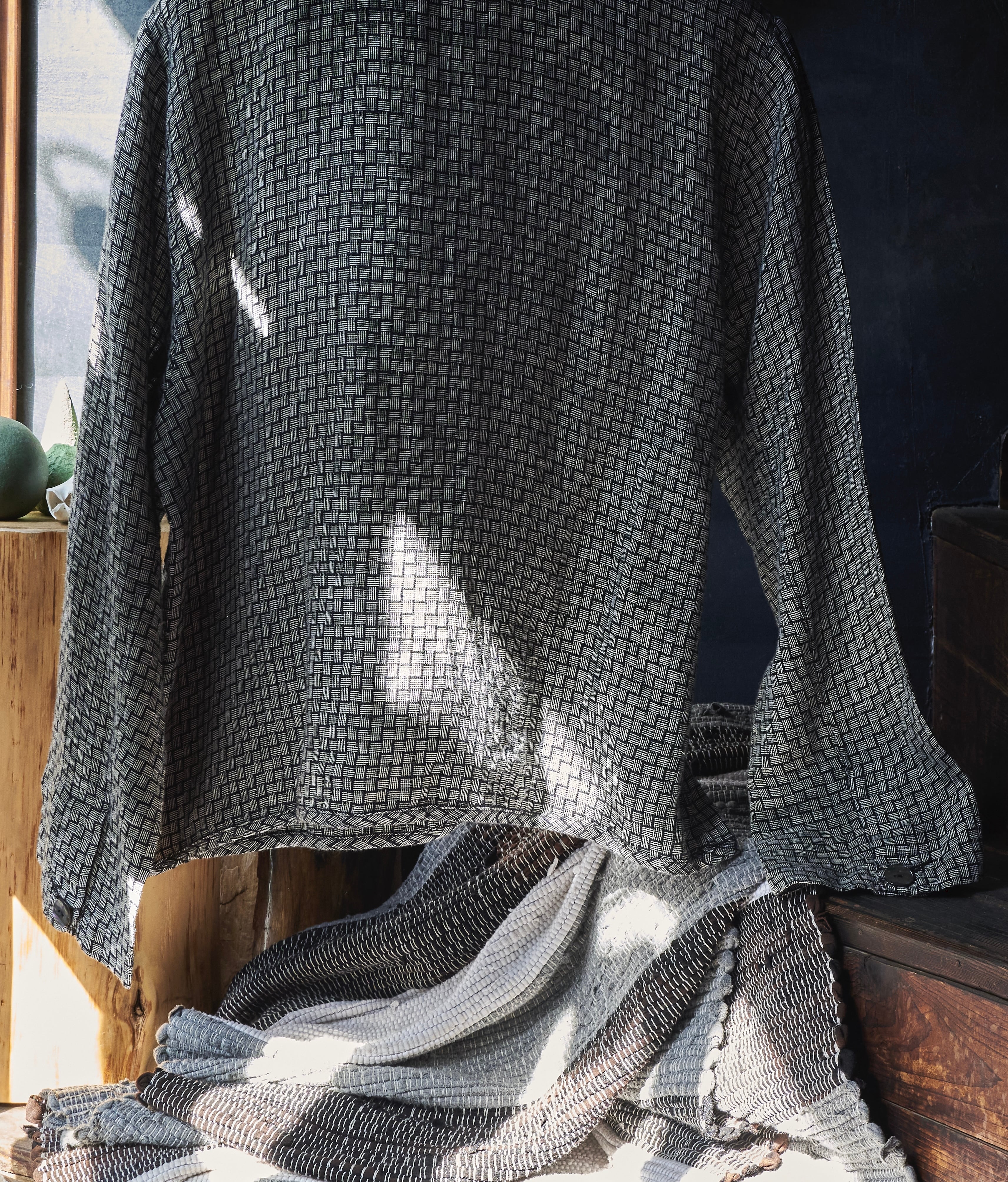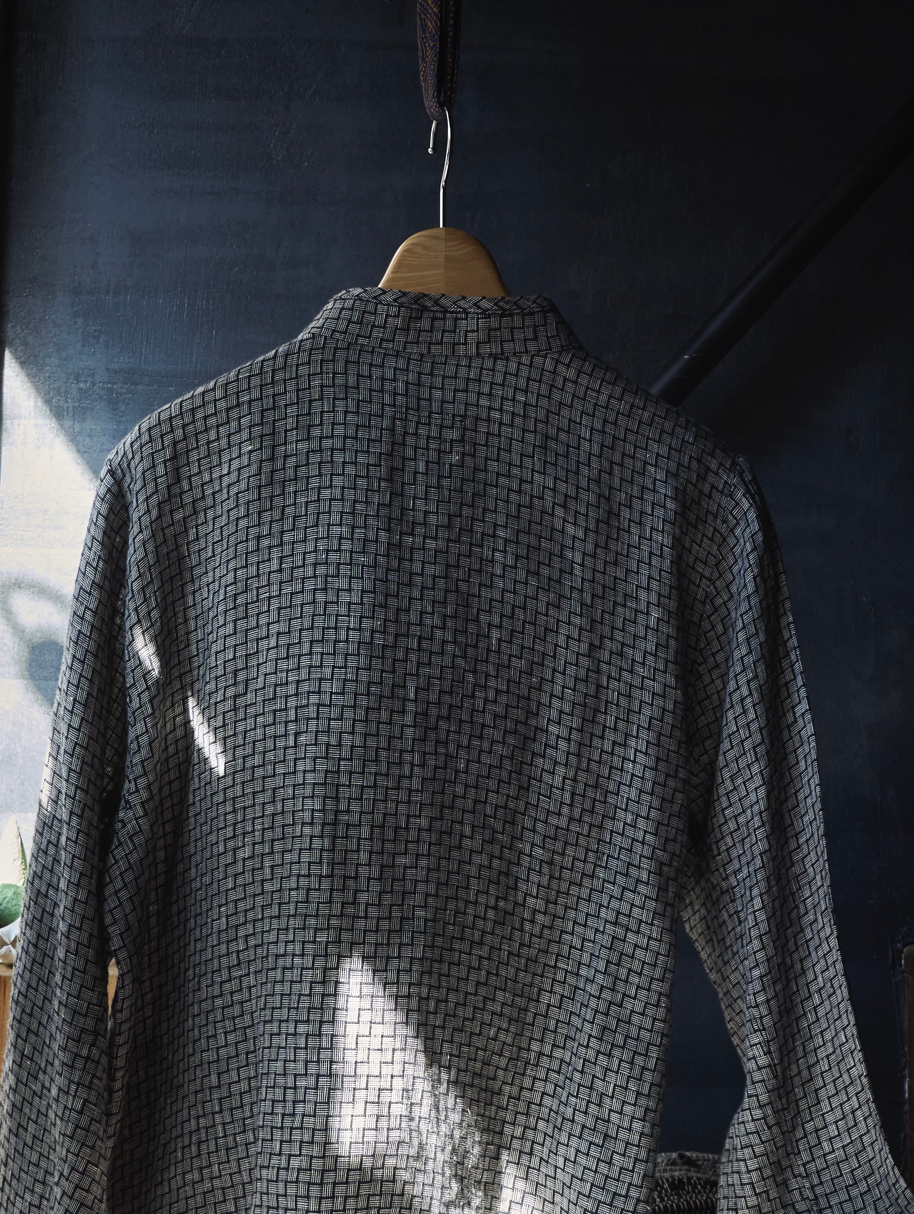 そして格子のように織り込まれたリネンの風合いは着やすくて美しい。