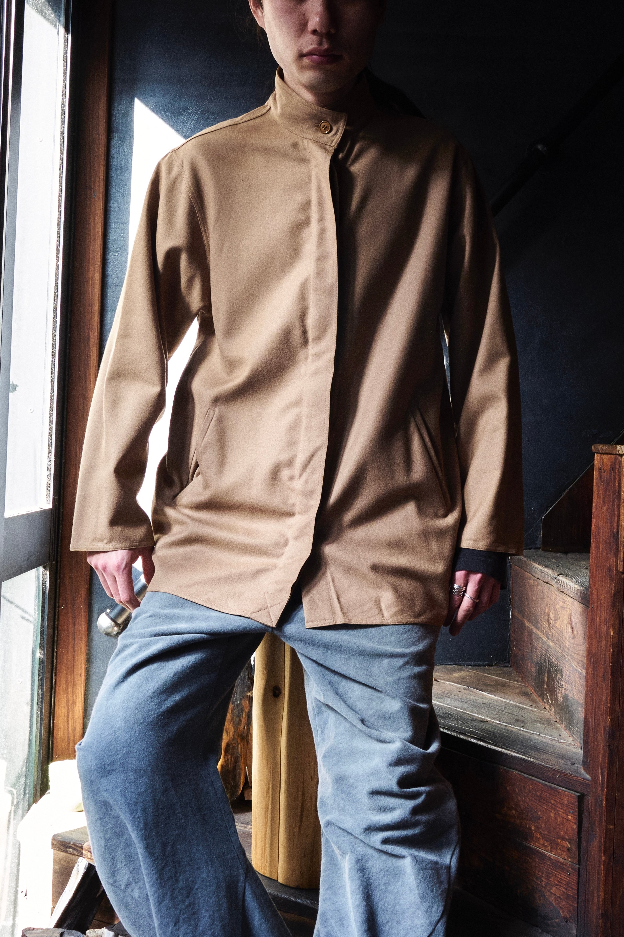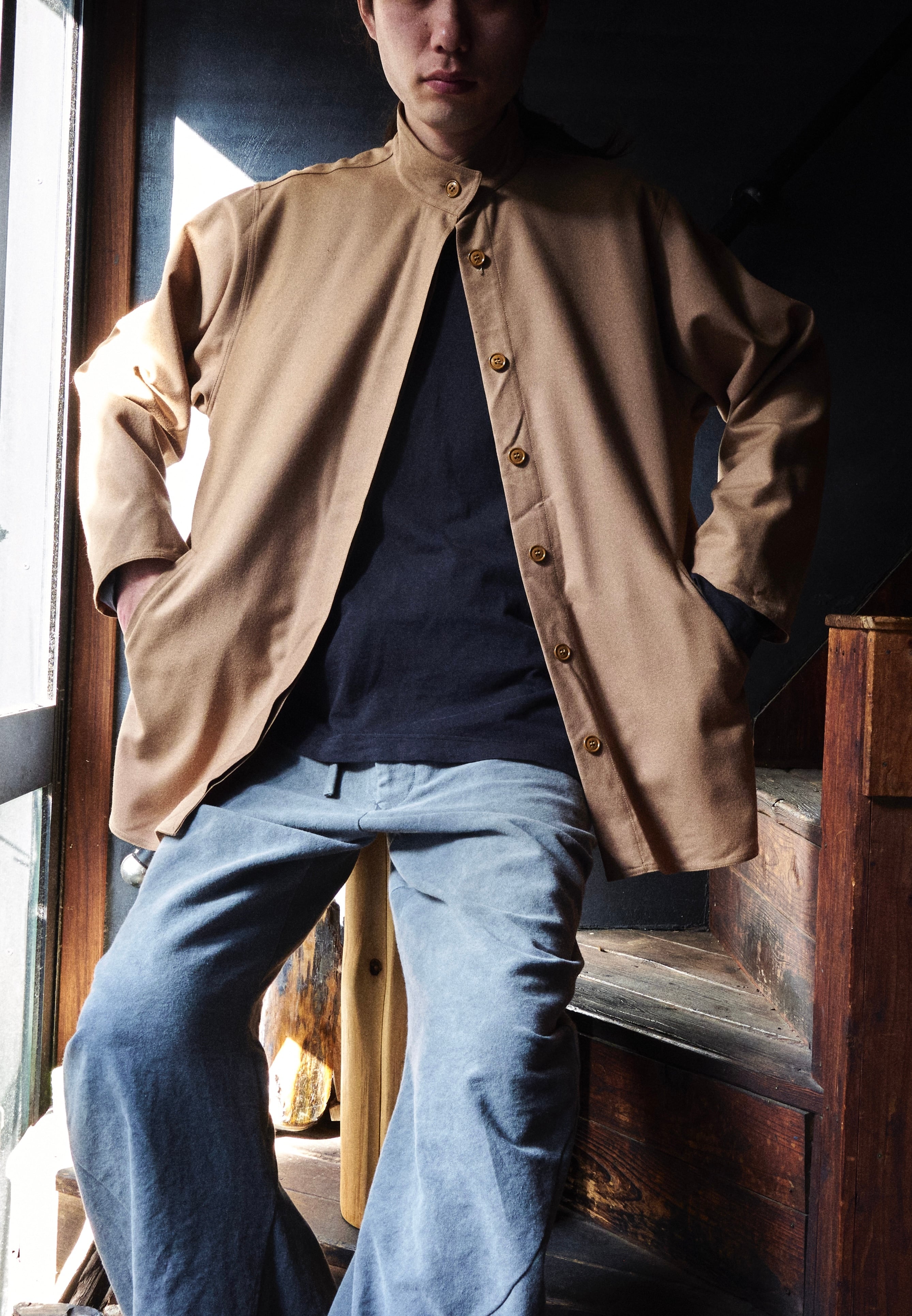 80s ITALY Light wool stand-collar shirt jacket