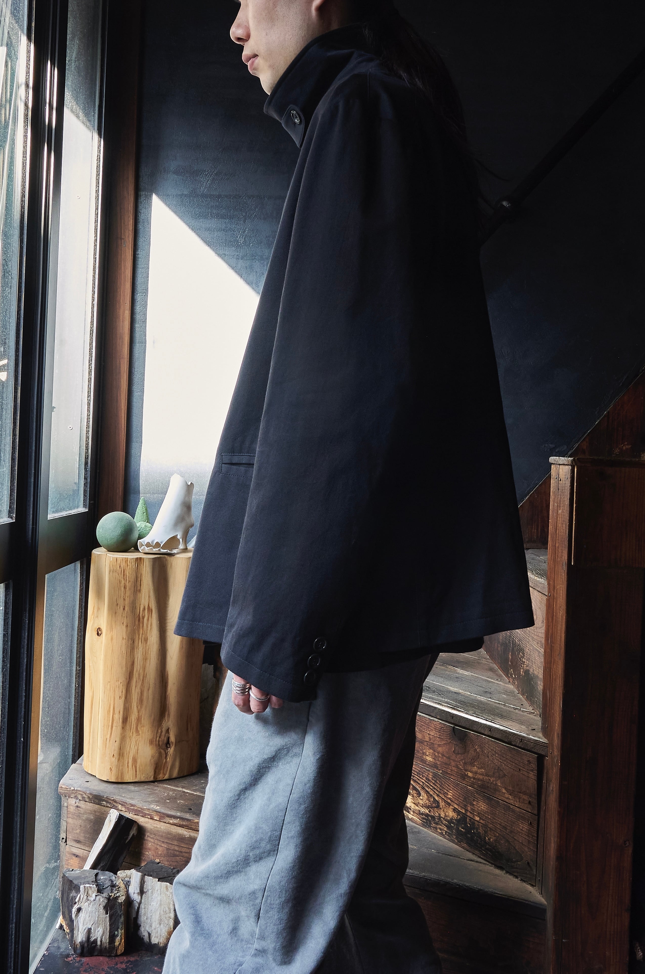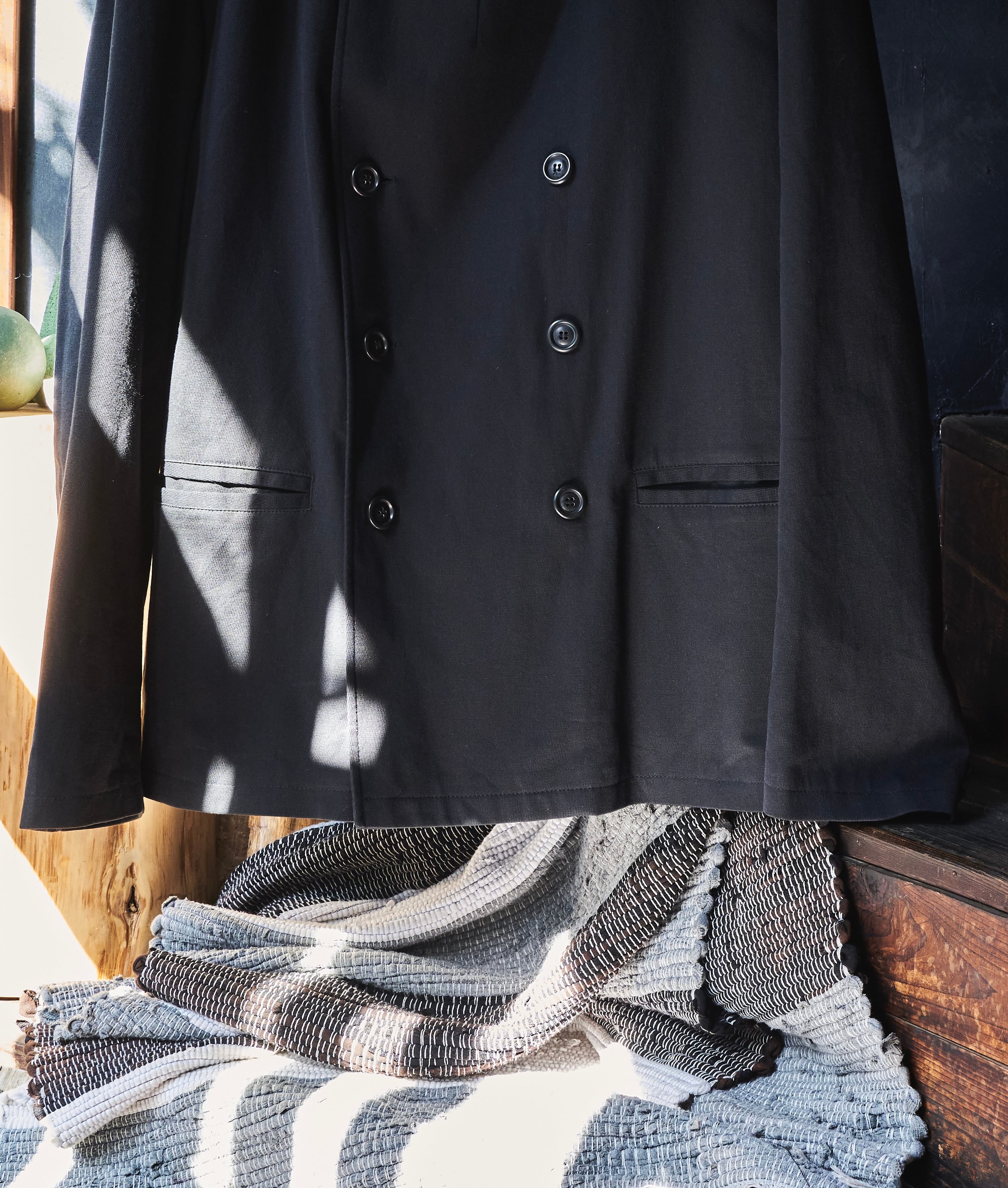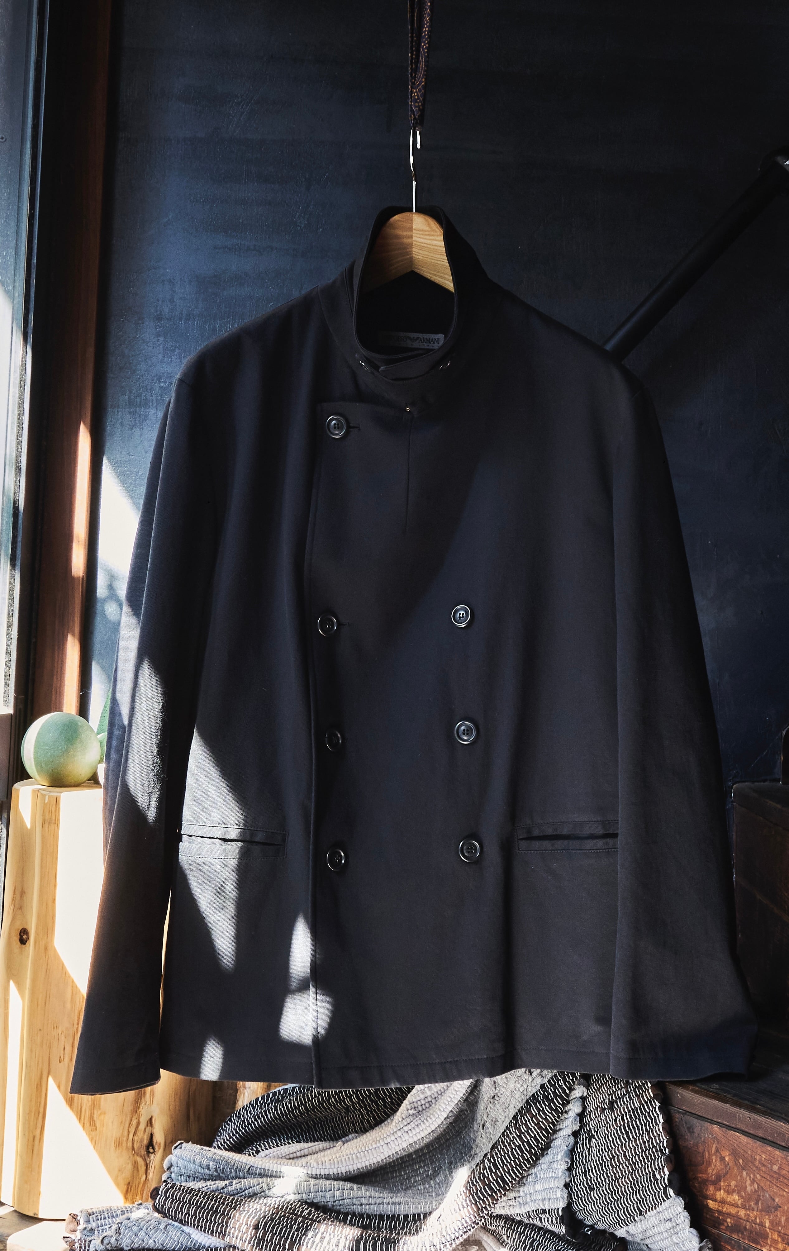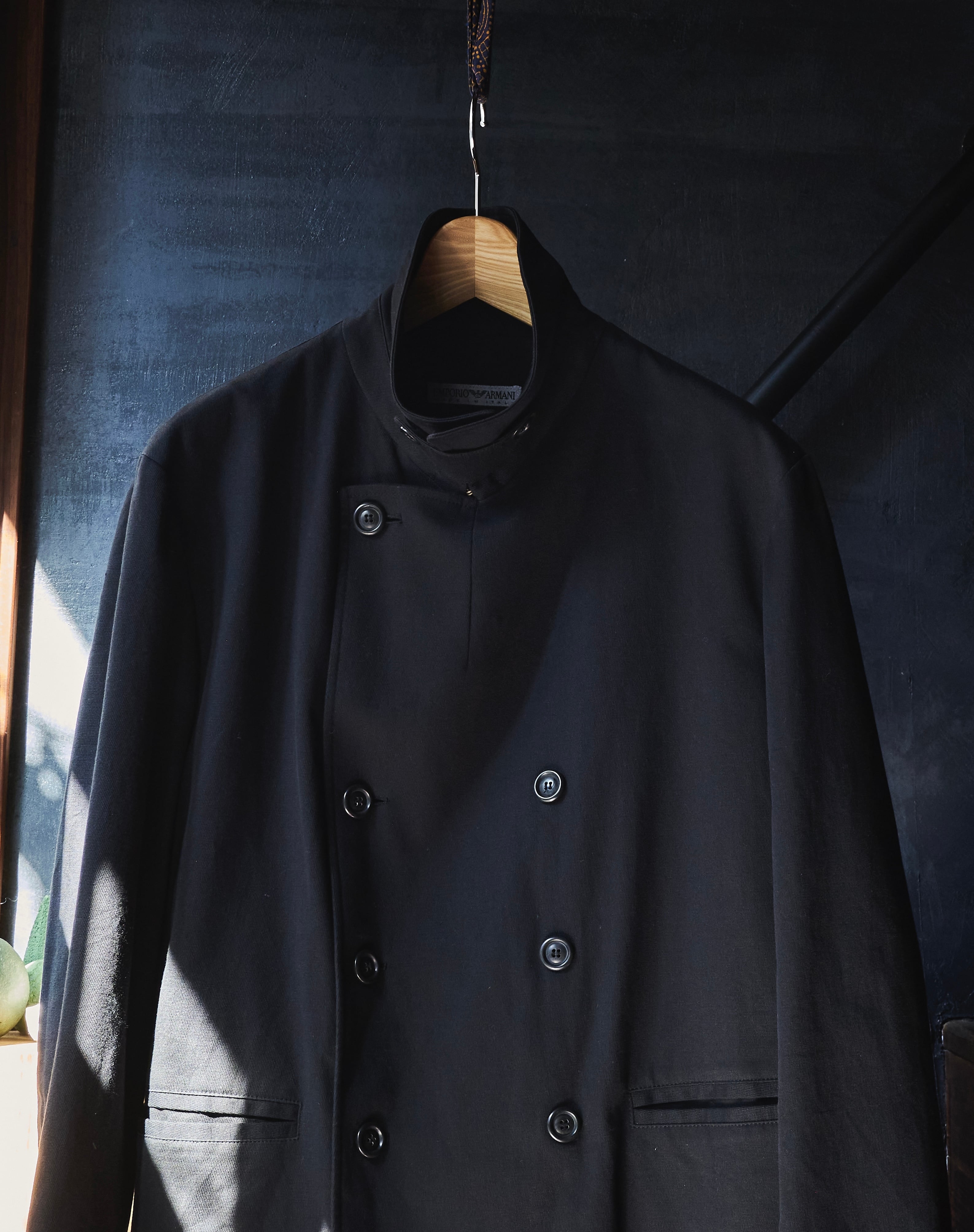 エンポリオアルマーニくんの少し硬さあり、柔らかさもあるライトオンスなコットンナイロン素材を使用したダブルブレスジャケットです。