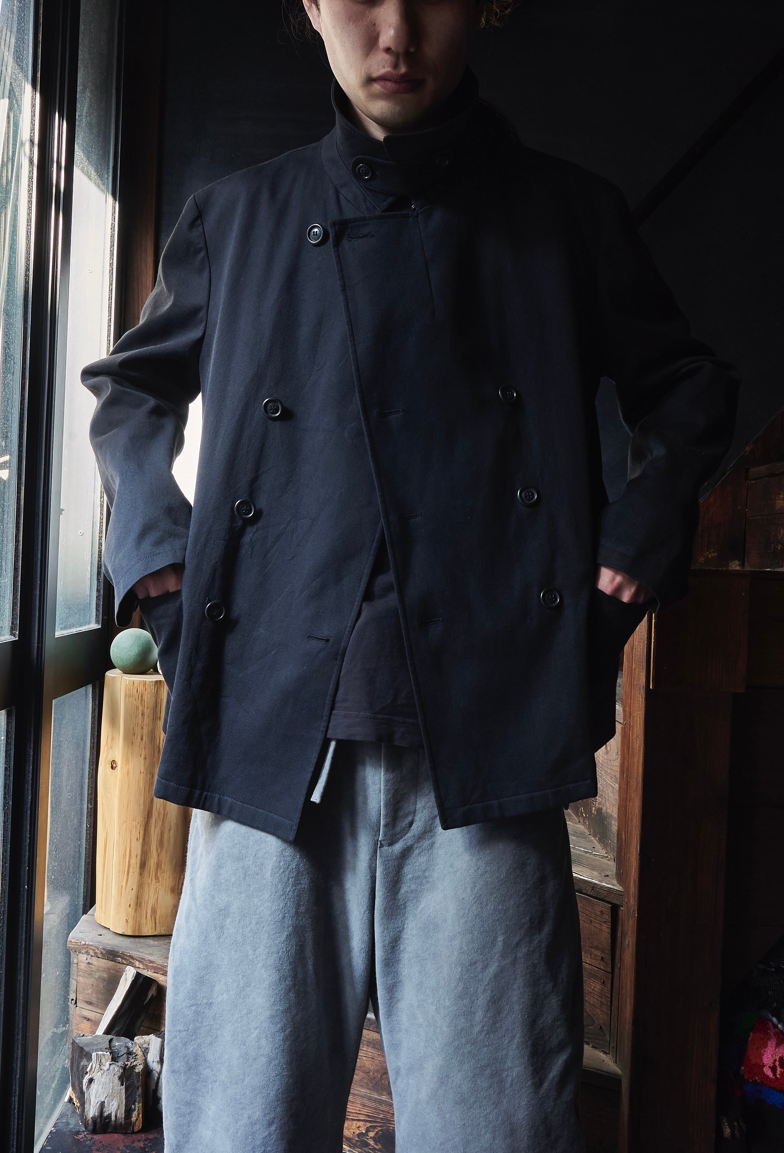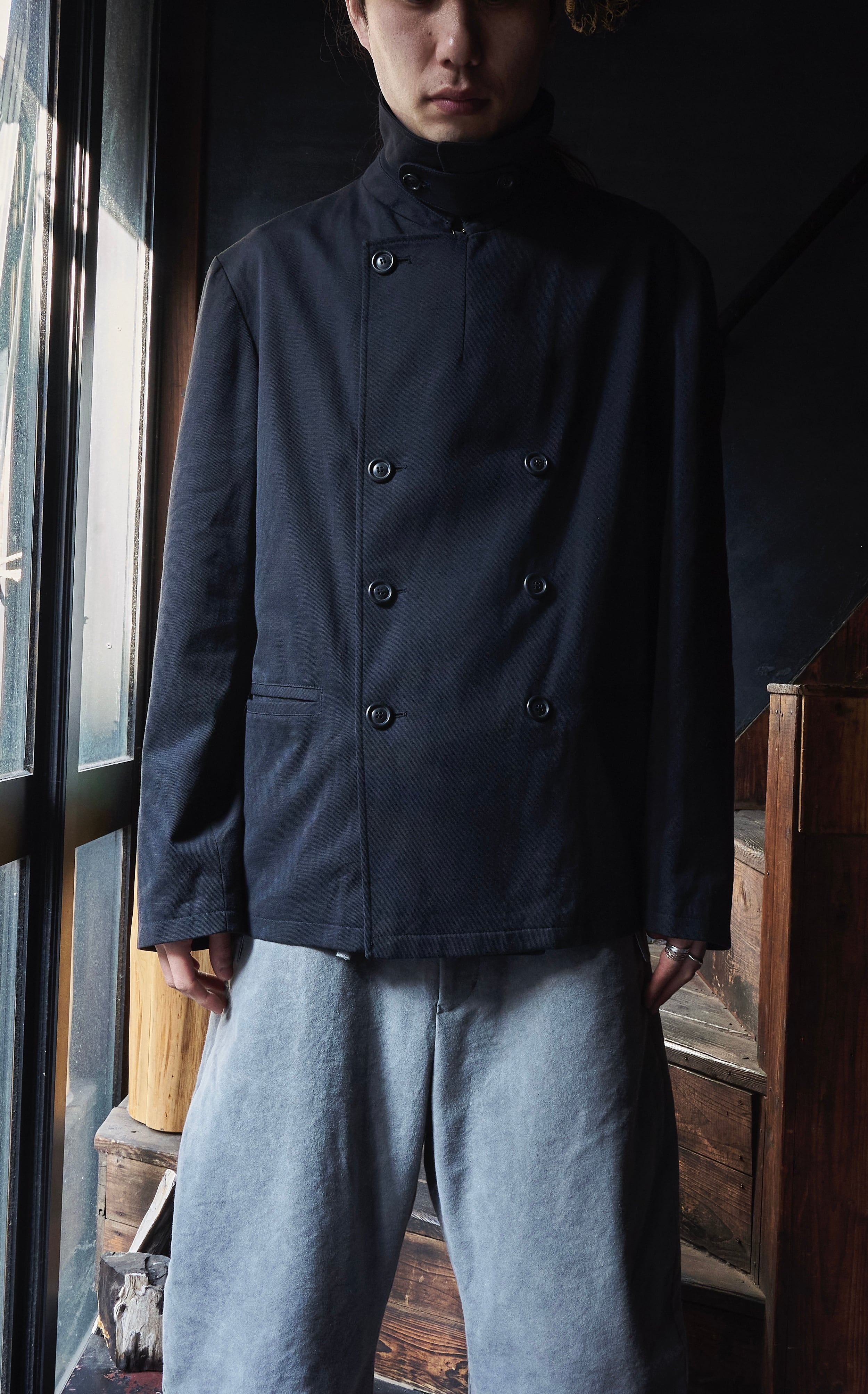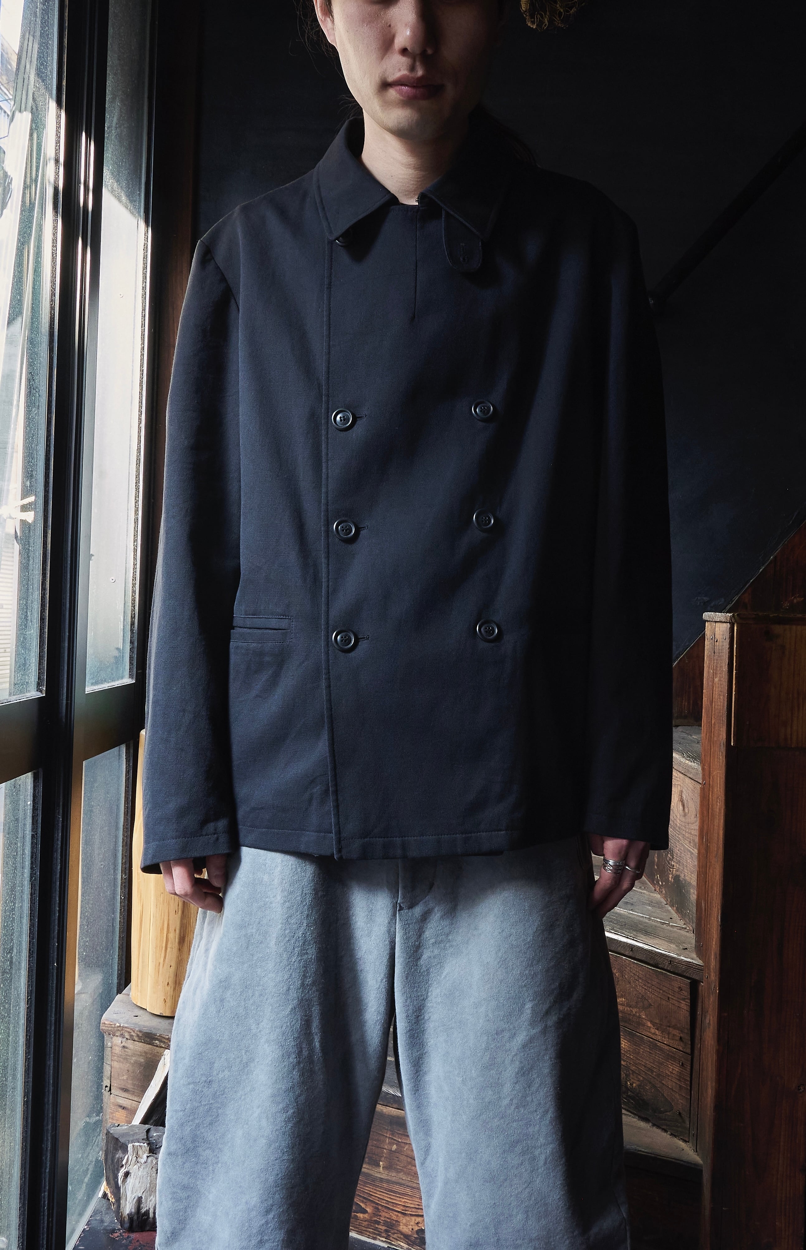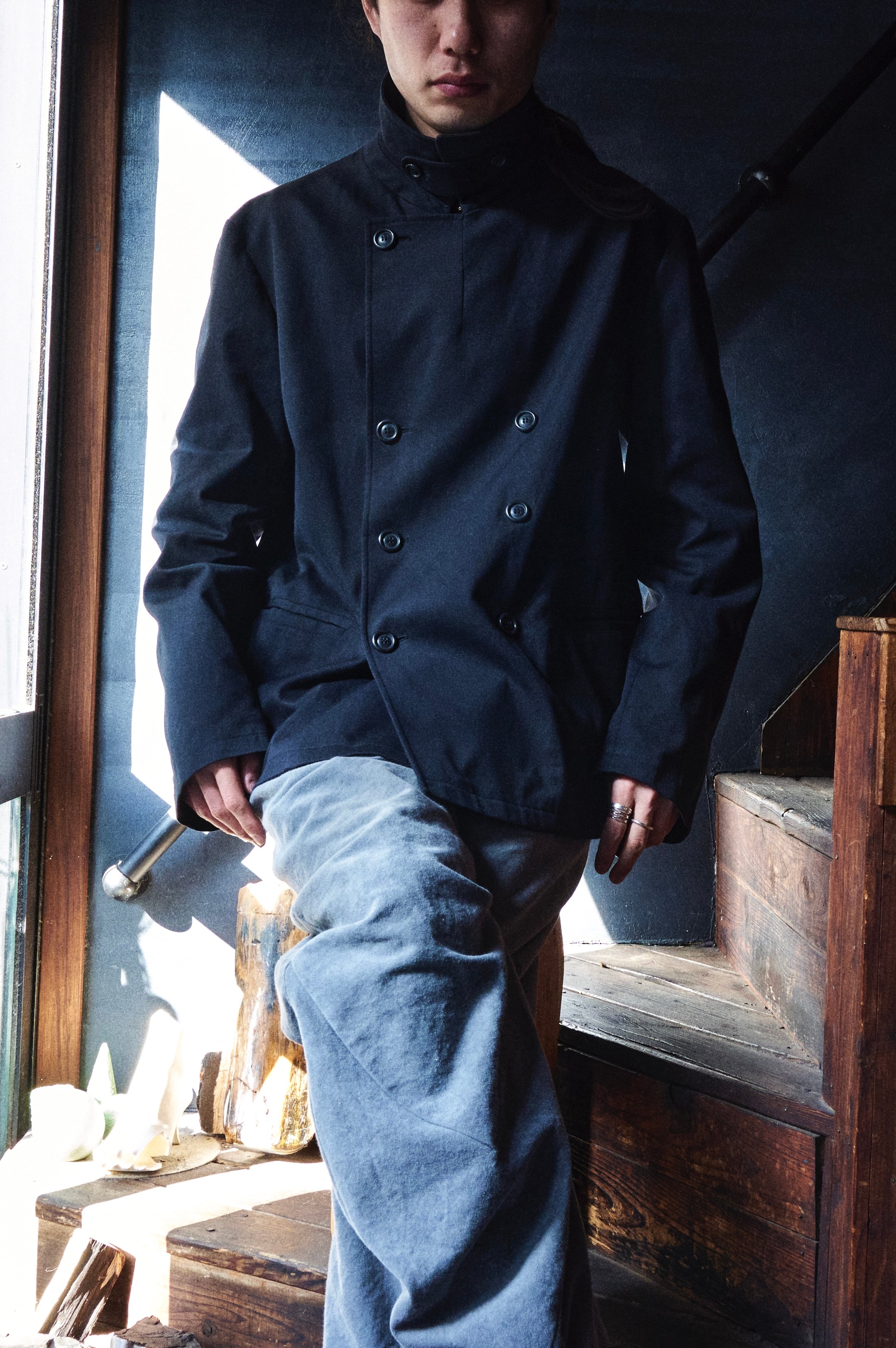 そしてミリタリー Pコートのようなダブルブレスのディテール。