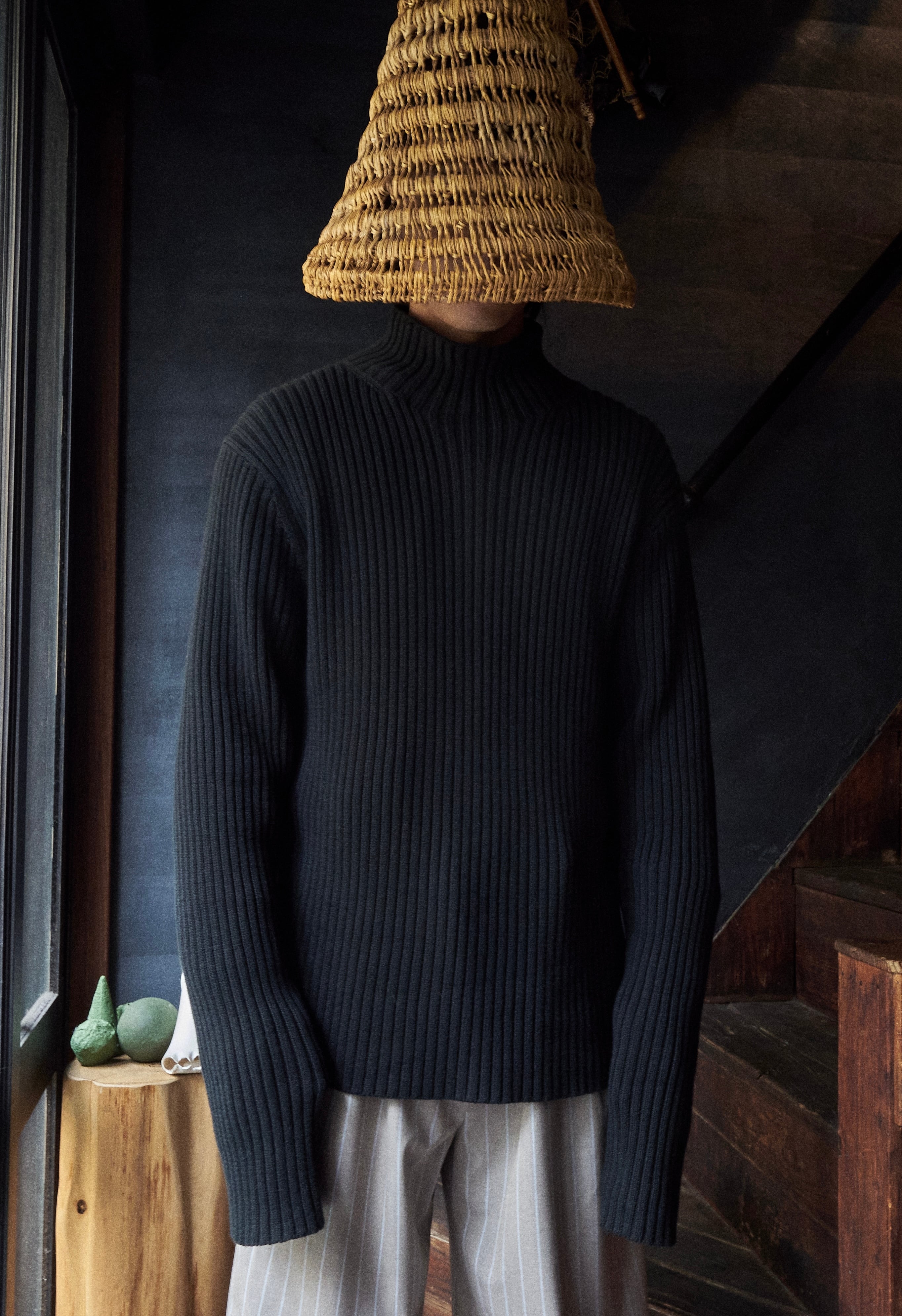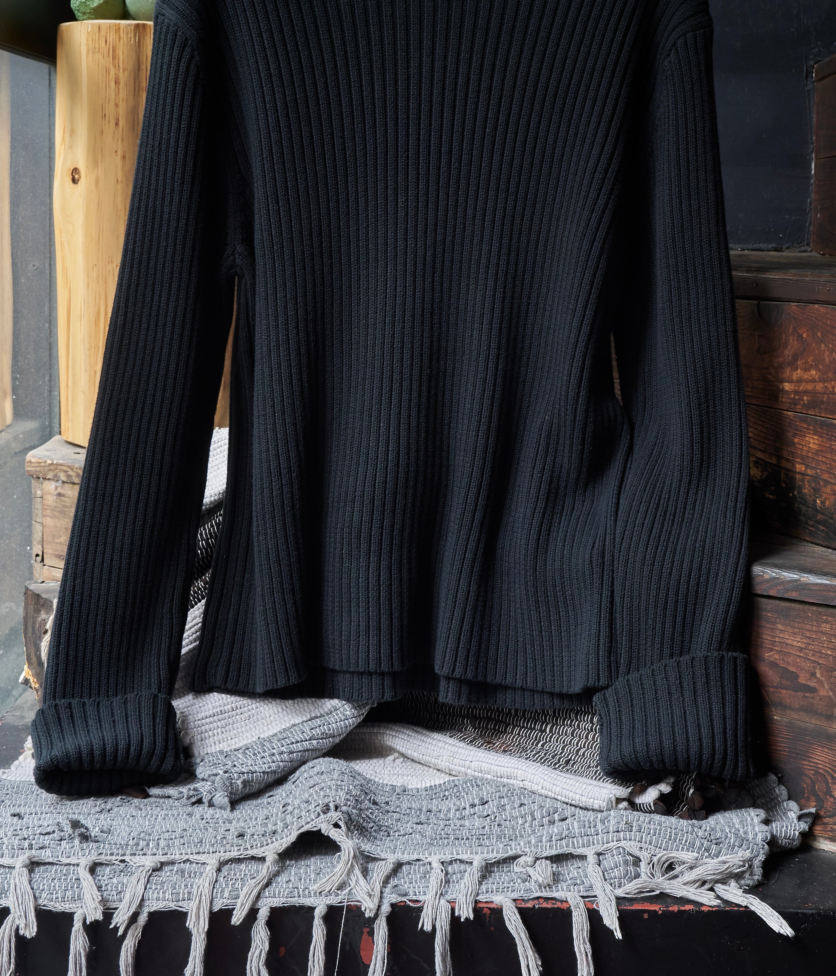 そんな中でもラルフのモックネックタイプのリブ編みニットです。