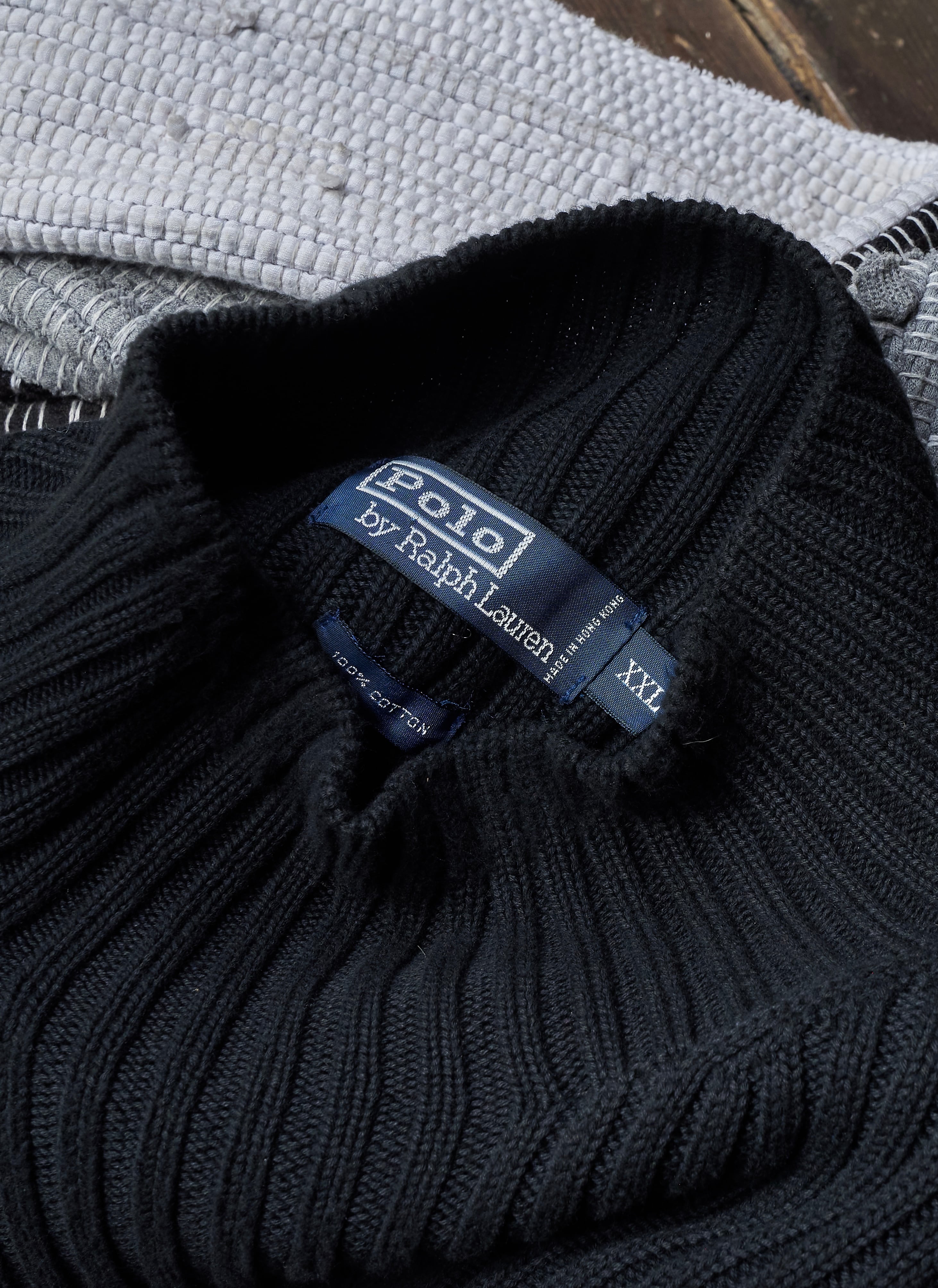 Polo by Ralph Lauren Black ribbed mock neck cotton oversized knit