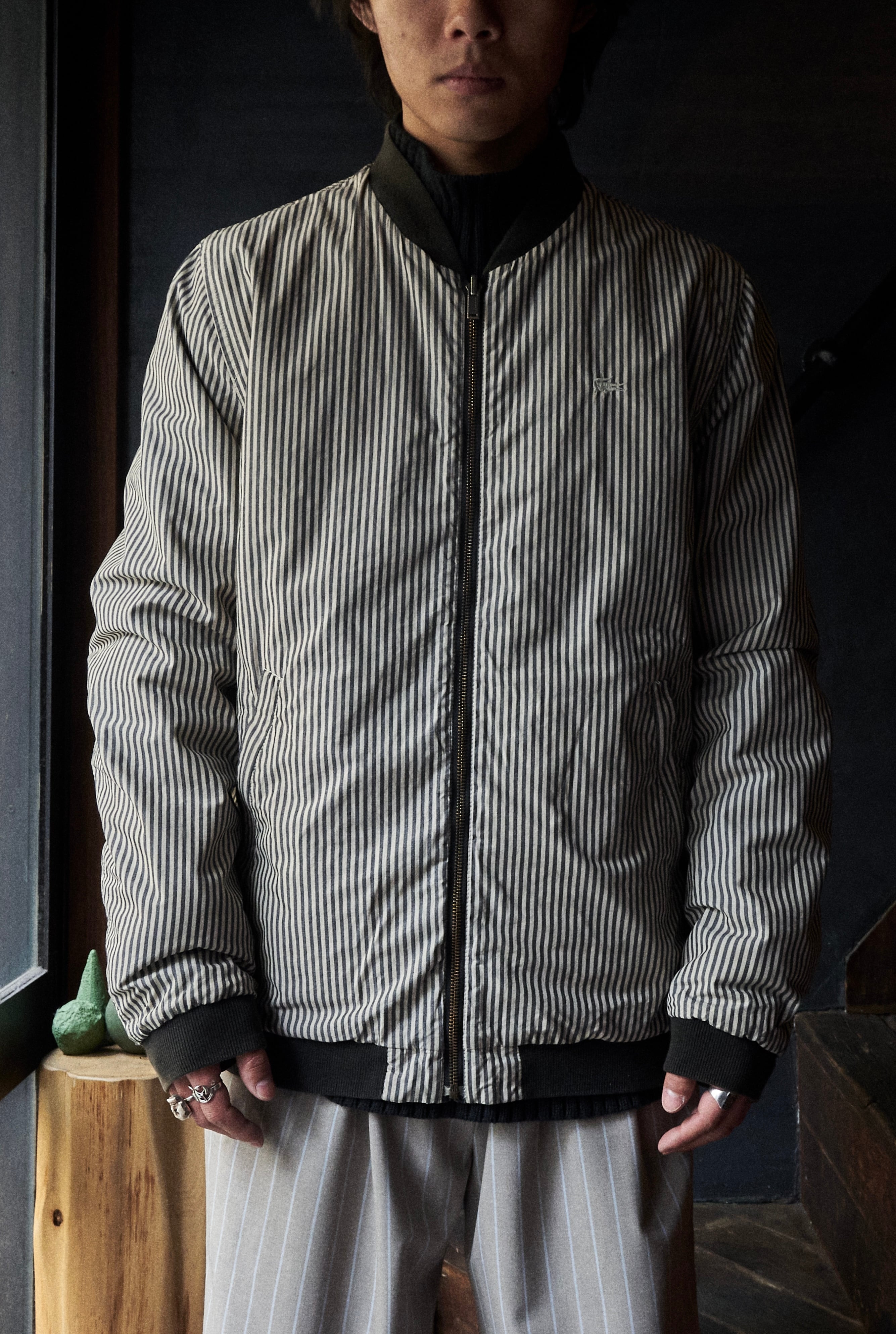 2000s euro Lacoste Striped × black reversible cotton bomber jacket