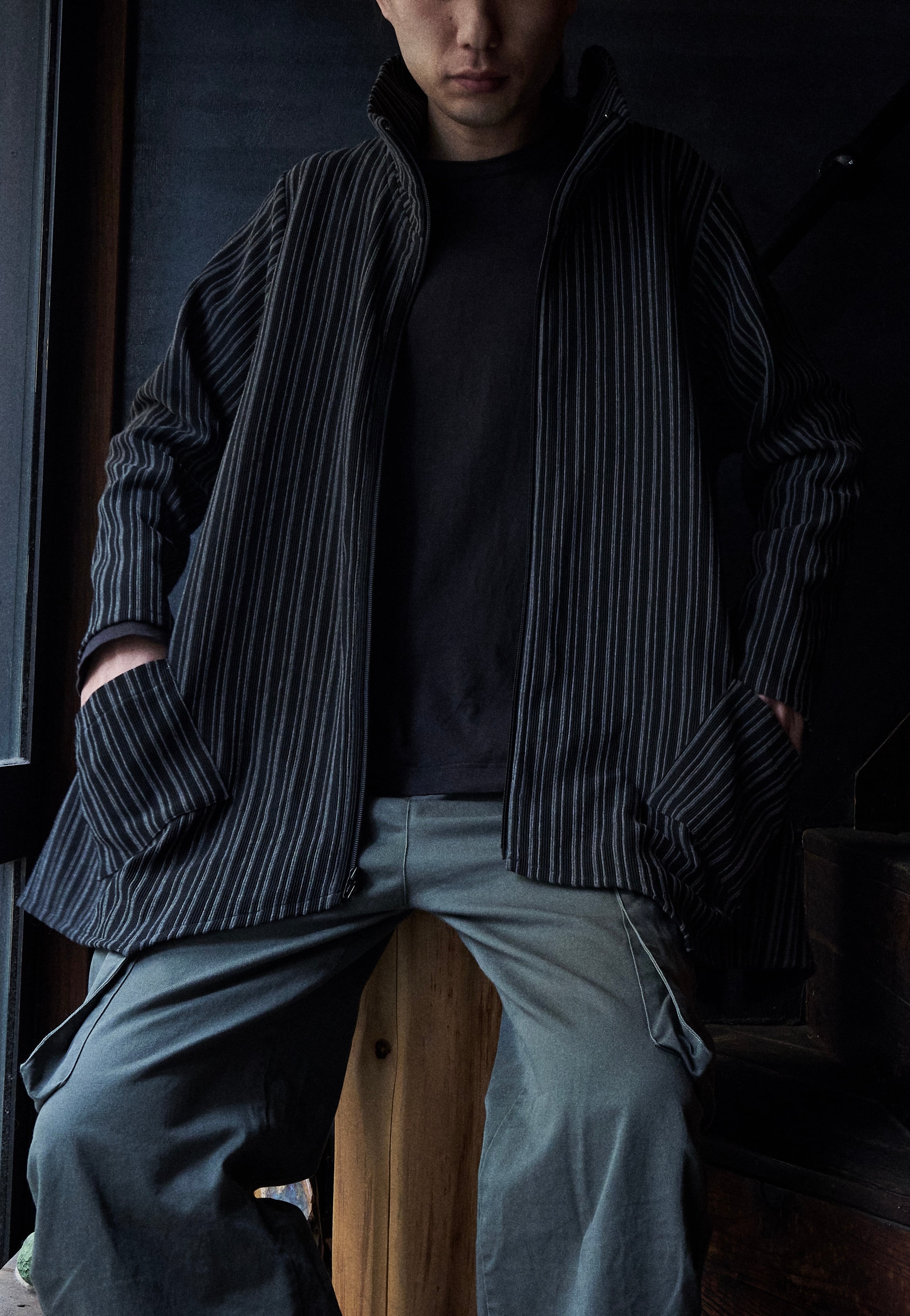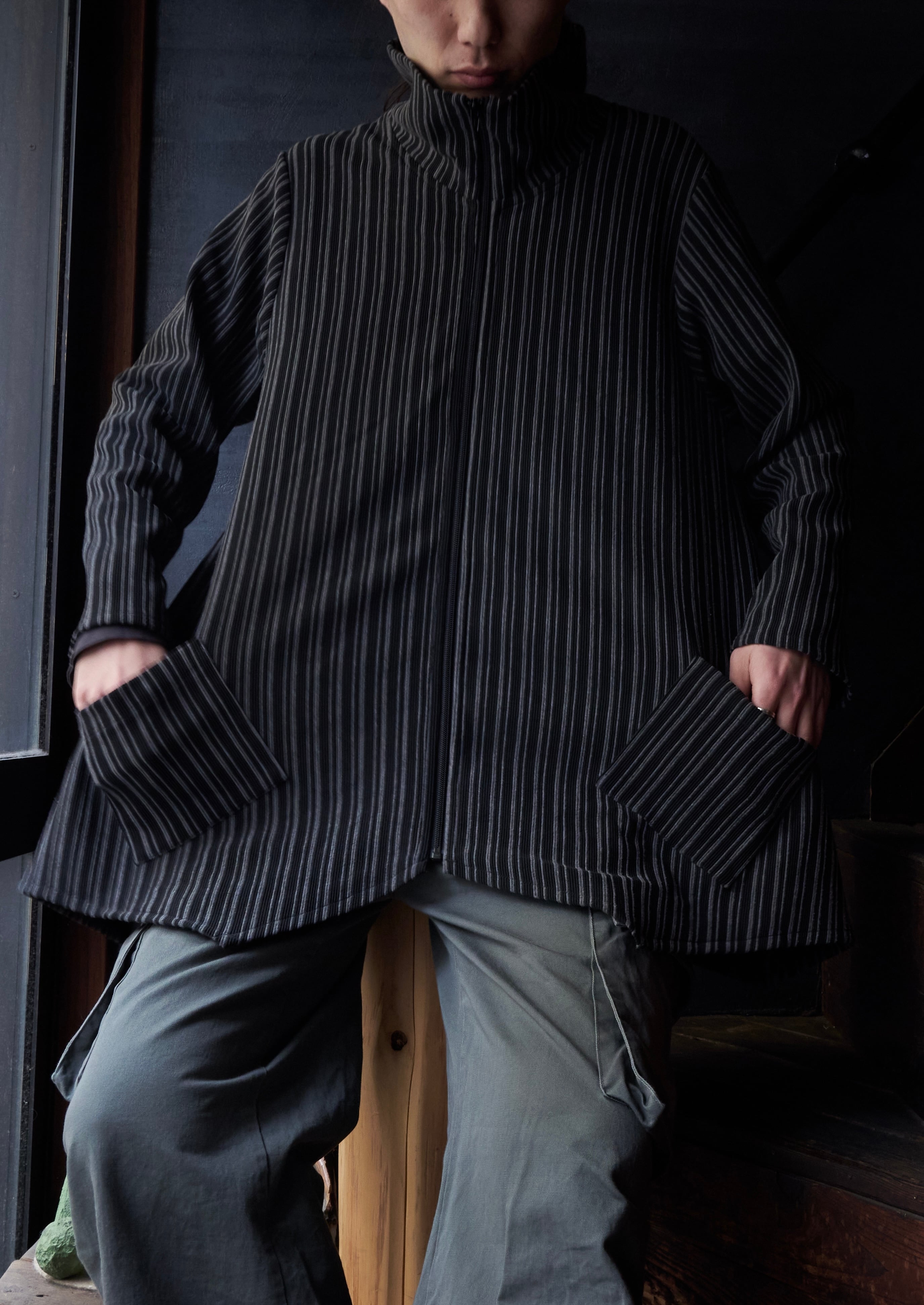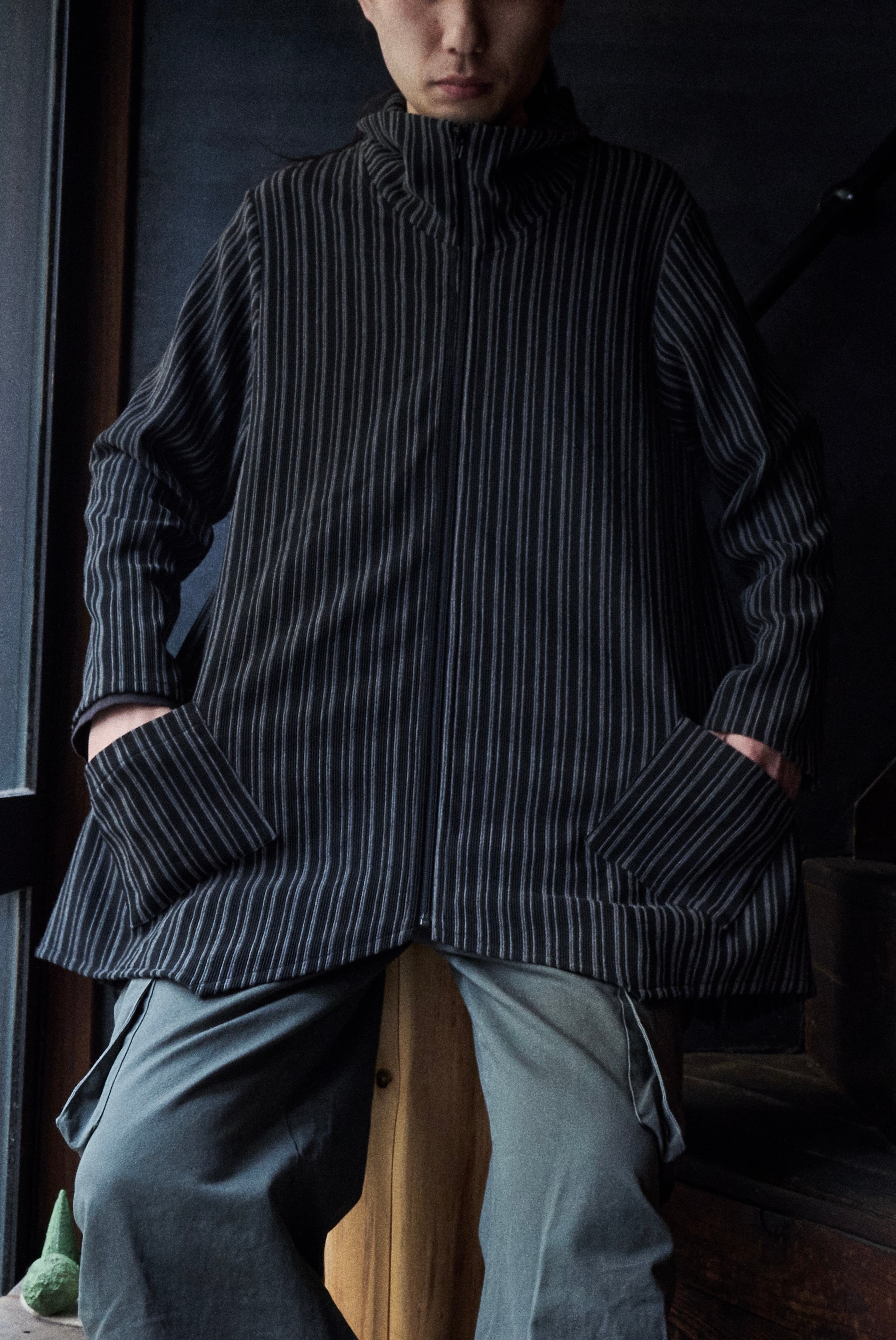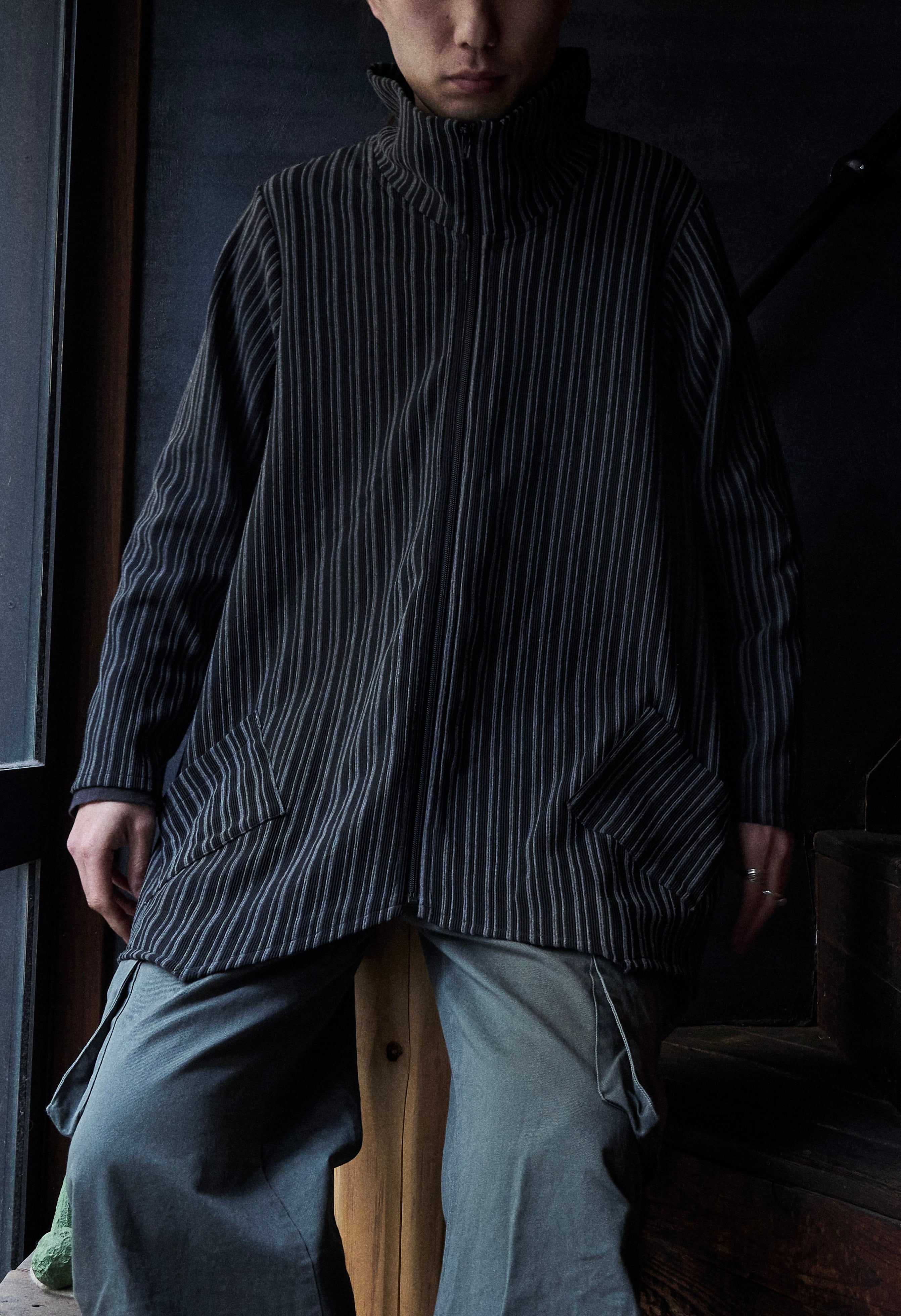 変形デザイン。シャツのような羽織りのようなジャージジャケット。