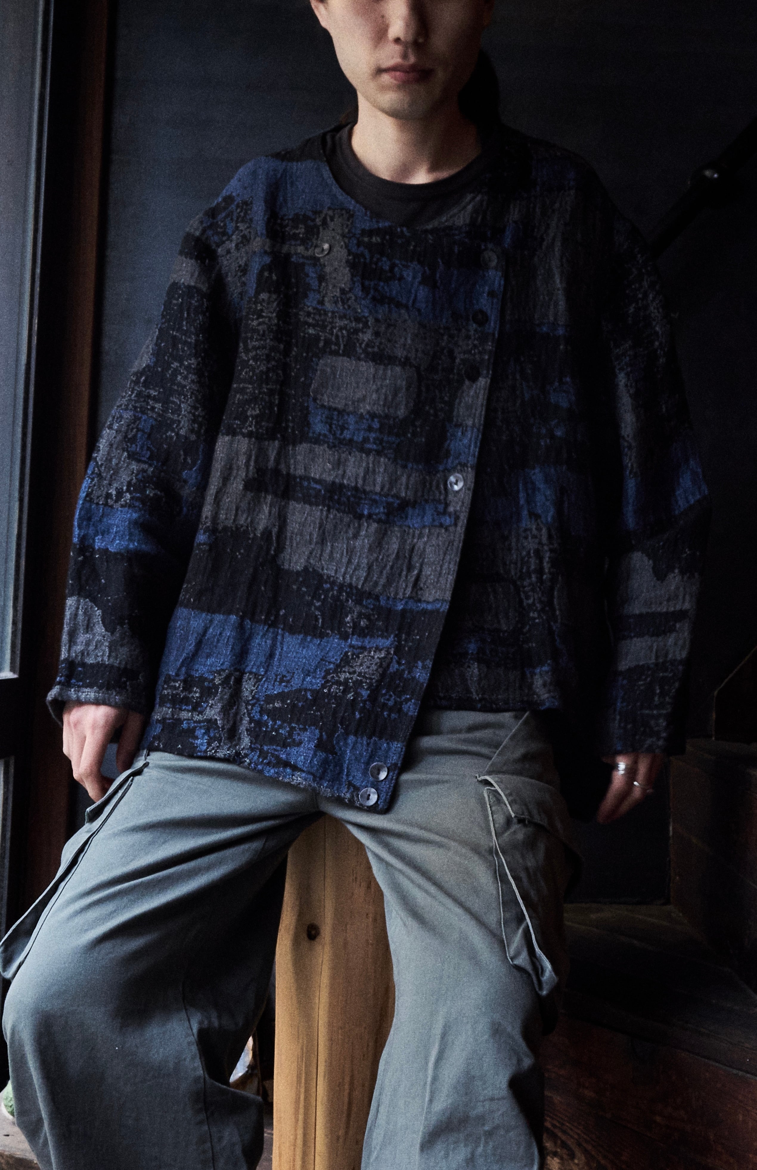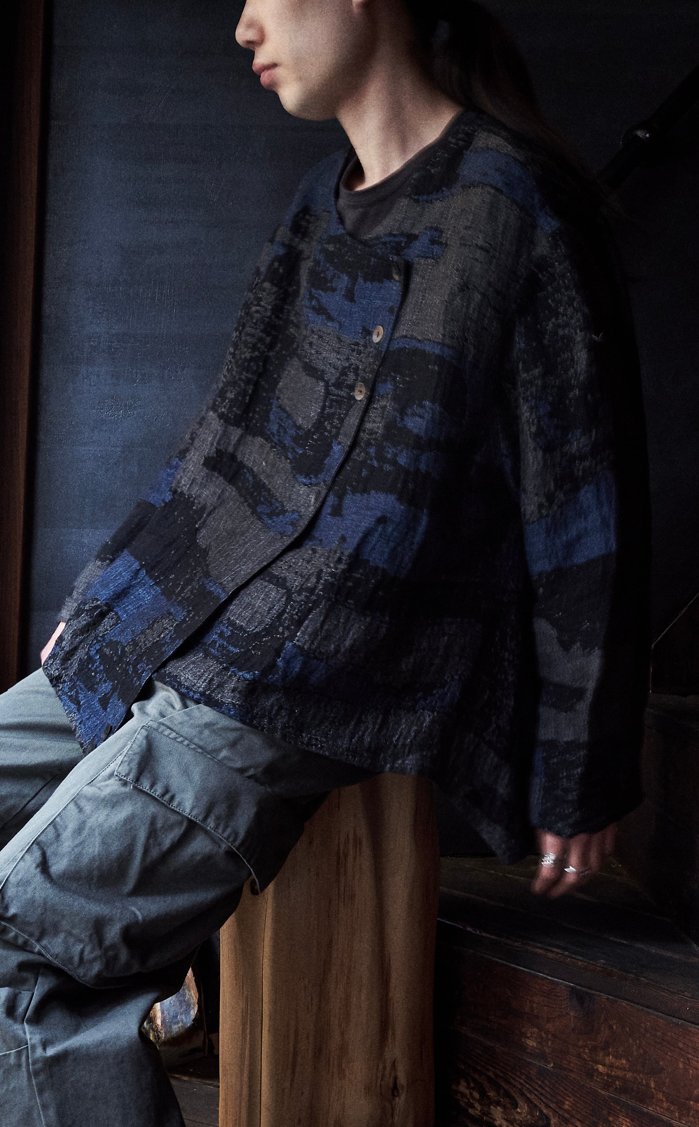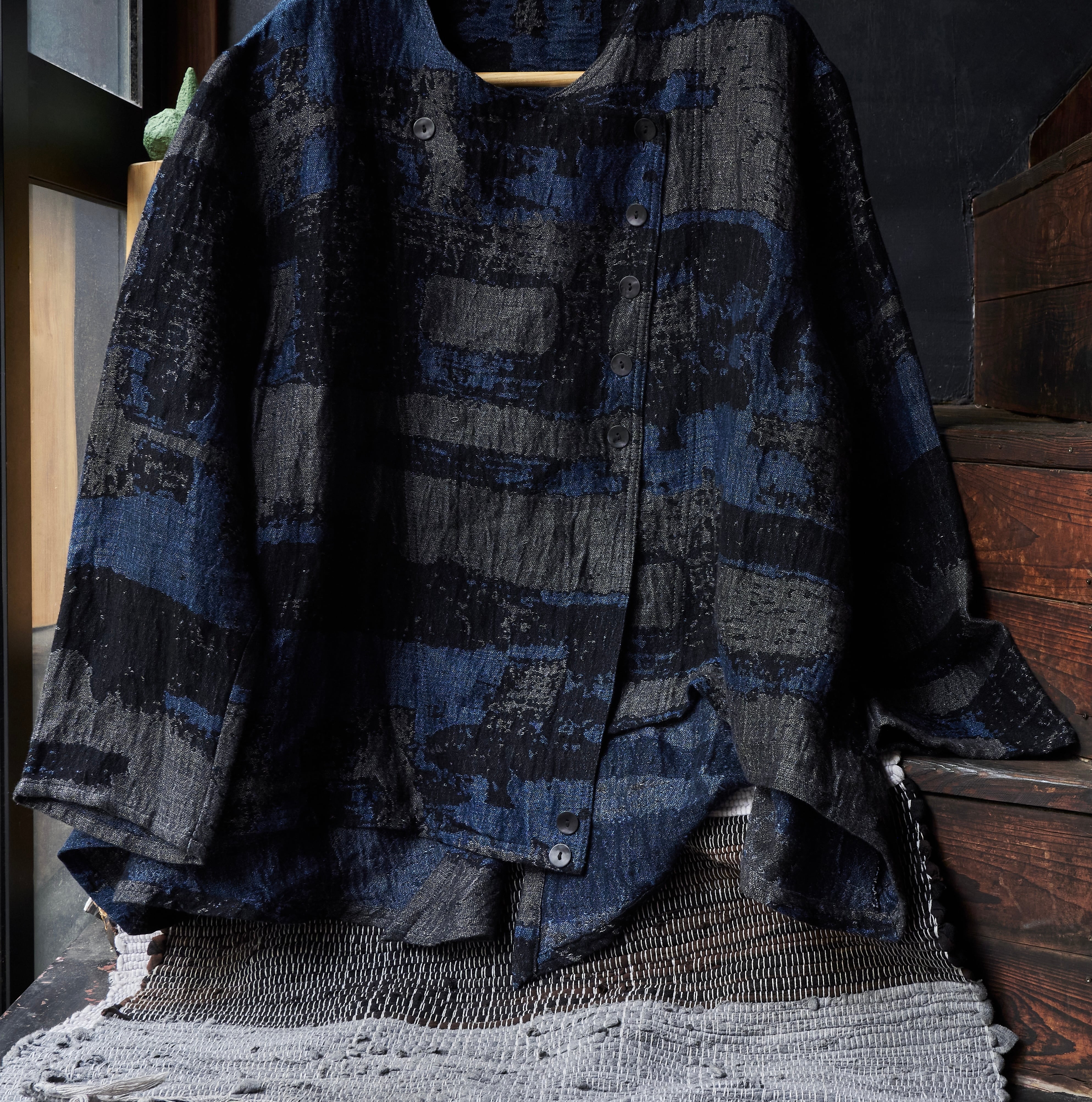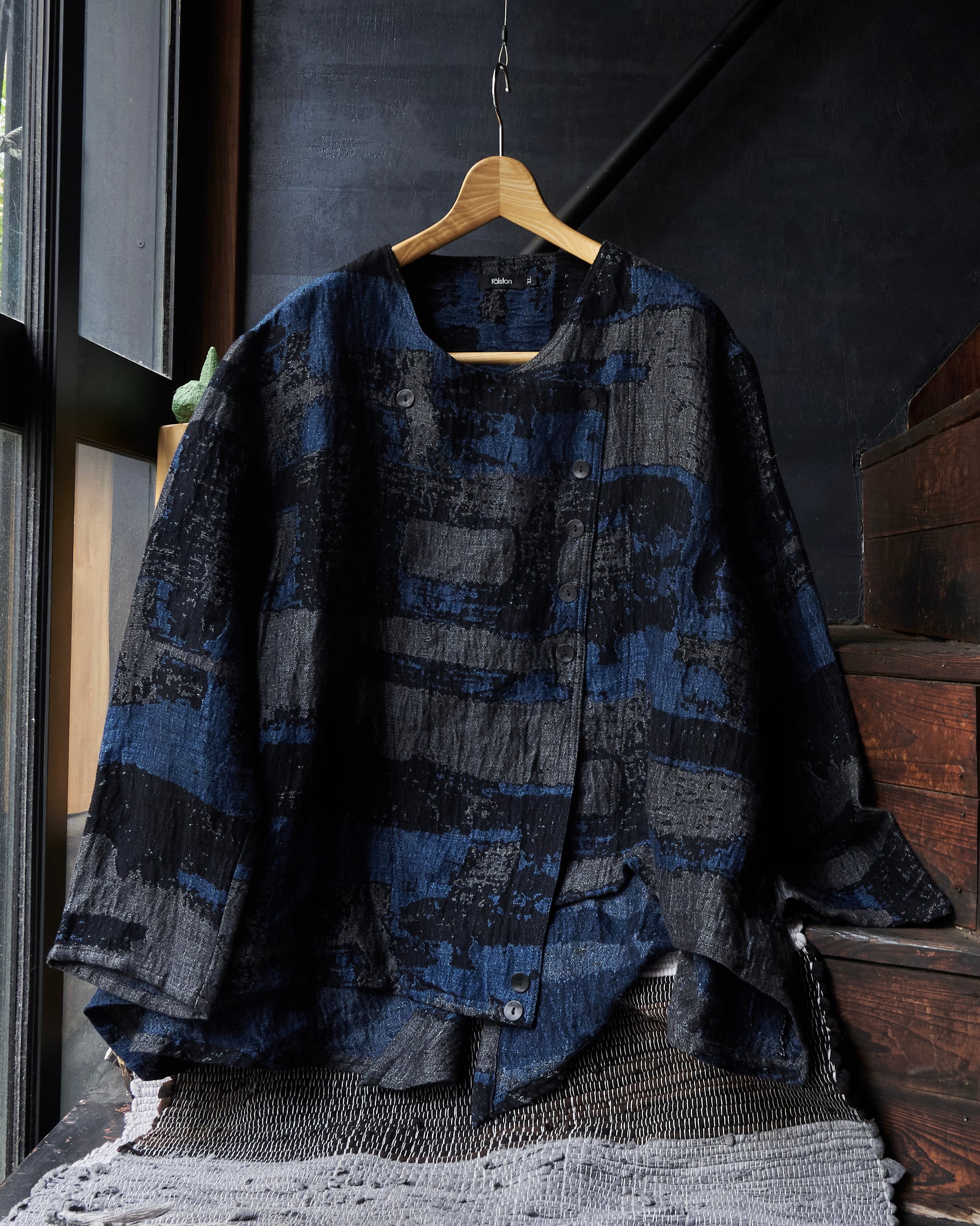 リネン×コットン×ナイロンのジャガード織りで構成された紋様は美しい絵画のよう。