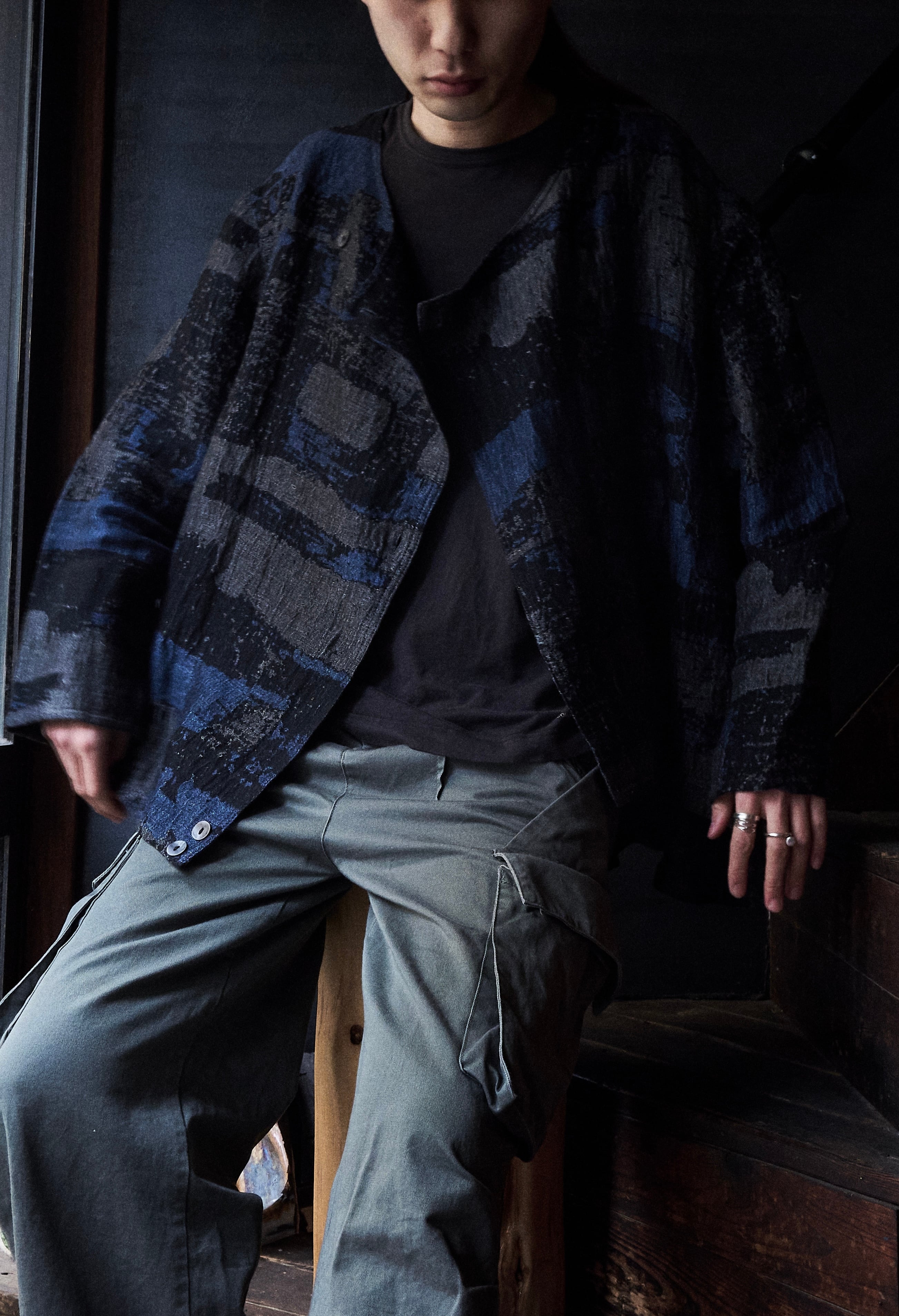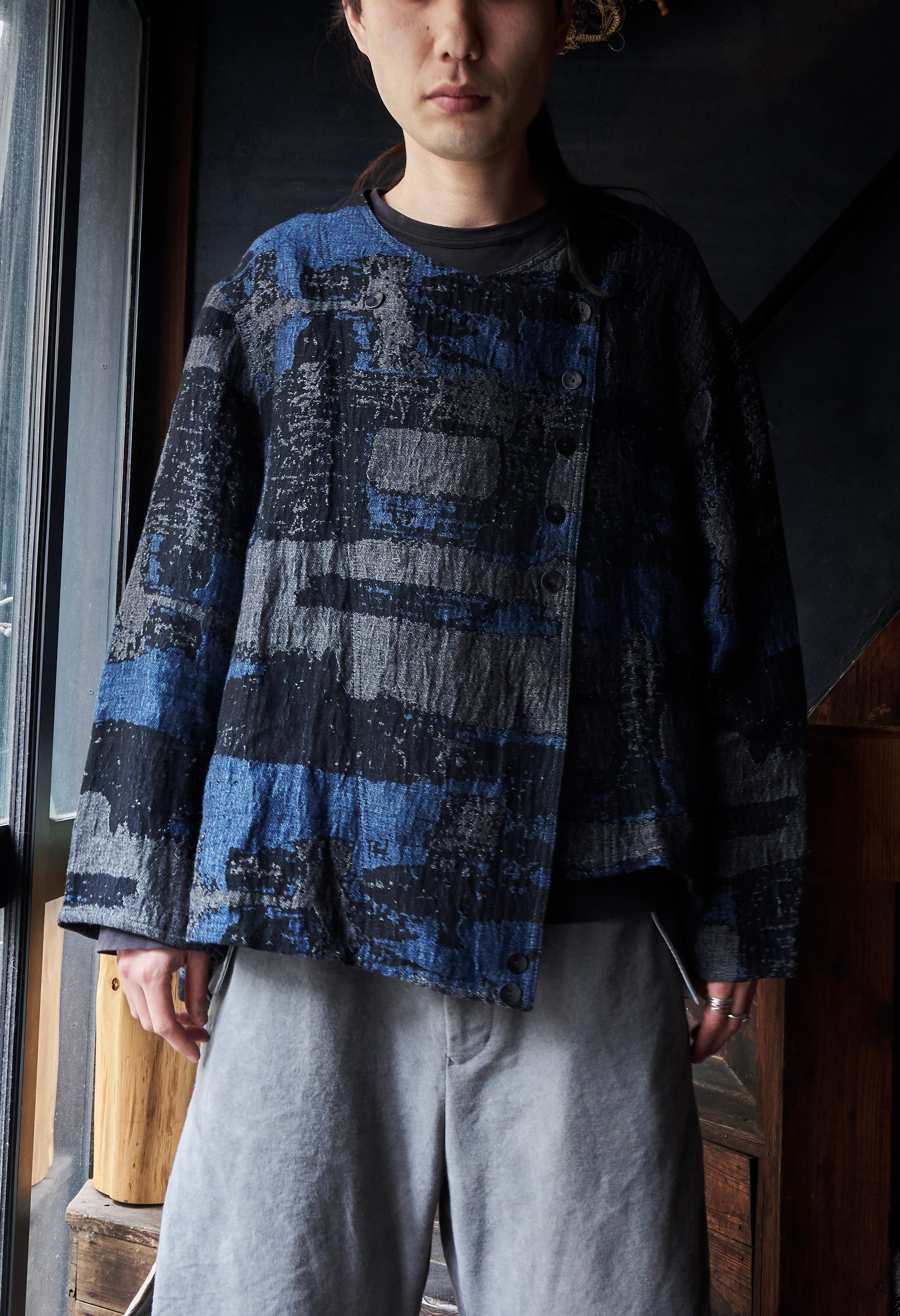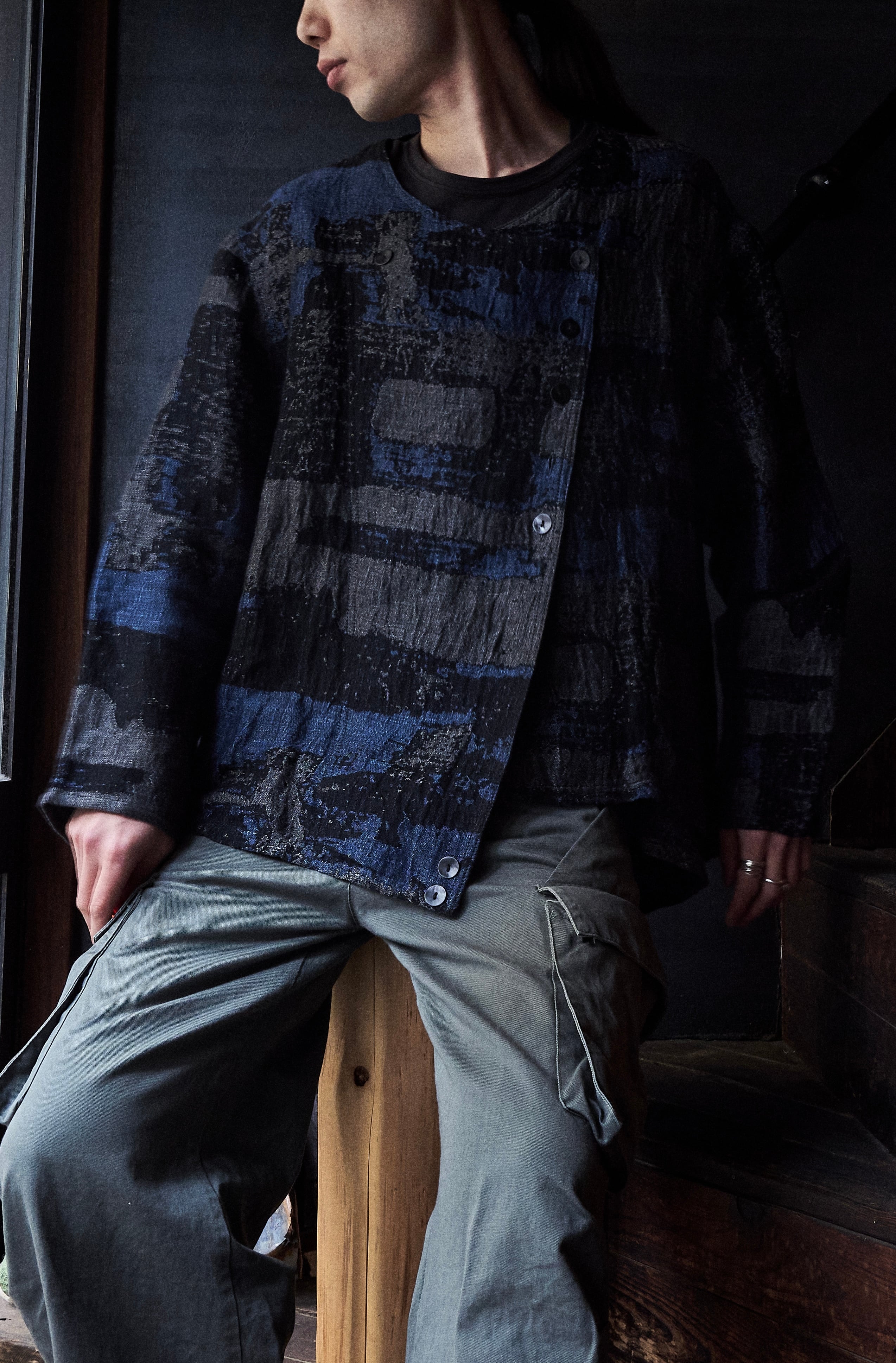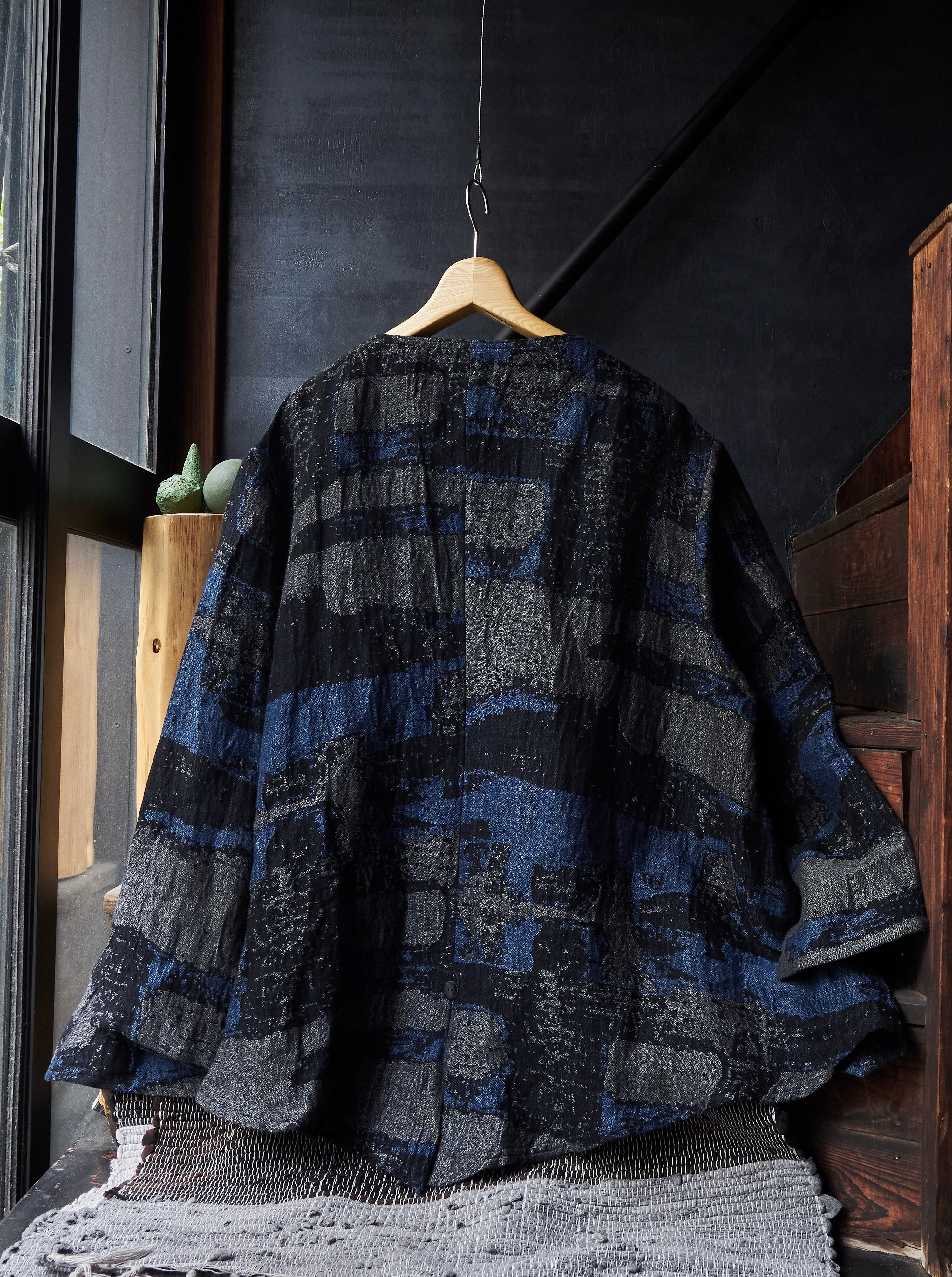 リネン×コットン×ナイロンのジャガード織りで構成された紋様は美しい絵画のよう。