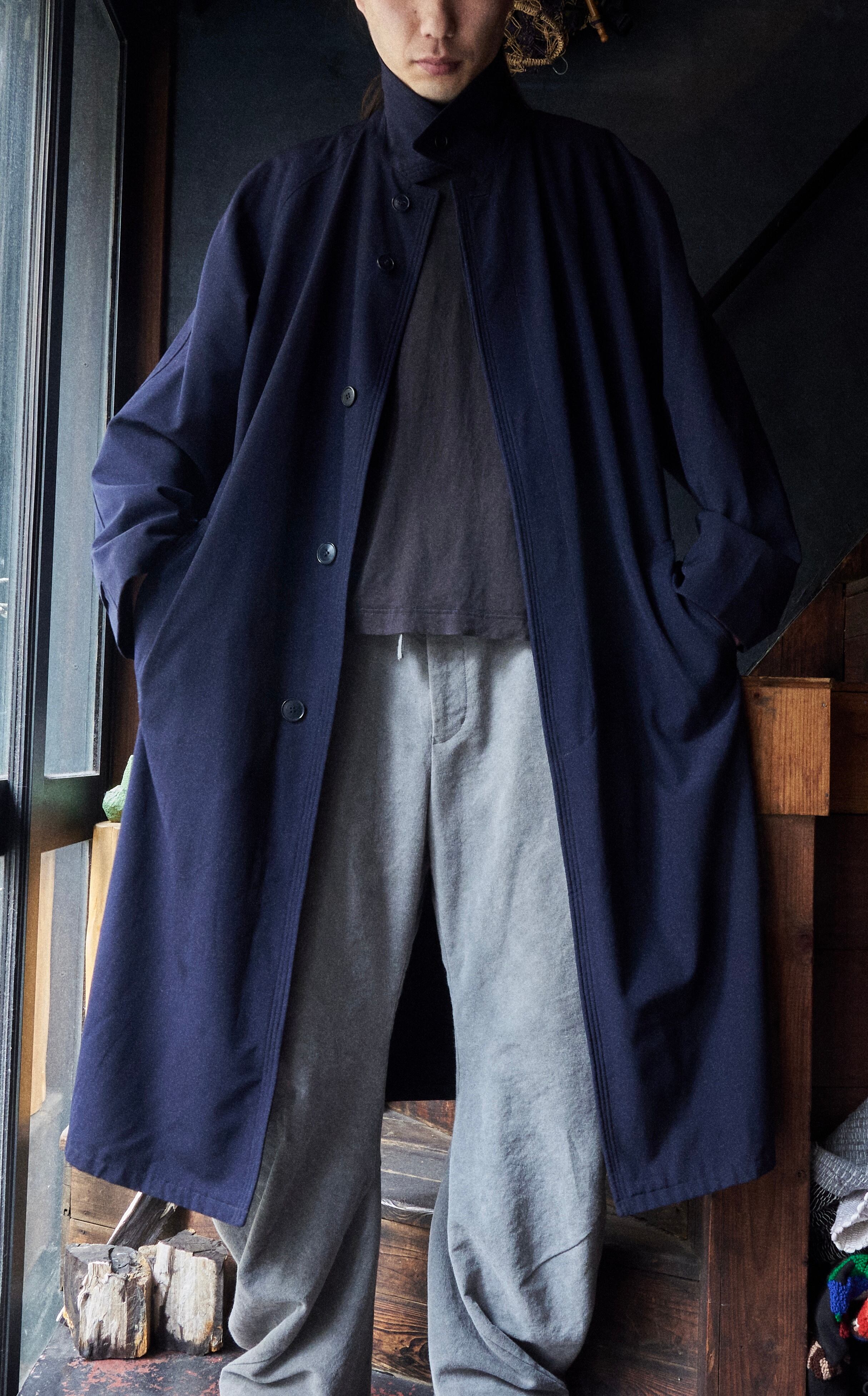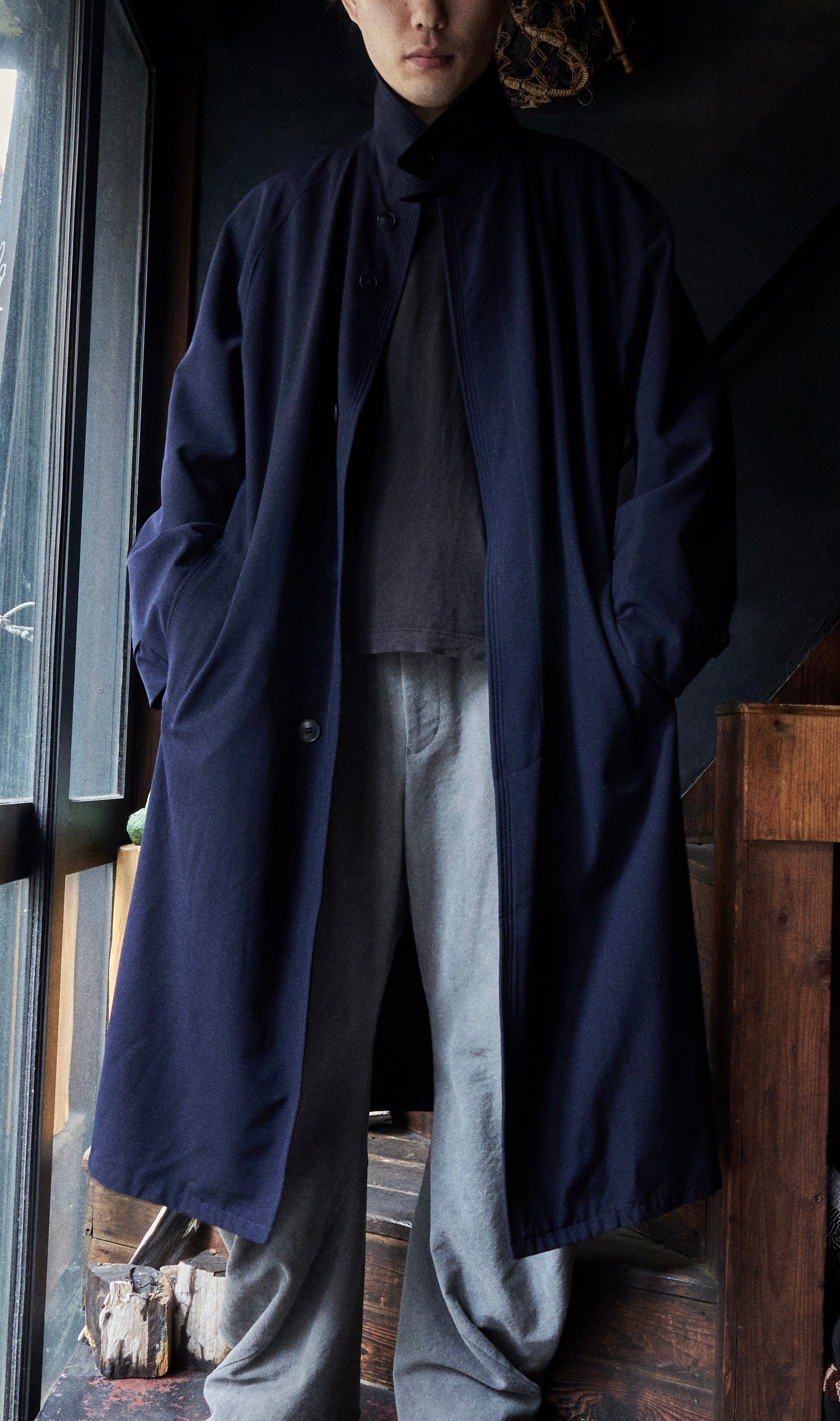 80年代アルマーニくんの高級スーツ生地系梳毛のウールを使用したバルマカンコート。