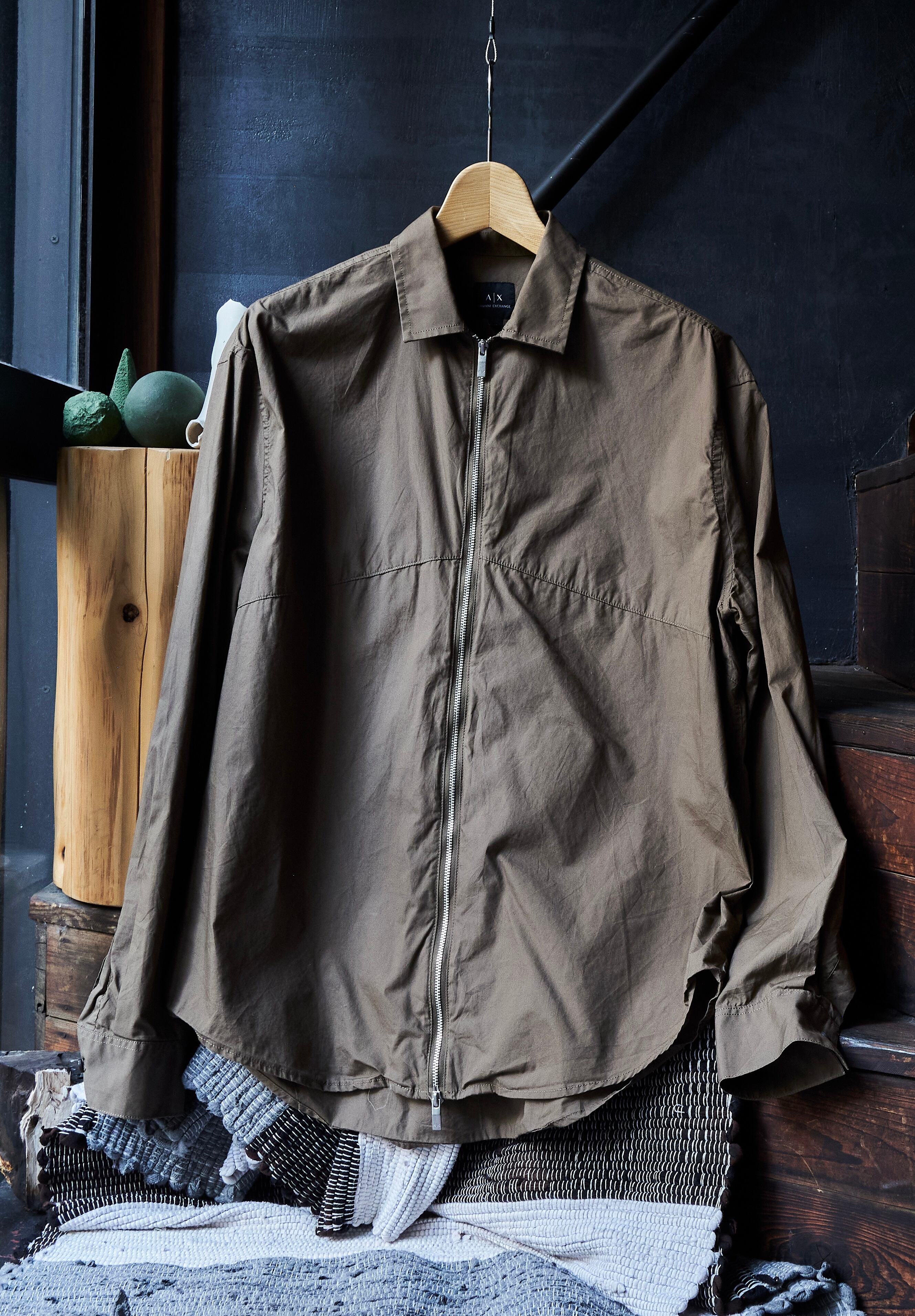 ARMANI exchange Brown double zipper pattern cotton shirt