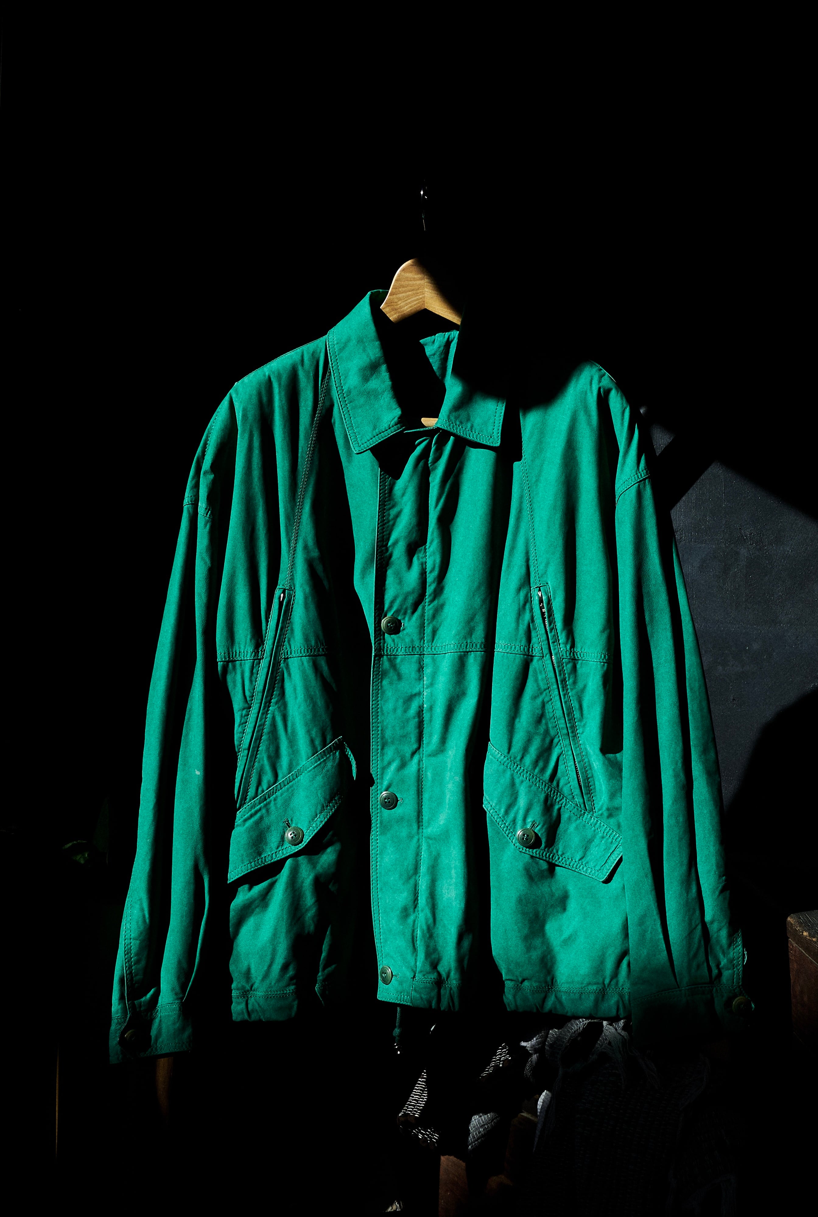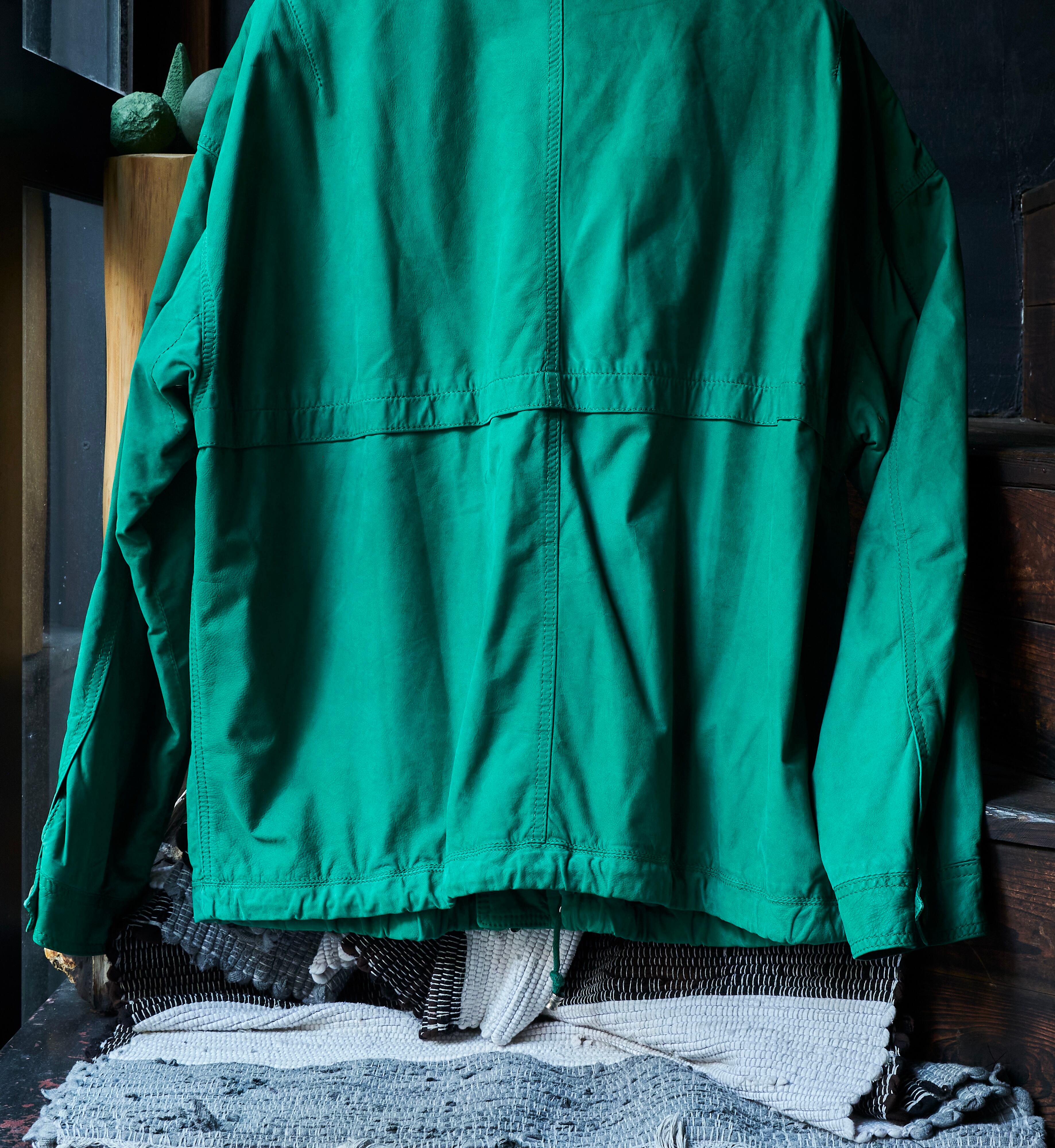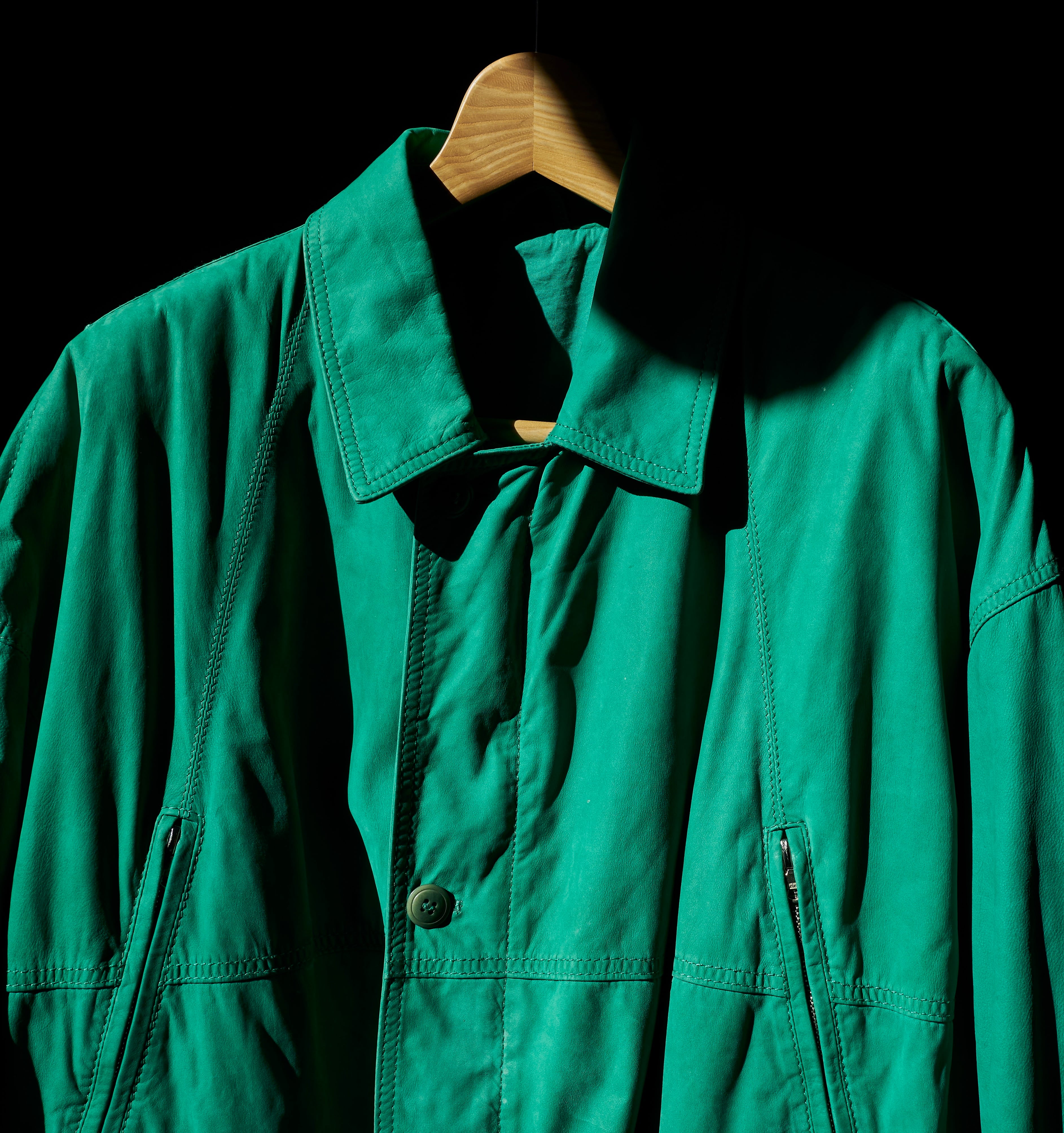 そんなルッフォの中でもかなり珍品のエメラルドグリーンのレザージャケットとなります。