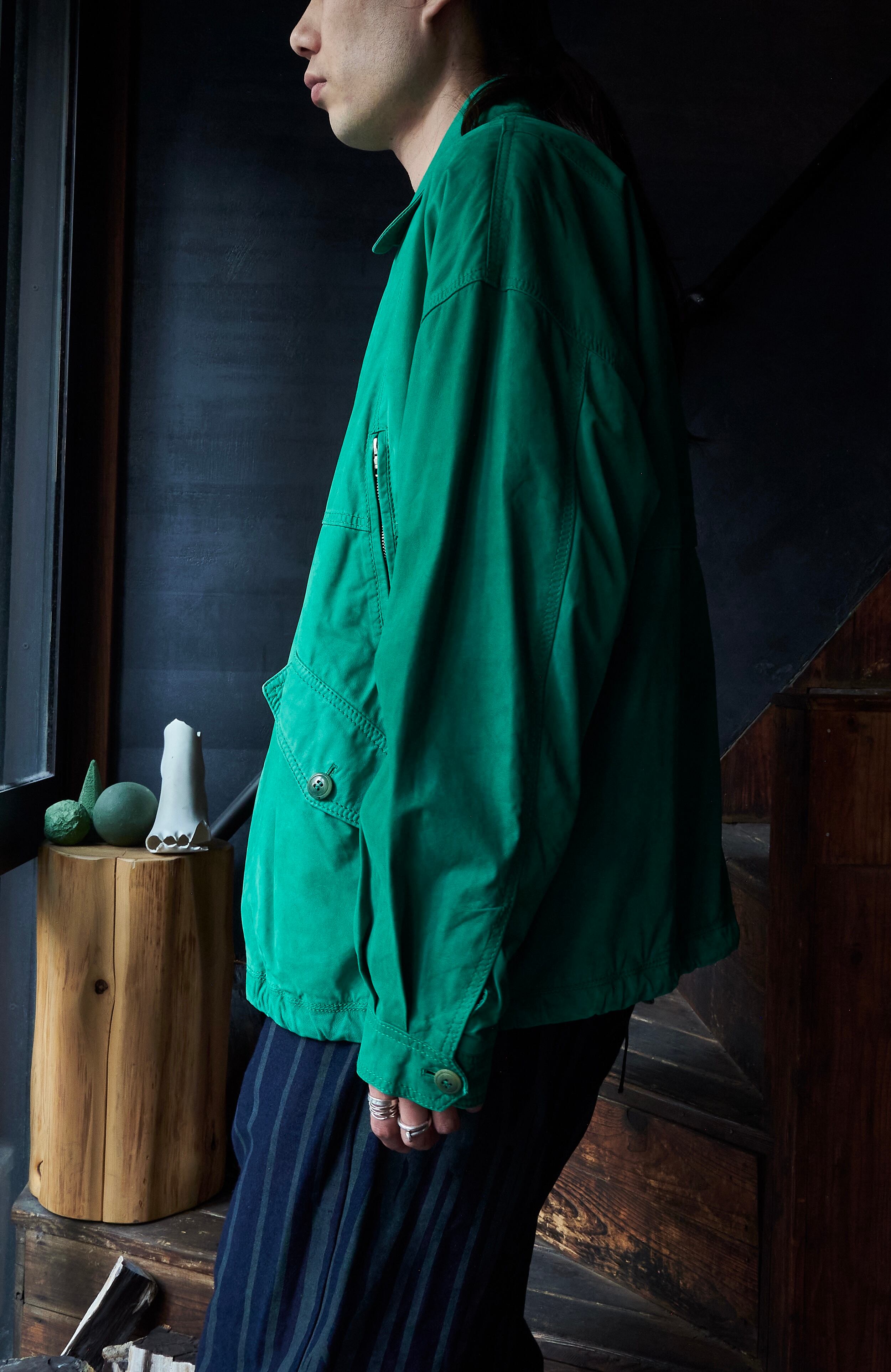 形もヨーロッパ特有のワイドシルエットに柔らかいラムレザーで変態カラーだけど着ている本人にしか分からない包み込まれるような良さがあります。