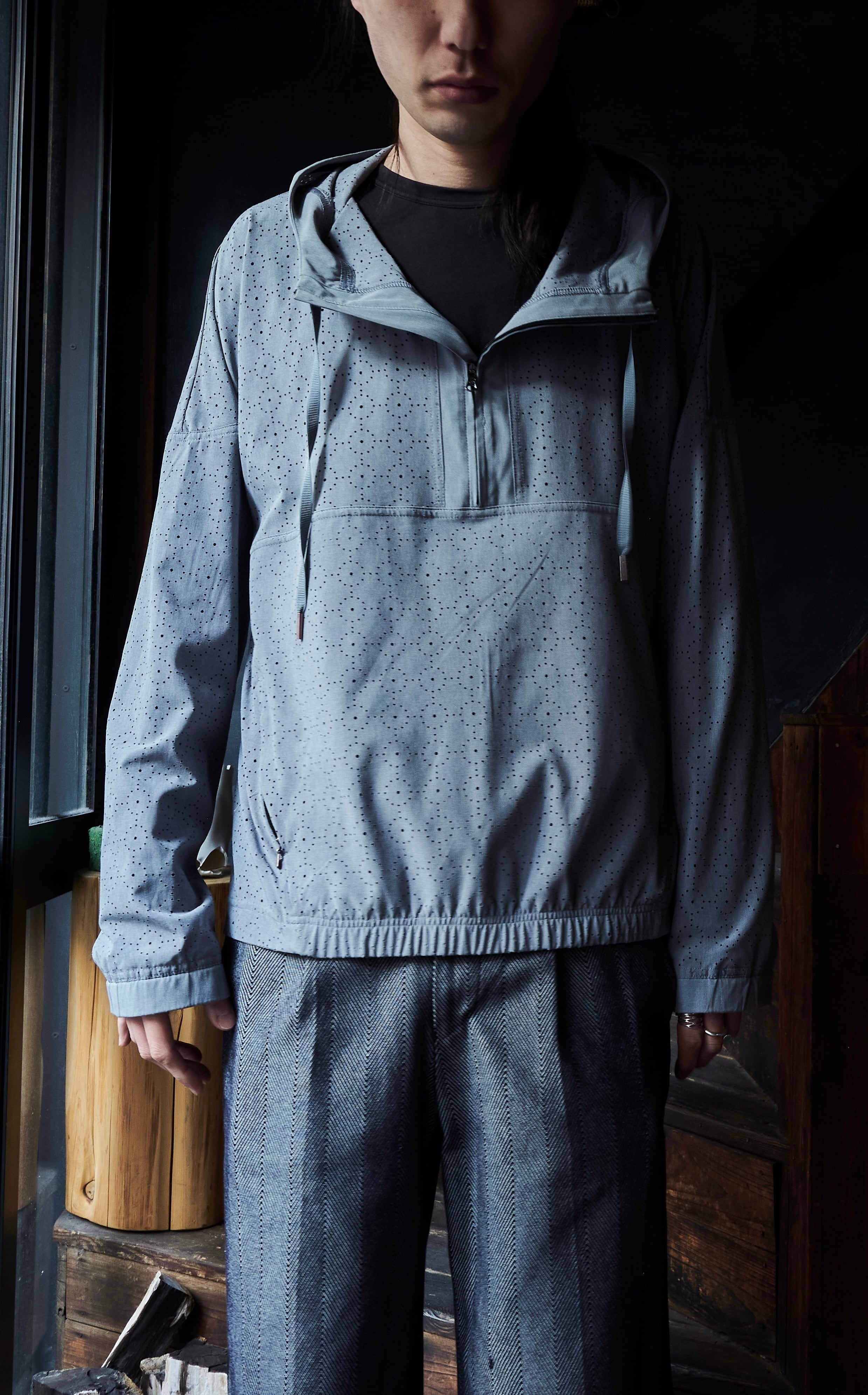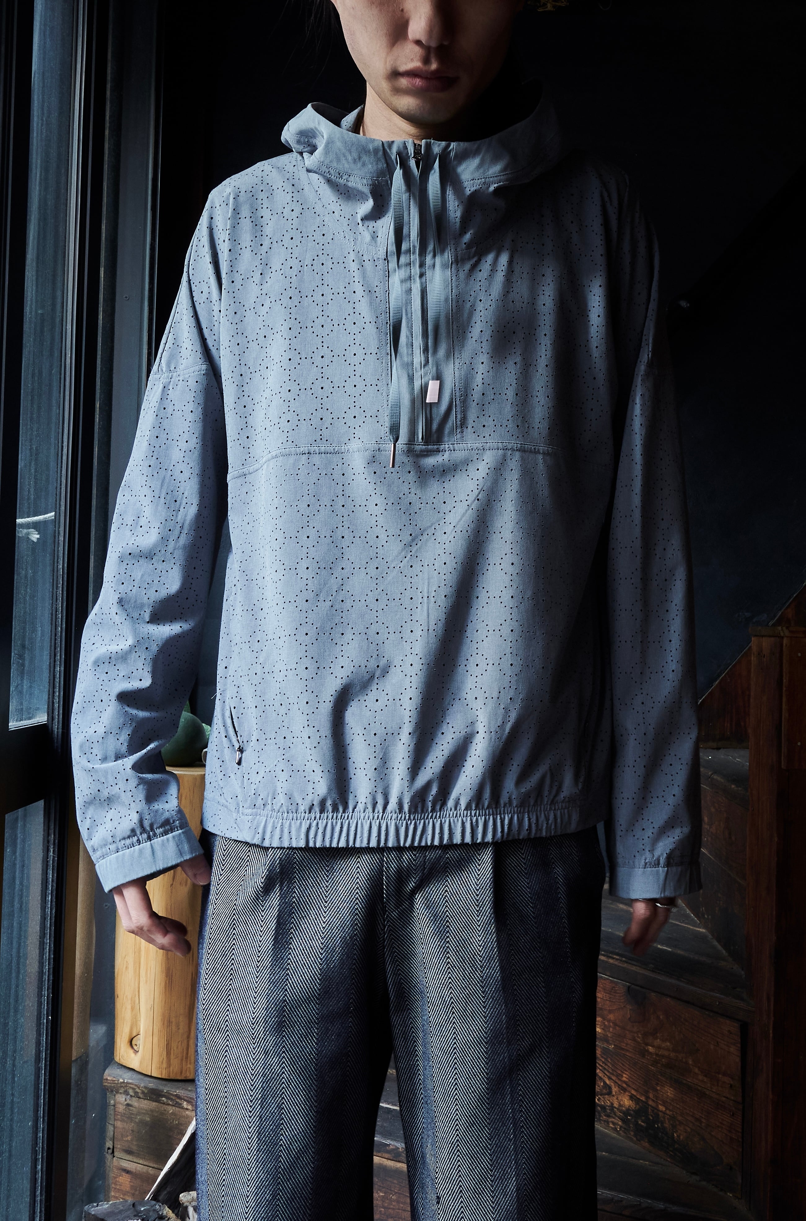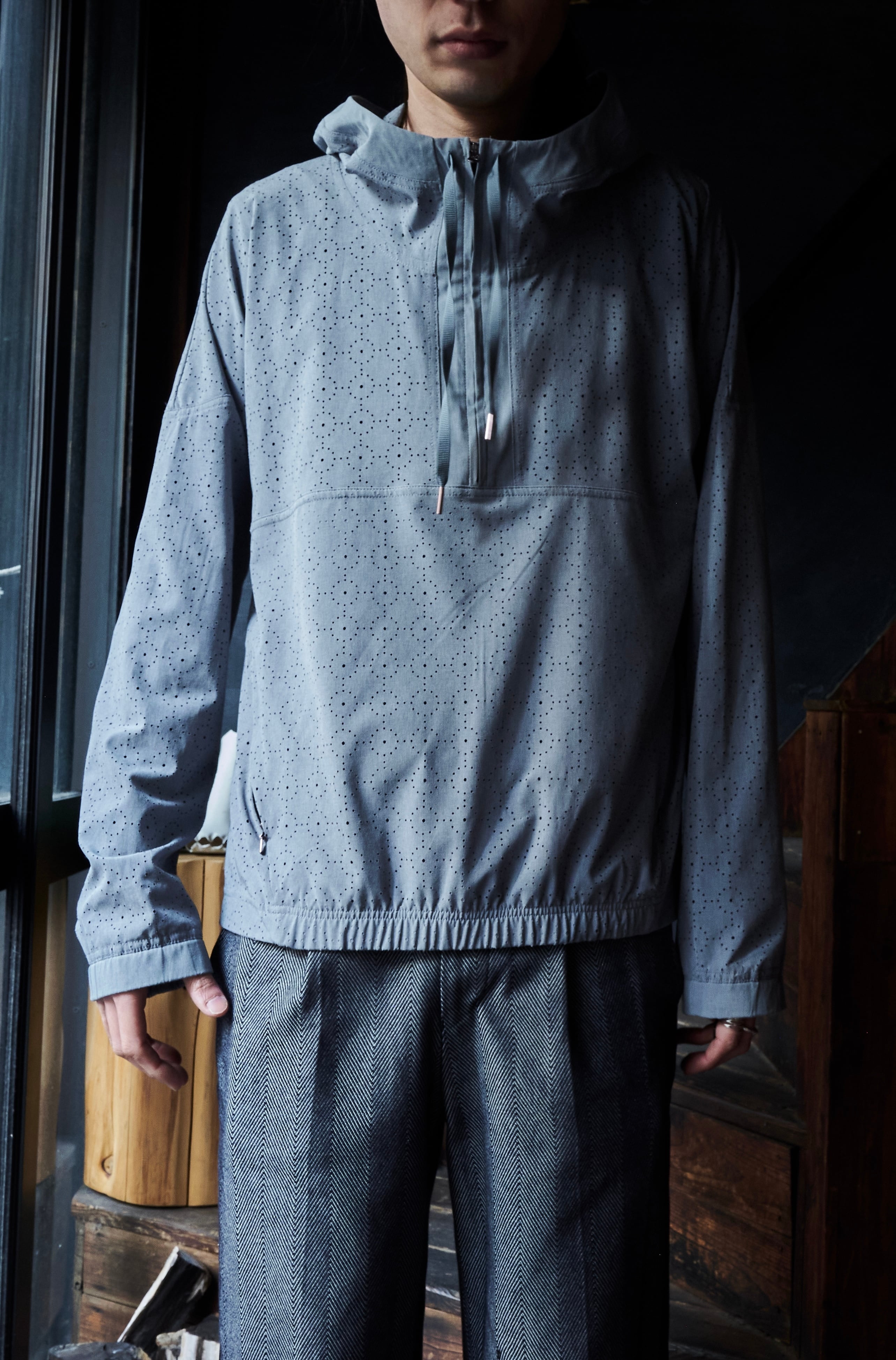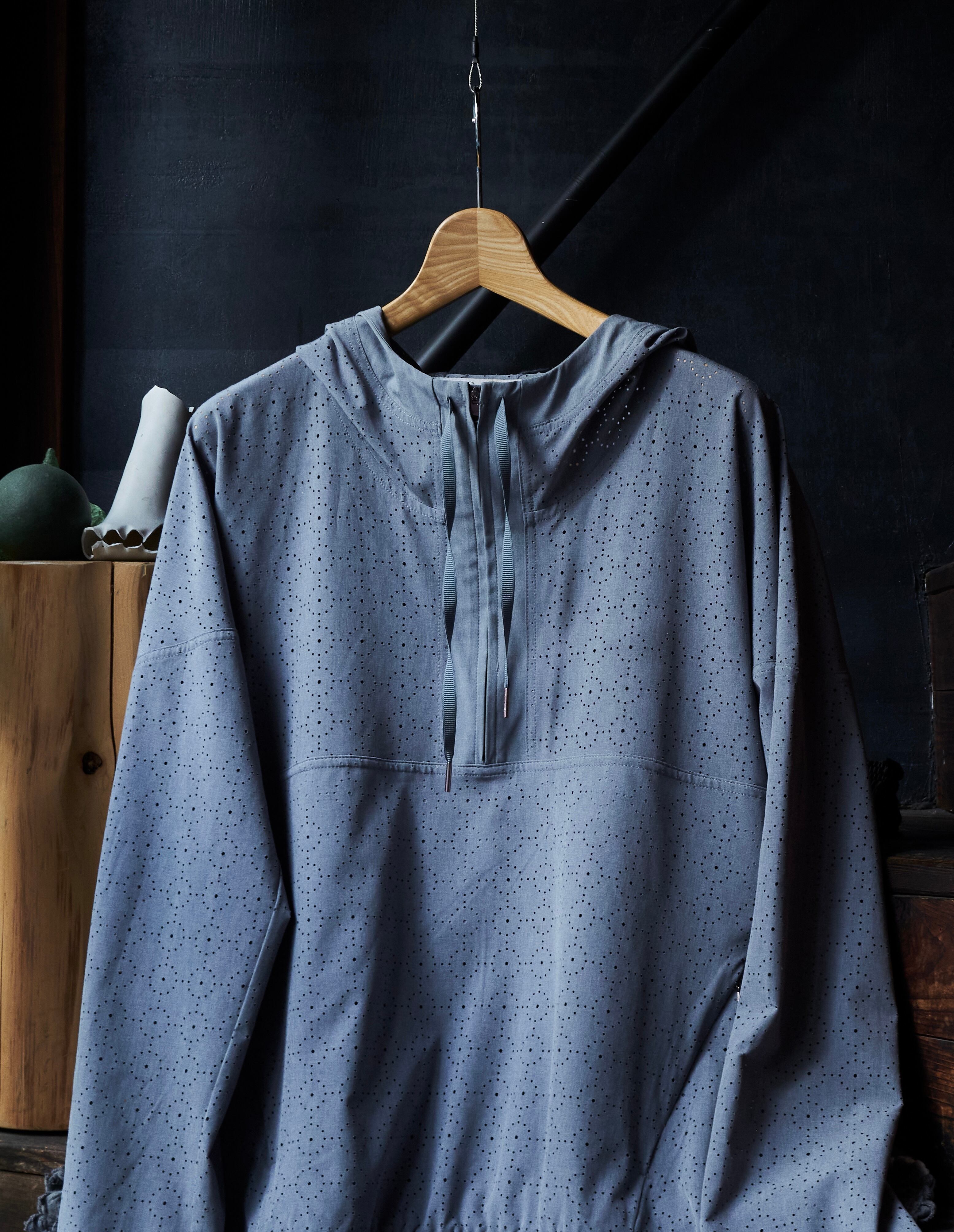 US 2010s Laser-cut fabric anorak pattern pullover shirt