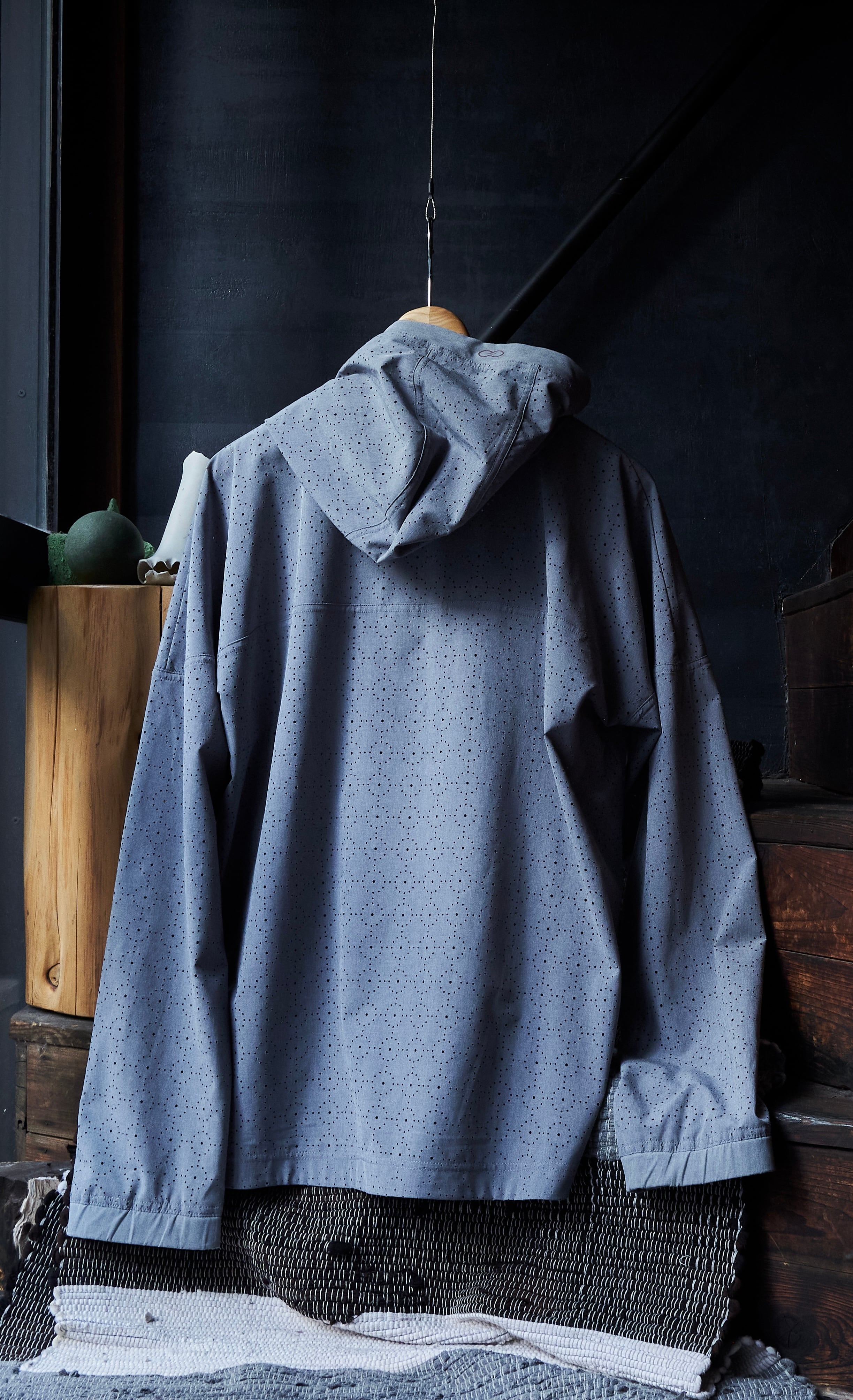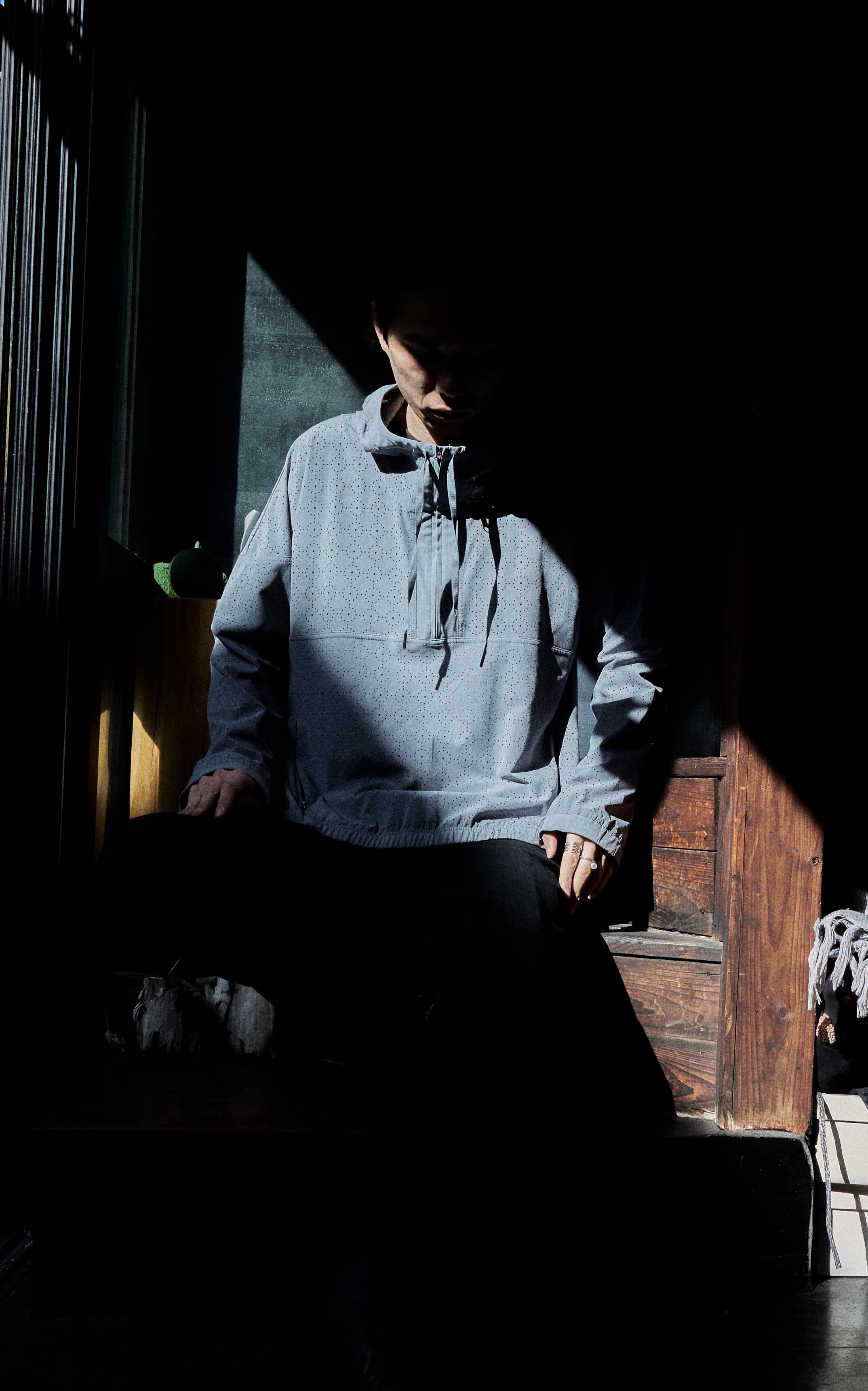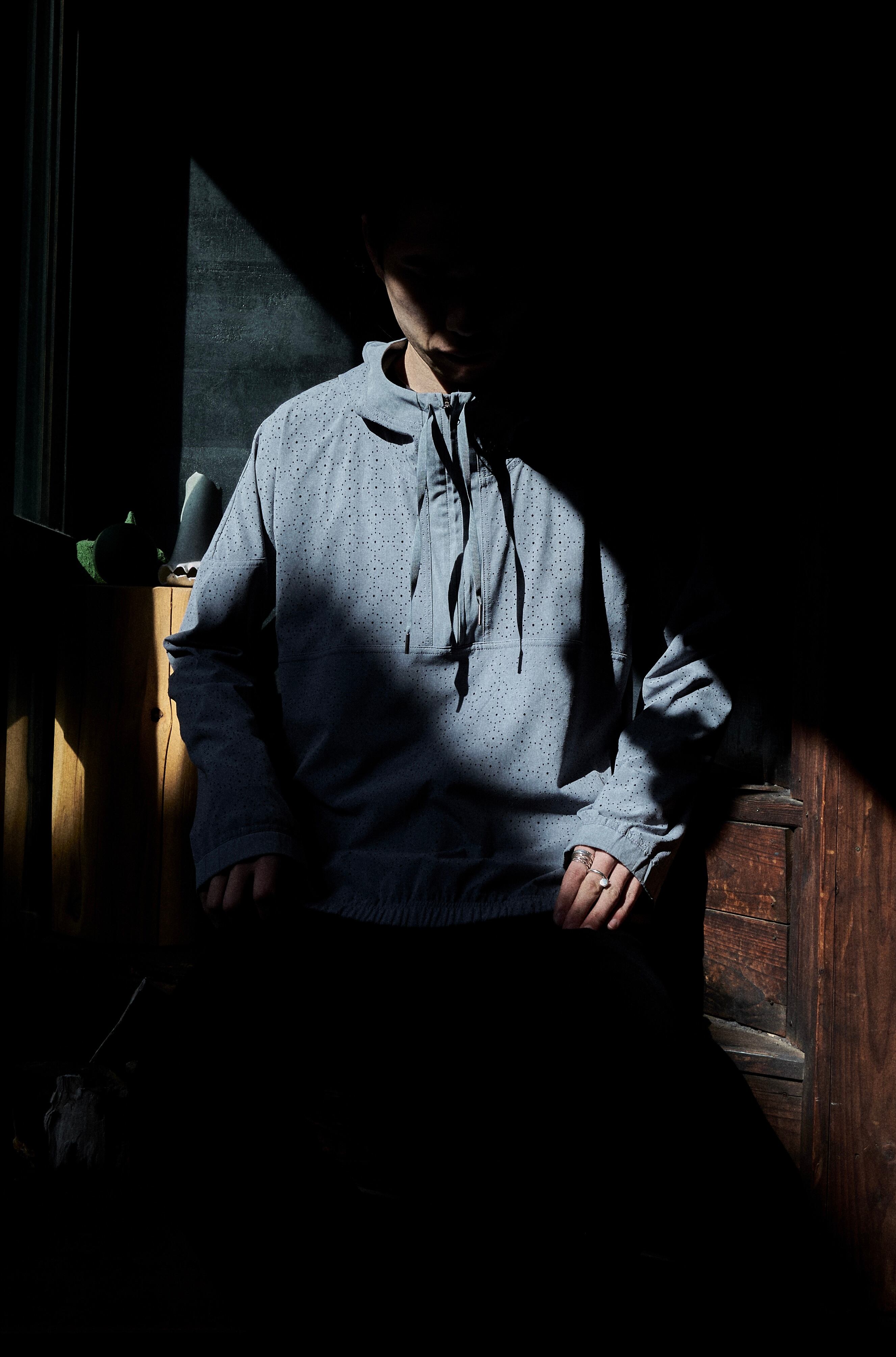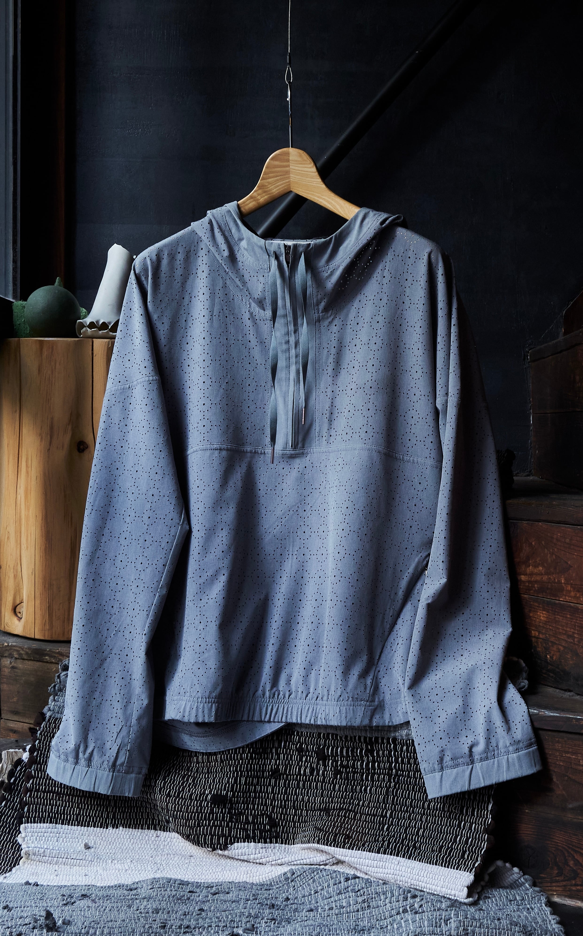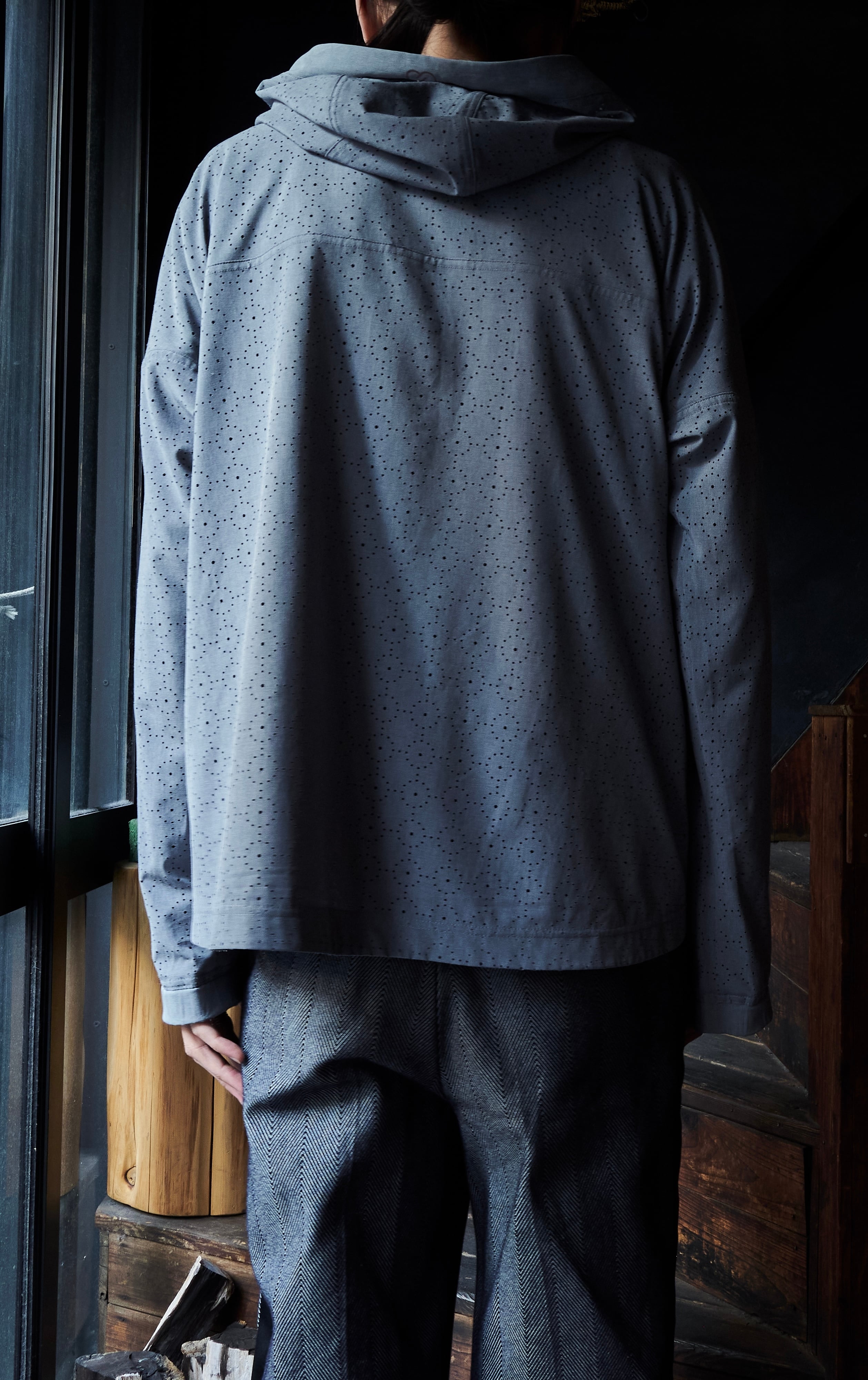 US 2010s Laser-cut fabric anorak pattern pullover shirt