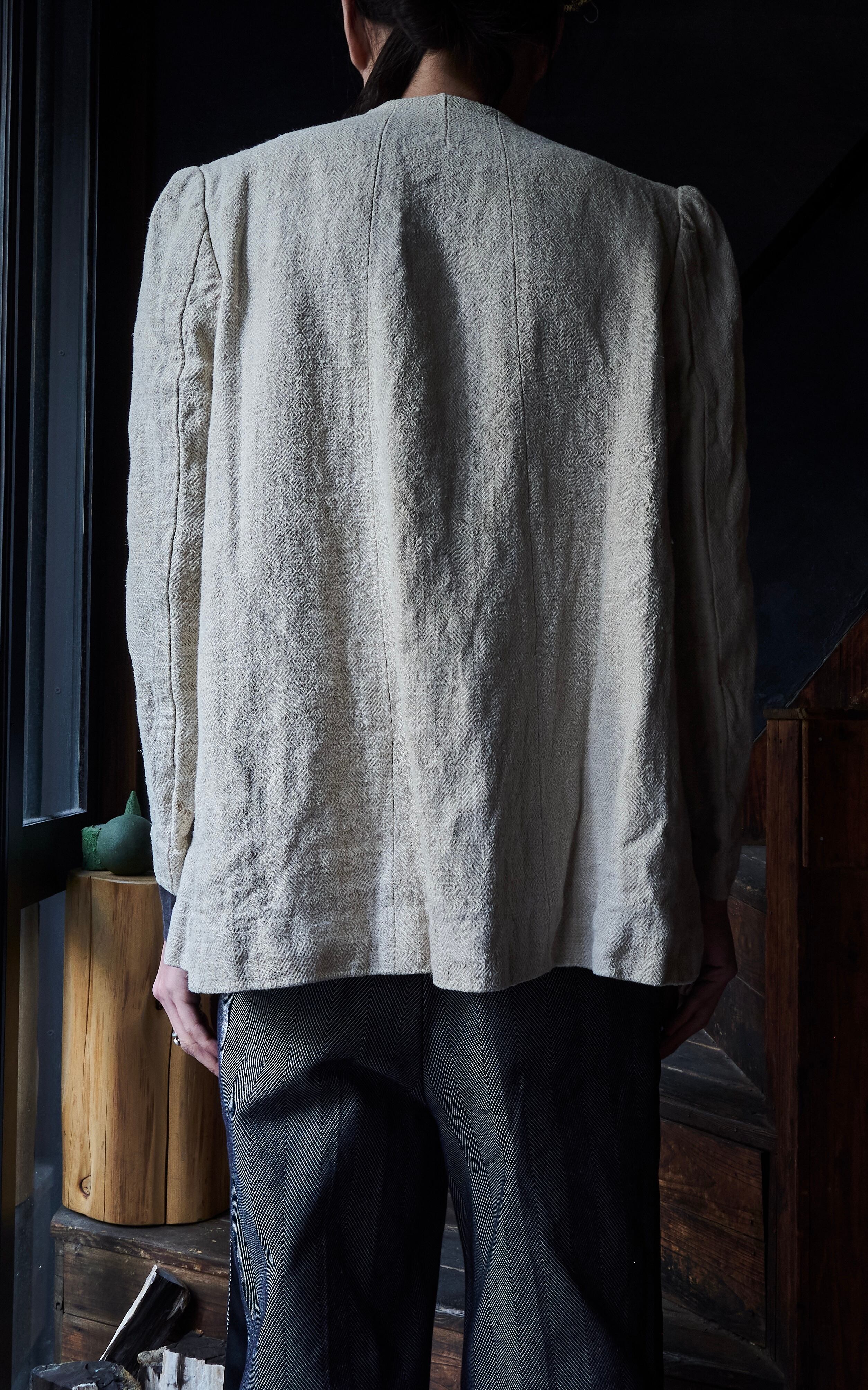 推定30年代から40年代に制作されたアンティークのリネンを使用したイタリアのテーラードジャケット。