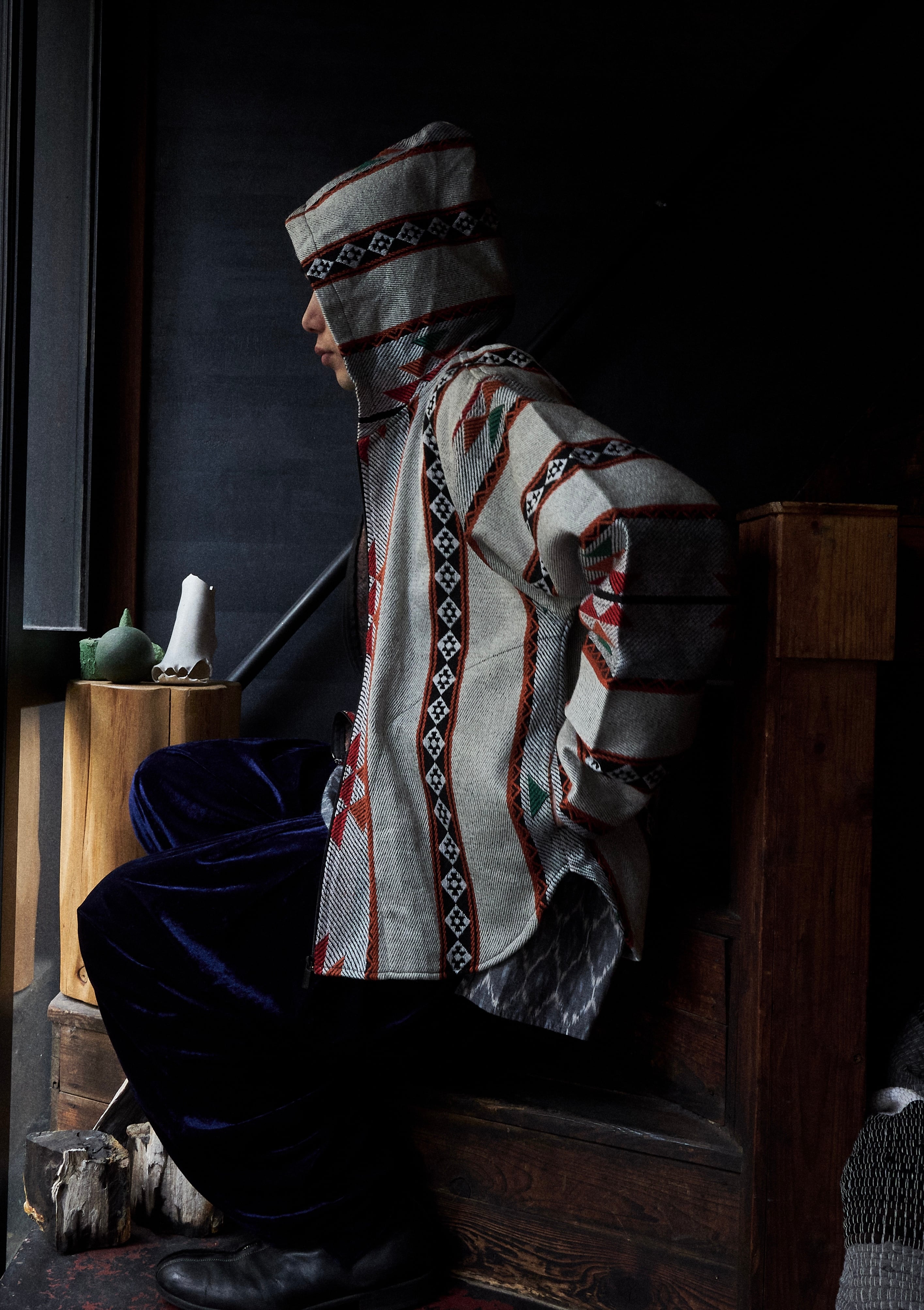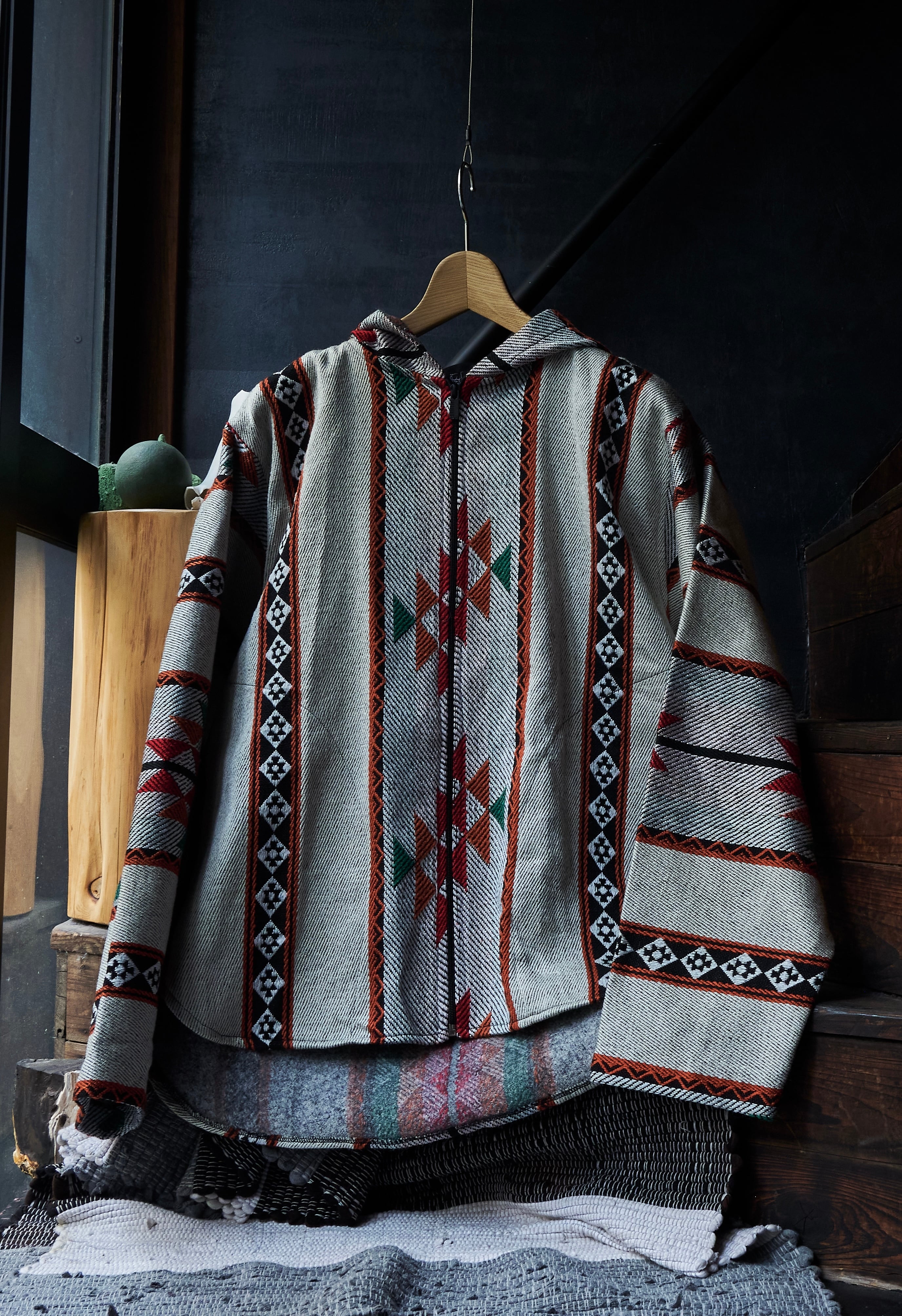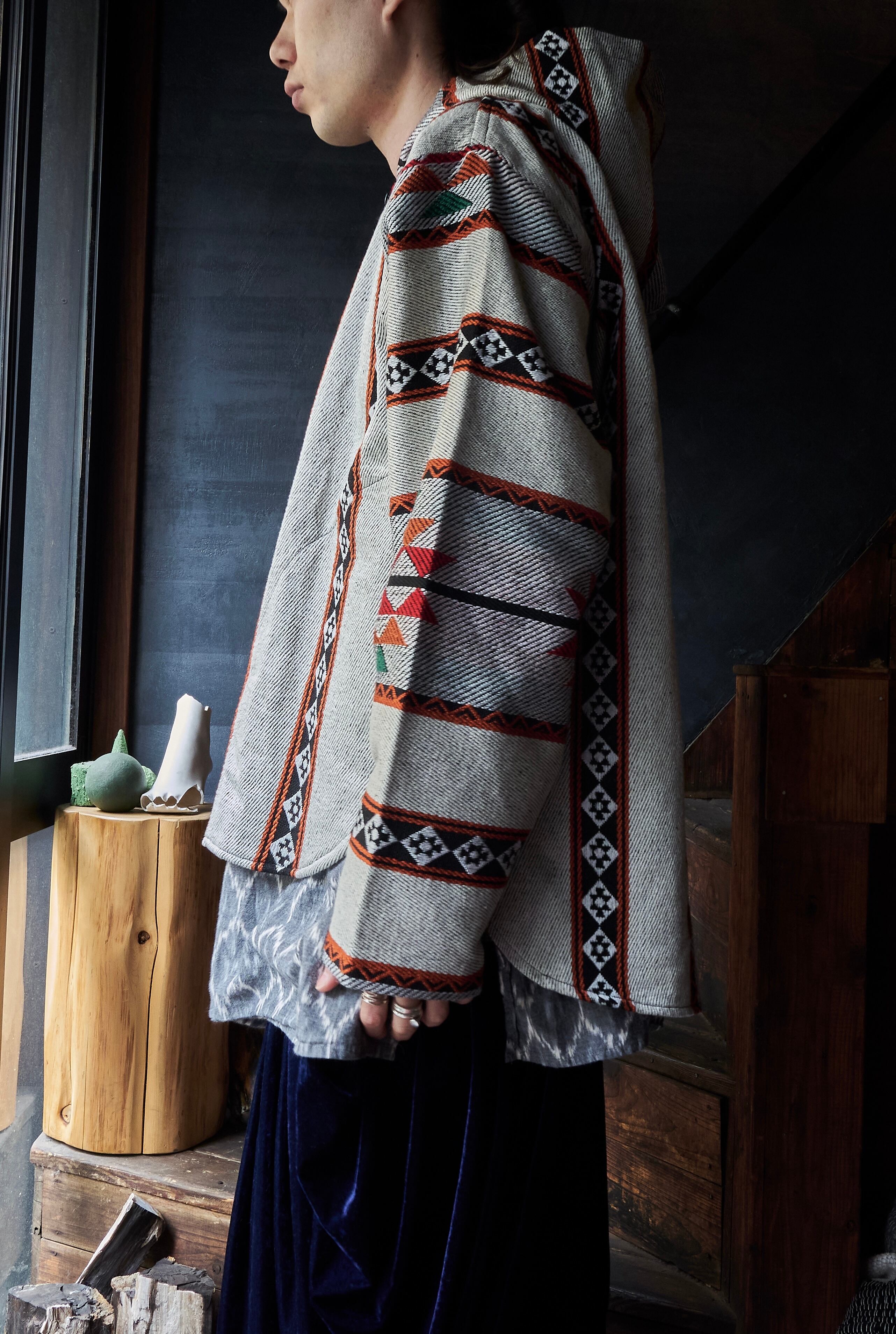 中東のヨルダンで作られた民芸感溢れるフーディジャケット。