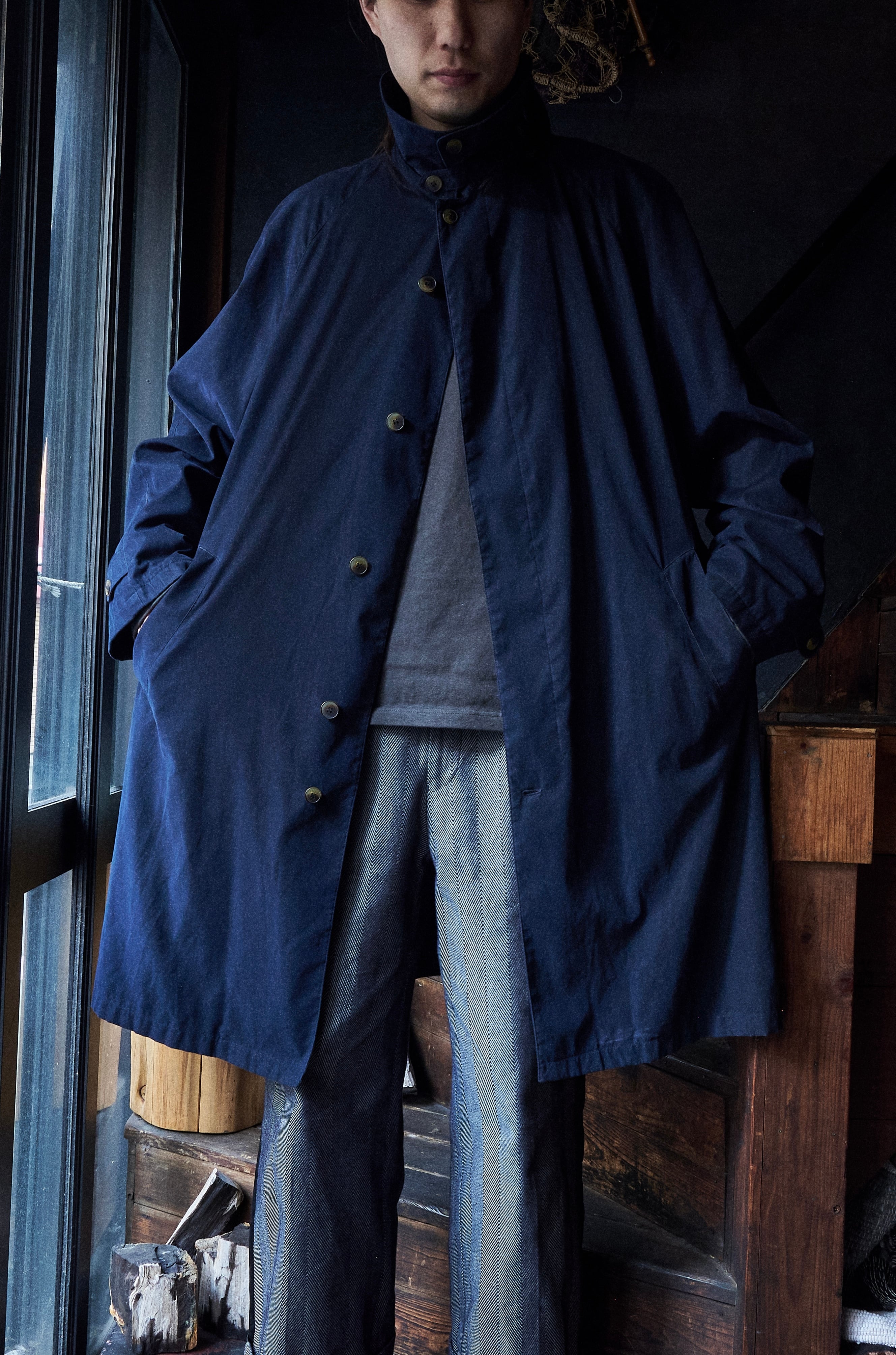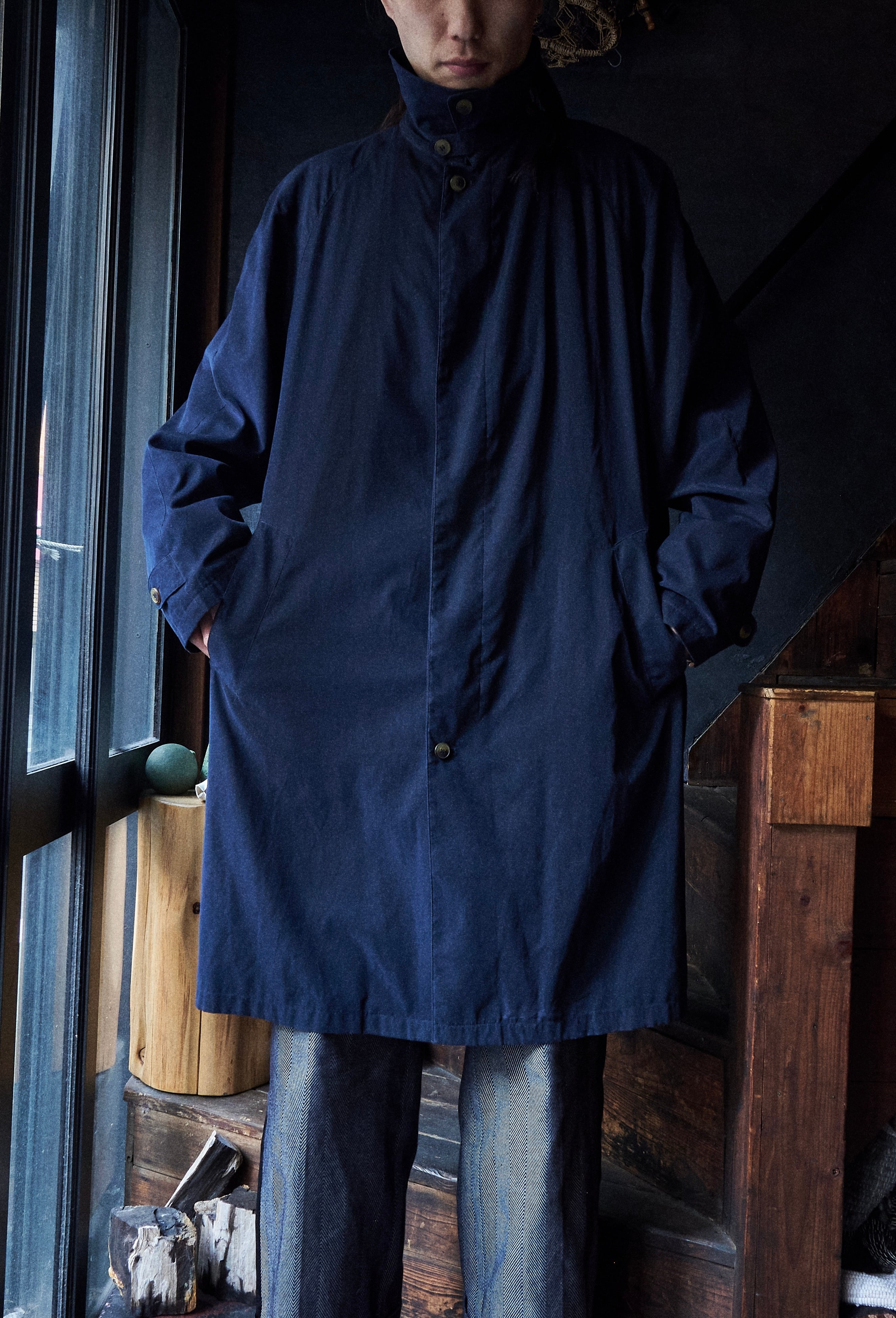Allegri Polyethylene Nylon Navy Chin Strap Balmacaan Pattern Spring Coat