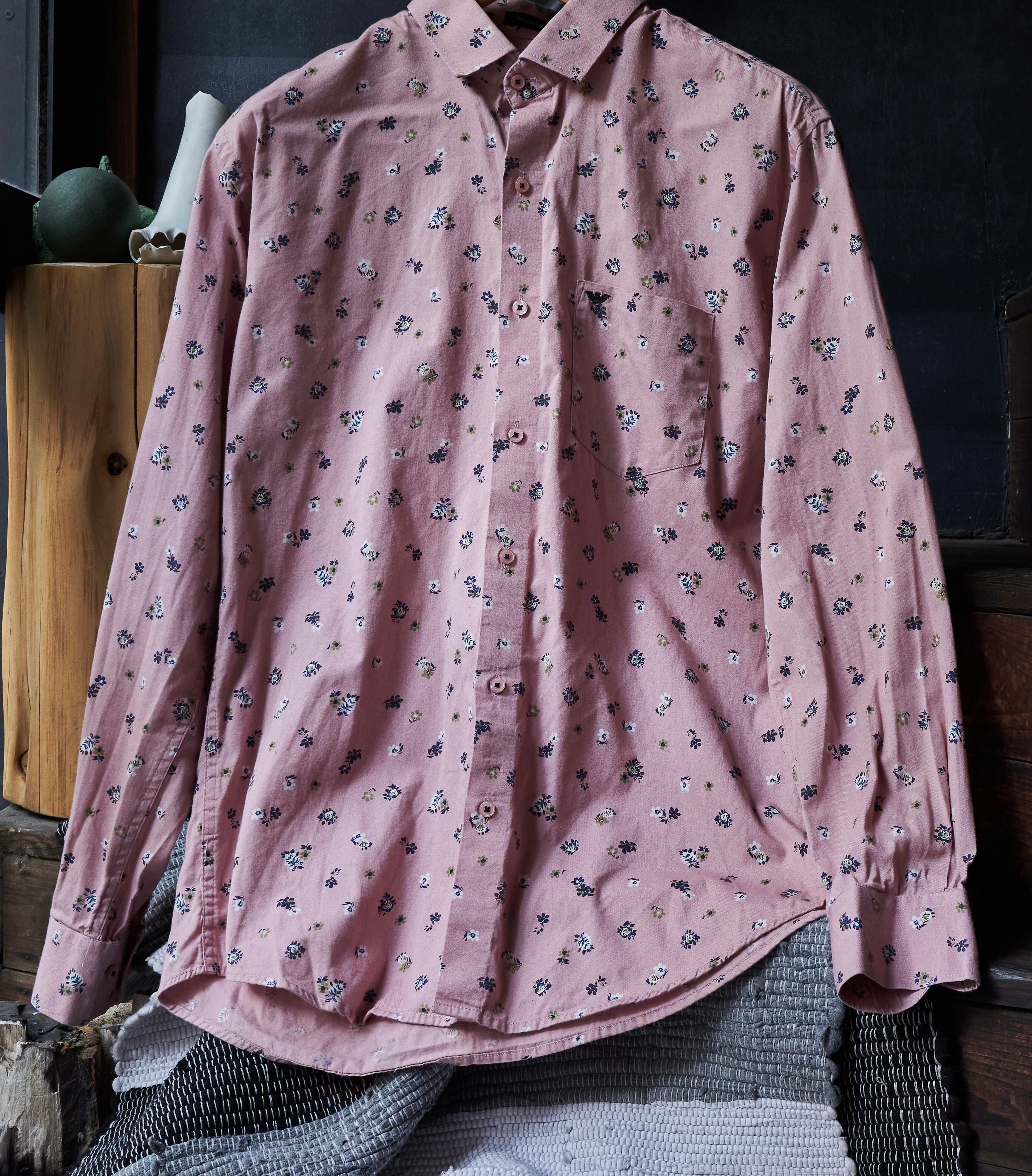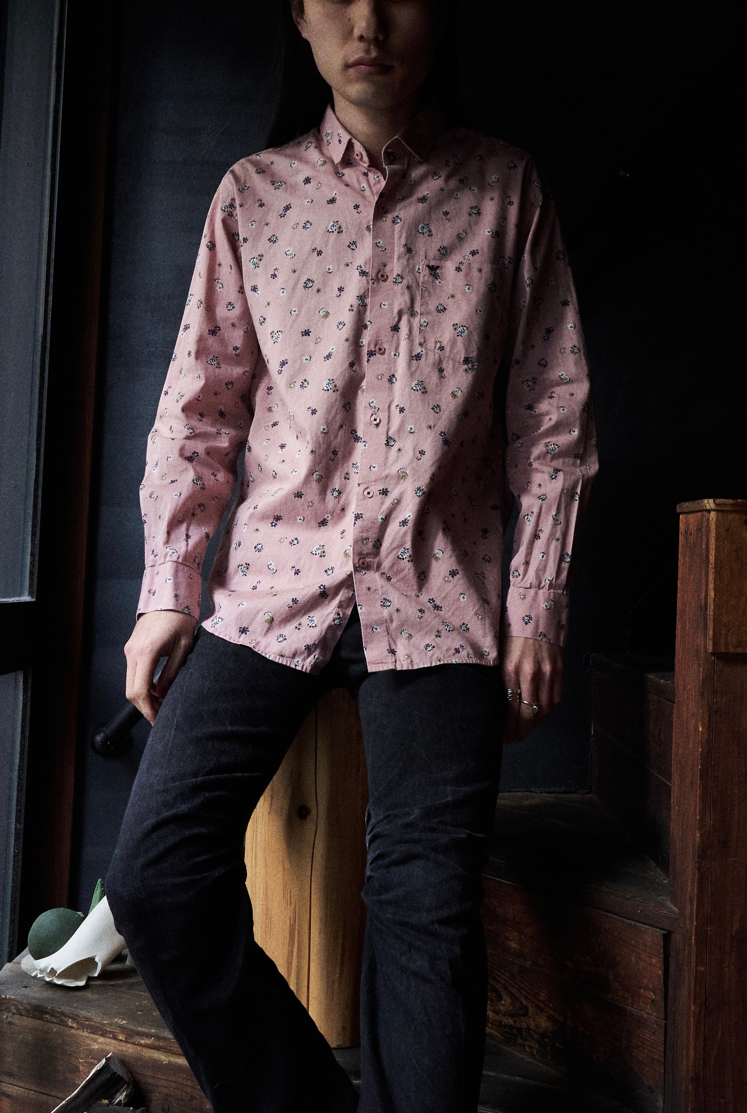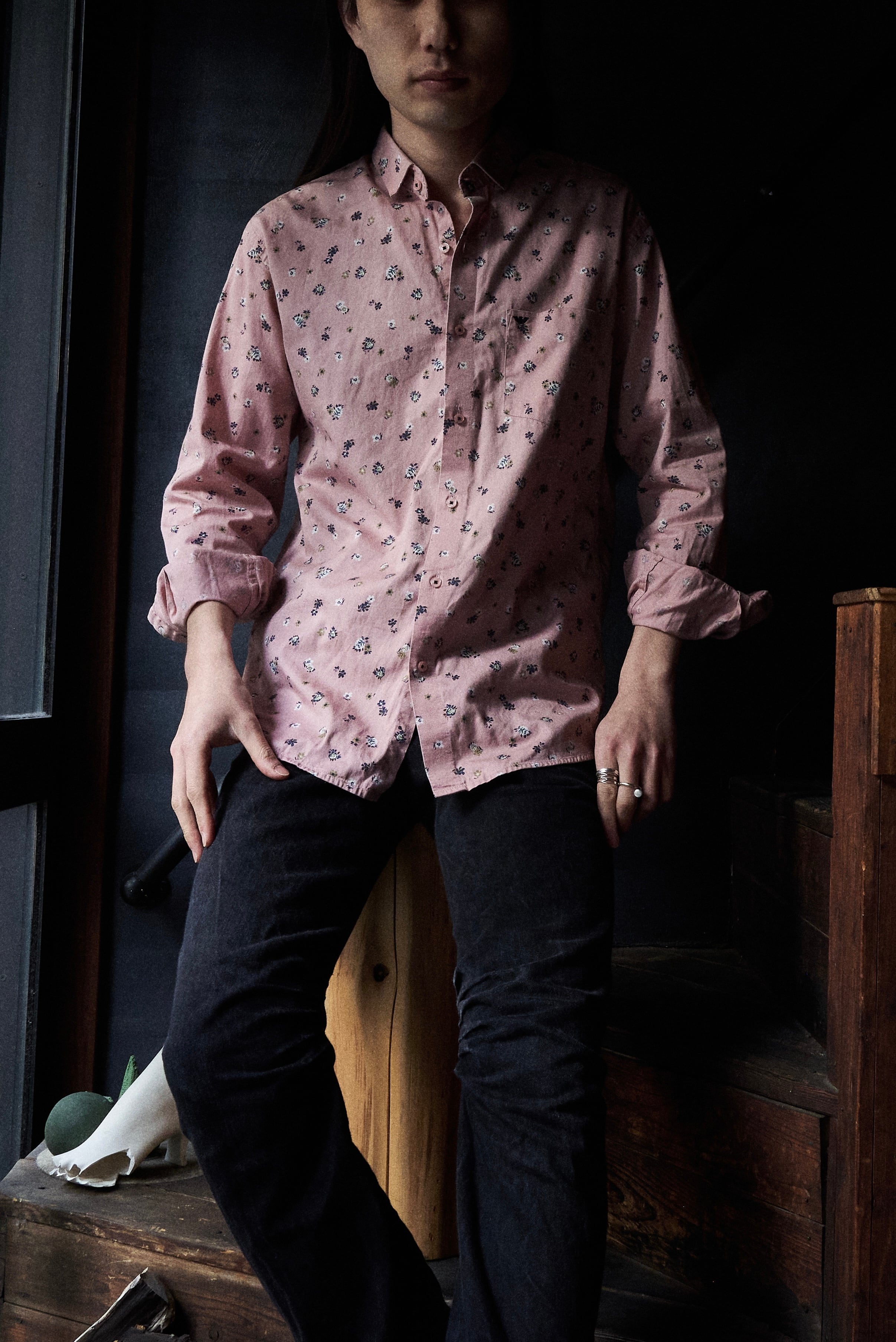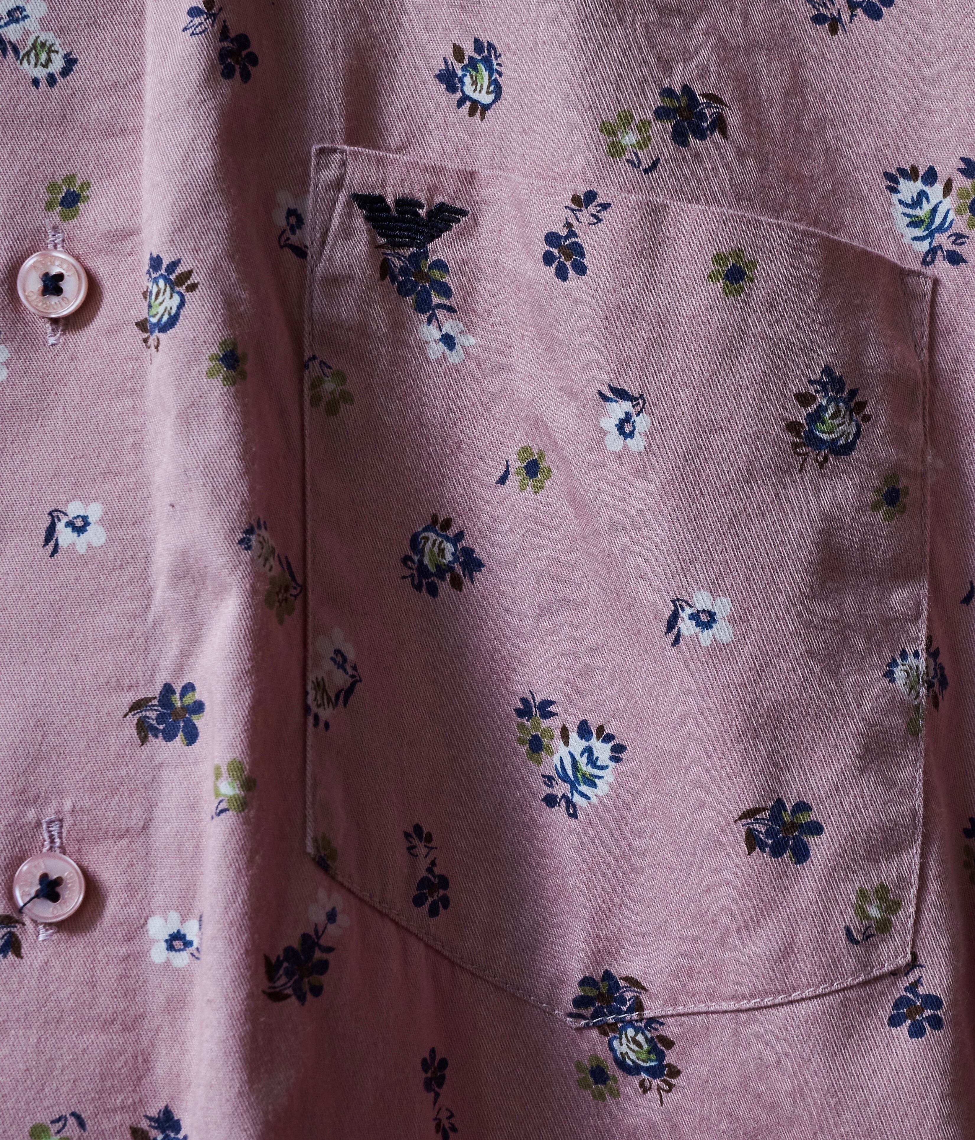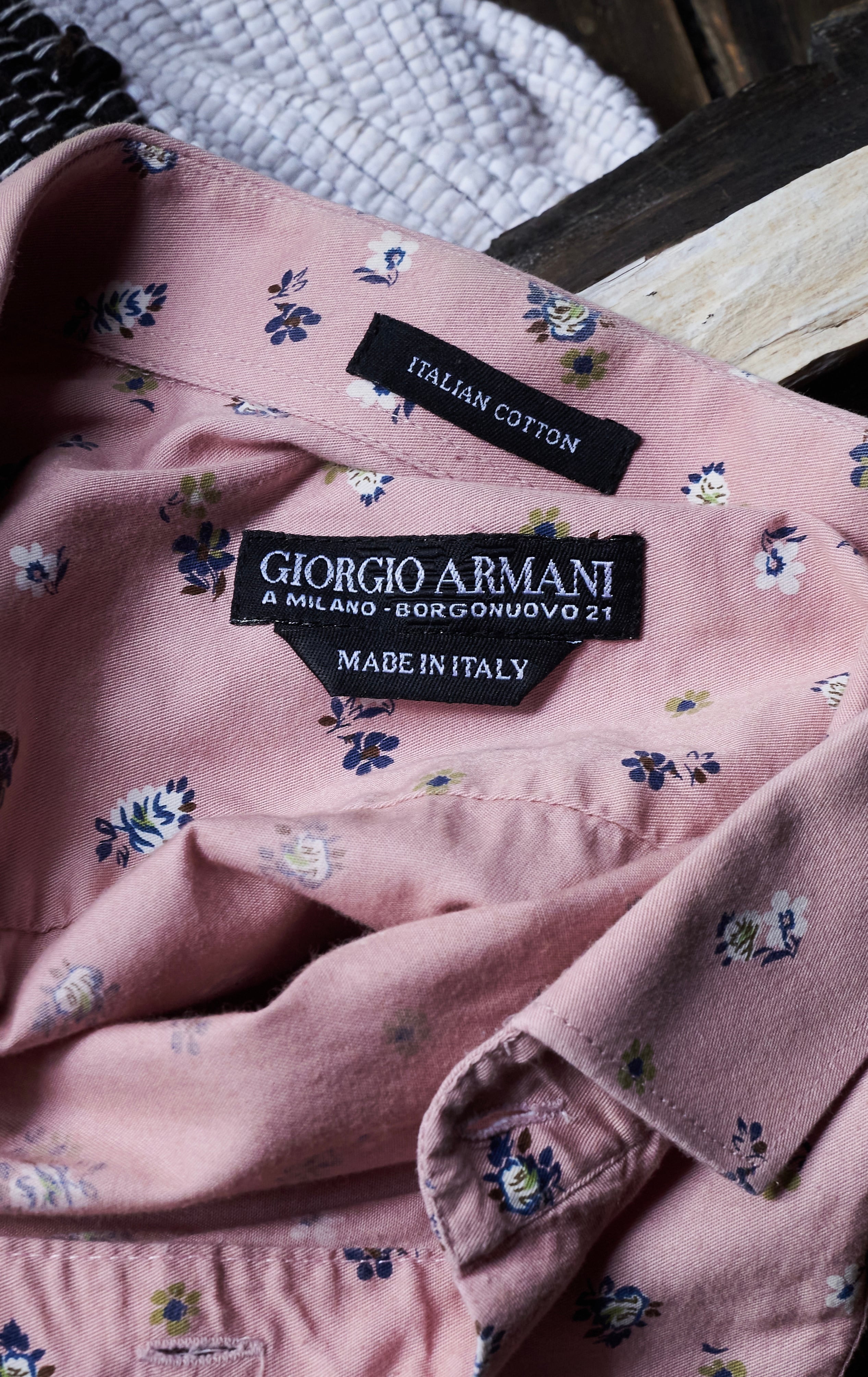 そんなジョルジオアルマーニくんのピンク色が可愛いすぎて、花柄も可愛い最強プレミアム幕内弁当みたいなシャツです。