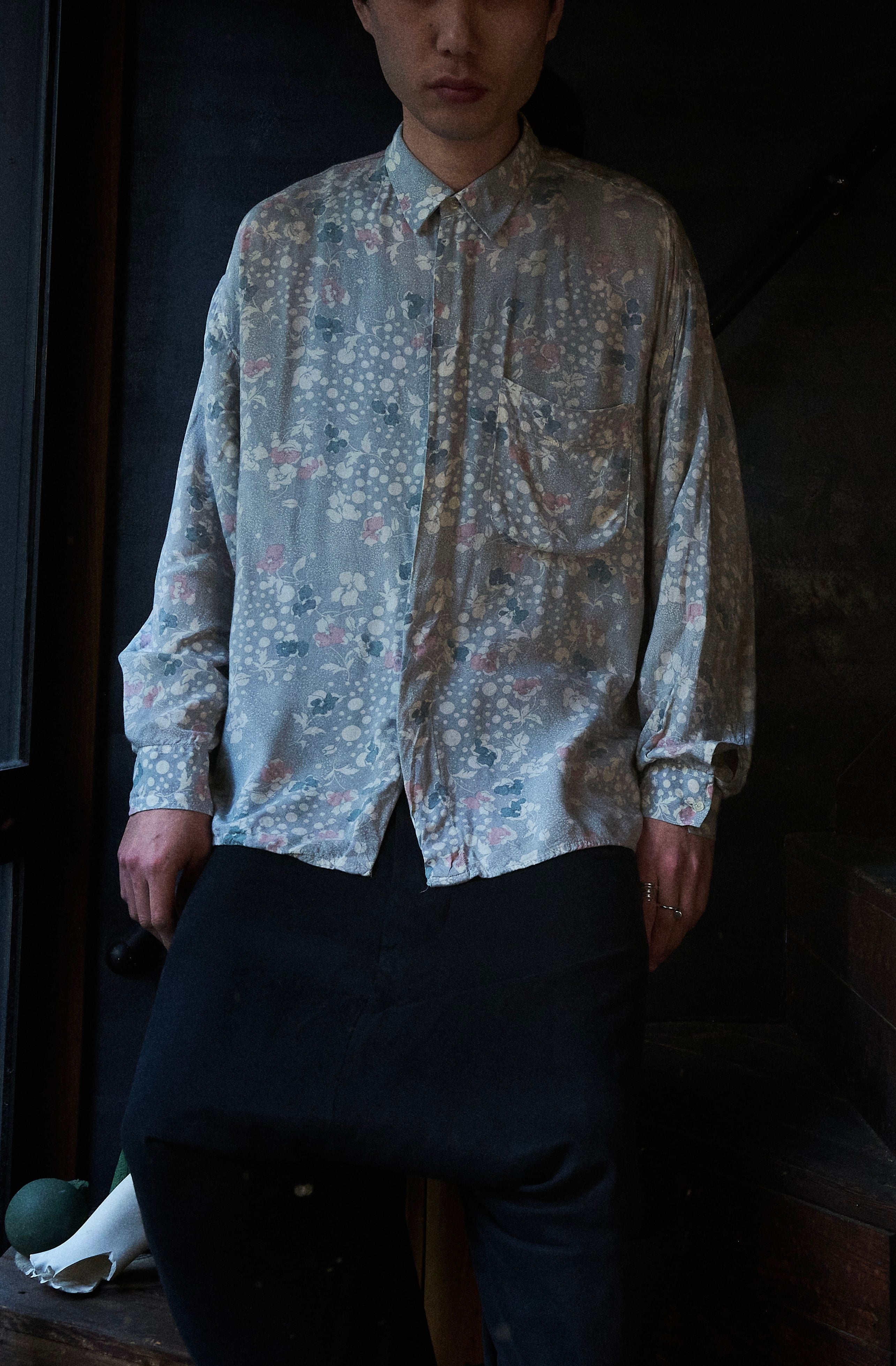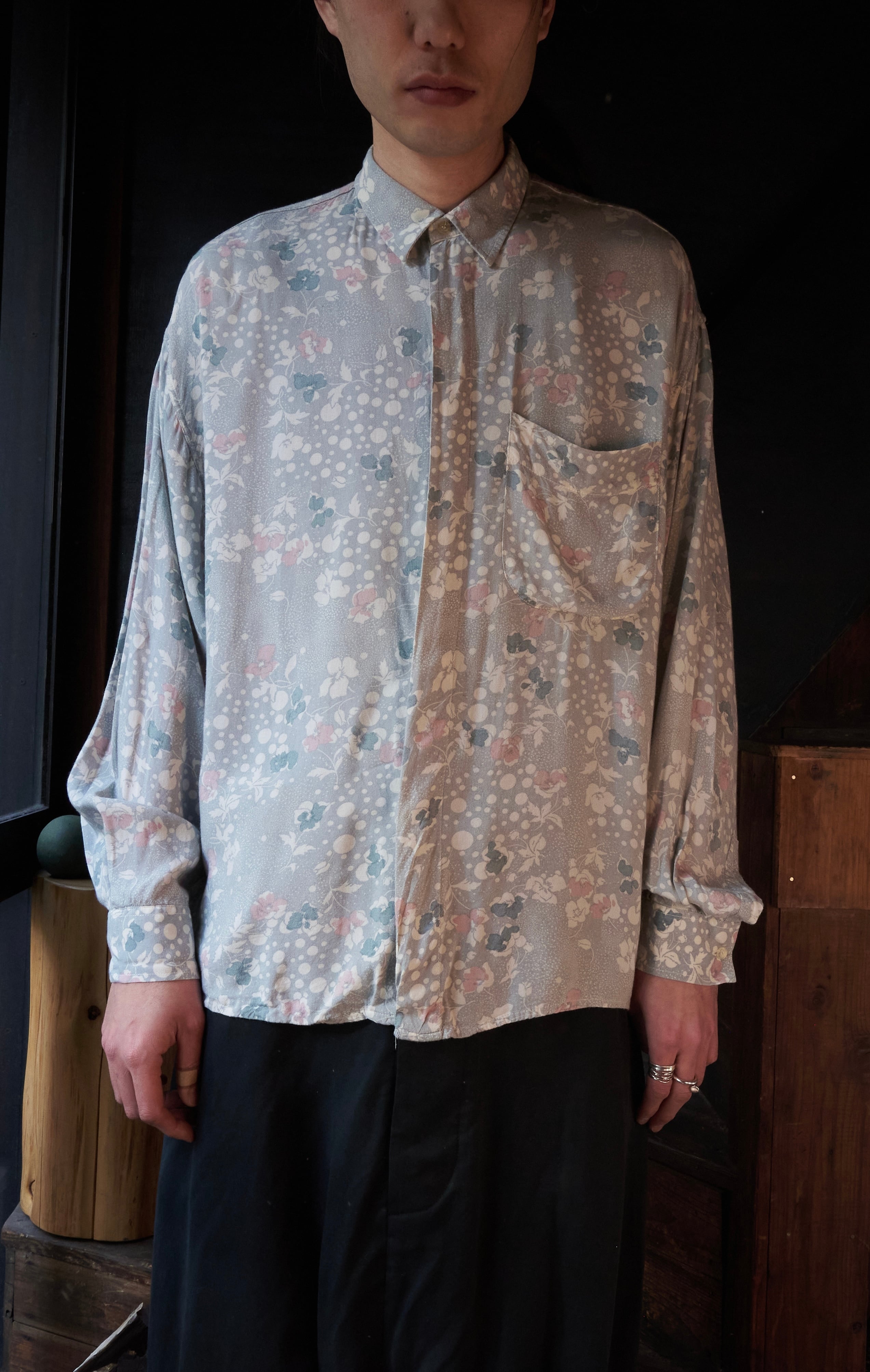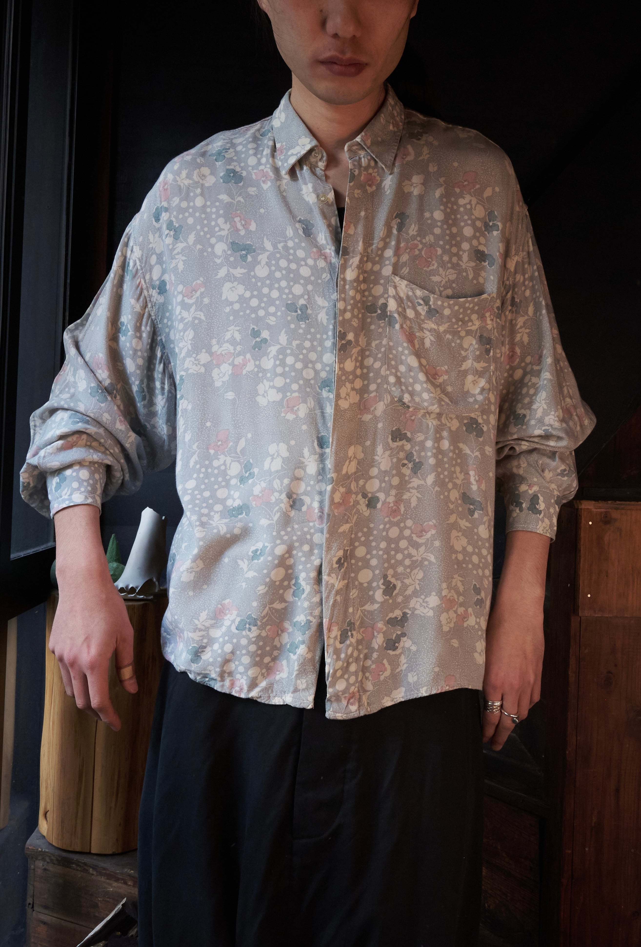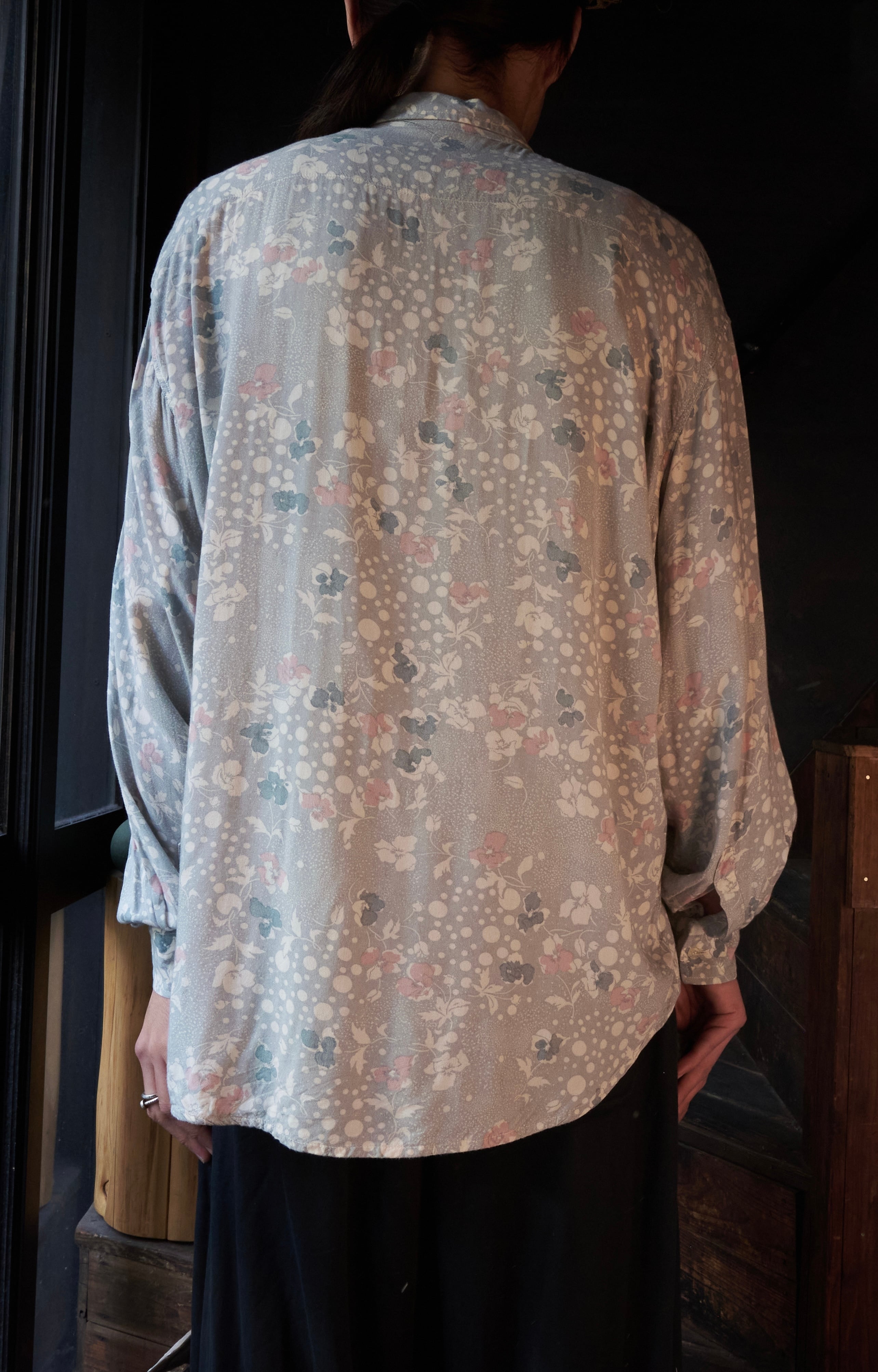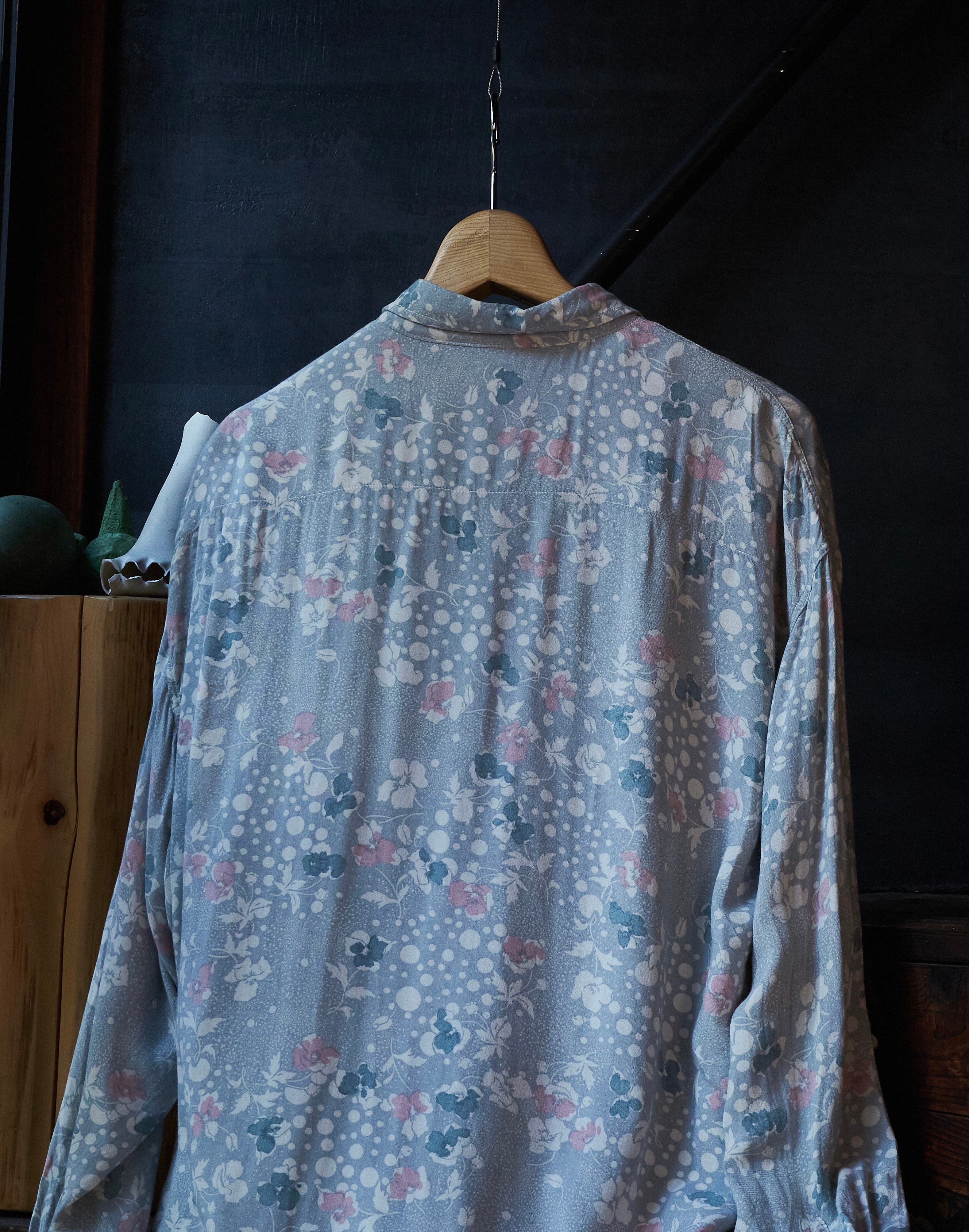 80s ITALY Gray base floral print rayon shirt