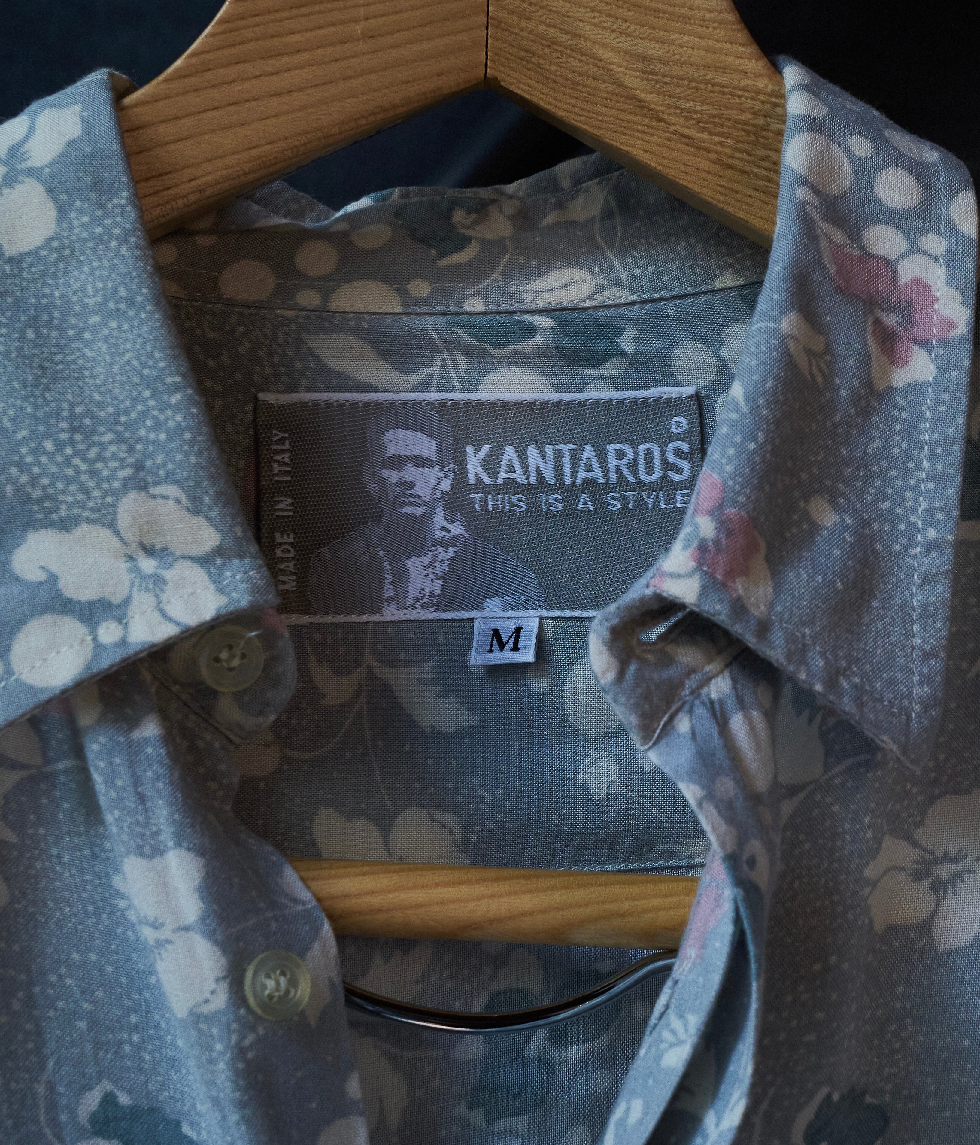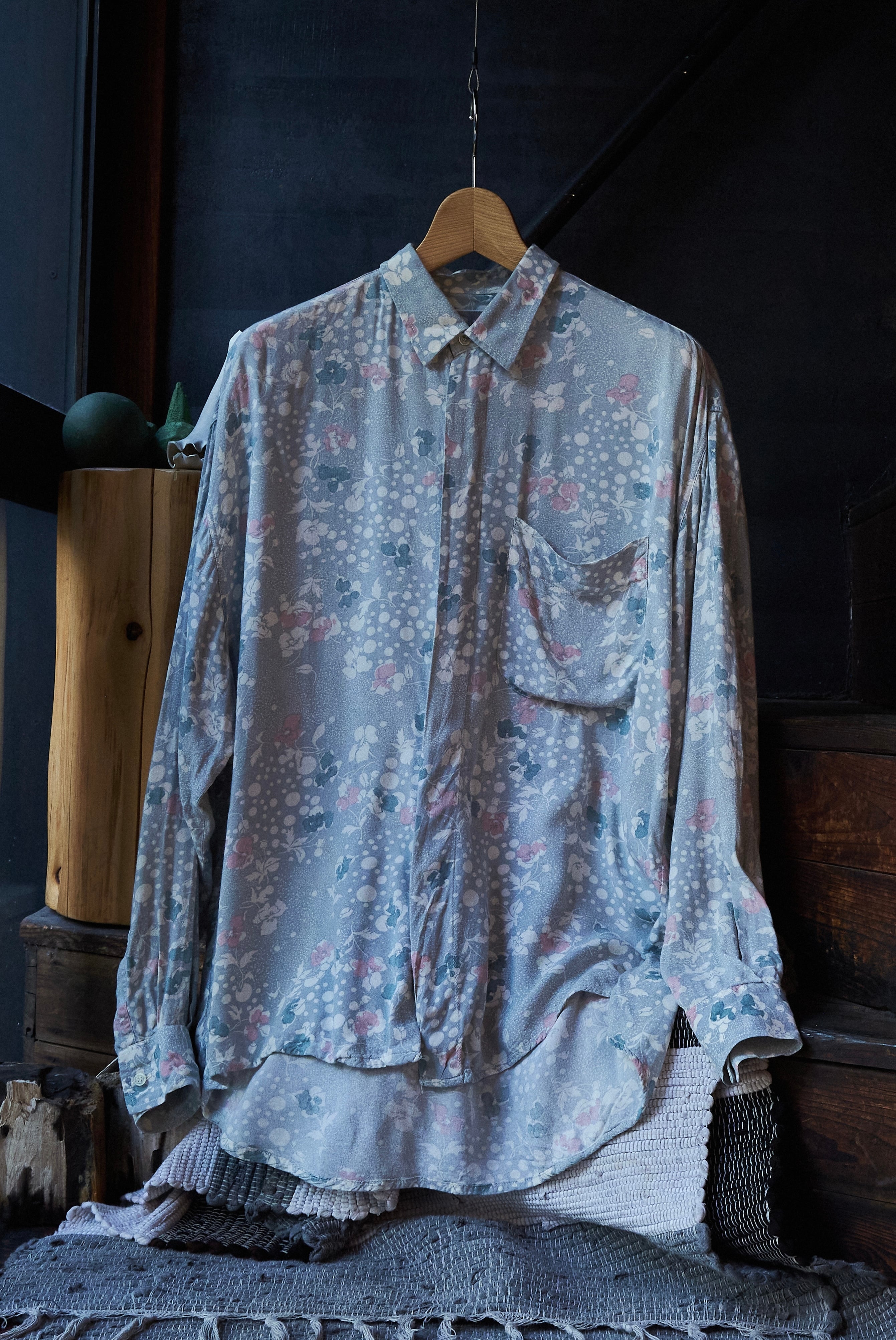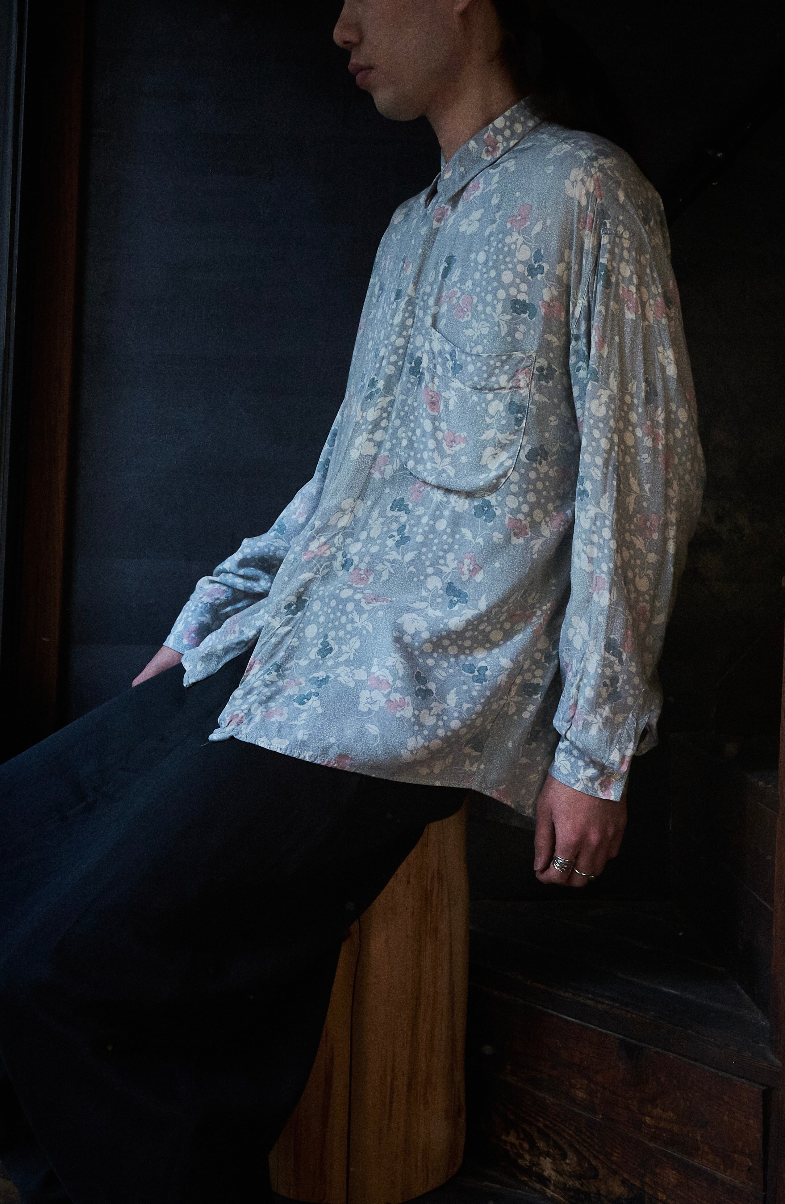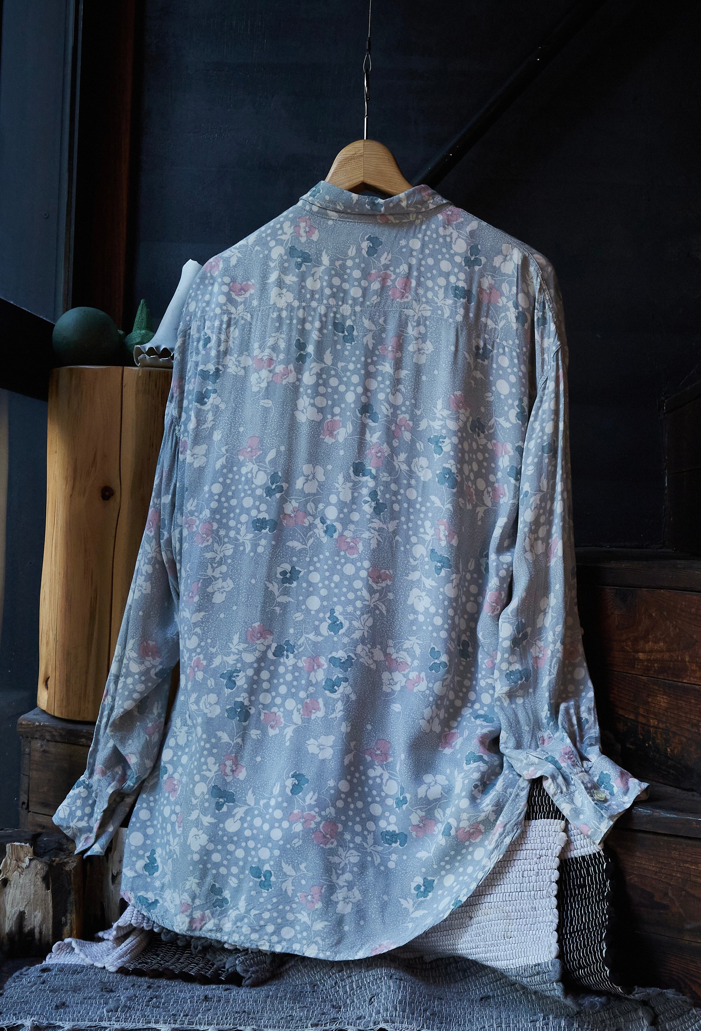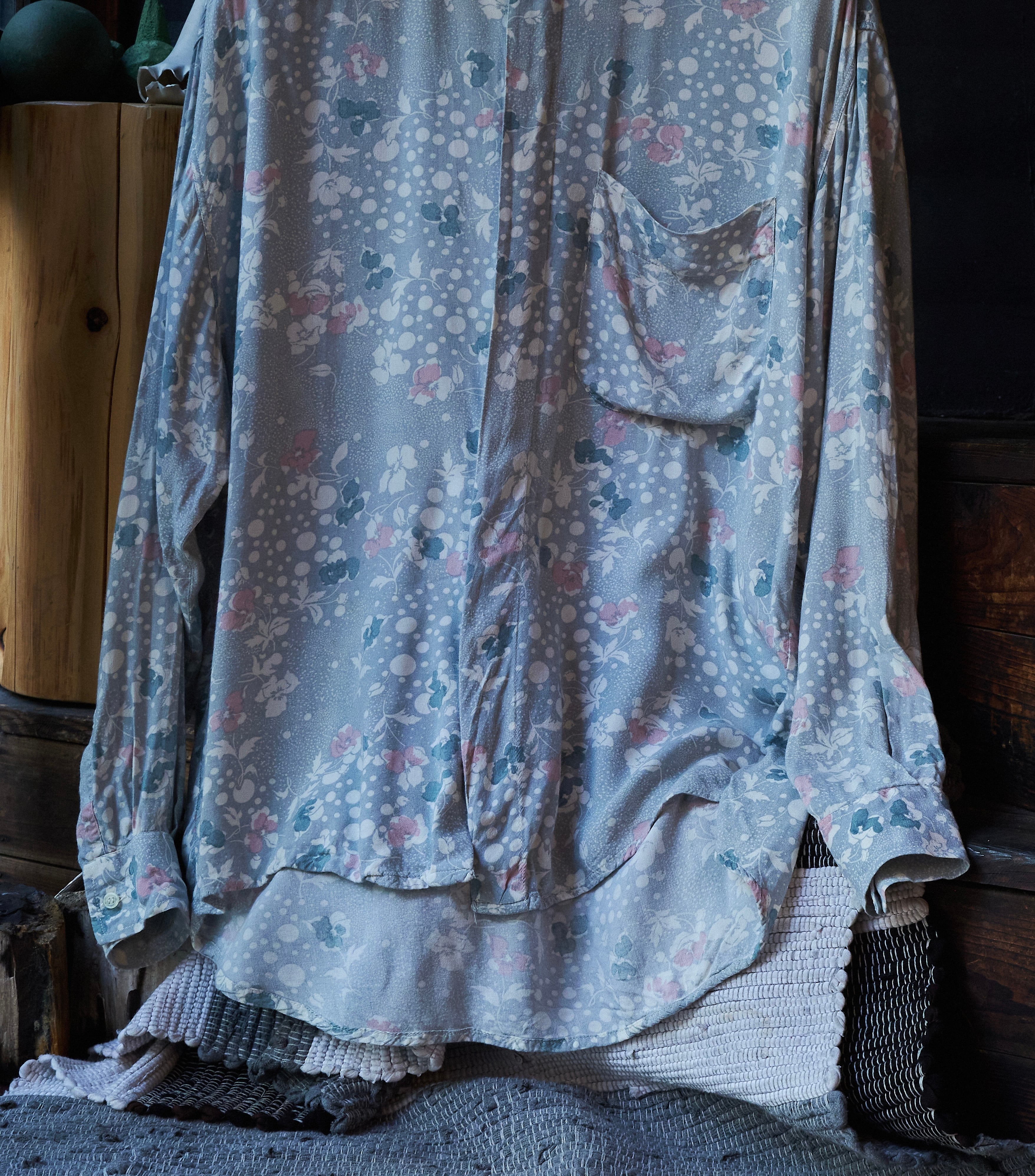 80s ITALY Gray base floral print rayon shirt