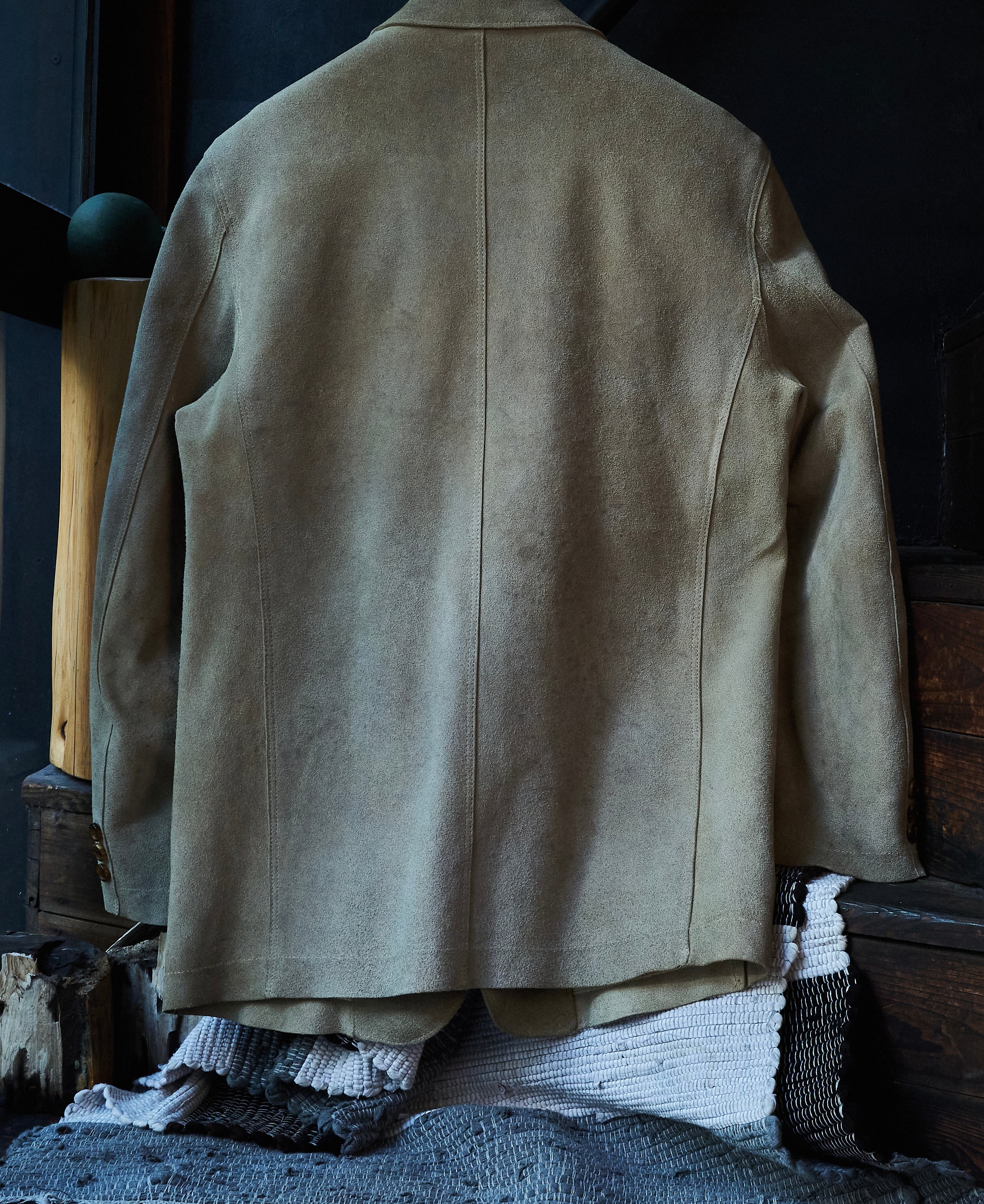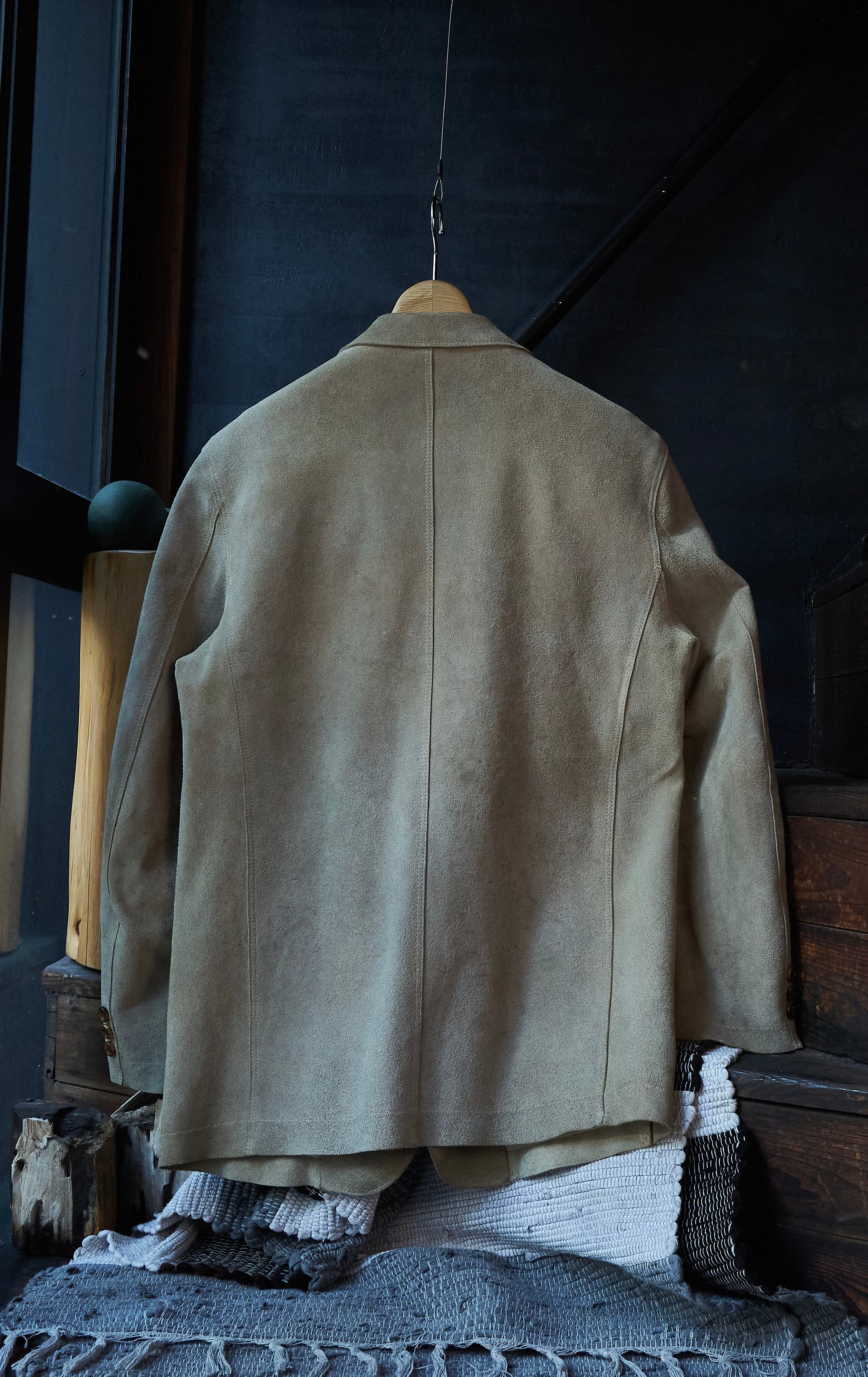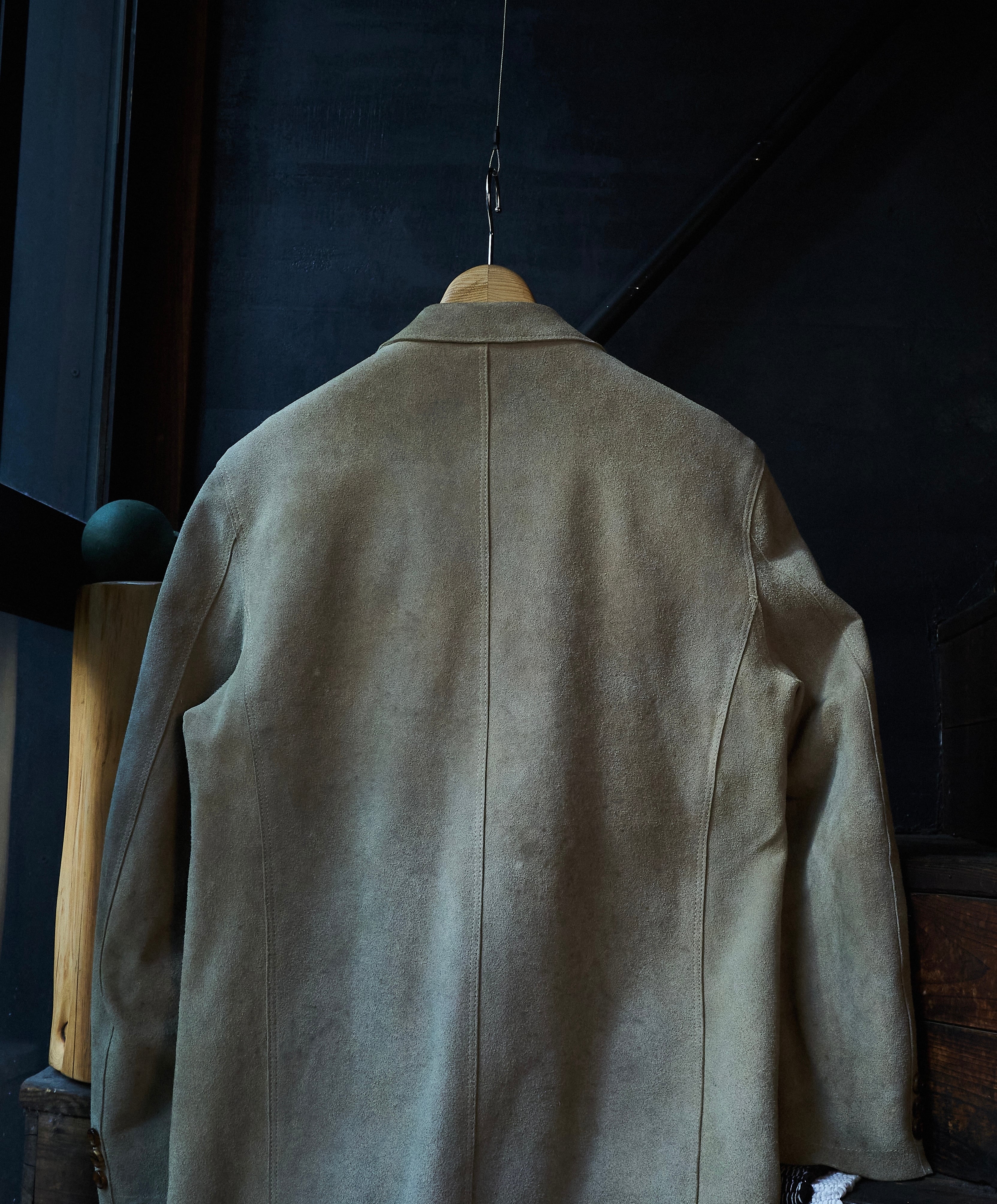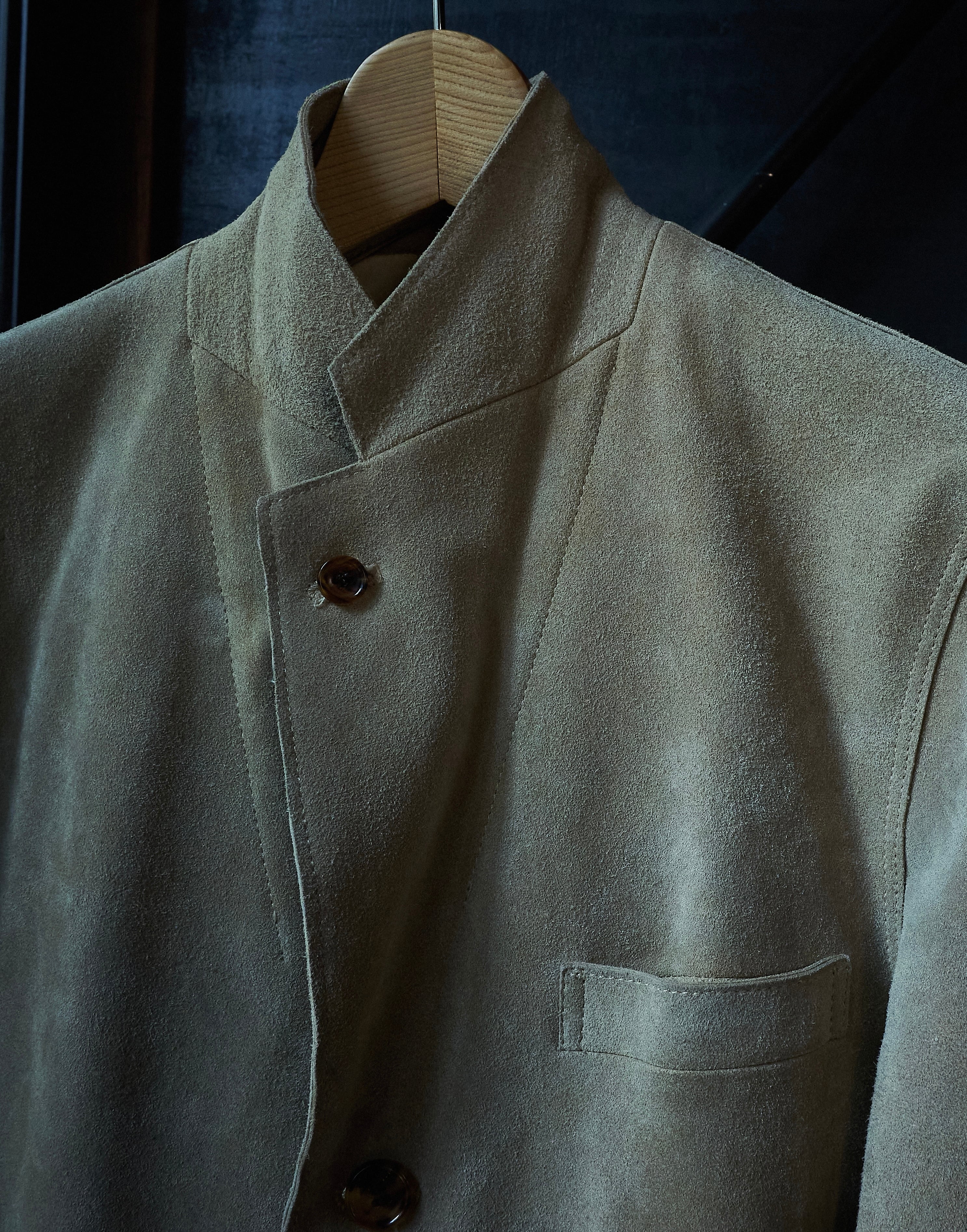 硬さあるスェードではありますが、田中先生の素晴らしいテーラリングの形も相まって不思議な格好良さ。