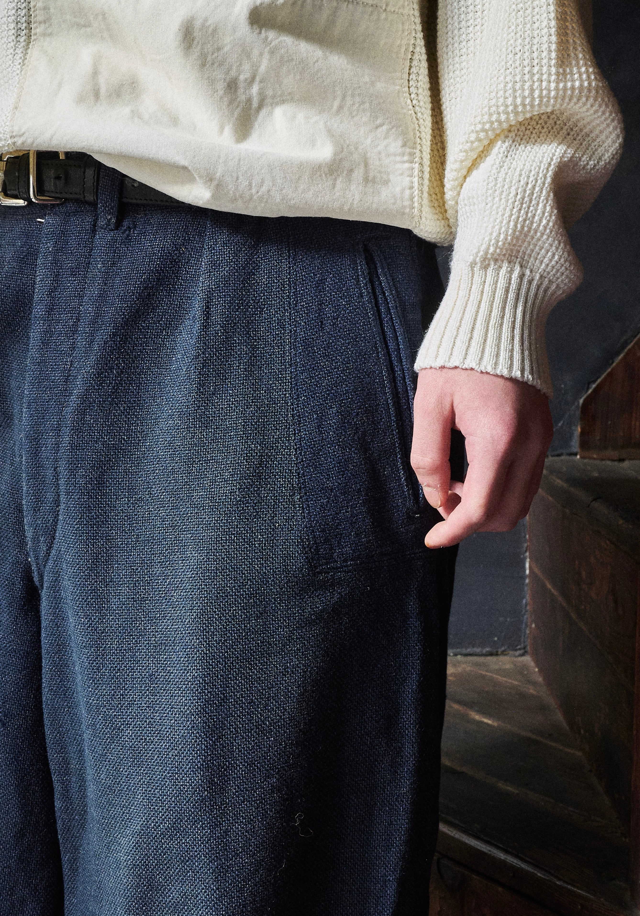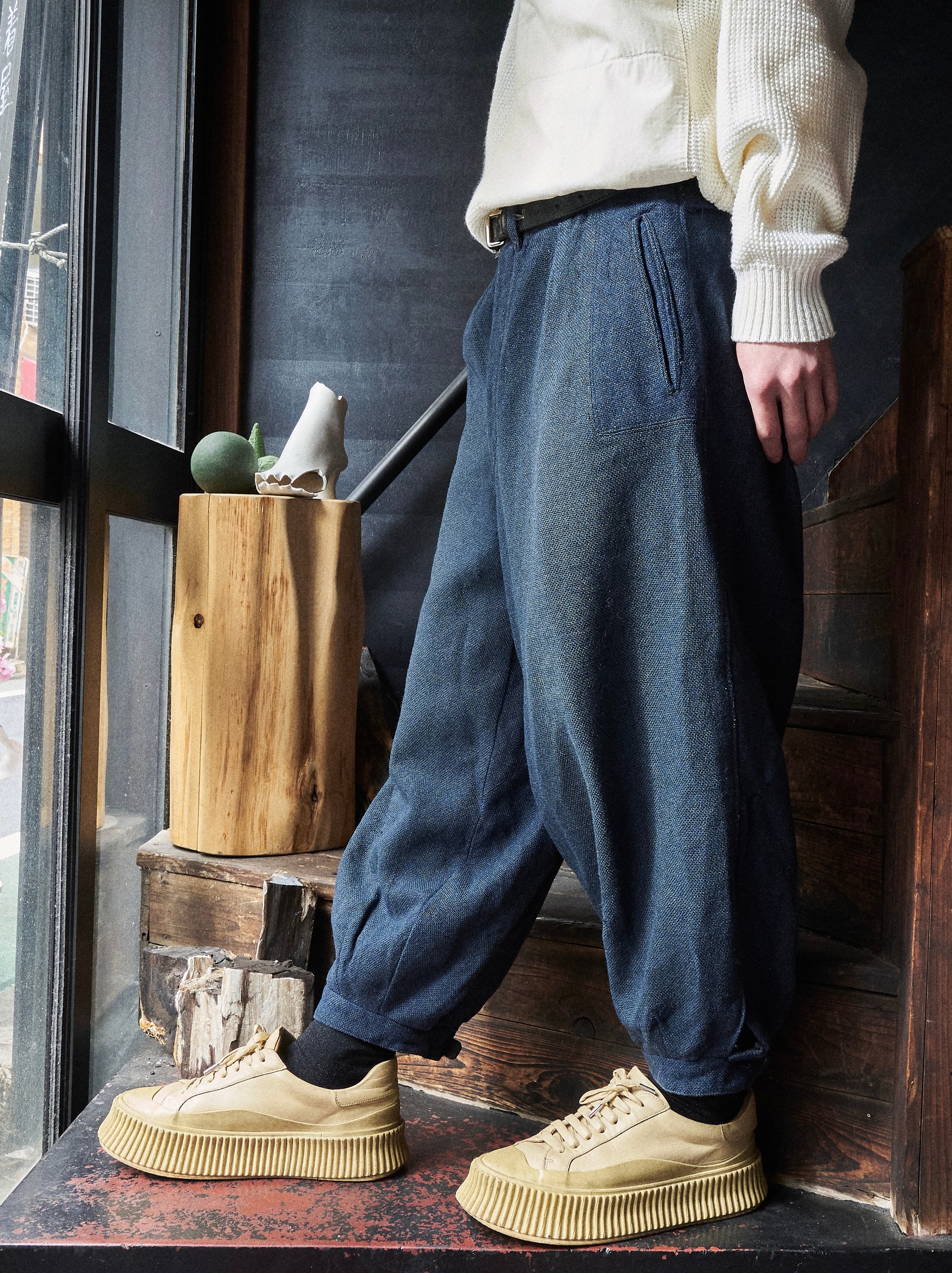 いつ履くのか季節感分からなくなる不思議な質感の織り感溢れるウール。