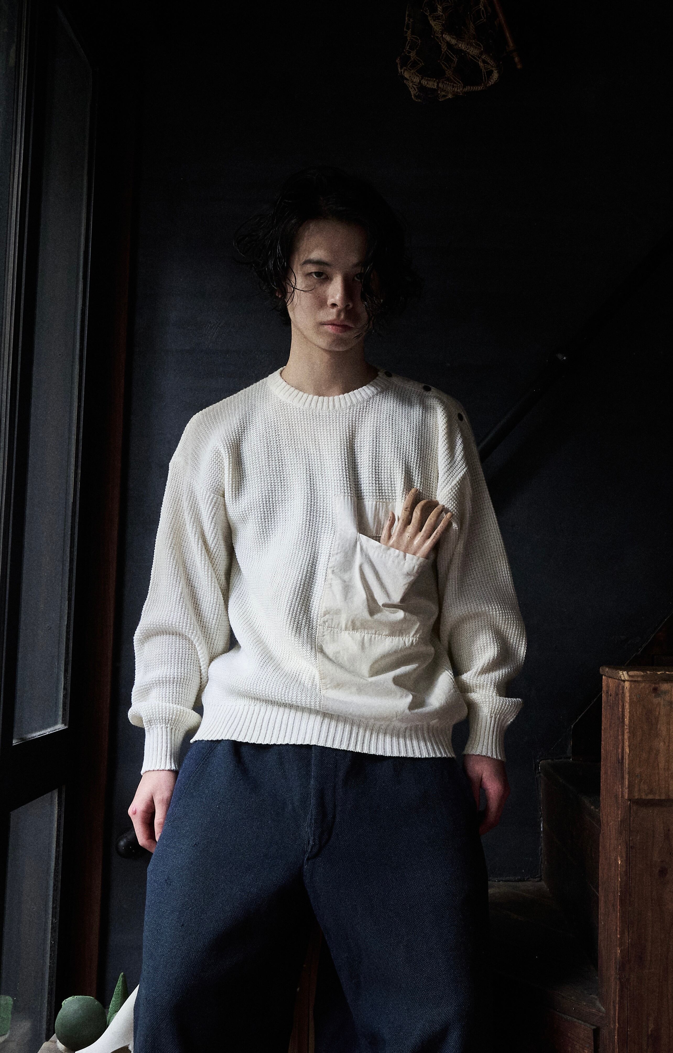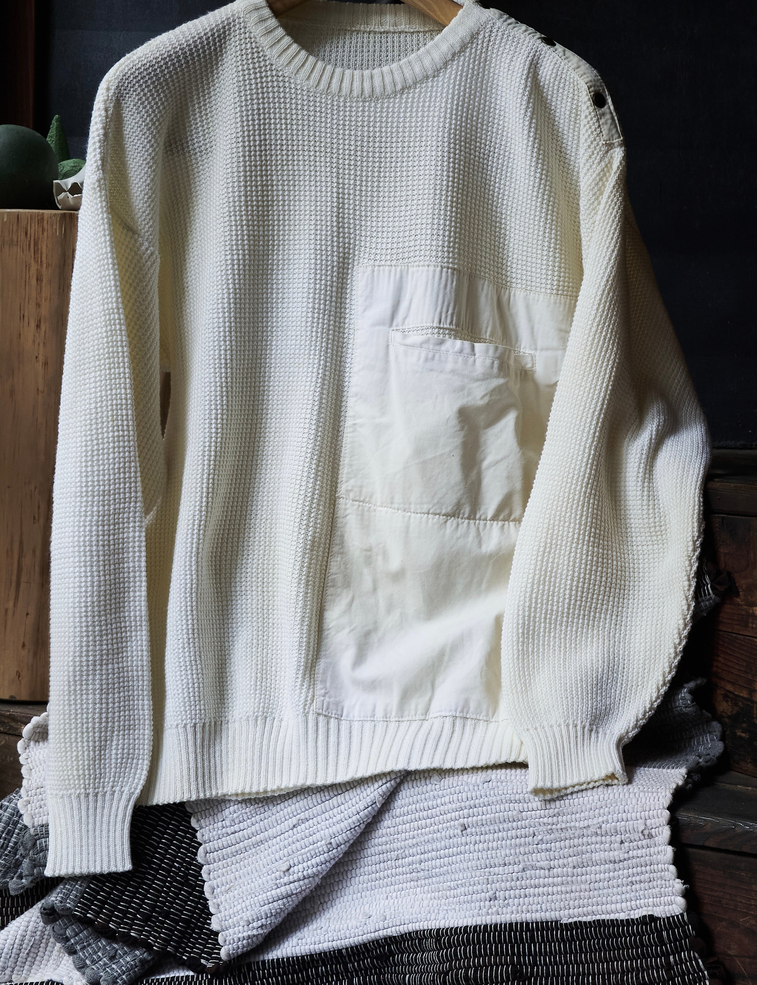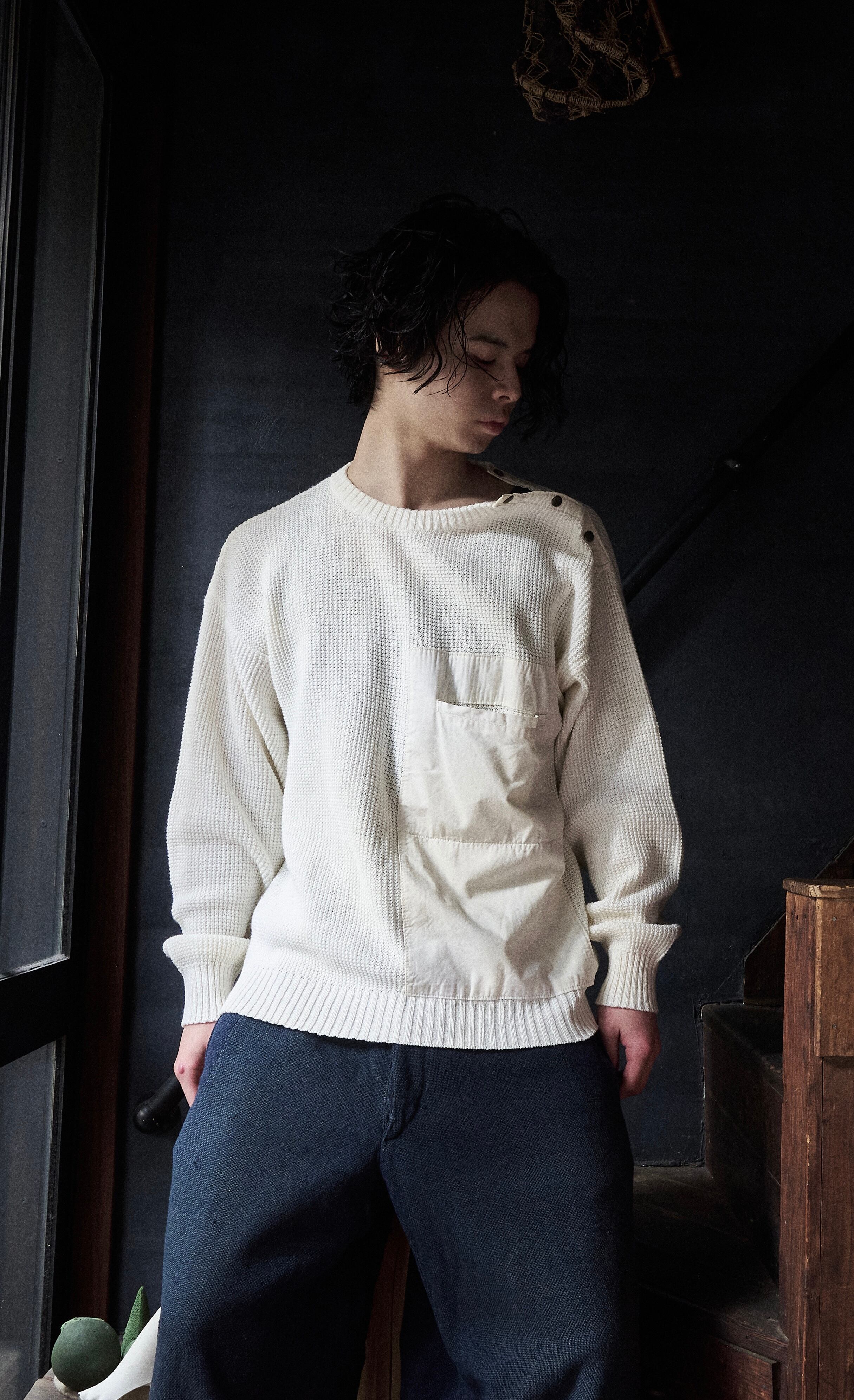 80s euro Diagonal Button Big Pocket Cotton Knit