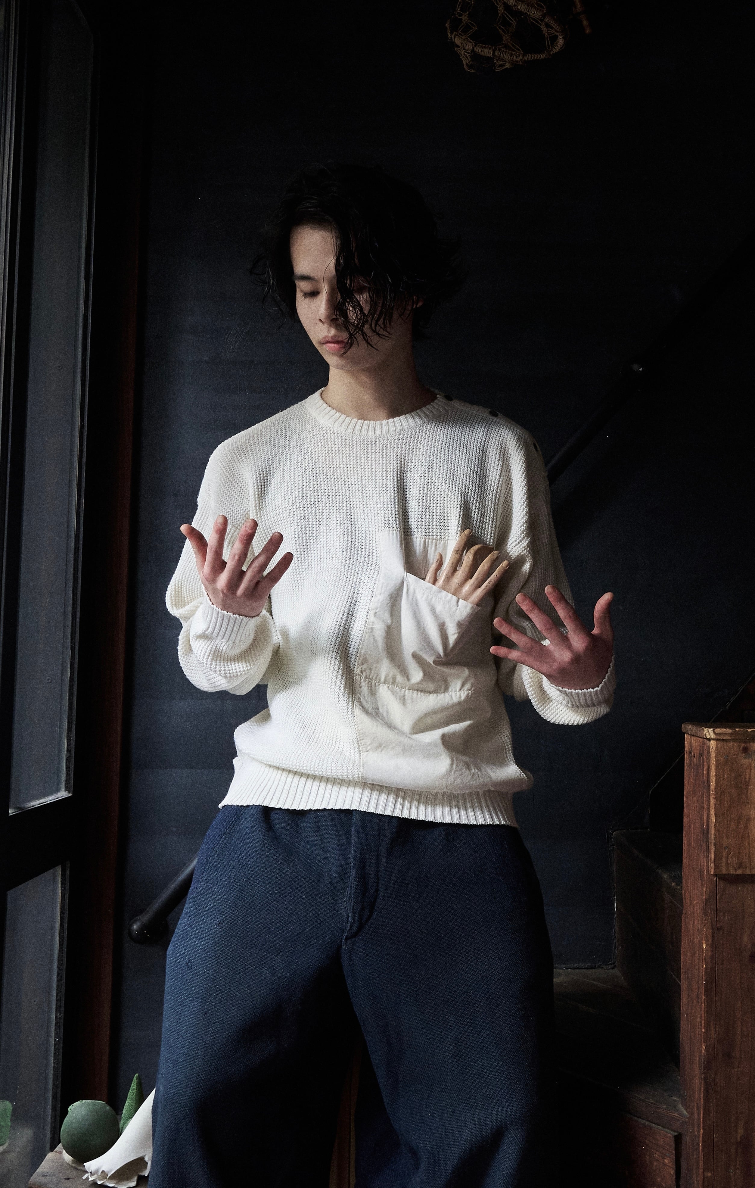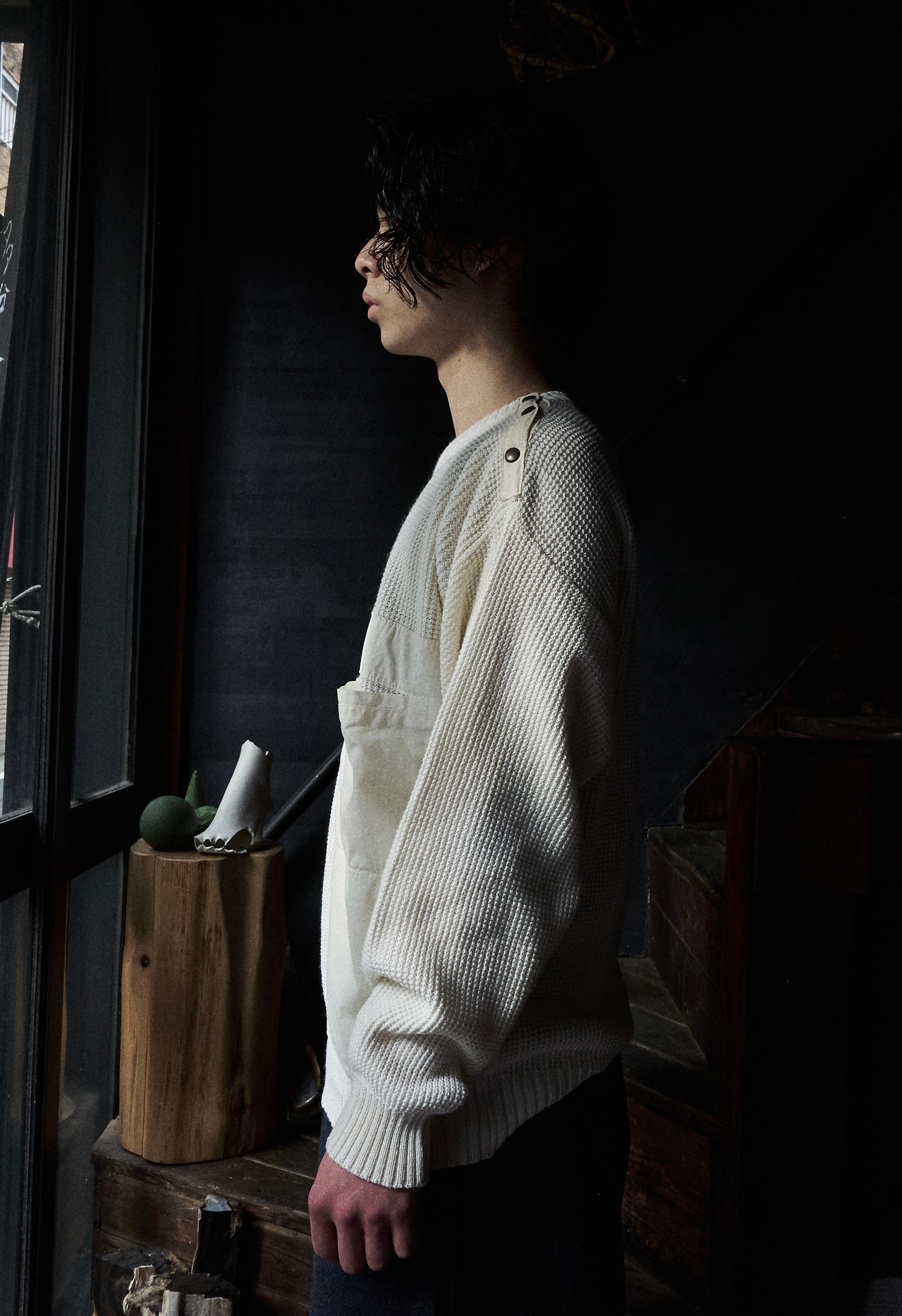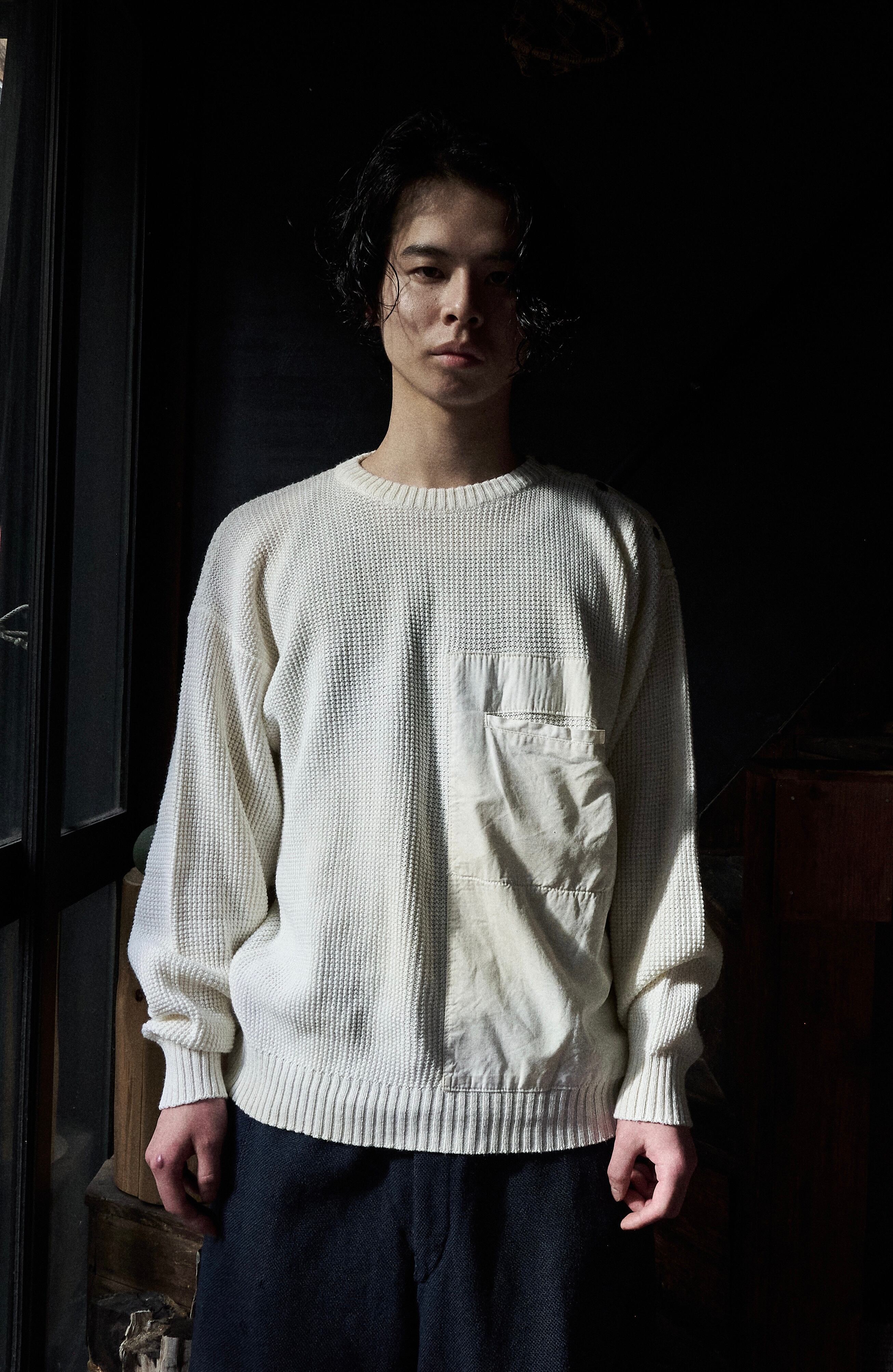 80s euro Diagonal Button Big Pocket Cotton Knit