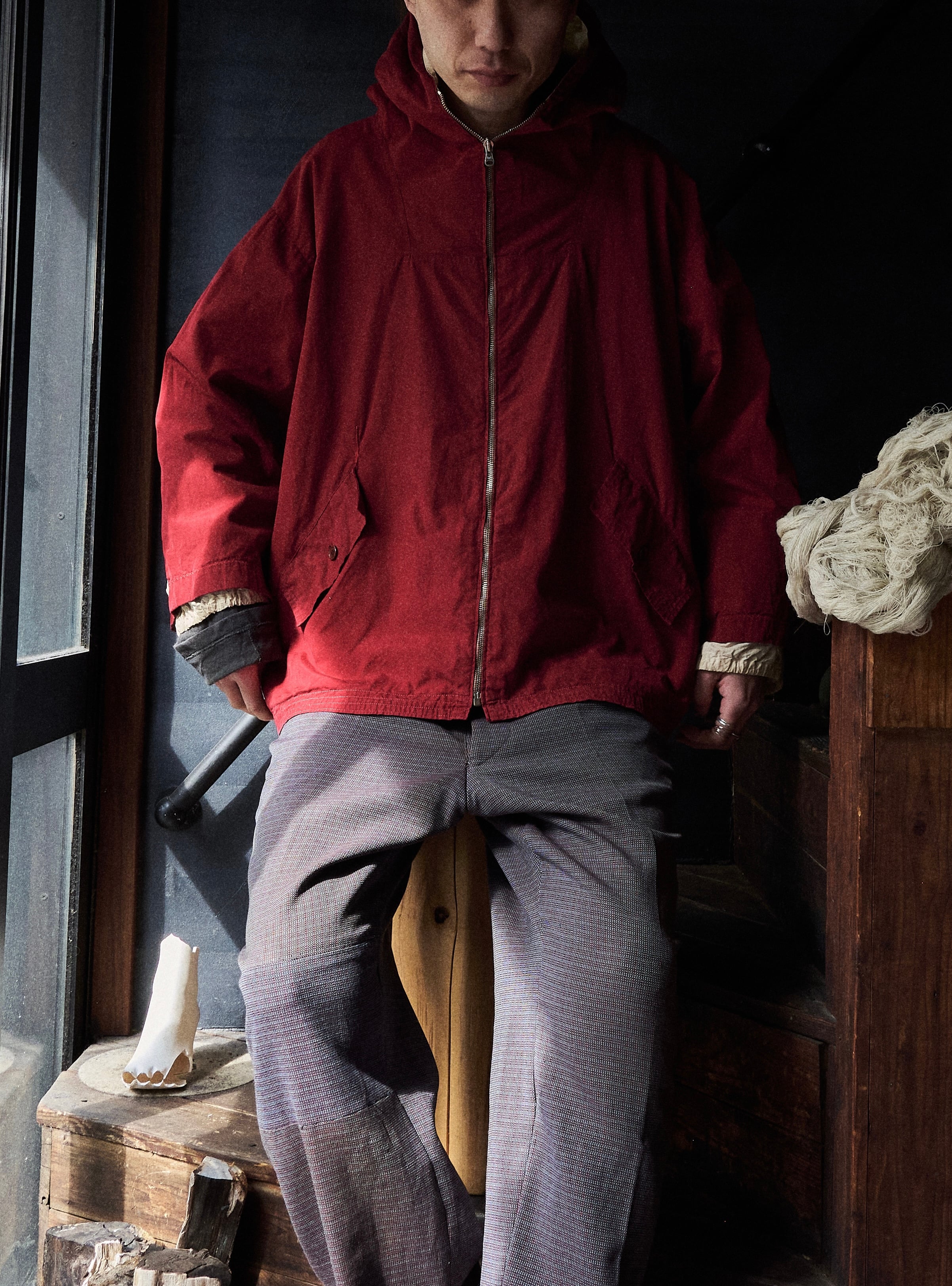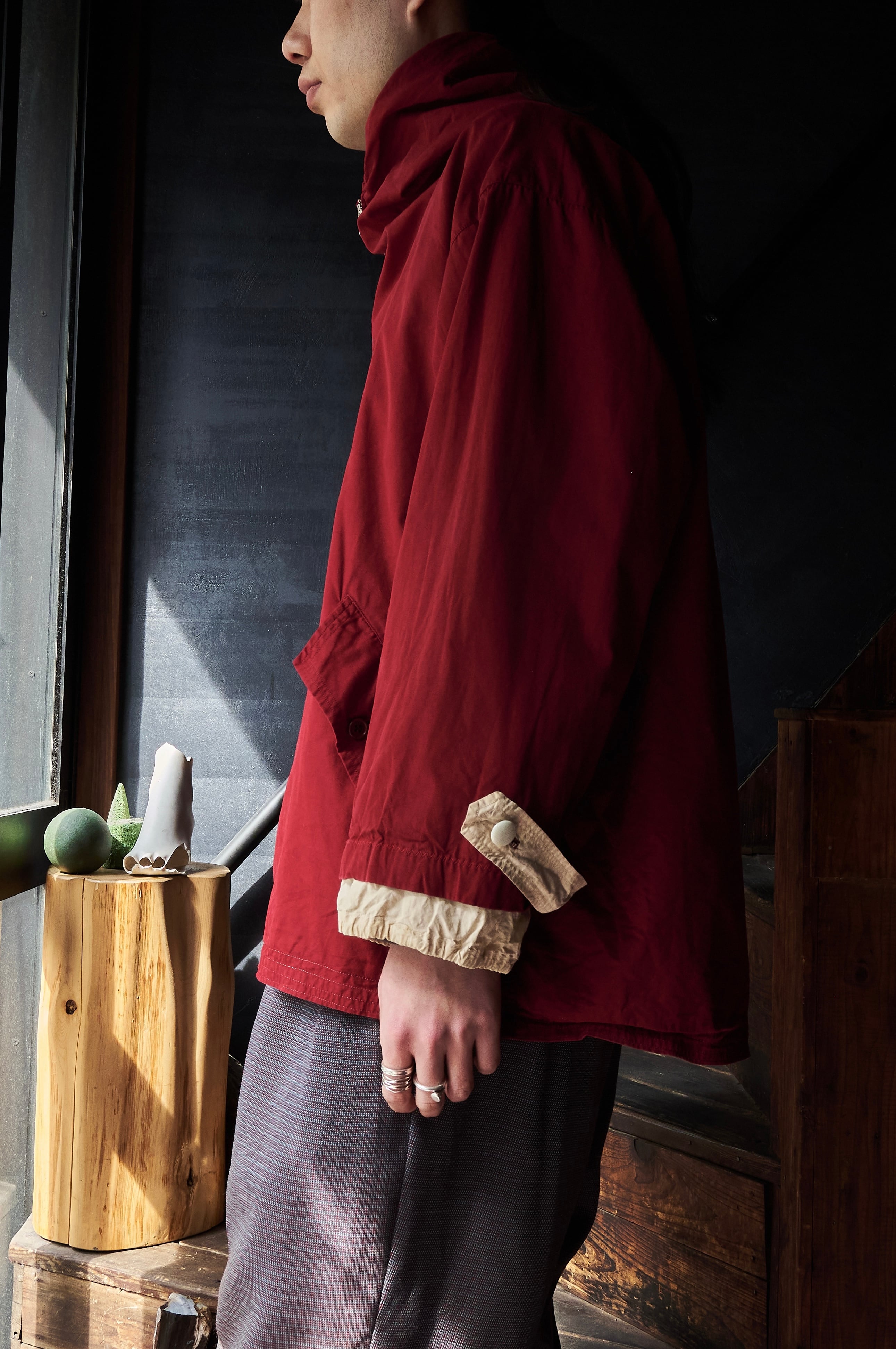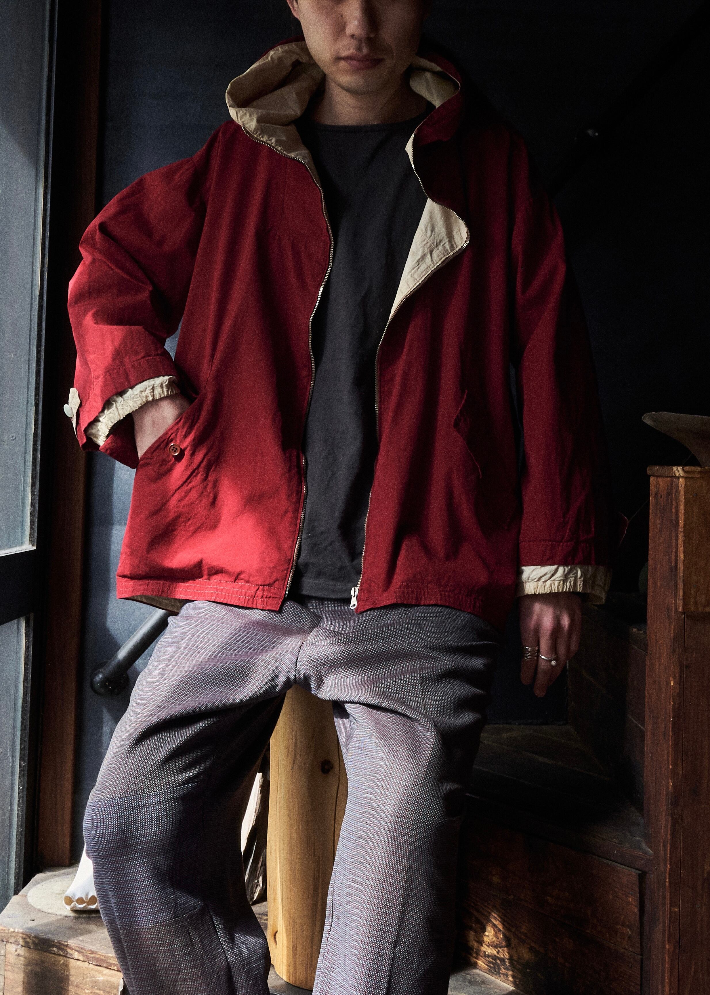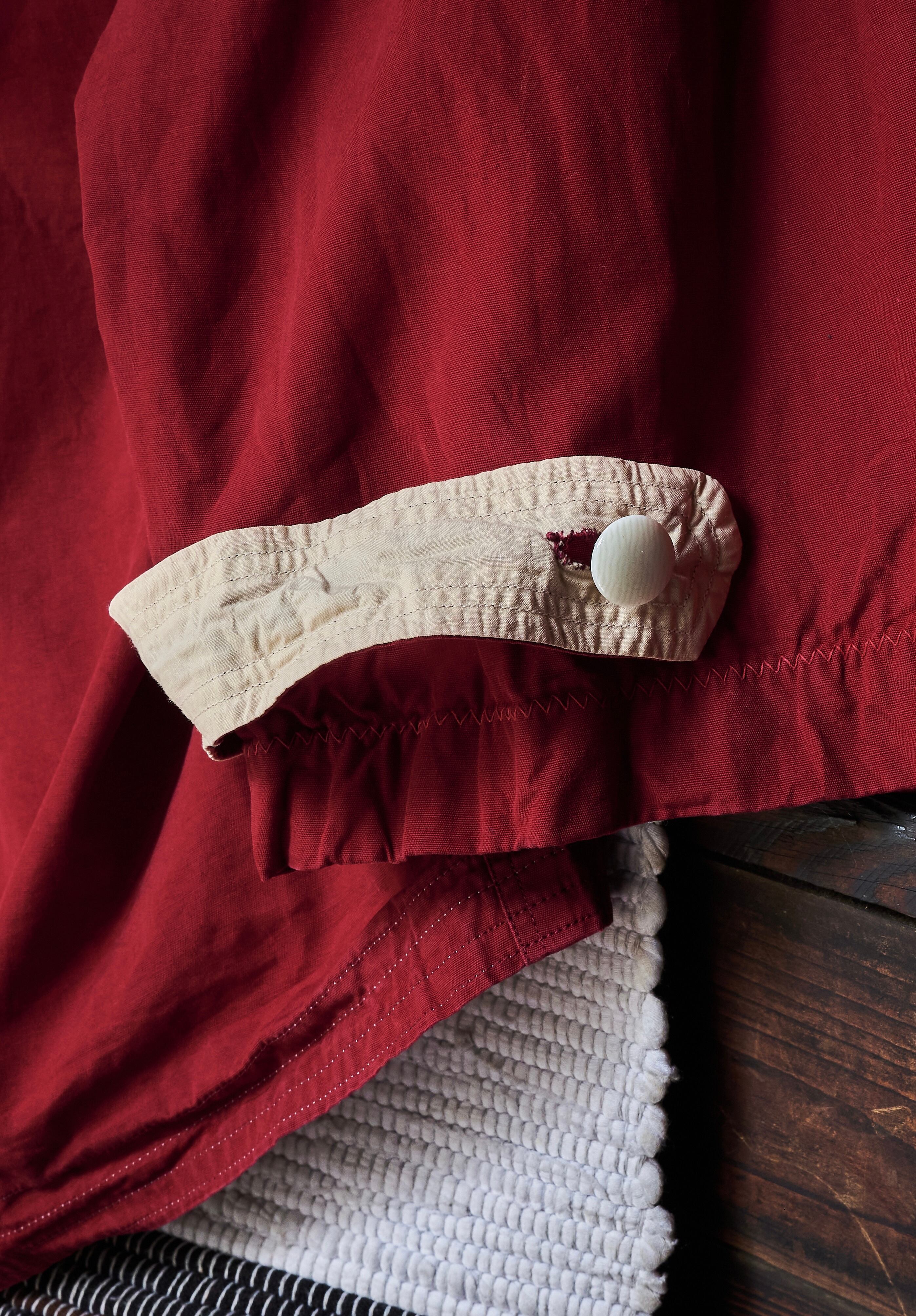 vintageファブリックだから出る数年経った血痕のようなバーガンディカラーが最高だと思ってます。