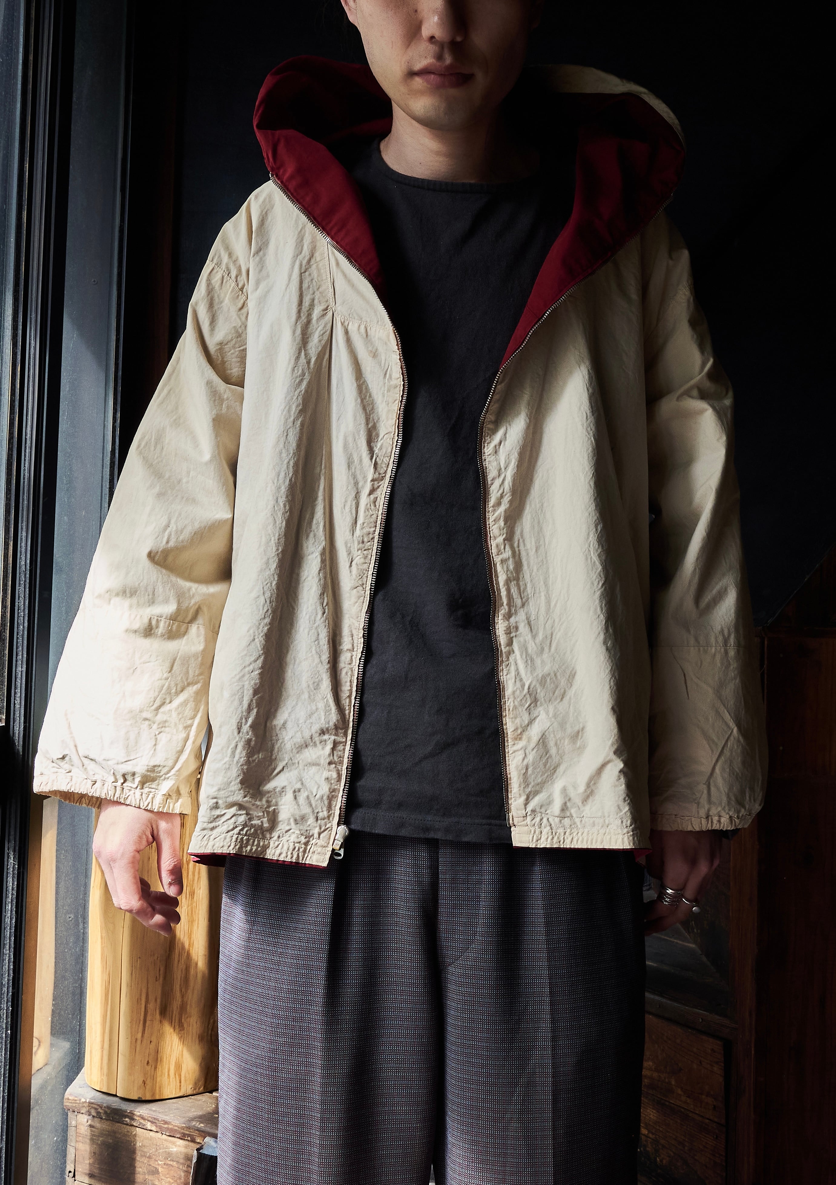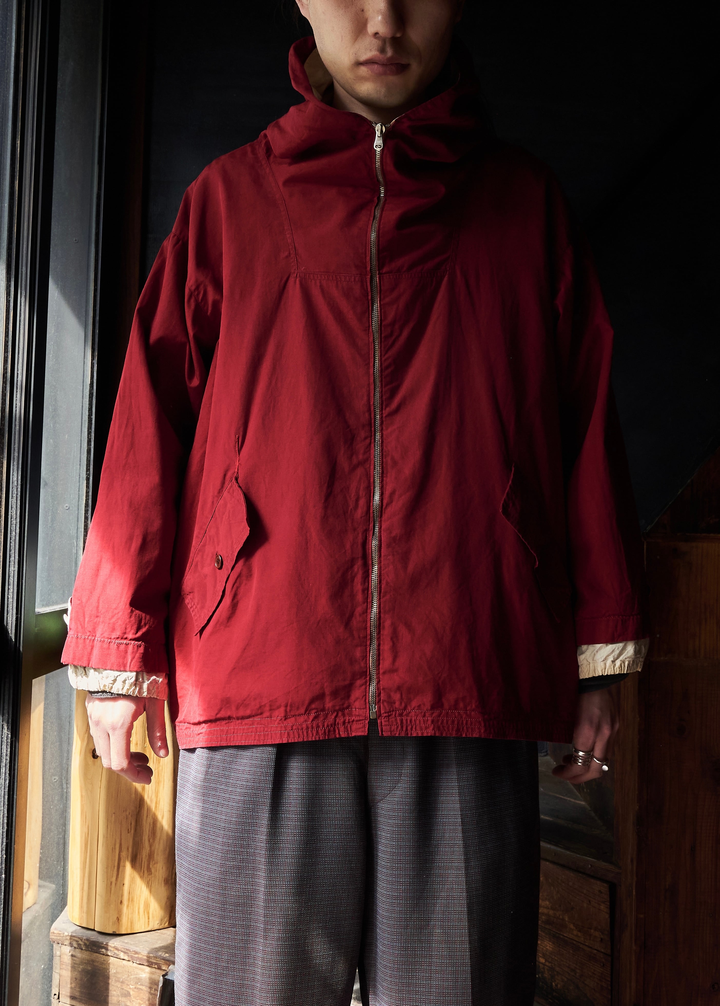 60s Germany Burgundy Long Zip Hoodie Anorak