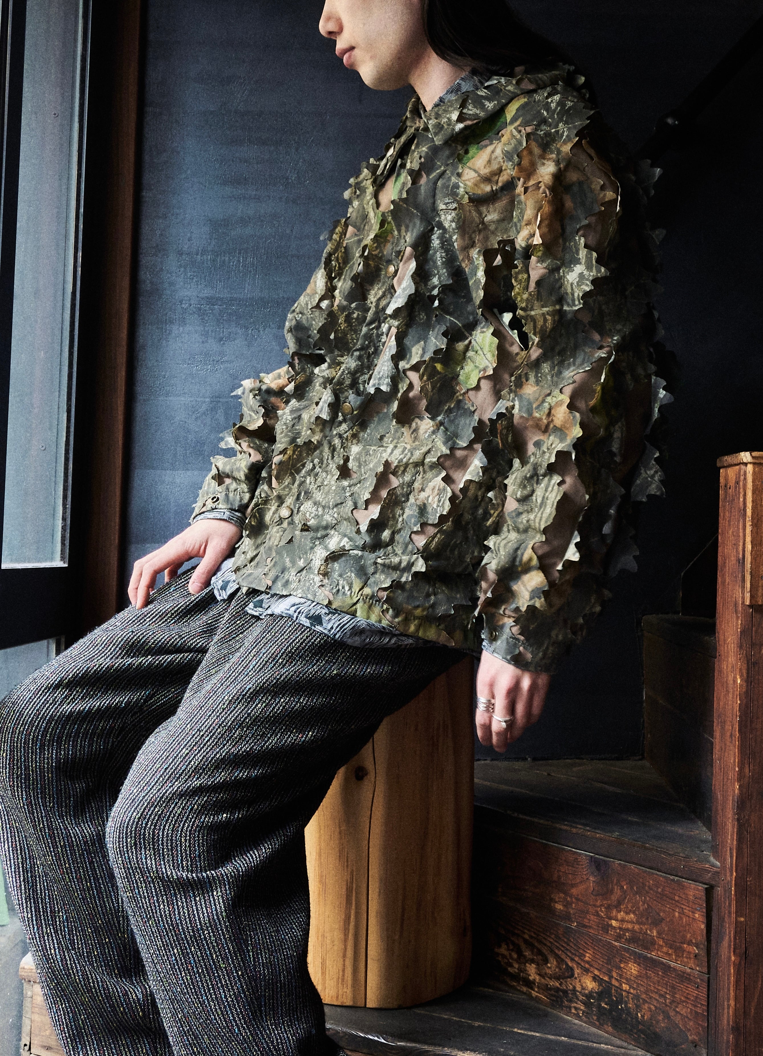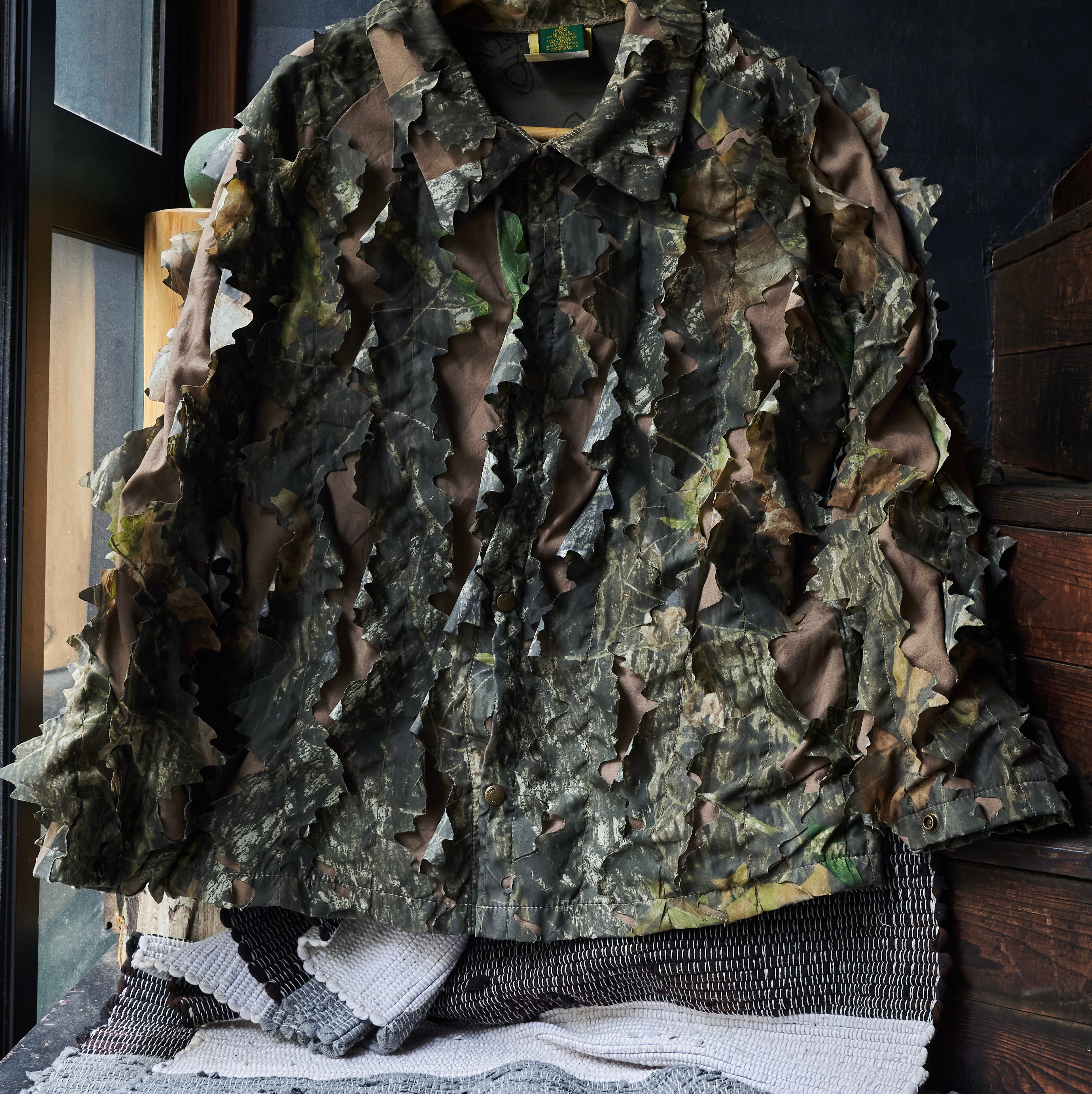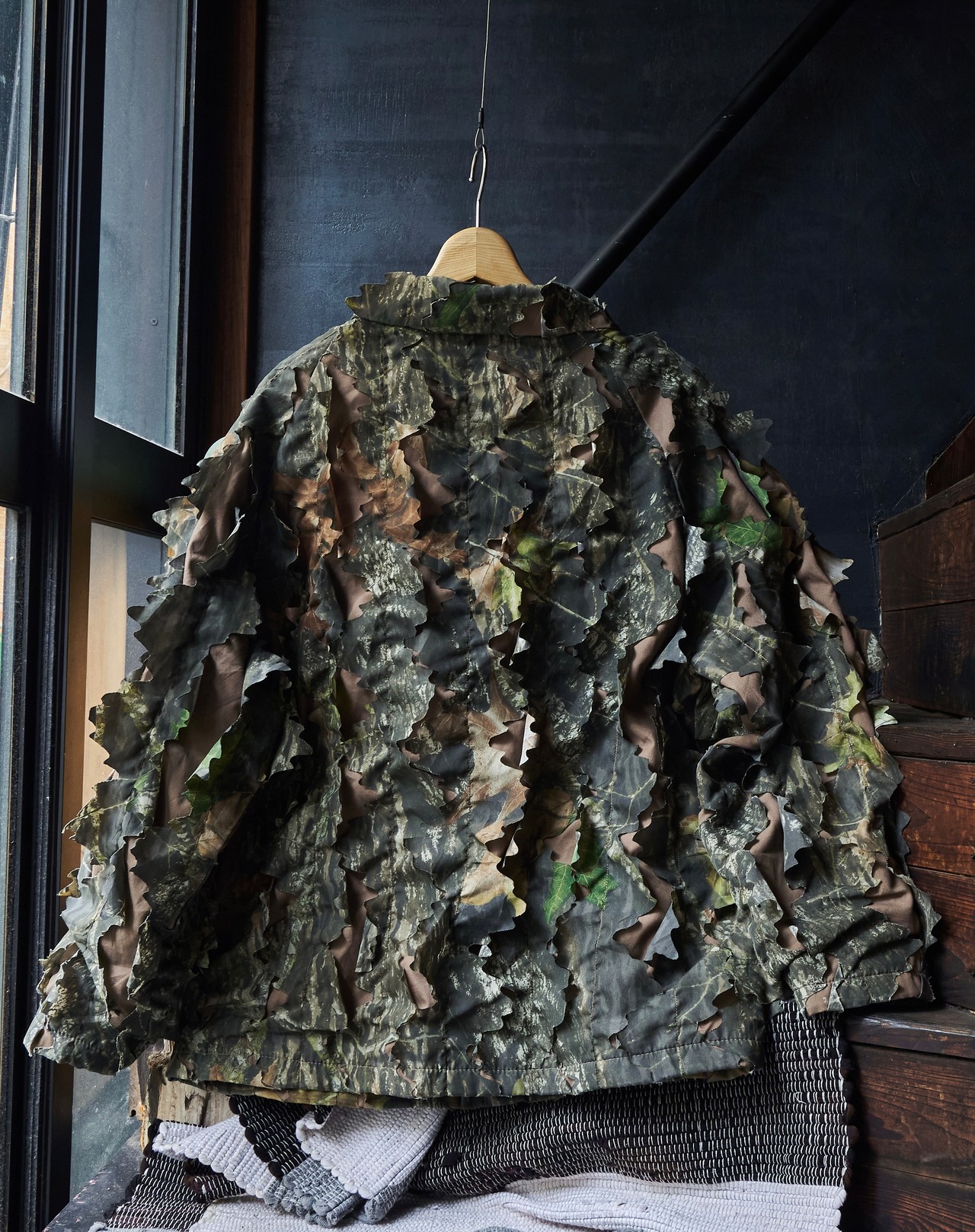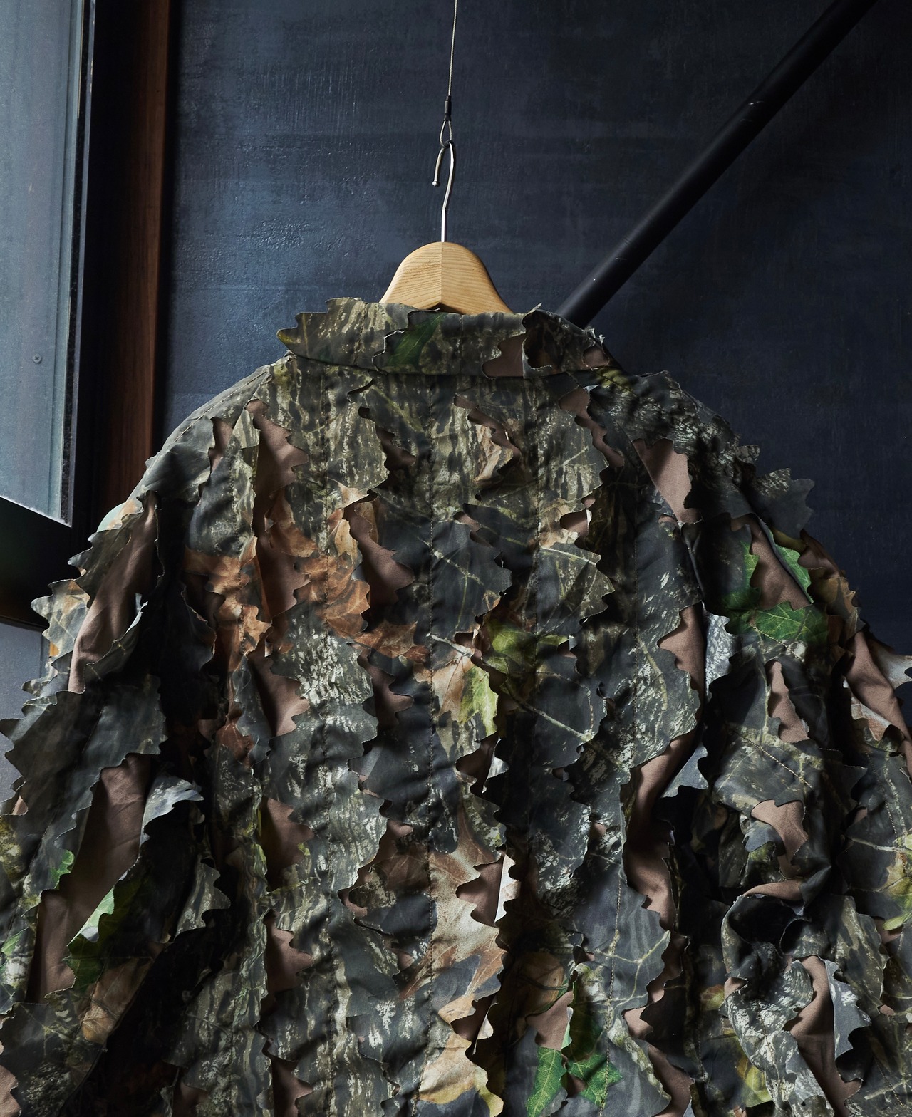 そんなカベラスの服でも一際目立つギリージャケットはハンターやスナイパーが周囲の環境(草木や土)に擬態し、視認性を極限まで下げるための迷彩服であります。